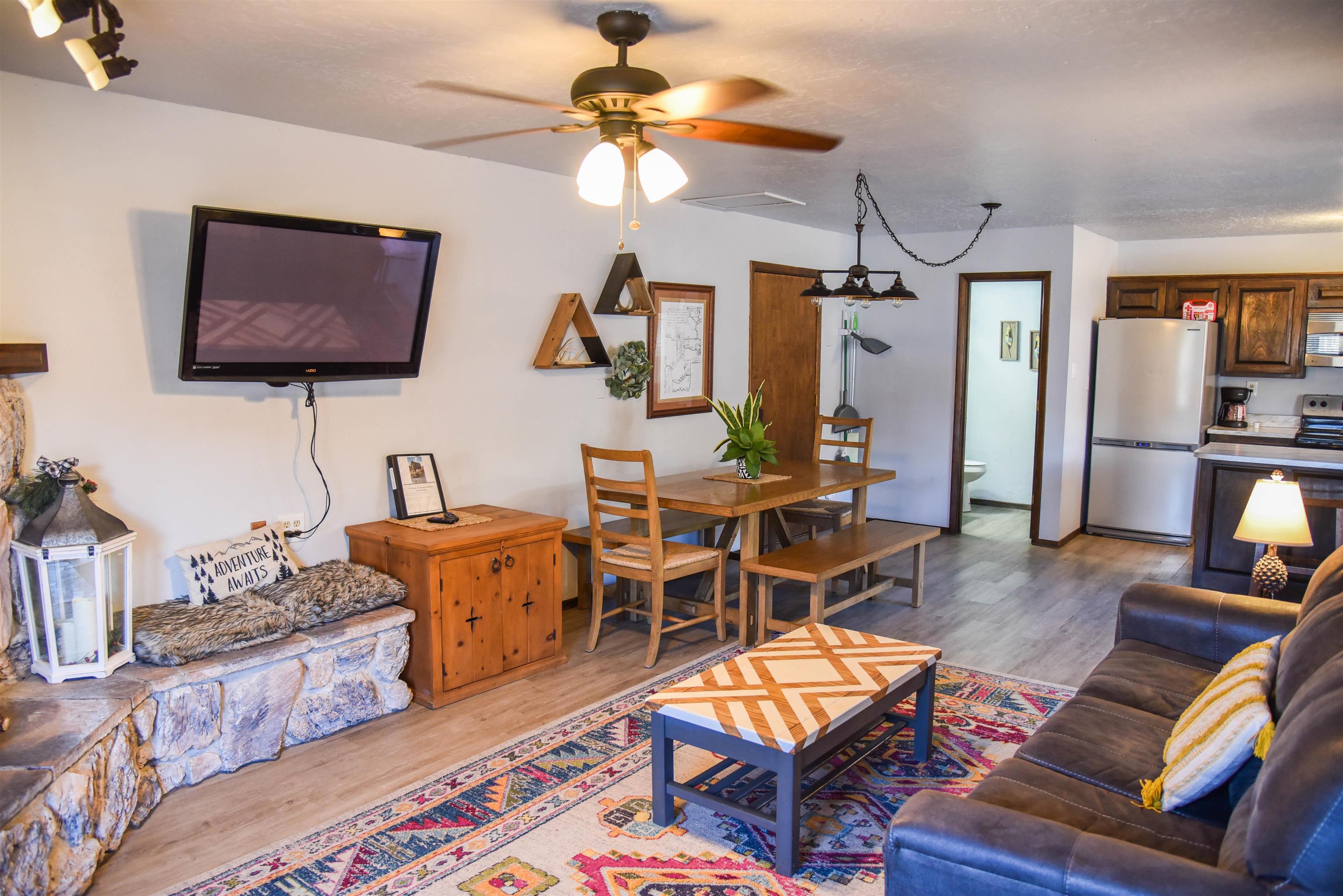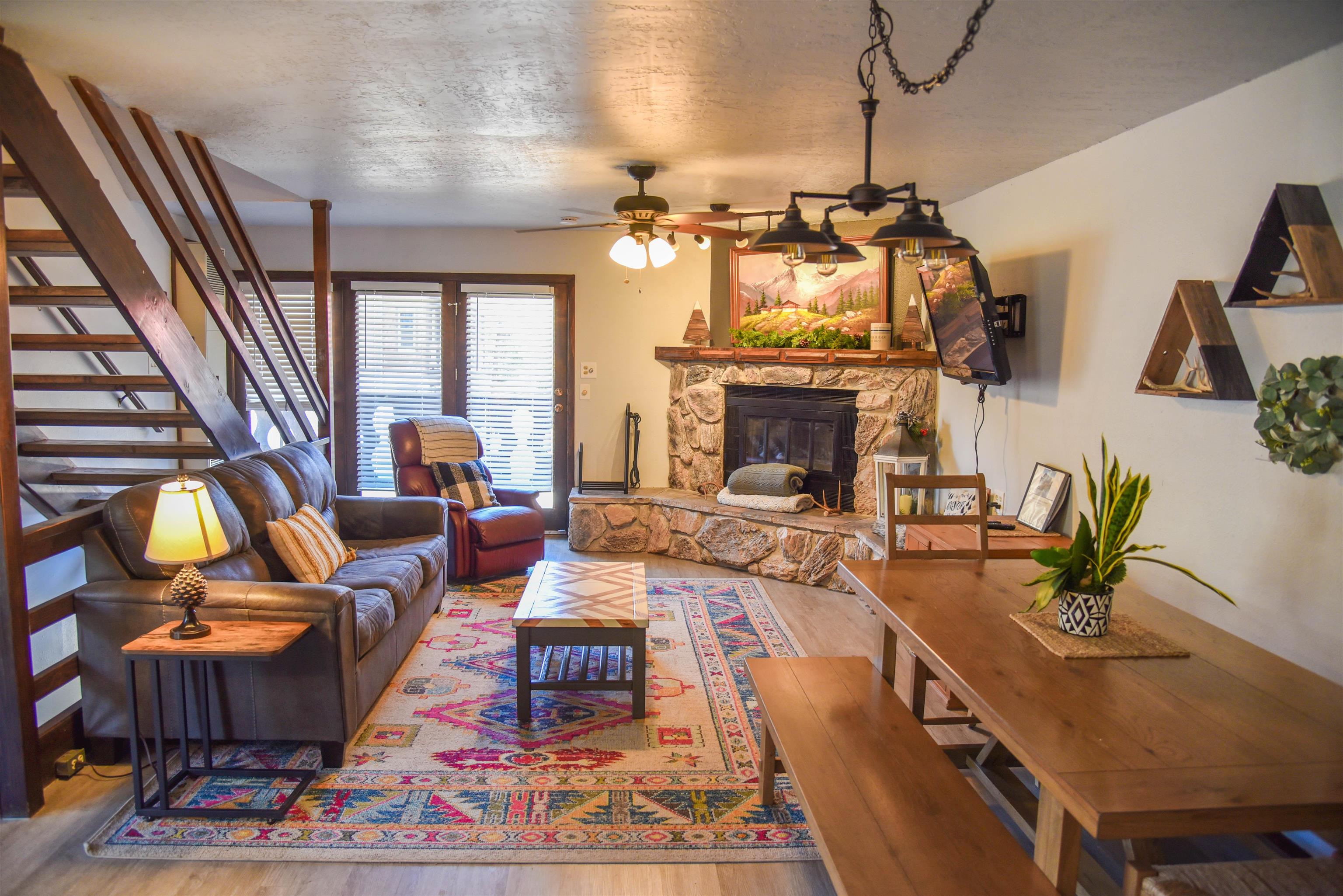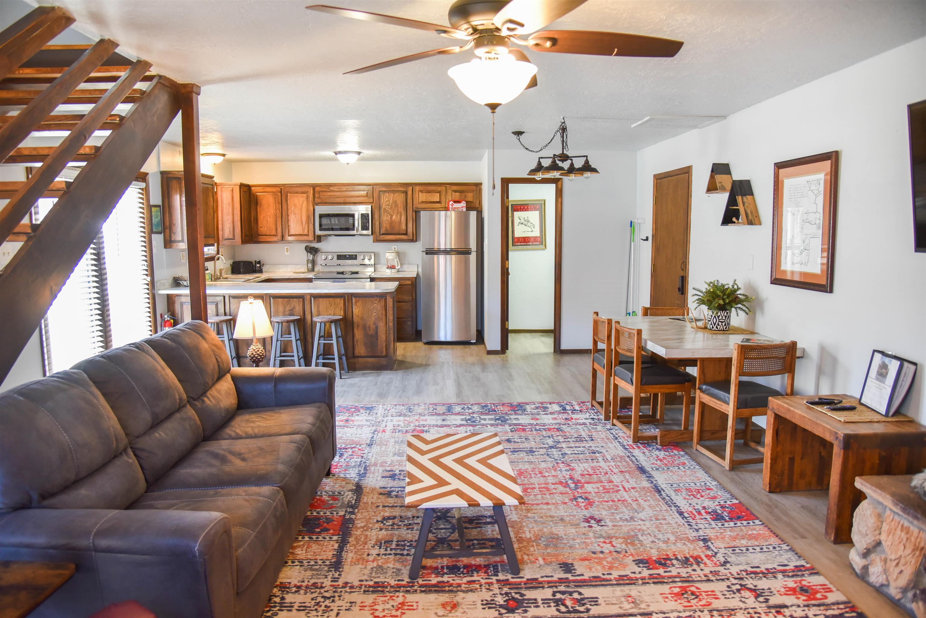 Investment at it's finest! We welcome to view the 'River & Mountain Riders of Brookside,' a unique duplex nicely situated on the river in downtown Red River, New Mexico with 4 bedrooms & 4.5 bathrooms! Description Upon viewing this charming property decide which side YOU want to start in! Should you choose the River Rider to your right or the Mountain Rider to your left?!! Both mirror each other identically and connect via adjoining doors located on the middle floor between the two living areas... River Rider Description: Walk into our foyer. Leading to your left is the door to the single car garage, semi fenced yard which offers a great gathering place around the wood burning fire pit overlooking the Red River. Also on this ground level access is the laundry area complete with a full sized washer/dryer. Continue up the stairs to the middle story and be welcomed into the newly updated open concept living room with private North facing balcony doors, foldout sofa, wood burning fireplace, flat screen TV, spacious dining area, half bath and the completely updated kitchen housing new stainless steel appliances and sleek Formica style counter tops. The larger bedroom ensuite houses a Queen sized bed and a twin daybed with a trundle, flat screen TV, private bathroom with a tub/shower combo and a private East facing balcony looking towards the Red River Ski Area, river, and the Carson National Forest. The Primary bedroom features it's own bathroom with a tub/shower combo, a king sized bed, and it's own private North facing balcony towards Main Street and the river... Mountain Rider Description: Upon entry into this charming property you will walk into our foyer. Leading to your right is the door to the single car garage housing the ping pong table, small fenced run access. Also on this ground level is the laundry area complete with a full sized washer/dryer. Continue up the stairs to the middle story and be welcomed into the newly updated open concept living room with private South facing balcony doors, foldout sofa, wood burning fireplace, flat screen TV, spacious dining area, half bath and the completely updated kitchen housing new stainless steel appliances and sleek Formica style counter tops. The larger bedroom ensuite houses a Queen sized bed and a twin daybed with a trundle, private bathroom with a tub/shower combo and a private East facing balcony looking towards the Red River Ski Area, river, and the Carson National Forest. The Primary bedroom features it's own bathroom with a tub/shower combo, a king sized bed, flat screen TV and it's own private South facing balcony towards Caribel Condominiums... Entire Property: This home is complete with Fiber Optic Wi-Fi and smart TV's so when you or your guests want to kick back and enjoy your evenings after a fun filled day then you have the amenities to do so, just sign in to your favorite apps! This home has gorgeous views from all the decks/balconies and is located on the Red River and just a hop, skip and a jump from the Red River Ski Area and downtown where there is so much to do from dining in the local eateries to shopping to exploring our great outdoors with many activities such as skiing, snowmobiling, ziplining, nature trails, hikes, off-road trails, fishing, hunting, horseback riding, jeep tours, festivals and so much more! This modern mountainous retreat is great as a romantic vacation or a family destination generation after generation. Sells Furnished minus exclusion list/personal items. Rental history available upon request!
