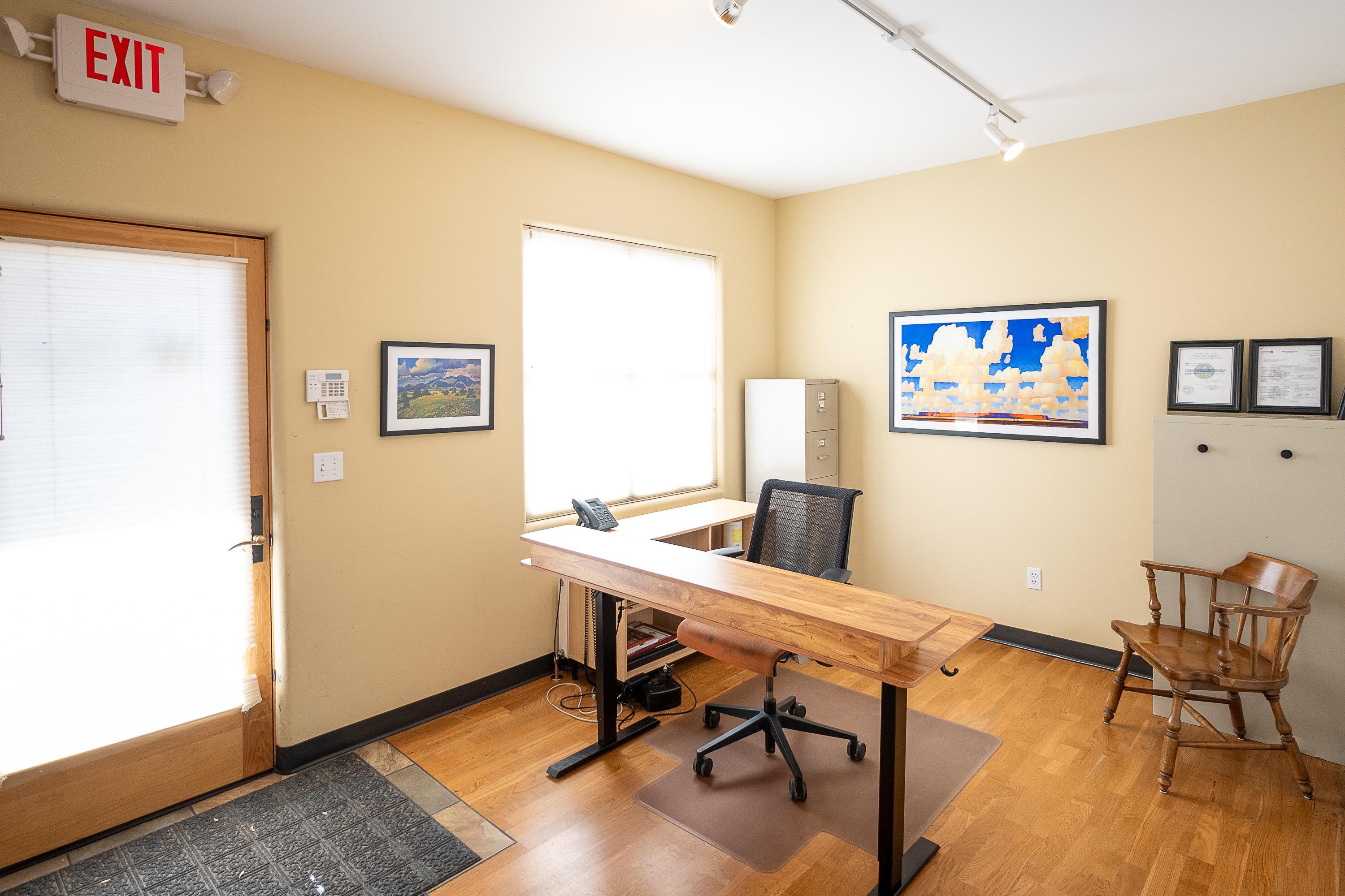 Live, work, create, invest — repeat. This prime Downtown Taos commercial condo is an investor's dream or entrepreneur's haven. Located right downtown near, galleries, restaurants, and shops and offering a rare blend of stabilized income and creative flexibility. With nearly 2000 sqft across two levels, the possibilities are numerous. The main level has a covered entry, reception area, private office or conference room, storage areas, bathroom and kitchenette. Up the stairs to the 2nd story, there are four private offices, a 2nd bathroom and additional flex spaces for additional office workspace, lounge areas or storage. Currently home to a long-term tenant with a strong multi-year history. Want to keep it leased? Great. Cap rate is 6%! Dreaming of a live/work artist studio, wellness or bodywork space, boutique, gallery, office, or creative hideout? Bring your vision and your dreams — this condo has serious transformation potential, creating exciting owner-user possibilities. Low-maintenance condo dues make ownership easy. A rare opportunity to snag a flexible, income-producing space in one of Taos’ most beloved locations. At $173/sqft-- and this location--- this is a screamin' deal!