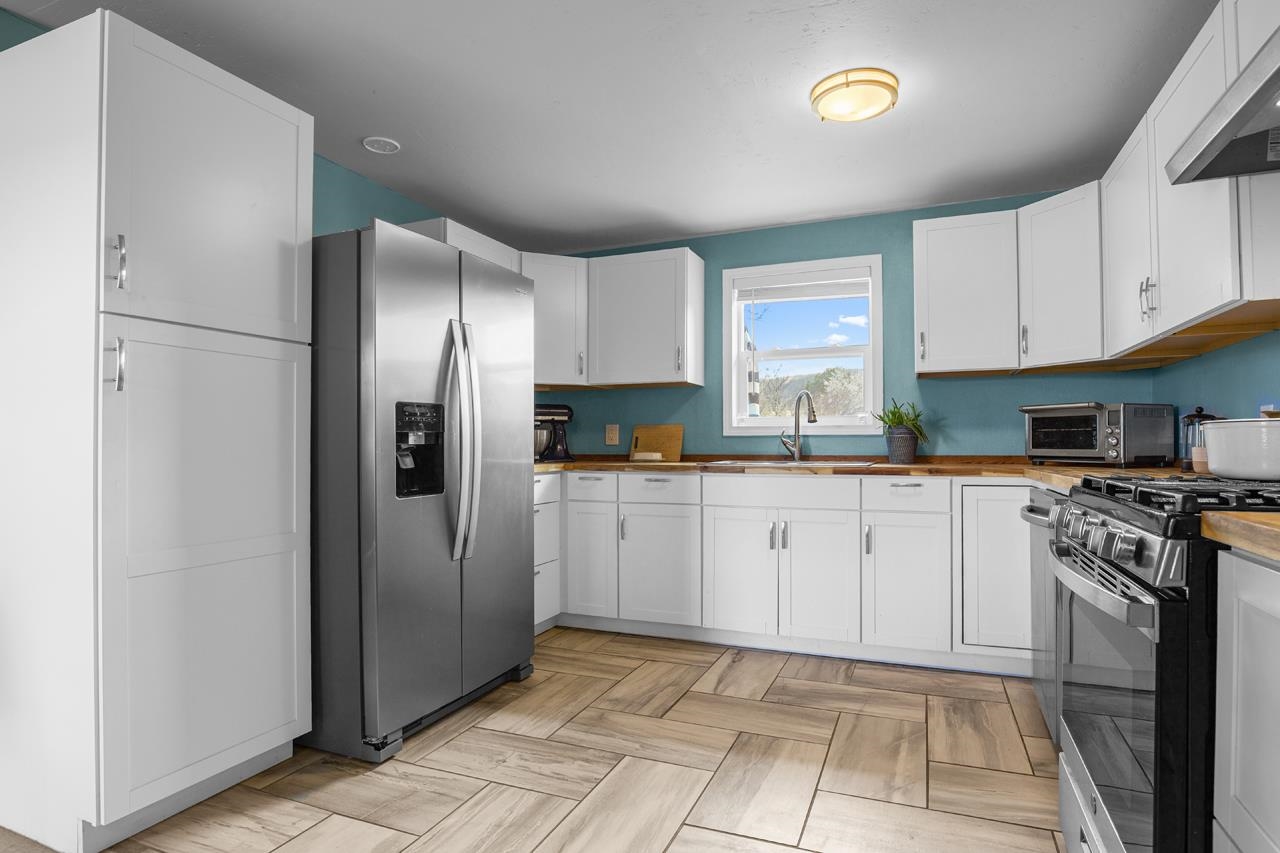 In-town living made easy. This 3-bedroom, 2-bath home sits on a quiet cul-de-sac in the heart of Taos, combining a tucked away feel with the convenience of being right in town. Remodeled in 2023, the home has a clean, updated feel with comfortable, functional living spaces. Set on a spacious lot with town water and sewer, it’s a property that simply works for a full-time residence, Taos getaway, or investment. Mini-splits provide heating and cooling for year round comfort. Just minutes from shopping, dining, and everyday essentials, with Taos Ski Valley an easy drive away, the location makes day to day living simple. Offered furnished if desired, this is a move-in ready opportunity in one of Taos’ most convenient in-town locations.