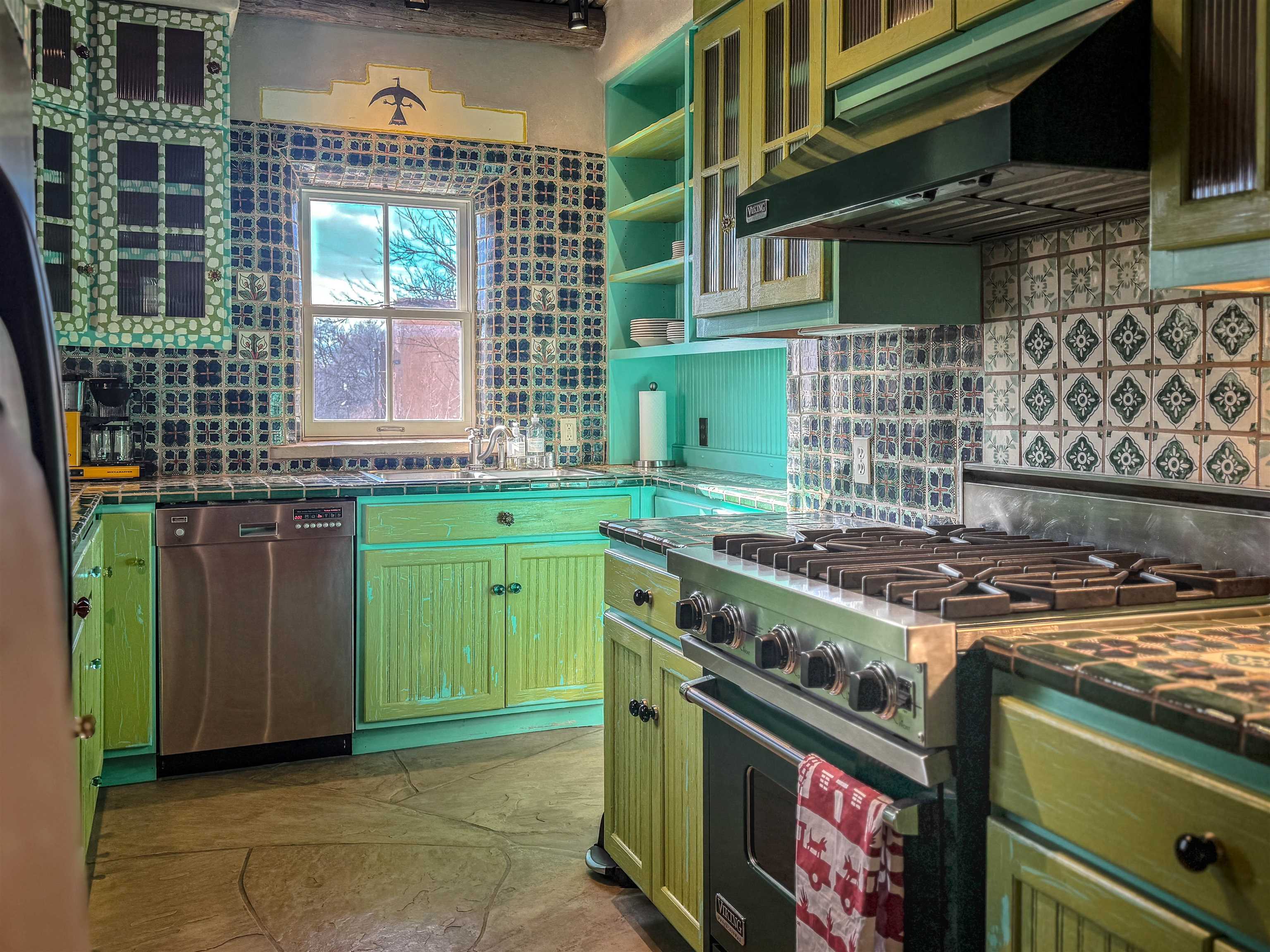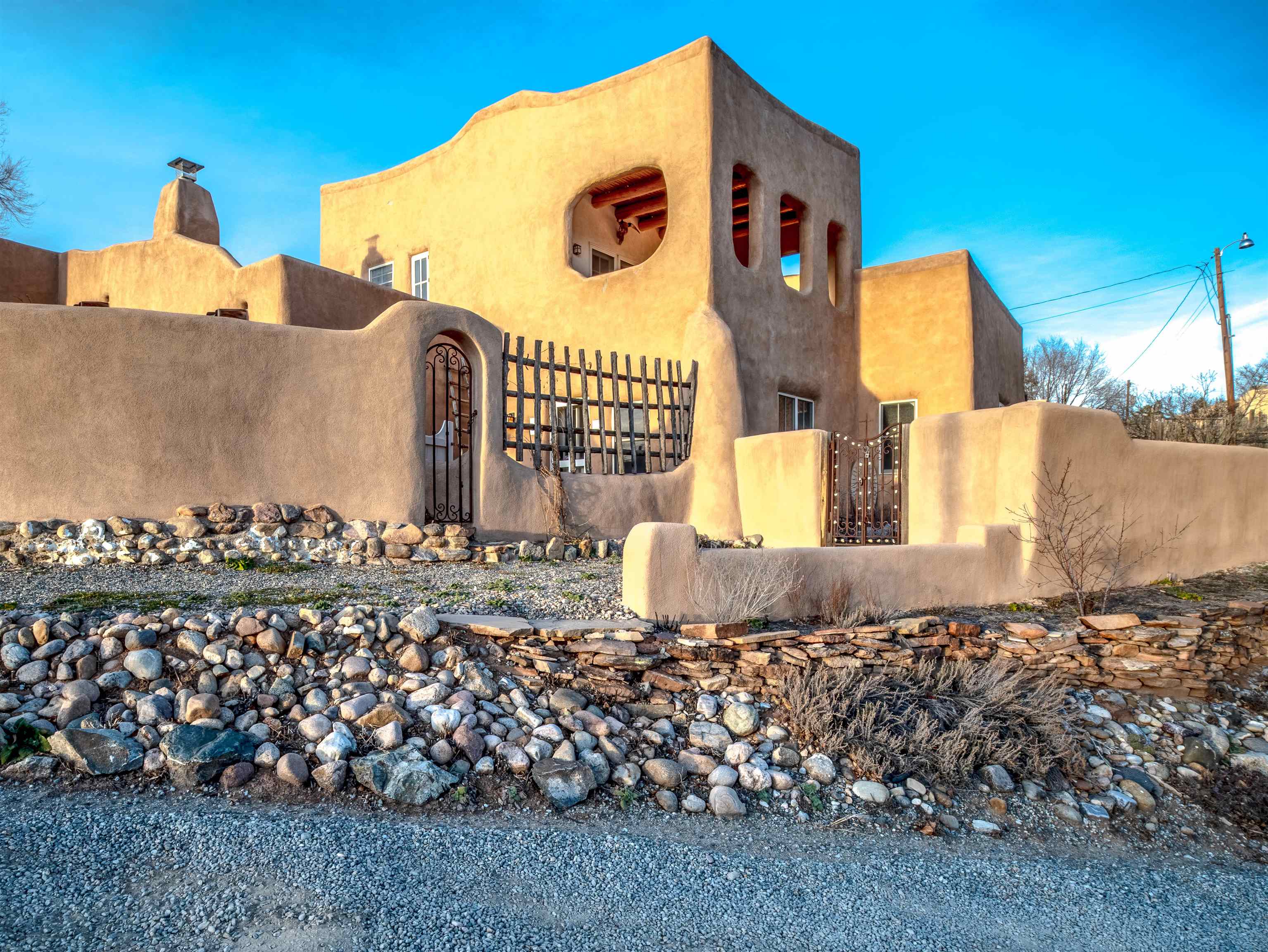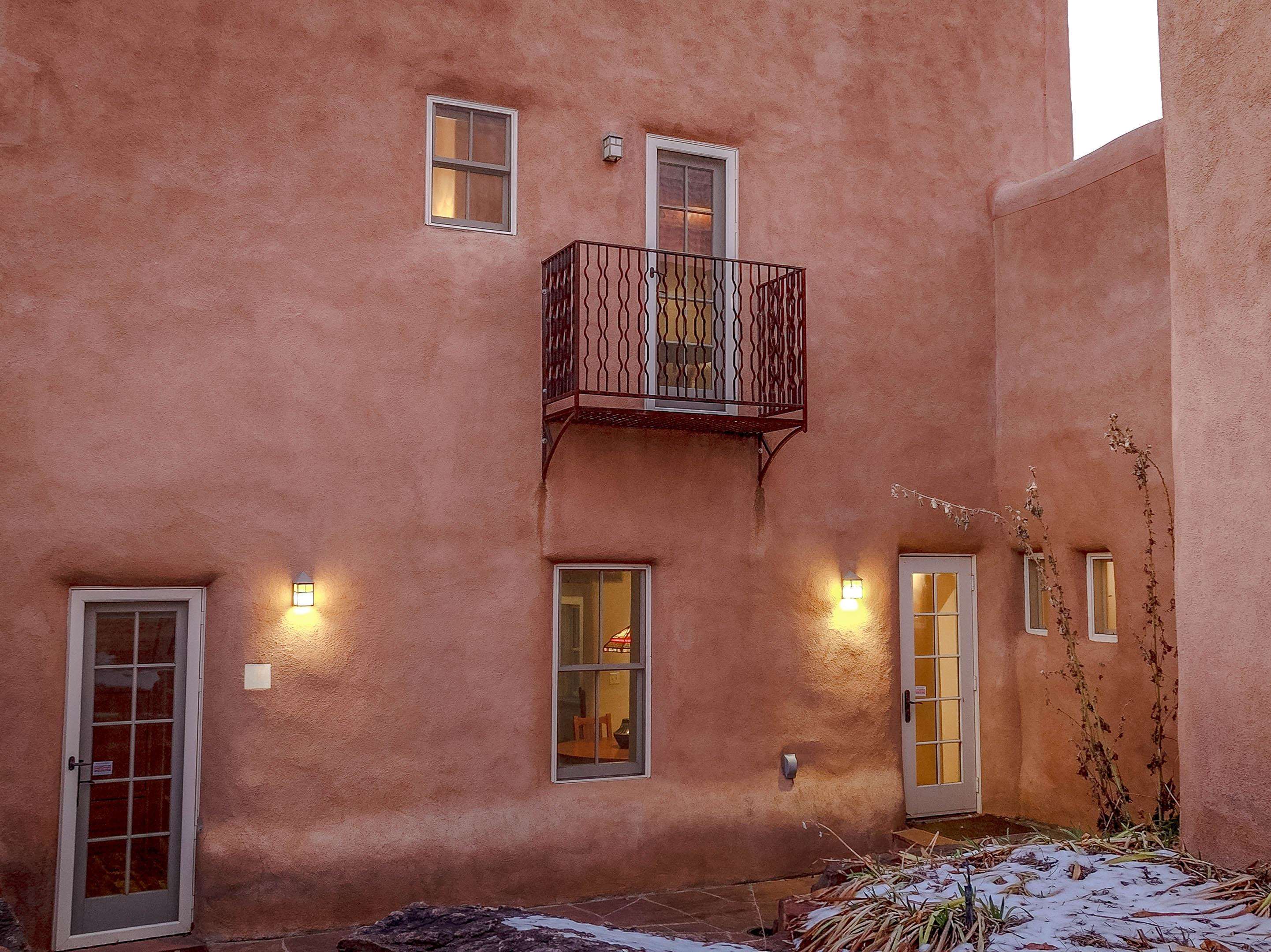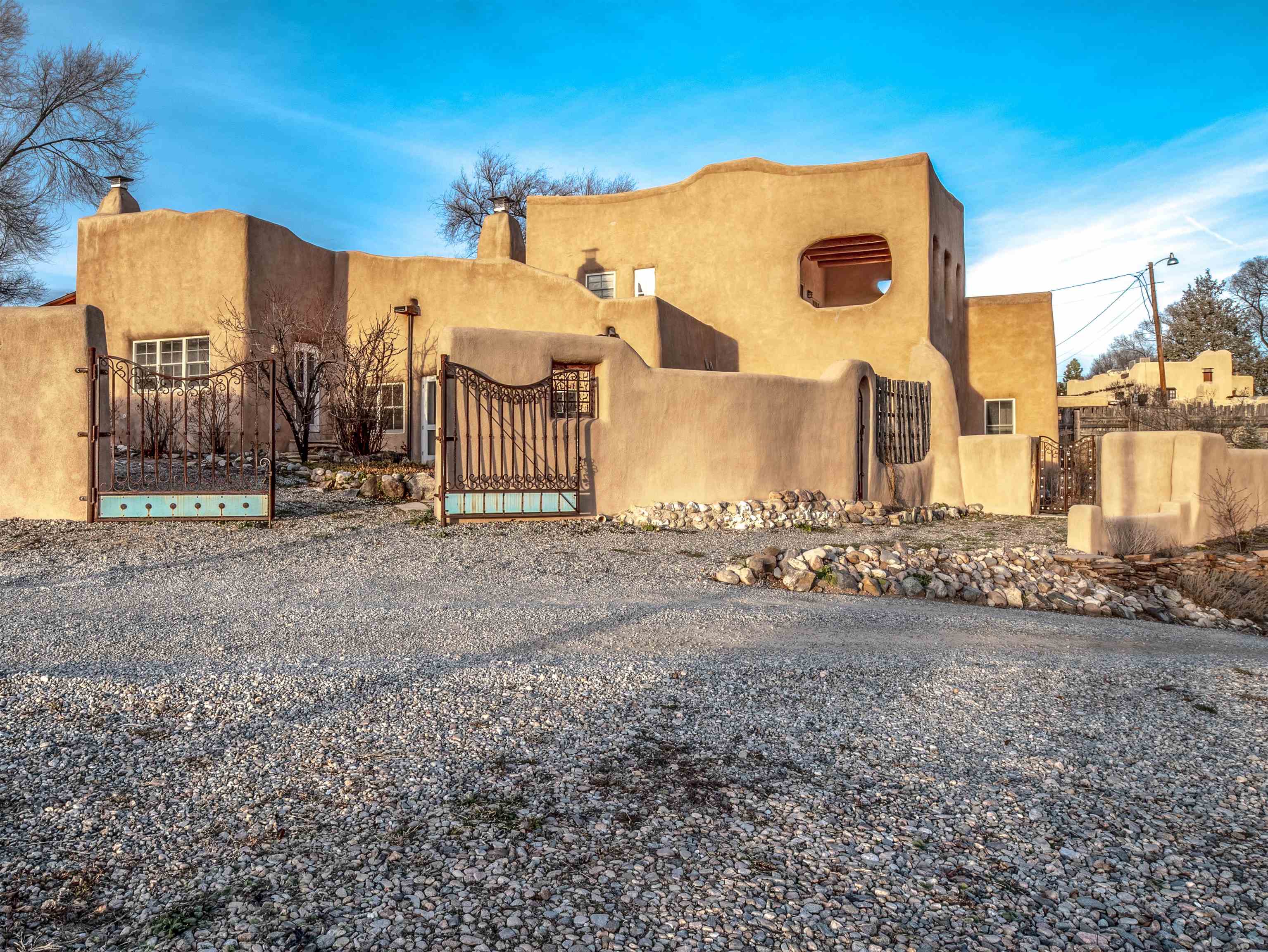 Hidden behind adobe walls in Taos’ historic district, the Ribak Estate unfolds as a rare convergence of place, art, and enduring craftsmanship. Backing up to La Loma Plaza, an enclave established in 1795 - this storied property occupies a setting where Taos’ architectural and artistic traditions remain vividly alive. Owned by the renowned Taos Modernists, Beatrice Mandelman and Louis Ribak, the home served for decades as a residence, studio, gallery, and a gathering place for influential artists whose work helped define Taos on the international stage. That legacy is still palpable today, not as a museum piece, but as a living environment shaped by creativity, conversation, and thoughtful stewardship over generations. Recognized by the State of New Mexico as a significant example of Pueblo Revival architecture and documented on the 1929 town survey, the home reflects the hallmarks of authentic adobe construction: substantial walls, sculpted mud plaster, hand-carved corbels, vigas and latillas, nichos, and four traditional Southwestern fireplaces. In 2006, the residence was comprehensively rebuilt from the ground up, preserving historic integrity while integrating modern systems including radiant floor heating, updated electrical, double-pane windows and doors, and energy-efficient infrastructure. The approximately 3,280-square-foot interior is arranged with uncommon flexibility. The main residence offers two bedrooms and two bathrooms, while a fully independent one-bedroom apartment - seamlessly integrated under the same roof - provides options for guests, extended family, rental income, or creative use. The spaces flow naturally rather than formally, with rooms unfolding in a way that feels organic, collected, and deeply personal. At the center of the home, a welcoming parlor and dining area anchors daily life, illuminated by deep-set windows and enriched by museum-quality antique lighting from the seller’s collection. The adjoining kitchen balances charm and practicality, featuring a Viking range, hand-painted cabinetry, generous storage, and historic painted beams attributed to early Taos artist and historian Blanche Chloe Grant. One of the home’s most compelling spaces is the expansive living room, historically used as an art school and long known as a gathering place for visiting artists and thinkers. Upstairs, the primary suite offers a peaceful retreat with built-in cabinetry, a sitting area, an oversized bath, and French doors opening to both a covered front balcony and a rear Juliet balcony - each offering a different sense of light, sky, and perspective. The separate apartment enjoys its own living area, kitchen, fireplace, and direct access to a private, stone-terraced courtyard - ideal for quiet mornings, creative pursuits, or hosting guests with privacy. Throughout the property, materials have been carefully curated: reclaimed wood, flagstone, Saltillo tile, antique mirrors, and historic lighting create a layered, authentic atmosphere impossible to replicate. Modern sustainability features include roof-fed cisterns, solar hot-water panels with natural-gas backup, photovoltaic panels supplying select electrical outlets, an air-exchange system, Hunter Douglas blinds, and recent mechanical upgrades including a new Polaris boiler and thermostats (2024). Outdoors, the fully enclosed compound offers custom iron gates, mature Spruce and fruit trees, landscaped rockwork, multiple off-street parking spaces, rear alley access, and forthcoming Ranchitos Road sidewalk improvements. This is not simply a historic home - it is a place shaped by ideas and artistry. A rare opportunity to live within one of Taos’ most meaningful residential legacies, thoughtfully preserved for the next chapter. Call us today for a copy of the property’s extensive history, and the numerous improvements made, and then schedule a showing. You do not want to miss this one! This listing has exterior and interior videos for your viewing pleasure.