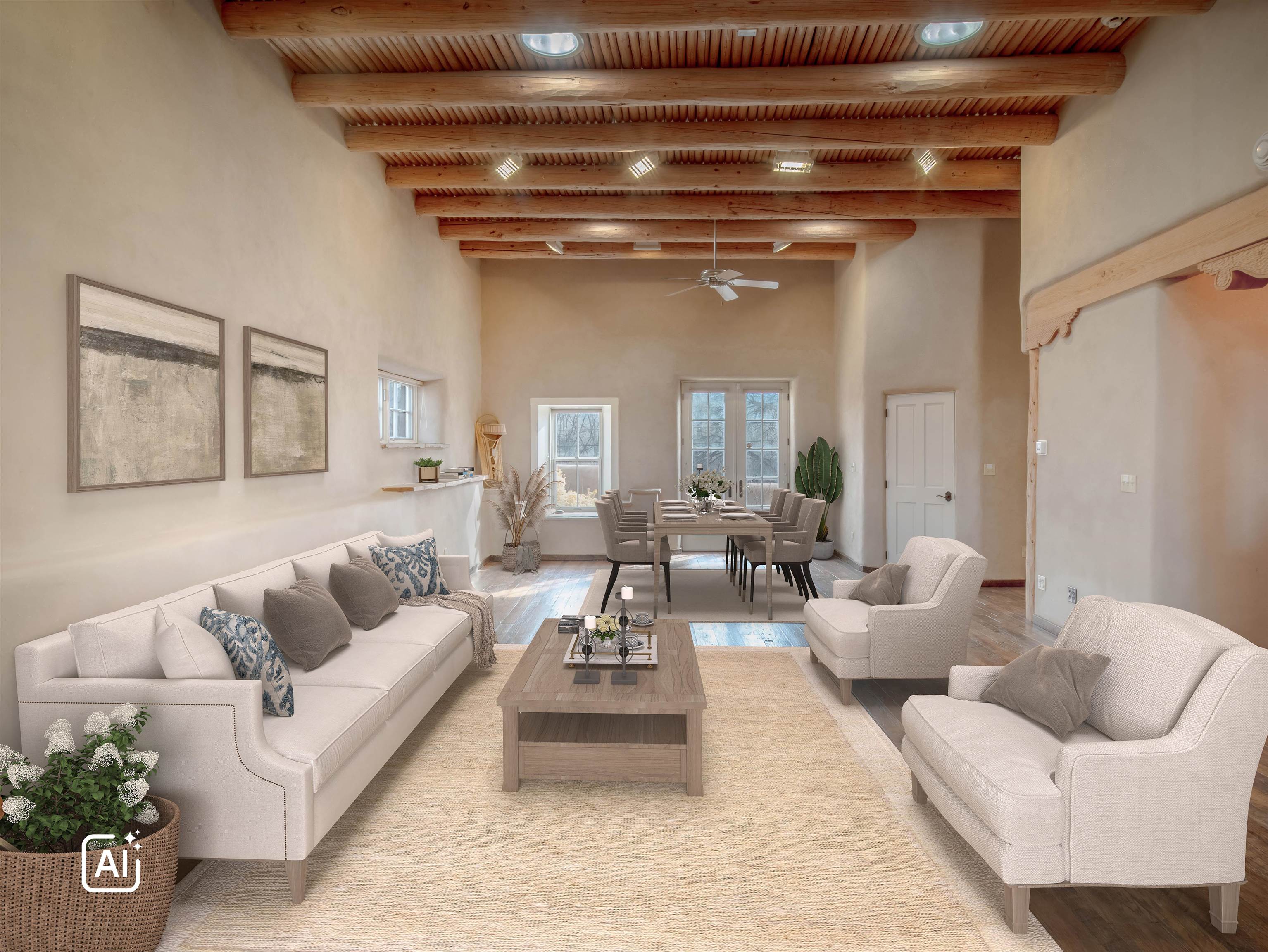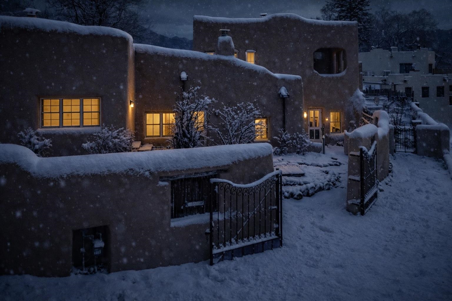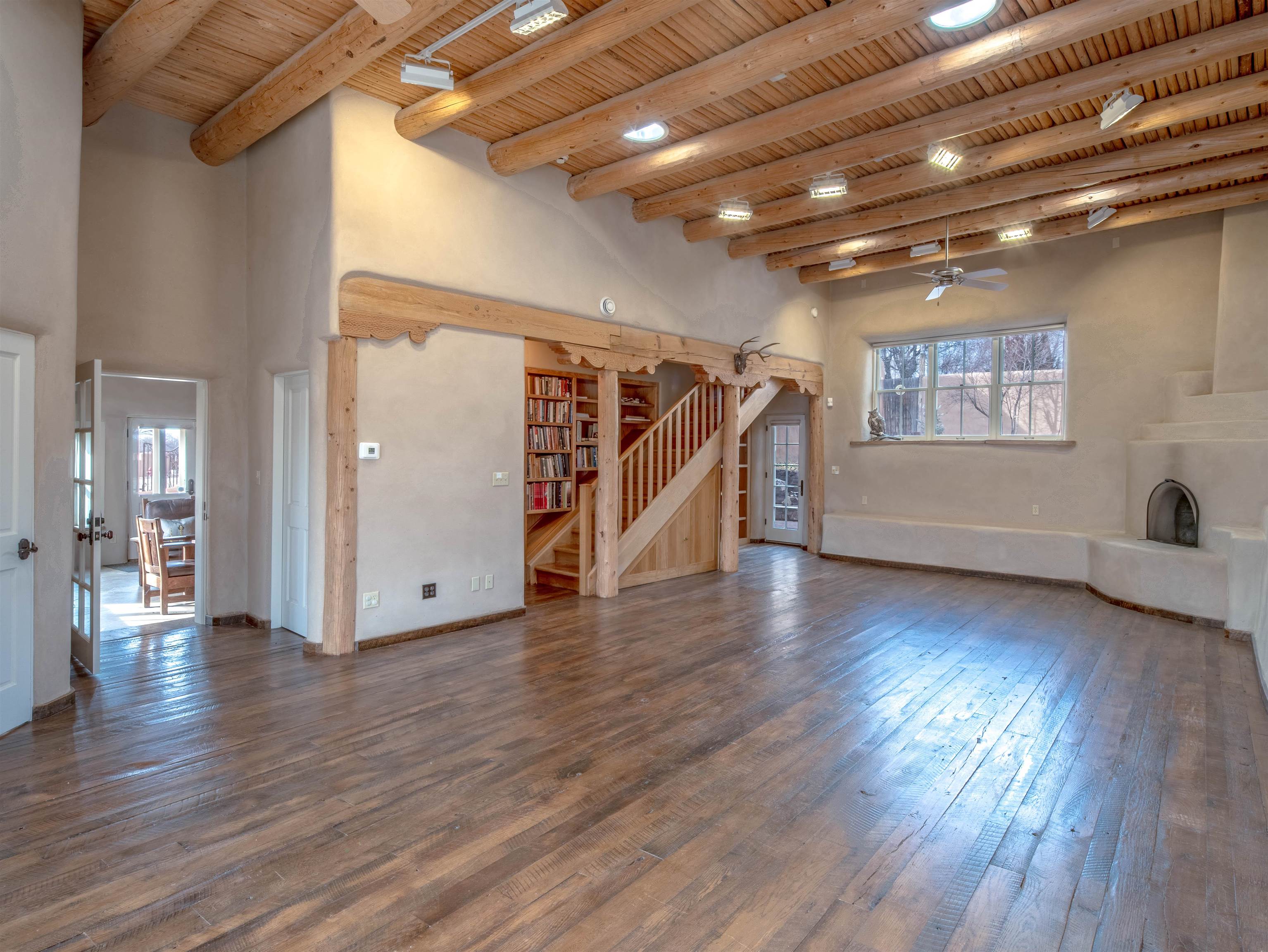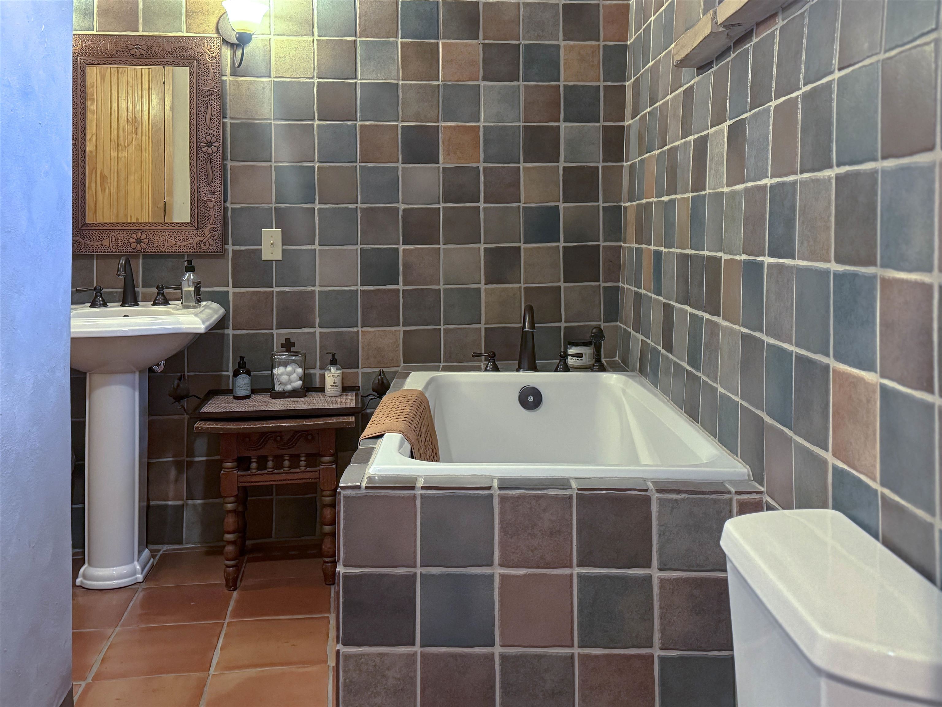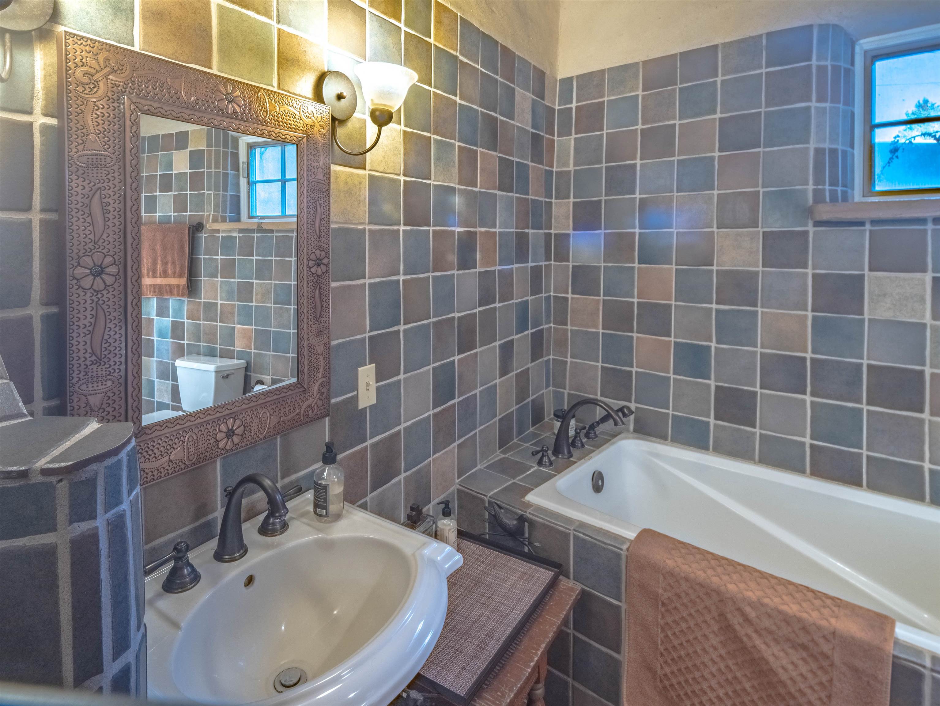 Hidden behind adobe walls in Taos’ historic district, the Ribak Estate unfolds as a rare convergence of place, art, and enduring craftsmanship. Backing up to La Loma Plaza, an enclave established in 1795 - this storied property occupies a setting where Taos’ architectural and artistic traditions remain vividly alive. Owned by the renowned Taos Modernists, Beatrice Mandelman and Louis Ribak, the home served for decades as a residence, studio, gallery, and a gathering place for influential artists whose work helped define Taos on the international stage. That legacy is still palpable today, not as a museum piece, but as a living environment shaped by creativity, conversation, and thoughtful stewardship over generations. Recognized by the State of New Mexico as a significant example of Pueblo Revival architecture and documented on the 1929 town survey, the home reflects the hallmarks of authentic adobe construction: substantial walls, sculpted mud plaster, hand-carved corbels, vigas and latillas, nichos, and four traditional Southwestern fireplaces. In 2006, the residence was comprehensively rebuilt from the ground up, preserving historic integrity while integrating modern systems including radiant floor heating, updated electrical, double-pane windows and doors, and energy-efficient infrastructure. The approximately 3,280-square-foot interior is arranged with uncommon flexibility. The main residence offers two bedrooms and two bathrooms, while a fully independent one-bedroom apartment - seamlessly integrated under the same roof - provides options for guests, extended family, rental income, or creative use. The spaces flow naturally rather than formally, with rooms unfolding in a way that feels organic, collected, and deeply personal. At the center of the home, a welcoming parlor and dining area anchors daily life, illuminated by deep-set windows and enriched by museum-quality antique lighting from the seller’s collection. The adjoining kitchen balances charm and practicality, featuring a Viking range, hand-painted cabinetry, generous storage, and historic painted beams attributed to early Taos artist and historian Blanche Chloe Grant. One of the home’s most compelling spaces is the expansive living room, historically used as an art school and long known as a gathering place for visiting artists and thinkers. Upstairs, the primary suite offers a peaceful retreat with built-in cabinetry, a sitting area, an oversized bath, and French doors opening to both a covered front balcony and a rear Juliet balcony - each offering a different sense of light, sky, and perspective. The separate apartment enjoys its own living area, kitchen, fireplace, and direct access to a private, stone-terraced courtyard - ideal for quiet mornings, creative pursuits, or hosting guests with privacy. Throughout the property, materials have been carefully curated: reclaimed wood, flagstone, Saltillo tile, antique mirrors, and historic lighting create a layered, authentic atmosphere impossible to replicate. Modern sustainability features include roof-fed cisterns, solar hot-water panels with natural-gas backup, photovoltaic panels supplying select electrical outlets, an air-exchange system, Hunter Douglas blinds, and recent mechanical upgrades including a new Polaris boiler and thermostats (2024). Outdoors, the fully enclosed compound offers custom iron gates, mature Spruce and fruit trees, landscaped rockwork, multiple off-street parking spaces, rear alley access, and forthcoming Ranchitos Road sidewalk improvements. This is not simply a historic home - it is a place shaped by ideas and artistry. A rare opportunity to live within one of Taos’ most meaningful residential legacies, thoughtfully preserved for the next chapter. Call us today for a copy of the property’s extensive history, and the numerous improvements made, and then schedule a showing. You do not want to miss this one! This listing has exterior and interior videos for your viewing pleasure.
