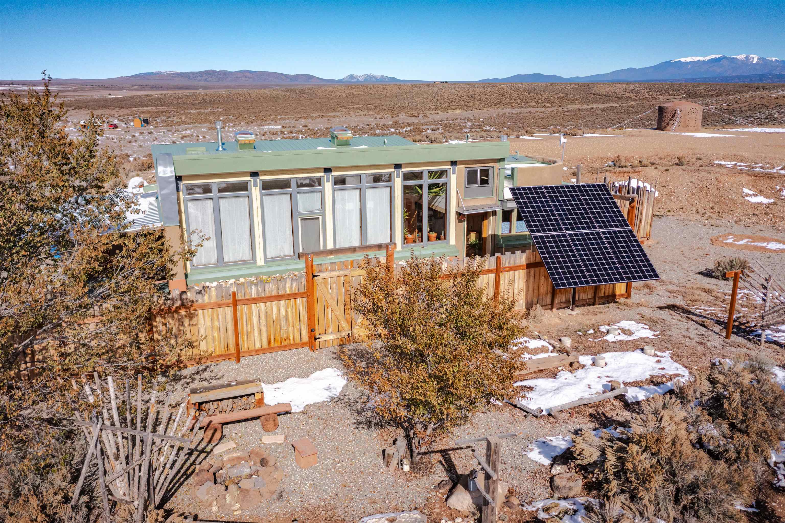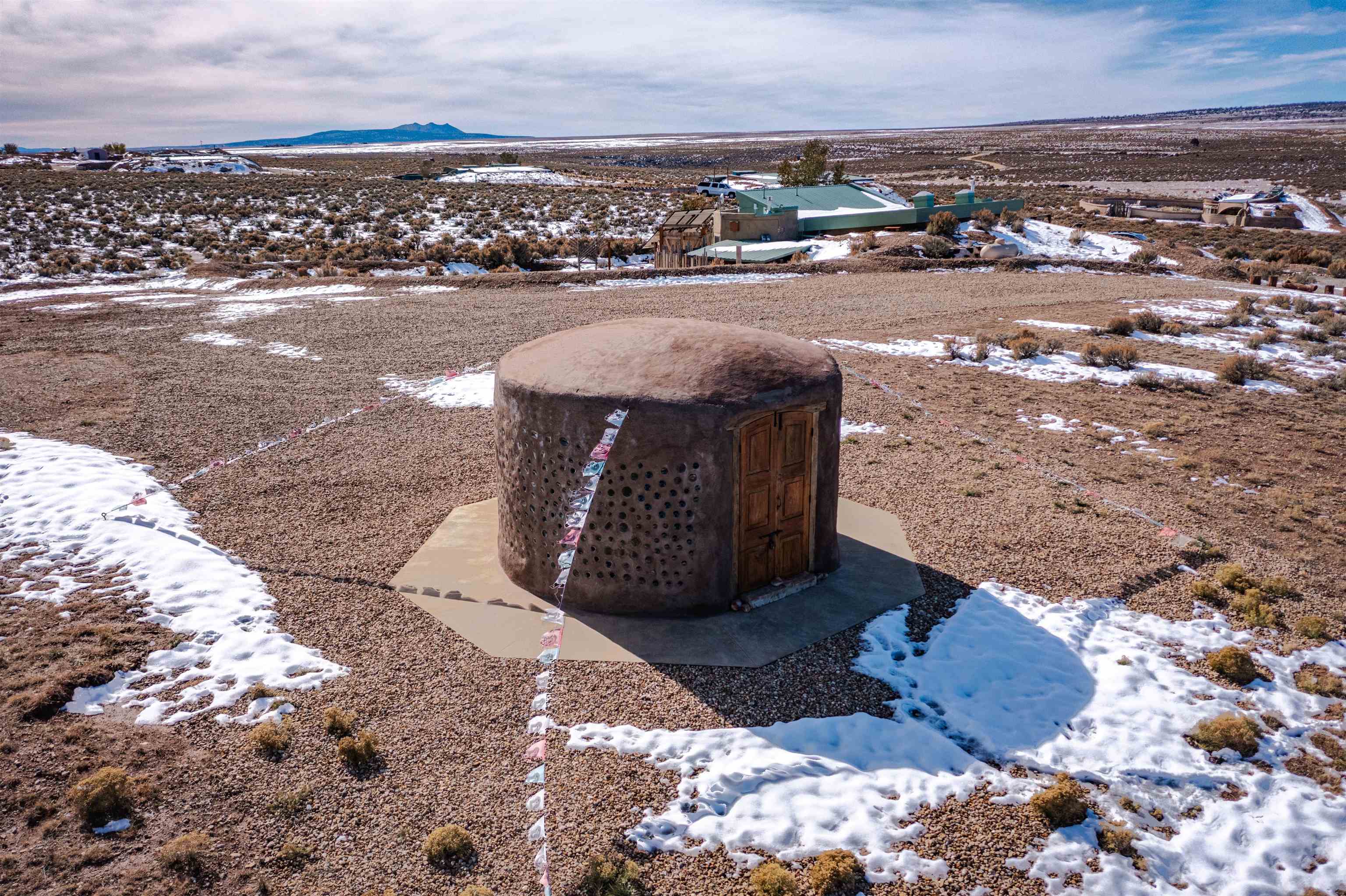 Gorgeous, upscale home with courtyard, neat patio, and natural landscaping. Solar Panels & high end, efficient energy system. Along with this beautiful home and 2.41 acres come 10 additional acres next door. This 10 Acres is OUT of the Greater World community, is under county zoning, and has very few restrictions. A meditation dome is conveniently located on this 10 acres. The dome is a spiritual touch perfect for any type of meditation, yoga or just hanging out. Great location and easy access, just 20 minutes from downtown Taos, and 30 minutes to Taos Ski Valley. The 360 degree views are amazing! Exceptional investment opportunity as these units will rent up to 200 - 250 days per year or MORE! Live well and be kind to the environment! Off-Grid living at its best! One of the finest Earthship Homes in the Greater World Community!