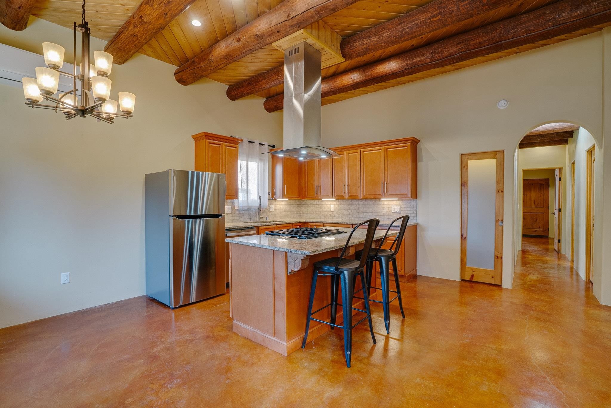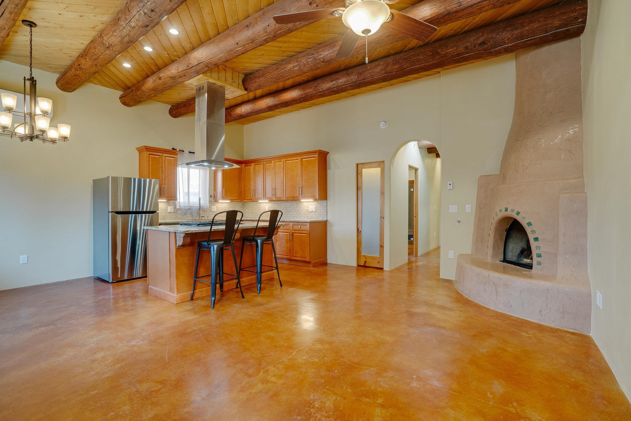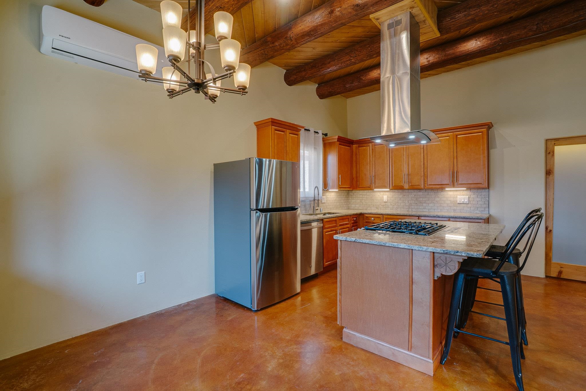 Discover modern comfort and quality craftsmanship in this beautifully appointed 2 bedroom/2 bath condo, built in 2022. Step inside to an inviting open floor plan grounded by stained concrete floors that add a contemporary style and low-maintenance durability. The warm color of the floor matches the warmth of the cozy gas fireplace-perfect and easy for relaxing in this quiet environment. The home is equipped with two efficient mini-split systems to meet your perfect comfort levels of heating/cooling: one in the living room and another in the primary suite. The primary has a walk-in closet, en-suite full bath and a door leading to a fenced and private outside area (perfect for a hot tub and a pet). Another bedroom and another full bath create space and privacy for owner and guests. There is also in-unit laundry, the HOA is reasonable, and the setting tranquil and quiet (with only one shared wall). Reach out today for showing!