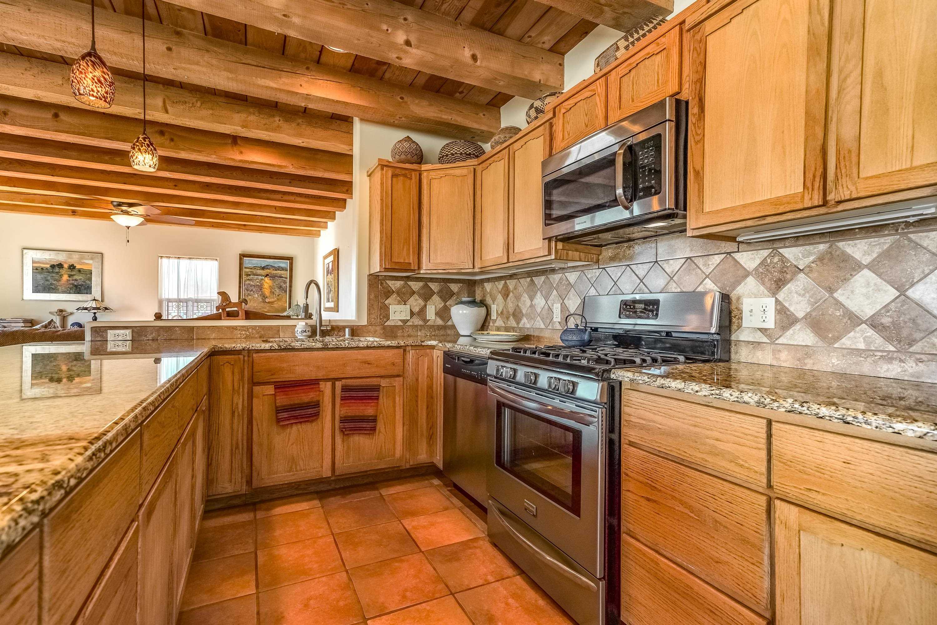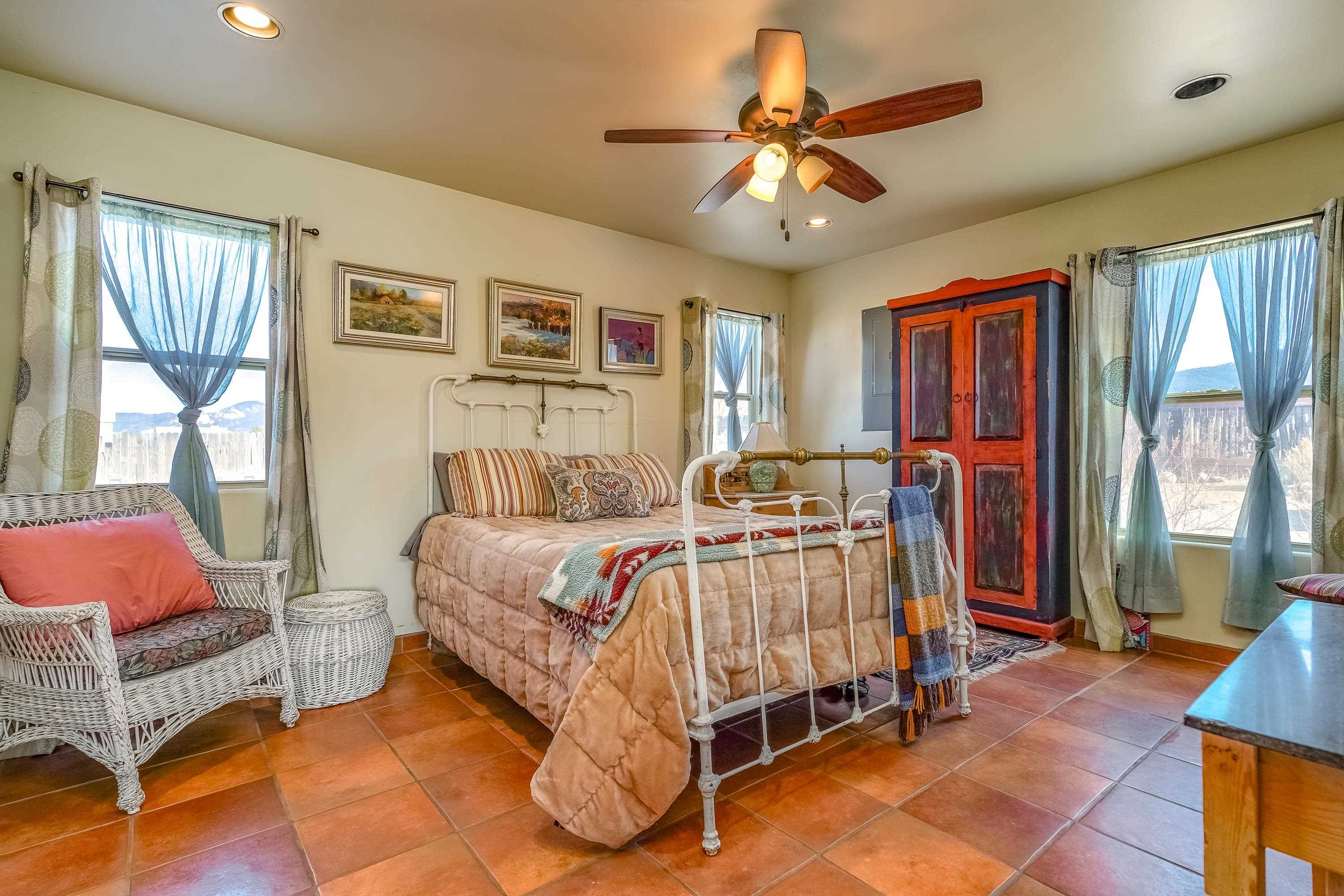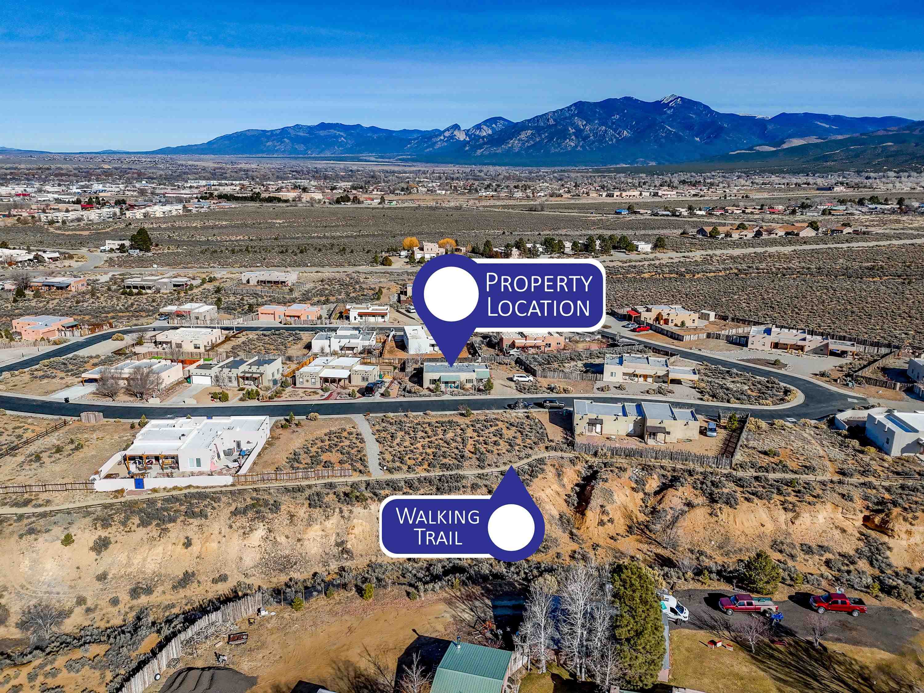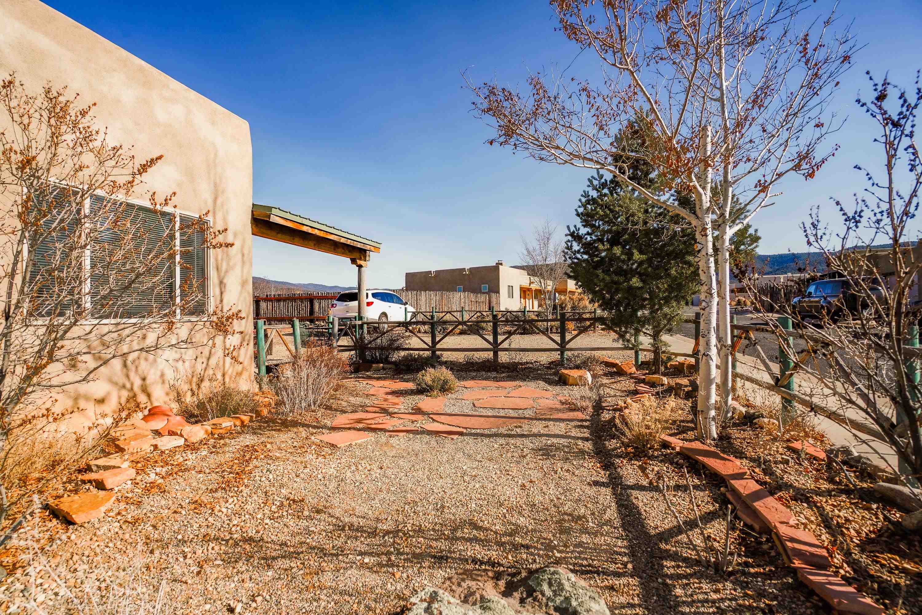 This beautiful 2 bed 2 bath plus studio home is sure to delight. Enjoy an open and spacious living area filled with natural light from abundant windows offering lovely views. The upscale kitchen is thoughtfully designed and features granite countertops plus stainless-steel appliances. Relax on the covered porch taking in great mountain views and unforgettable sunsets. The thoughtfully designed split-bedroom layout offers privacy and the primary suite and has a large walk-in closet. There is a charming artist’s studio or office attached which has its own entrance ideal for a quiet workspace. A truly special home combining comfort, creativity, and convenience. Work from home worry free with High-Speed WiFi available. Conveniently located near the hospital in the Las Olas Subdivision, offering established covenants and close access to walking trail. Just minutes to Taos Plaza with shopping and dining. Take advantage of Taos Air’s direct flights to Dallas and Austin, enhancing effortless travel.