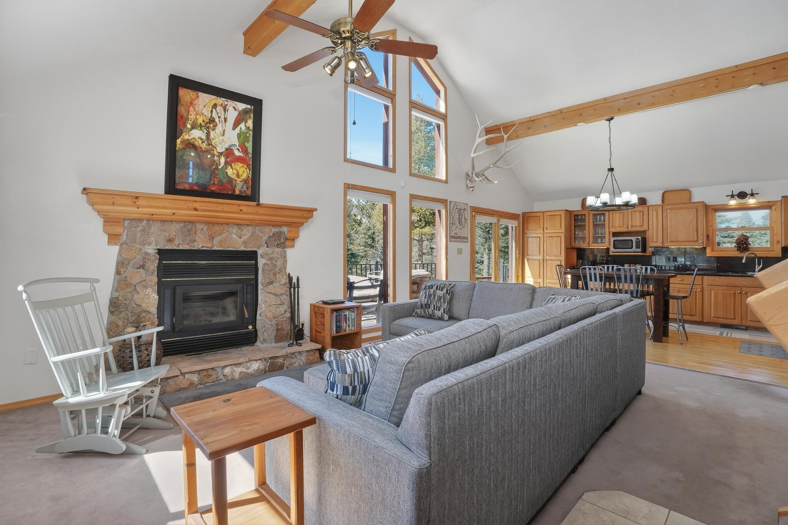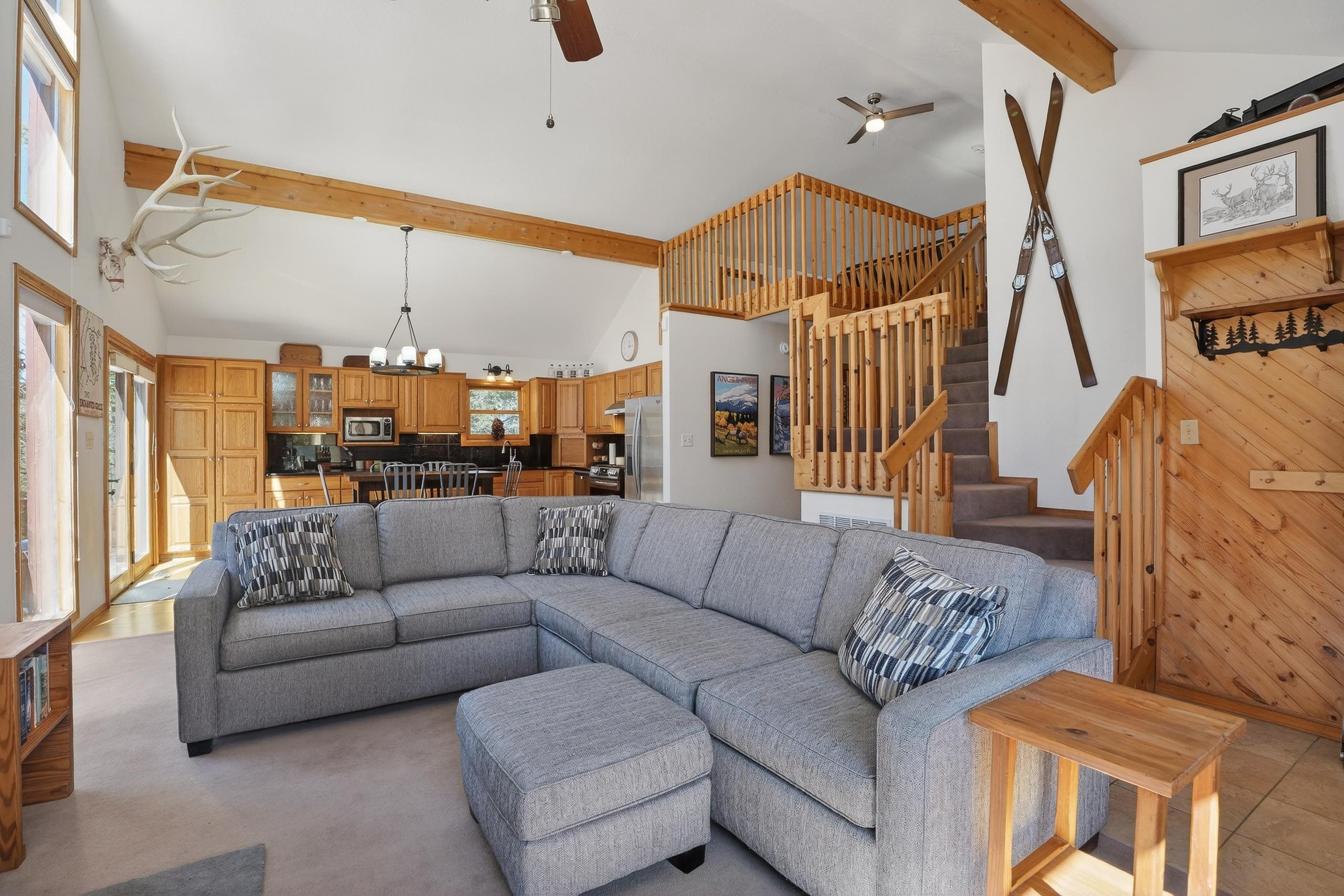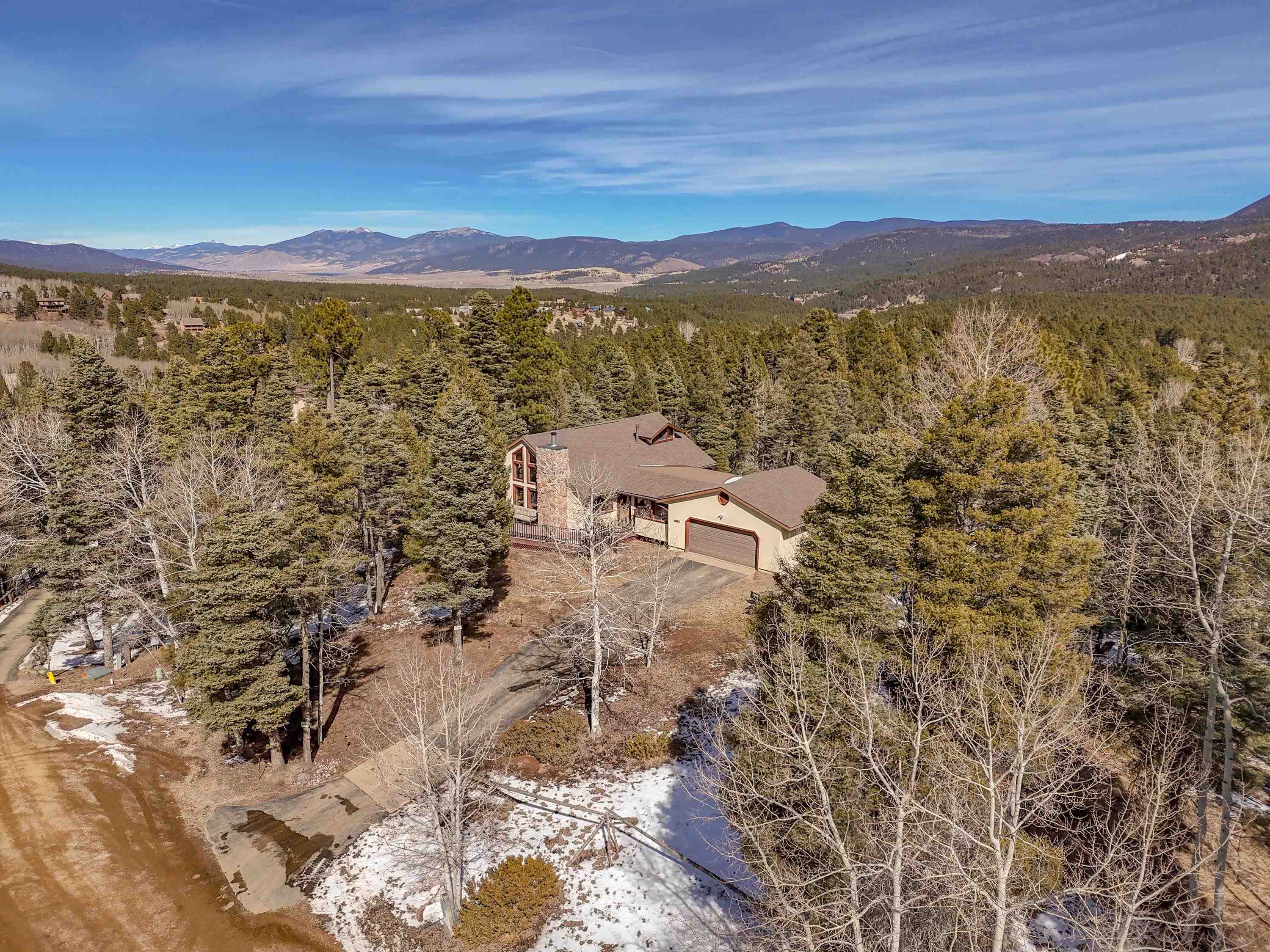 If you’ve been waiting for the one — this is it. Perfectly located, beautifully maintained, and sold fully furnished, this mountain retreat truly checks all the boxes. 3 bedrooms, 2 full bathrooms, a spacious loft, and a large gear room, there’s room for everyone and everything. The open-concept living area is filled with natural light from a stunning window wall and anchored by a cozy wood-burning fireplace — the ideal setting after a day on the slopes or the trails. The well-appointed kitchen flows seamlessly into the dining and living spaces and opens to a generous deck, perfect for grilling, entertaining, and soaking in cool mountain evenings. The primary suite features a private ensuite bath with a walk-in shower. Two comfortable guest bedrooms share a full hall bath and a conveniently located laundry closet. Upstairs, the loft provides flexible bonus space for additional sleeping, a second living area, office, or game room — complete with views of the ski area. Outside, multiple outdoor living spaces invite gatherings with friends and family. A two-car attached garage and dedicated gear room make mountain living easy and organized. Just minutes from Monte Verde Lake and a short drive to the slopes, golf course, and amenities of Angel Fire Resort, this location offers both convenience and tranquility. Lovingly cared for by only two owners, this home showcases true pride of ownership with extensive updates including a new roof, new decking, water filtration system, tankless water heater, generator, and more. Turn-key. Updated. Furnished. Ideal location. This is mountain living done right.
