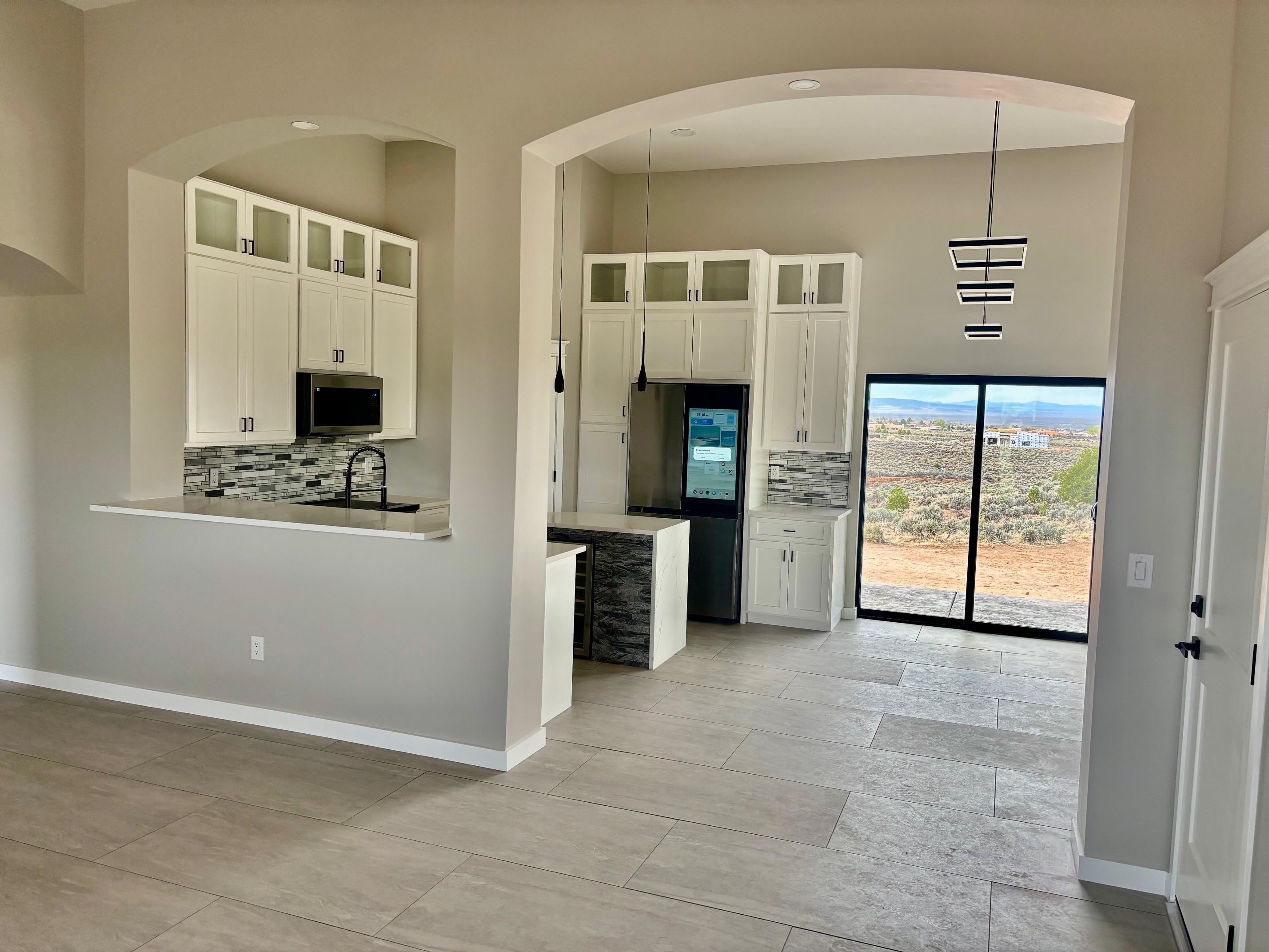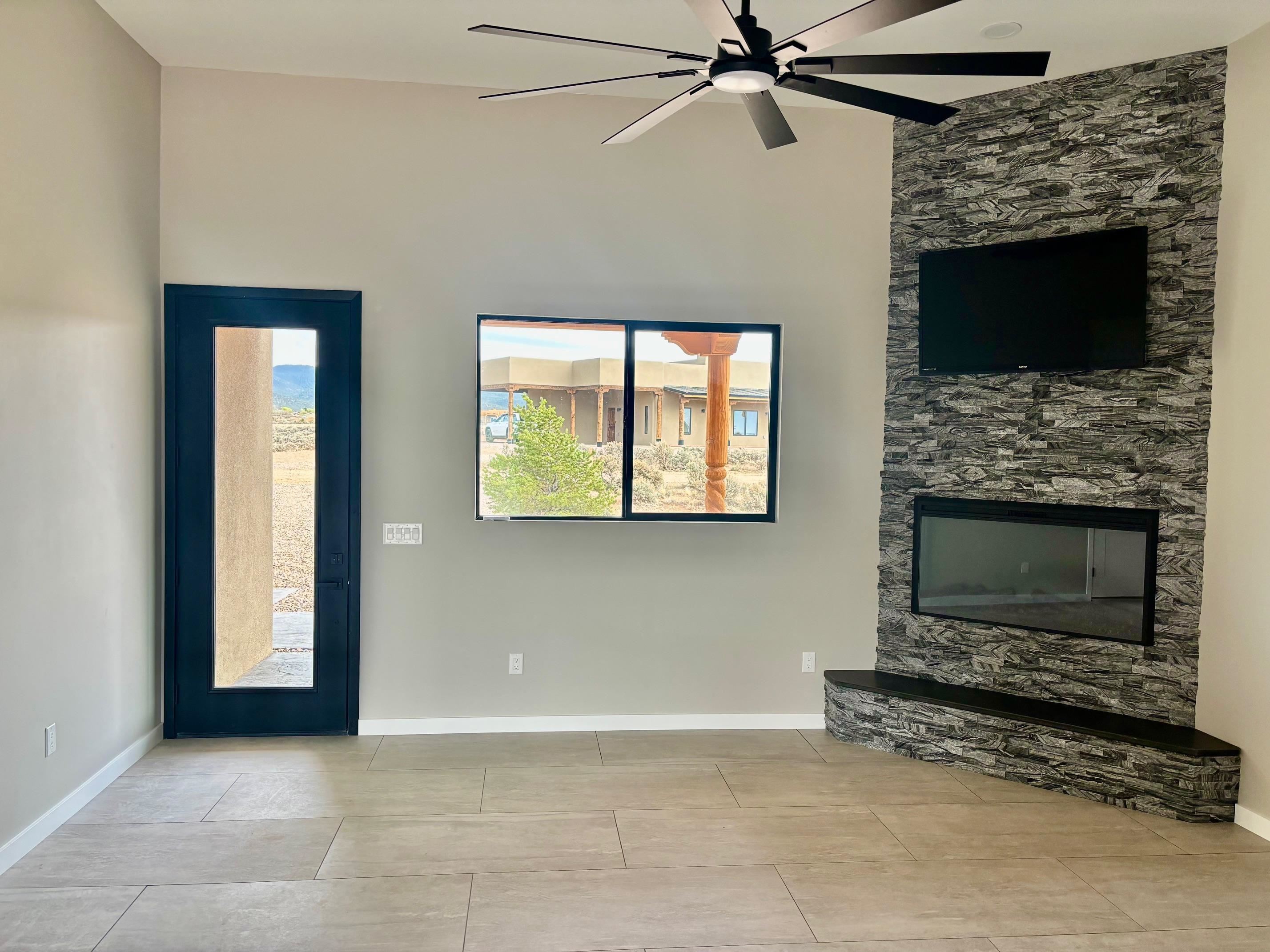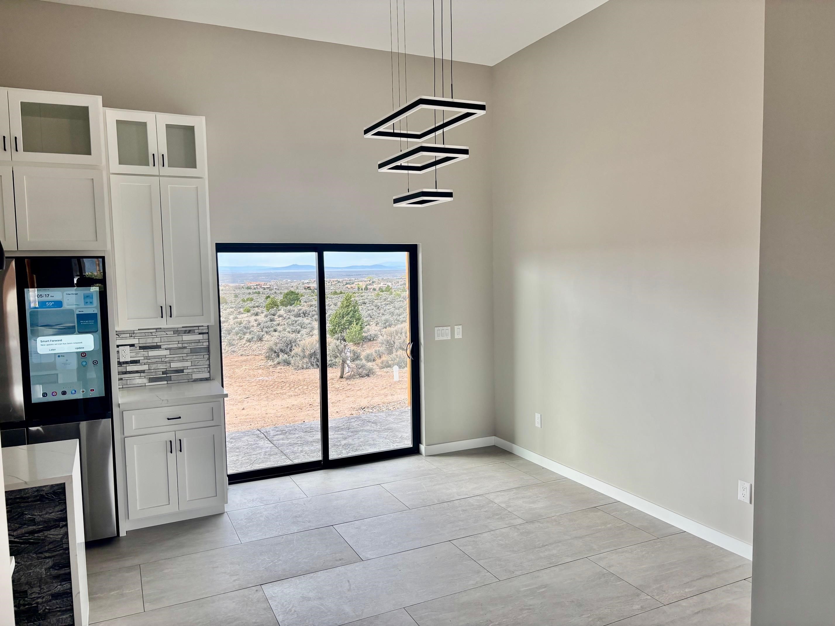 NEW CUSTOM CONSTRUCTION READY FOR OCCUPANCY. Featuring two bedrooms and two bathrooms nicely spread out over 1238 square feet. Has quartz tops, tile, and stainless-steel appliances along with a gas fireplace. The entire house has in slab, radiant heating, including the garage. Has a navien tankless water heater. Has a state-of-the-art TPO roof. The garage is considerably oversized. Prewired for a hot tub in the backyard. Fiber optics is already in the house. Closets have rods, shelves, and drawers. Television is already mounted above gas fireplace. Has amazing views of Taos Mountain along with the most amazing sunsets. This house has many remarkable upgrades.!!!