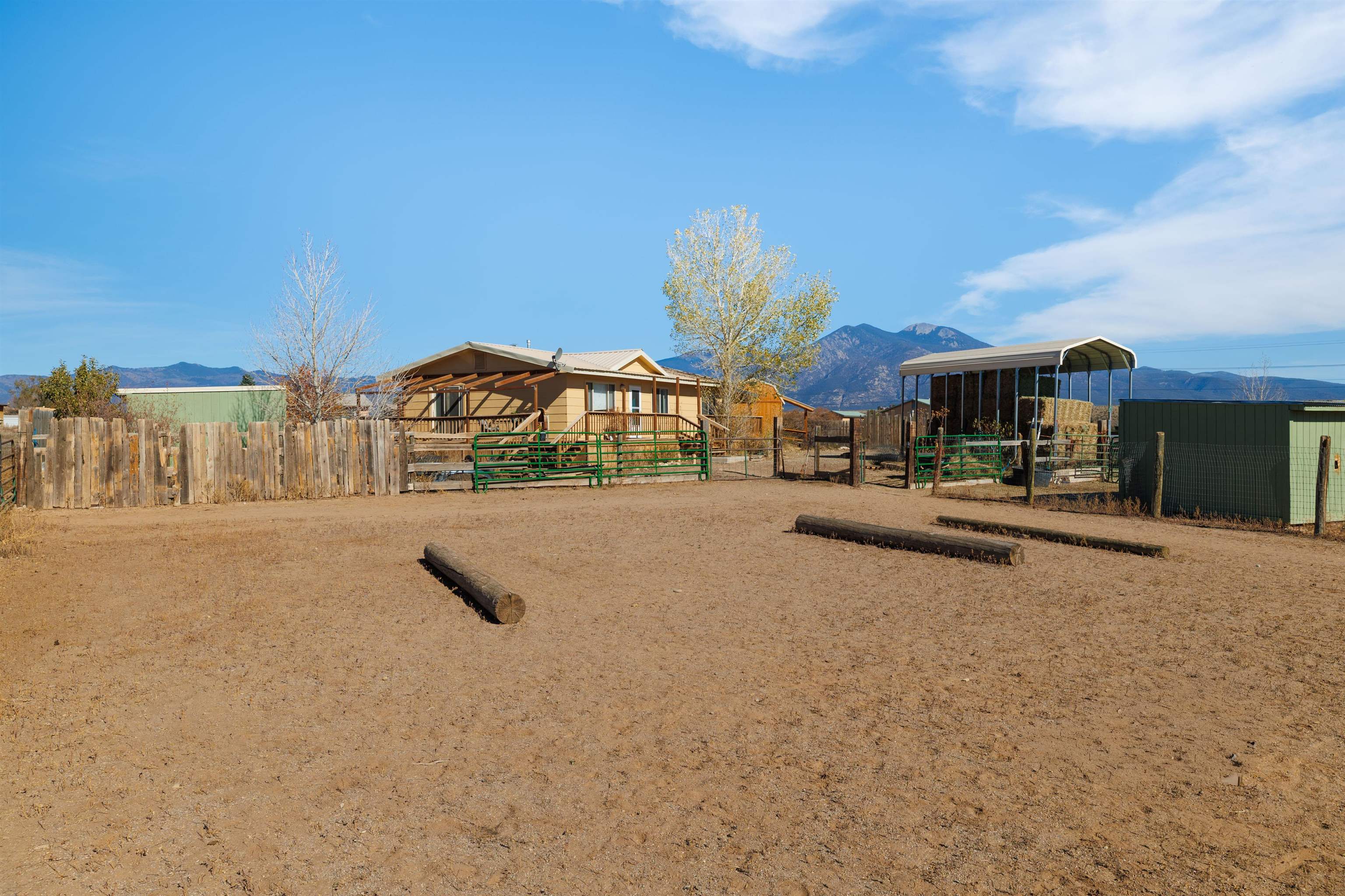 A Versatile Northern New Mexico Ranchette on 3.79 Acres Discover space, privacy, and boundless potential in this 3 bed / 2 bath home set on three separately deeded lots totaling 3.79 acres. With wide-open views, generous outdoor living, and a layout that adapts easily to your lifestyle, this property is ready for horses, hobbies, or your next creative venture. A welcoming home anchors the land, featuring a bright, comfortable floor plan and a wraparound deck on two sides—perfect for morning coffee, sunset unwinding, or simply taking in the mountain light. The property includes multiple sheds and corrals, a private well, fresh interior paint and plenty of room to expand, garden, or build. Each parcel has a shed with water close to it. The large hay storage shed will convey with the property as will the separate studio shed currently being used an office/training space. There is also a tack room with electricity and an attached hay barn. Already operating as a successful dog-training and boarding business, the infrastructure is in place for continued use, or easily reimagined for horse property, home-based business, or multi-generational living. This rare offering checks all the boxes: views, acreage, flexibility, and no compromises on privacy and very few restrictions. Whether you’re seeking a functional small ranch, business opportunity, or a peaceful homestead with room to roam, this property is ready to meet you where you are.