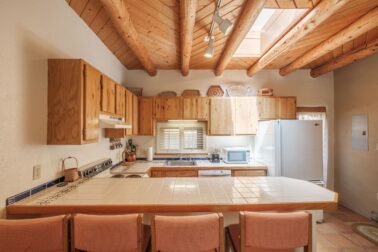 Lovely, Southwest style condo that is easy walking distance to historic Taos Plaza. La Buena Vida Condos are a comfortable, quiet complex with ample privacy behind gated walls. This unit is offered furnished and ready to move into. With two bedrooms, this condo is perfect for efficient living, weekend getaways or long term rental. Ample closets and a separate locking owners' s storage unit make for uncluttered living spaces. This condo offers modern amenities like new windows and privacy blinds but with classic pueblo style details such as tile floors and hand hewn viga ceilings. La Buena Vida offers easy access to restaurants, shopping, coffee shops and nightlife around the Plaza. A short walk to Kit Carson Park makes this the perfect location for summer festival season.