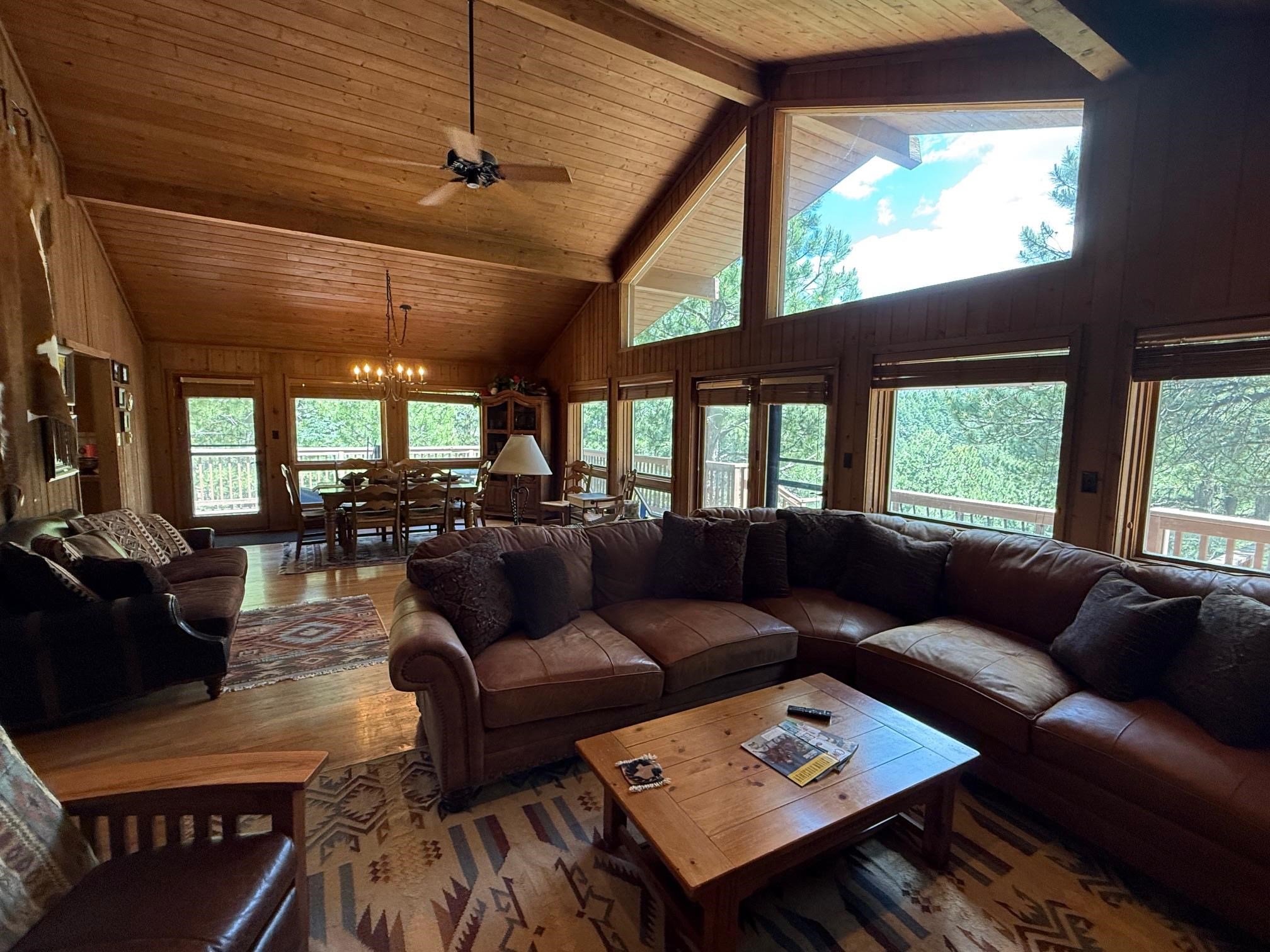 RUSTIC CHARM, SPACIOUS LIVING AREAS, MODERN UPGRADES, FIRE PIT, LOTS OF STORAGE Spacious, cozy and comfortable describes this 3 bedroom, 2 ½ bath home in Angel Fire just minutes from all the AF resort amenities. This conveniently located but feels secluded home comes with 2 large living areas and open layout with plenty of room AND storage for family and friends for a great mountain get away. Whether you use it as your personal vacation home or opt to use as a resort rental; this home conveniently sleeps 12. Main floor includes an open concept living room with a cozy wood burning fireplace and family dining area. The floor to ceiling windows overlooks the spacious outdoor living decks for soaking the rays, entertaining and outdoor grilling. Also included on the main floor is a spacious kitchen with a separate breakfast nook/coffee bar. The large master bedroom and bathroom which includes a whirlpool tub, separate shower and 2 separate sinks. The main floor also includes the half bathroom. Downstairs, with all new flooring, you’ll find 2 more bedrooms, a full bathroom, separate laundry room and spacious 2nd living area or grand-kids room that have 2 sets of bunkbeds, murphy bed, with gas fireplace. Downstairs access to a 2-car garage with storage for all those outdoor equipment and toys. Just off the back deck you will find a large rock firepit for those evening s’mores or just star-gazing nights. Two lots combined for .9 acre and 1 resort fee but best of all, this home is priced below current appraisal value! Angel Fire amenities includes PGA rated golf course, country club dining, fishing, biking, skiing and tennis/pickleball park.