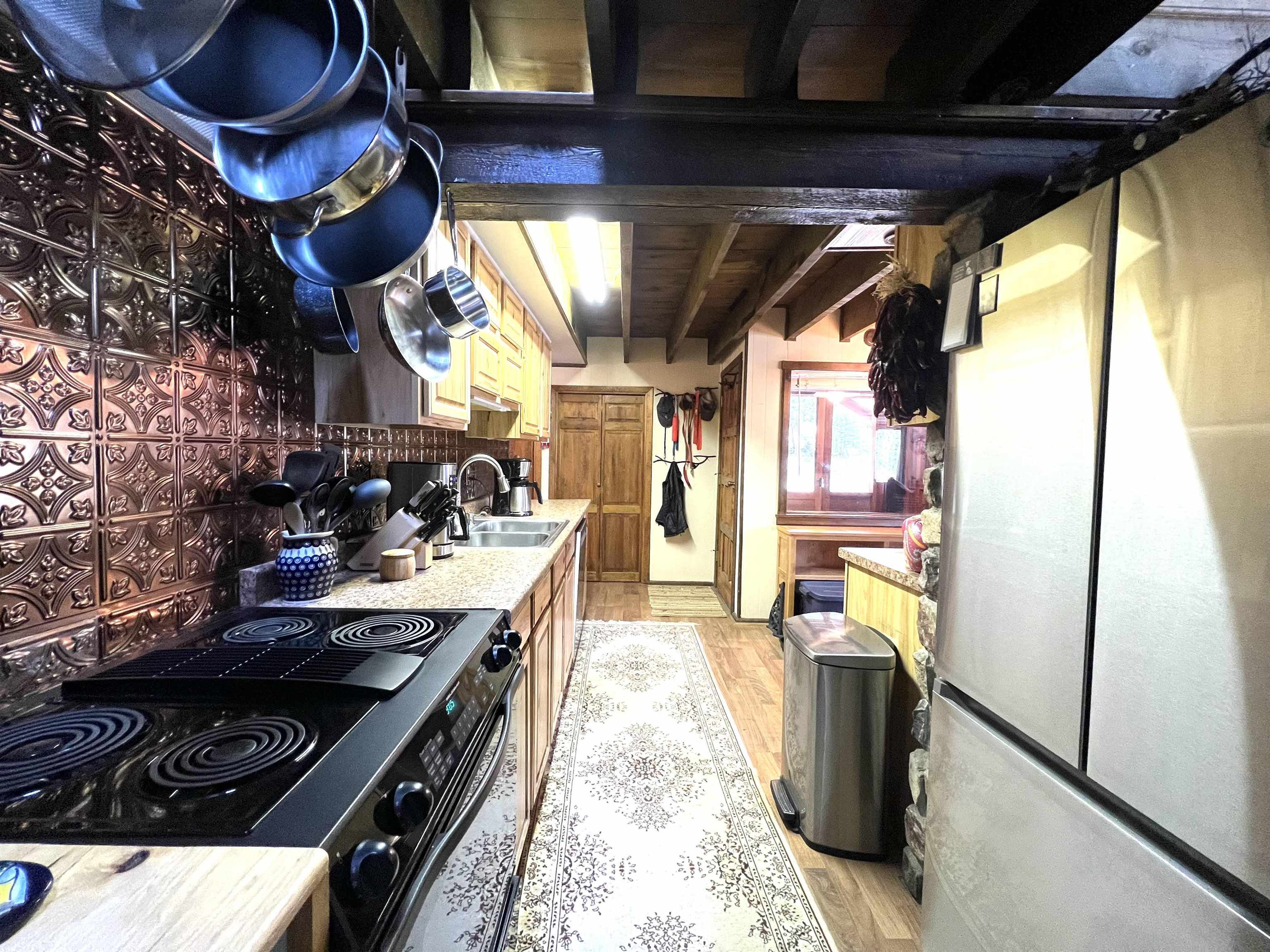 Situated in Valle Escondido at 8,500 feet above sea level, directly on the 6th green of the golf course and with views from the north-side deck direct to Wheeler Peak, this home has so much to offer any new owner. Just fourteen miles west to Taos Plaza and thirteen miles east to Angel Fire, Valle Escondido provides plenty of optionality, particularly given that the community offers a laid-back vibe, a really good nine-hole walking golf course, casual club house, and immediate access out into USFS lands for great mountain biking, hiking, and pure natural bliss, not to mention Aspen and Arrow Head lakes which are stocked annually for fishing delight. The home itself is centered around an amazing and sizable stone wood-burning fireplace and hearth that acts as the center of the house. The open-plan living and dining area lends itself well to family enjoyment with access out onto a north and east-side deck where you can watch the hummingbirds and view the elk that roam this area amid groves of aspen tress. The primary suite is located on the ground floor (where there are two full bathrooms) while the remaining bedrooms are located on the home’s second floor. The pitched pro-panel roof architecturally lends itself to all kinds of interesting cubbies and storage areas that you kind of have to see to understand including a lovely small cove area in the very top that the kids can hang out in. When you are in the house it is not hard to see the custom nature of its construction from the large structural beams, to the solid wood doors, to the home's fixtures, skylights, and large double-paned windows that let in plenty of light and warmth. There is a fully fenced-in area for those with dogs and the property itself conveys at almost one full acre on two distinct parcels (Lots #35 and #36) The property benefits from Kit Carson fiber internet, community water. Valle Escondido is a FireWise community and the HOA fees include general area maintenance of roads etc., community water, as well as access to and use of golf course, clubhouse, and swimming pool. For an additional $100 per year, owners can have friends accompany them to use the club facilities. If intrigued, please have a look!