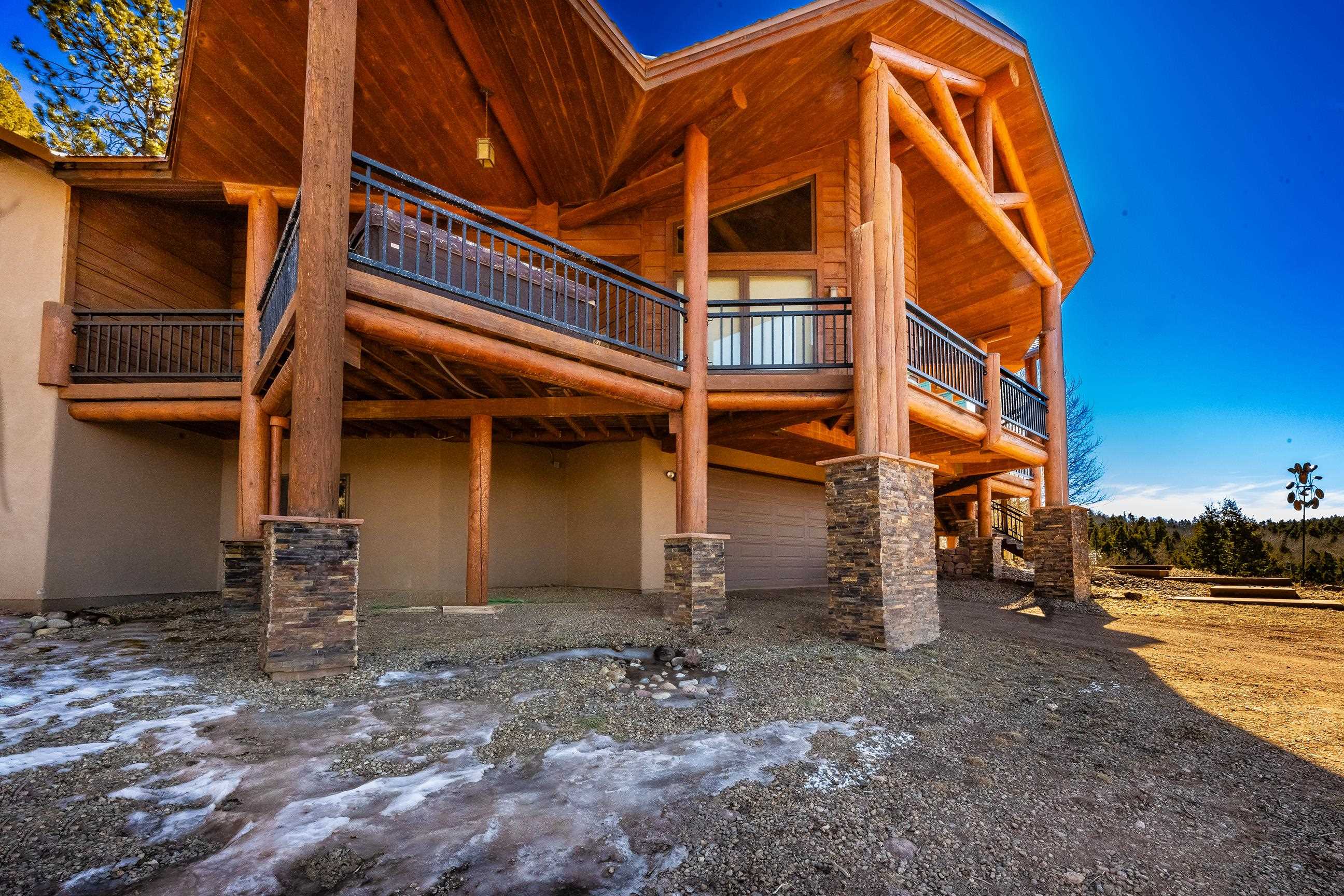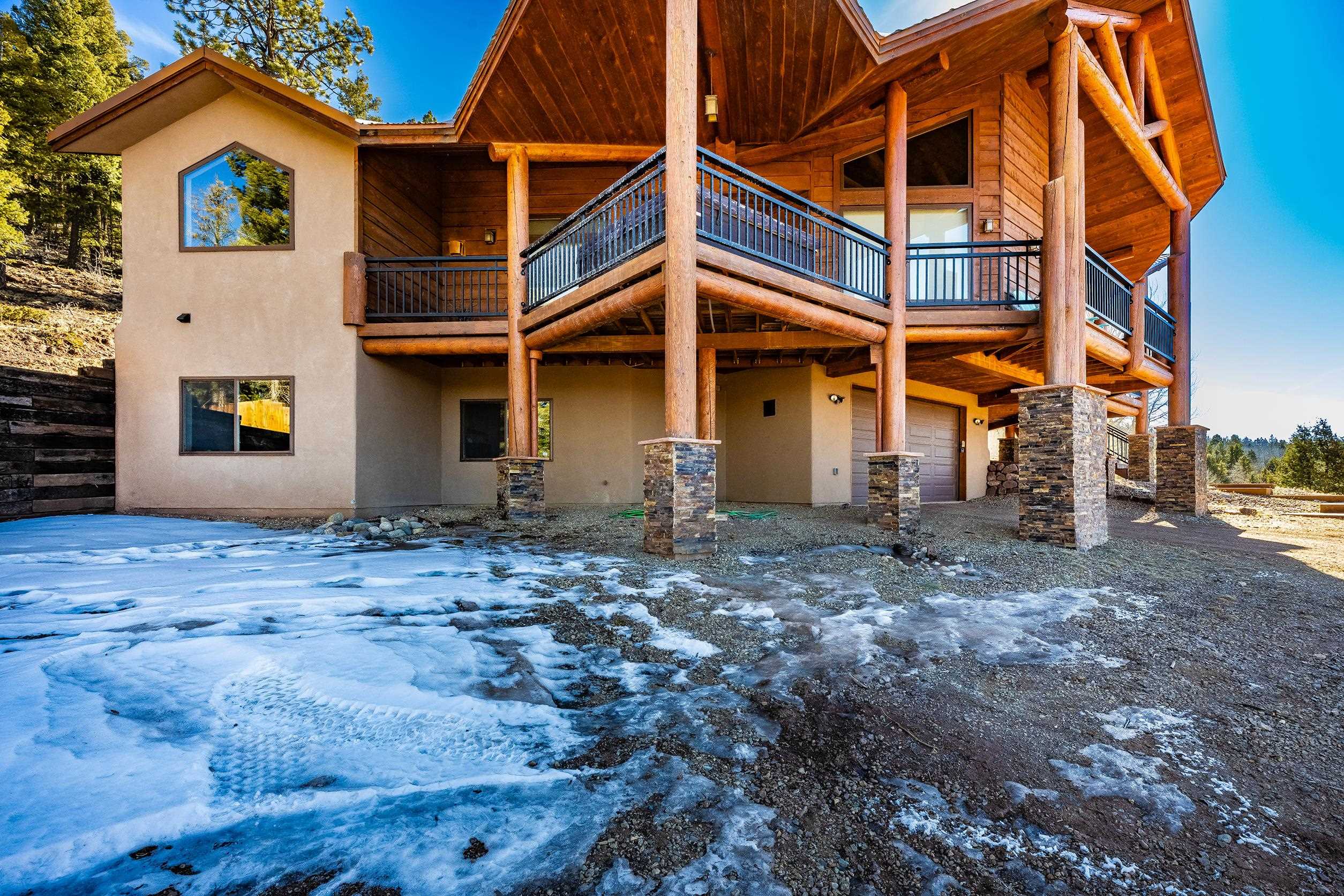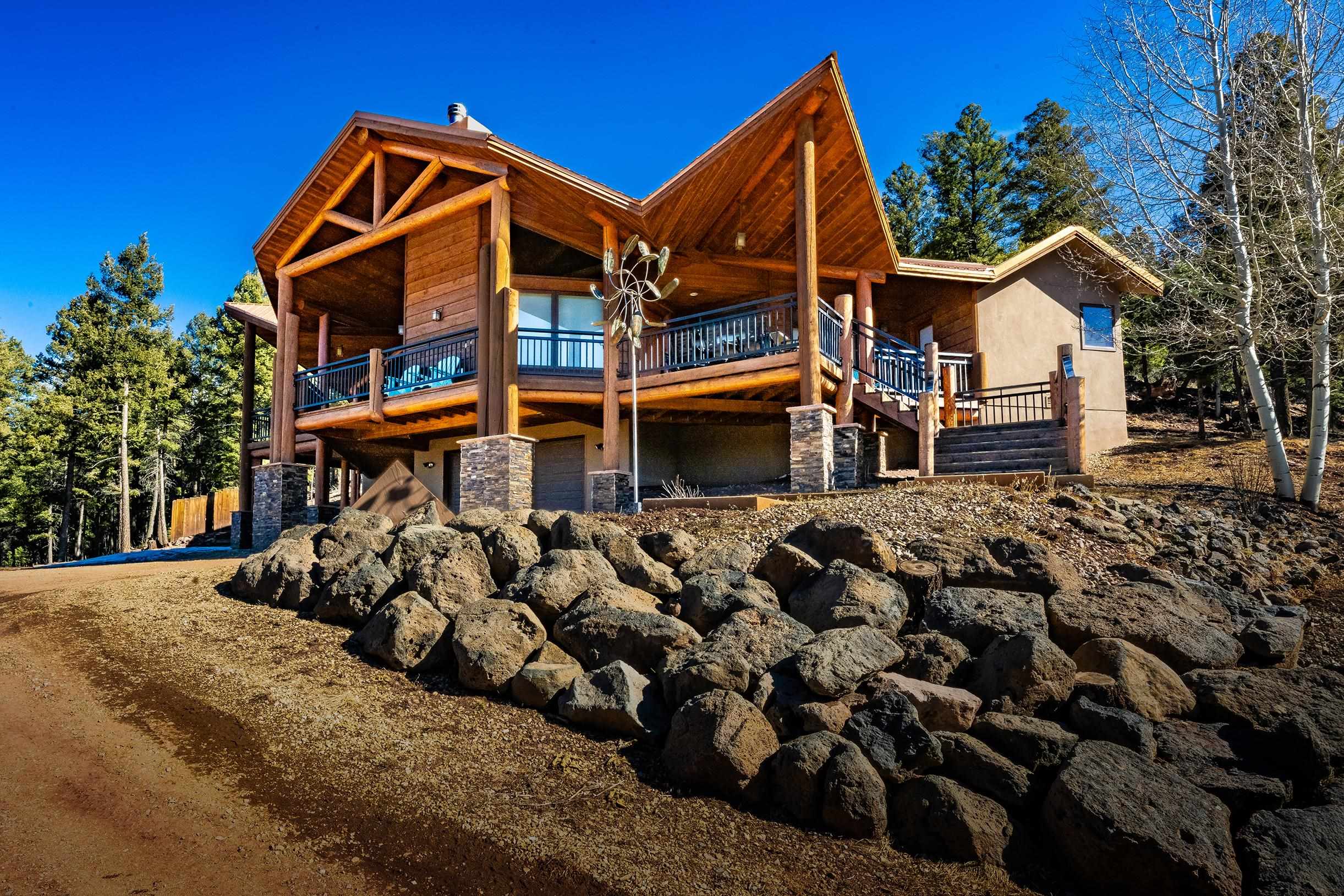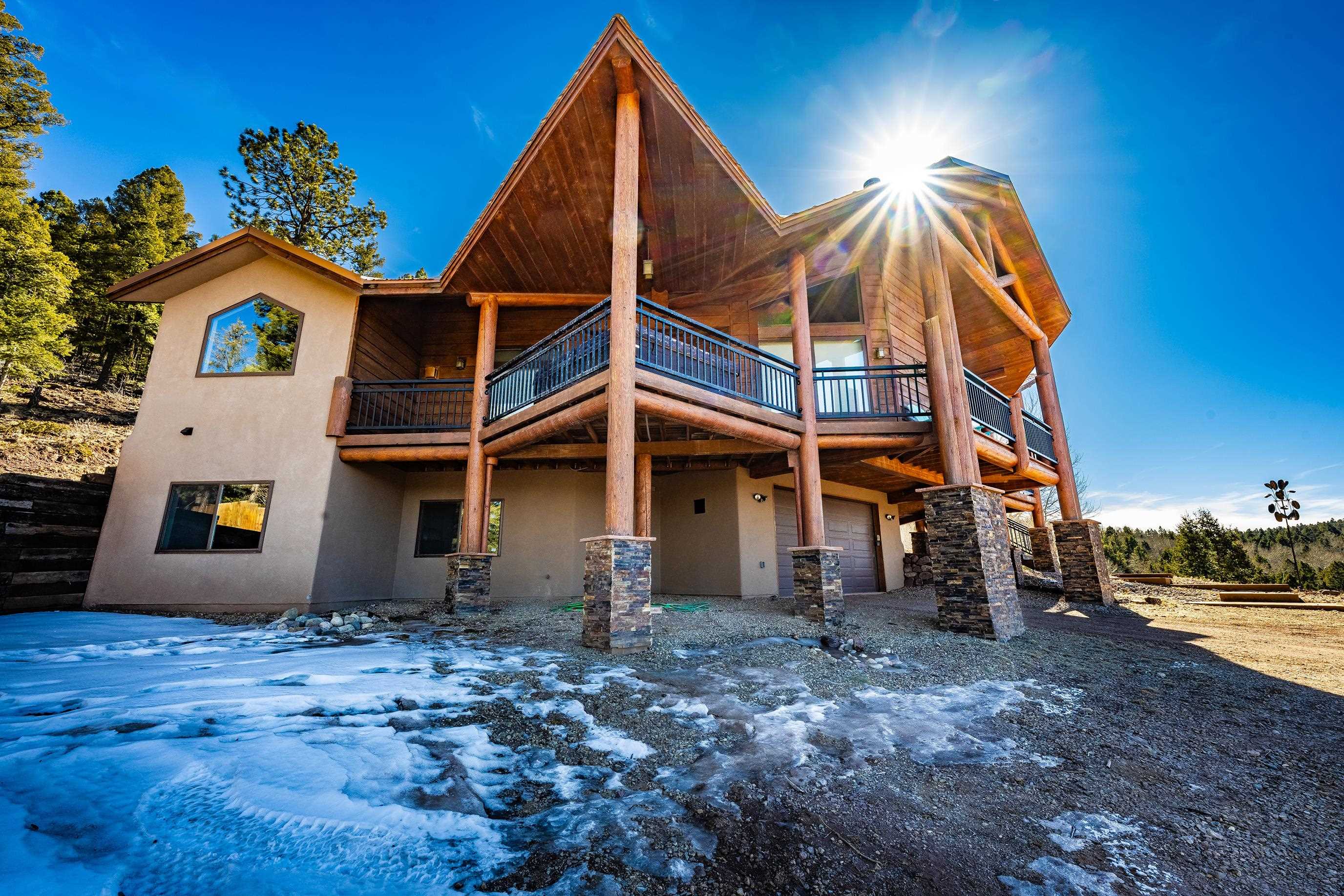 Come discover this hidden gem overlooking the mountains! Custom built in 2010, 233 El Camino Real is a one-of-a-kind mountain chalet featuring many luxurious amenities including a large wrap-around covered porch with a hot tub, a massive solid wooden entry way with turquoise inlays, custom granite countertops, and vaulted wood ceilings. The beautiful grand room welcomes you in with custom log trusses and hickory floors and opens up to include a spacious dining area, and flowing kitchen so you can spend maximum time with your guests and family. This 3 bedroom, 2.5 bathroom upscale mountain retreat is laid out with the master bedroom on the main level with an ensuite bathroom including a jetted tub, tiled shower, and custom travertine tile and solid granite surfaces. With large windows and stunning Wheeler Peak views from each room, you truly feel the spirit of the mountains surrounding you. The lower level consists of a sitting room, two guest bedrooms, and a full bathroom providing your guests privacy and comfort during their stay. This home was designed and constructed with energy efficiency in mind. With LEED Certification and Structural Insulated Panel (SIP) walls, this home has superior insulation and structural integrity while simultaneously focusing on energy efficiency, water savings, and indoor environmental quality. This is a beautiful and unique property sitting on 2.3 acres, backing up to a greenbelt that leads to the ski area, and just minutes away from all other amenities and activities Angel Fire Resort has to offer. Call us today to schedule a showing and start envisioning the wonderful memories to be made!