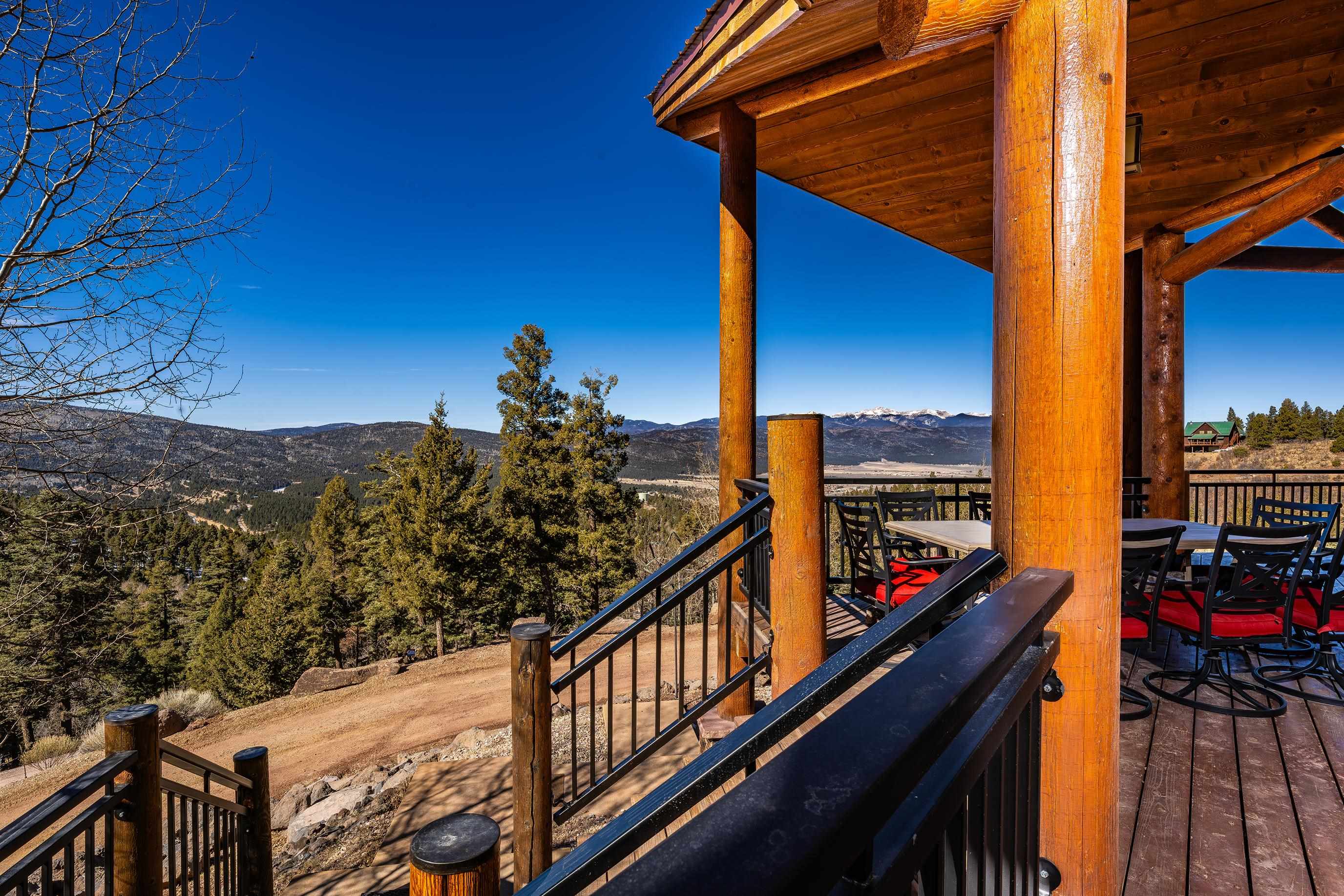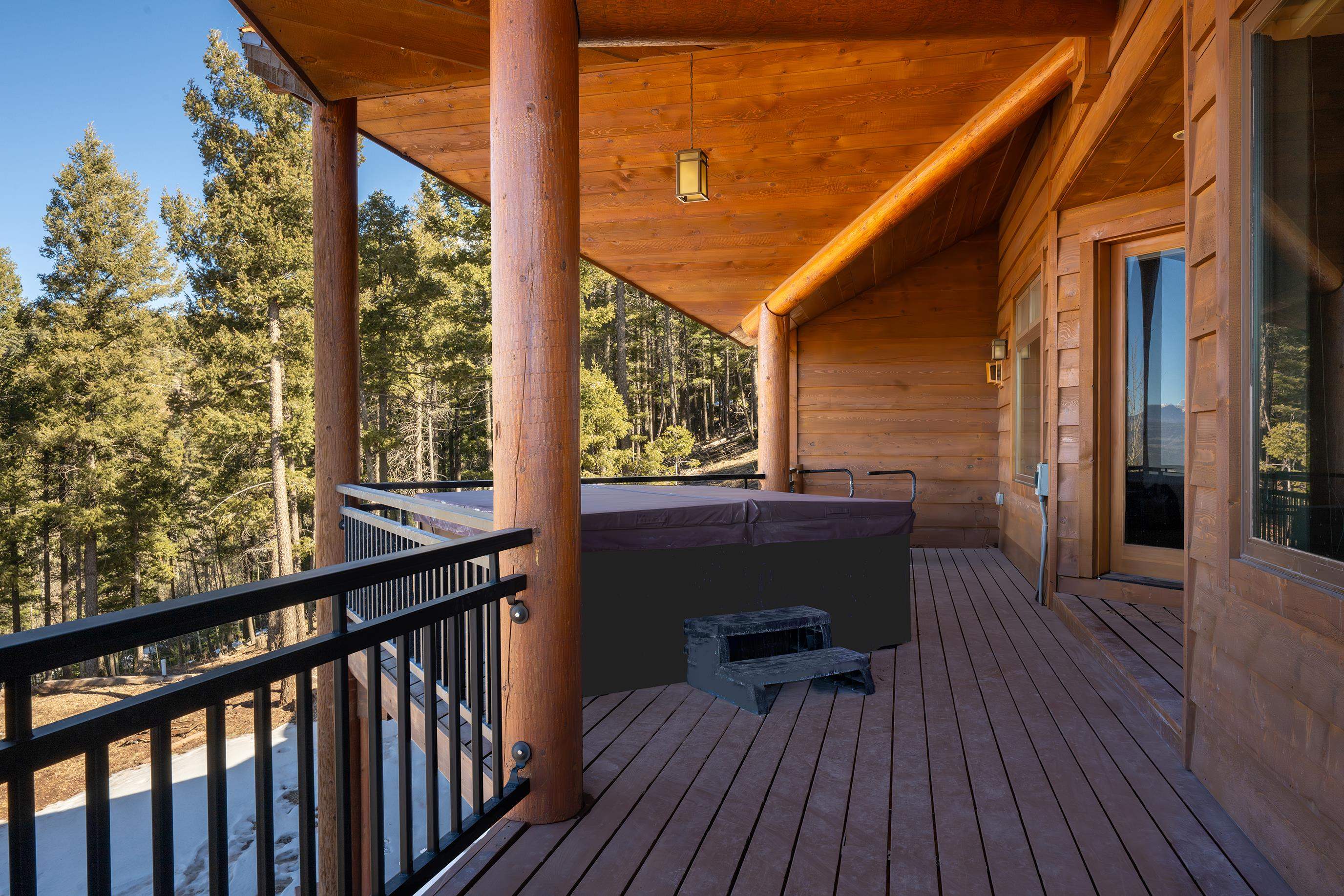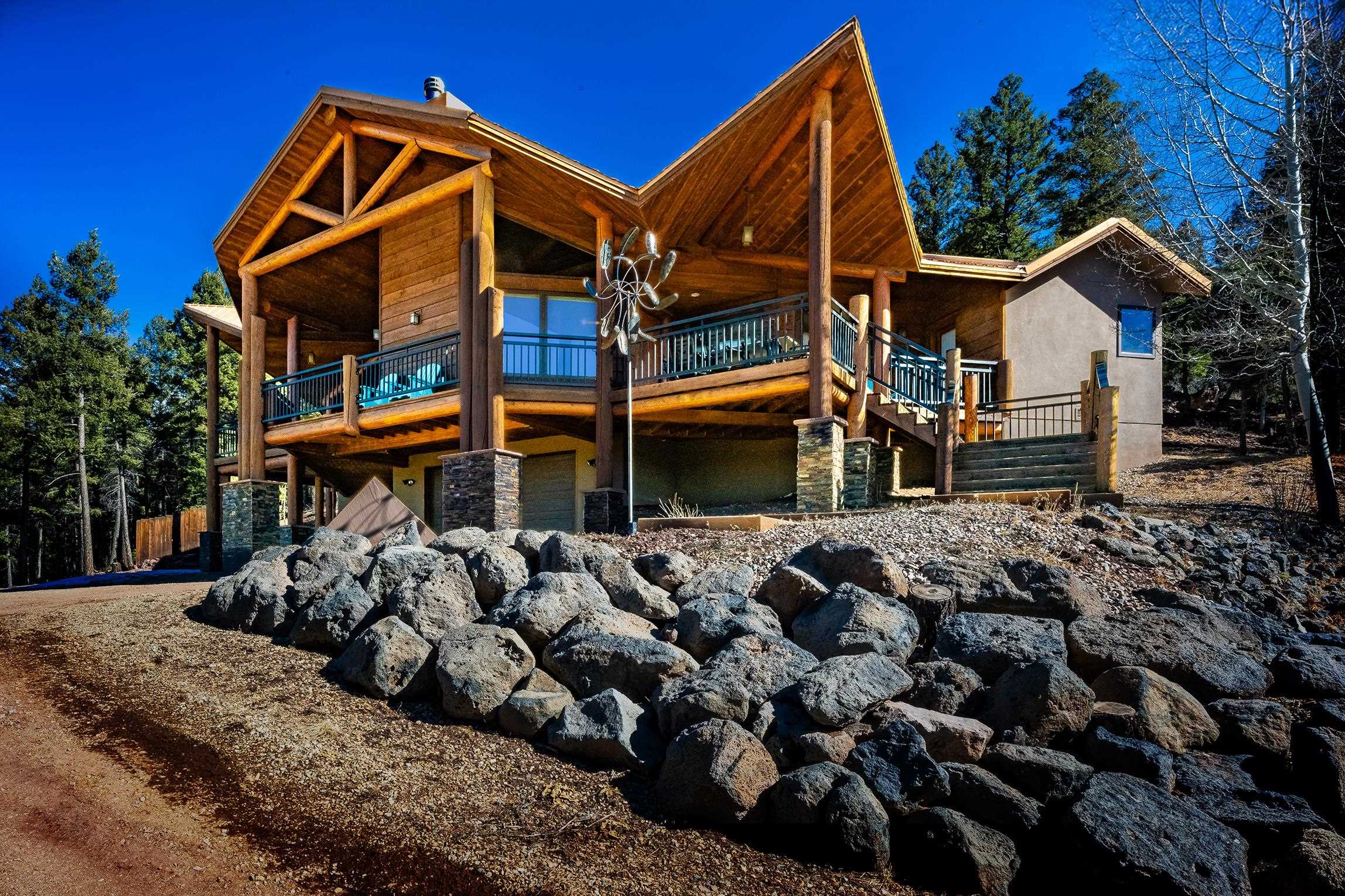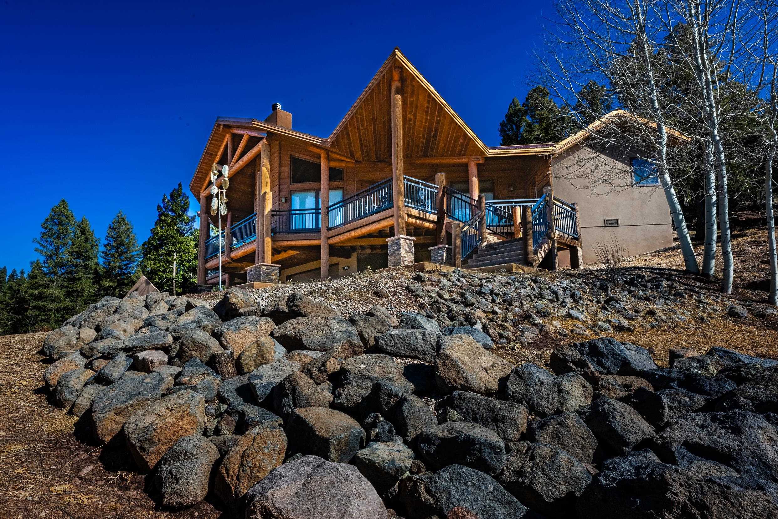 Come discover this hidden gem overlooking the mountains! Custom built in 2010, 233 El Camino Real is a one-of-a-kind mountain chalet featuring many luxurious amenities including a large wrap-around covered porch with a hot tub, a massive solid wooden entry way with turquoise inlays, custom granite countertops, and vaulted wood ceilings. The beautiful grand room welcomes you in with custom log trusses and hickory floors and opens up to include a spacious dining area, and flowing kitchen so you can spend maximum time with your guests and family. This 3 bedroom, 2.5 bathroom upscale mountain retreat is laid out with the master bedroom on the main level with an ensuite bathroom including a jetted tub, tiled shower, and custom travertine tile and solid granite surfaces. With large windows and stunning Wheeler Peak views from each room, you truly feel the spirit of the mountains surrounding you. The lower level consists of a sitting room, two guest bedrooms, and a full bathroom providing your guests privacy and comfort during their stay. This home was designed and constructed with energy efficiency in mind. With LEED Certification and Structural Insulated Panel (SIP) walls, this home has superior insulation and structural integrity while simultaneously focusing on energy efficiency, water savings, and indoor environmental quality. This is a beautiful and unique property sitting on 2.3 acres, backing up to a greenbelt that leads to the ski area, and just minutes away from all other amenities and activities Angel Fire Resort has to offer. Call us today to schedule a showing and start envisioning the wonderful memories to be made!