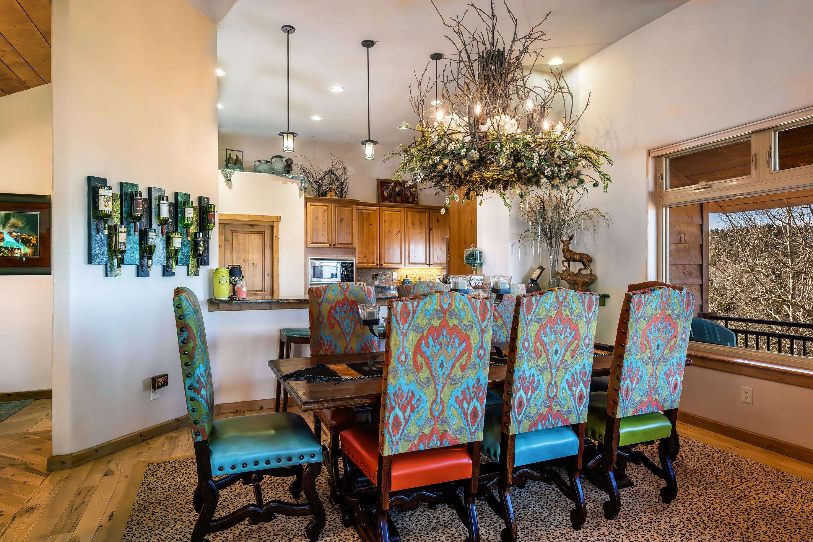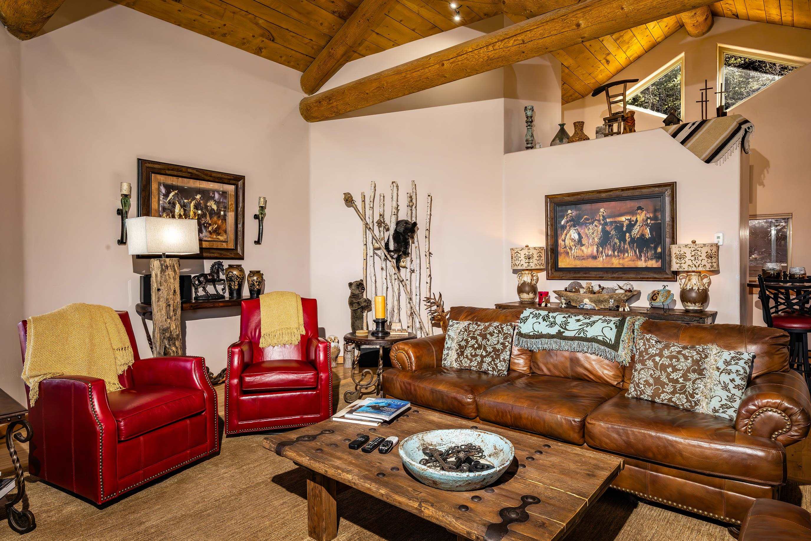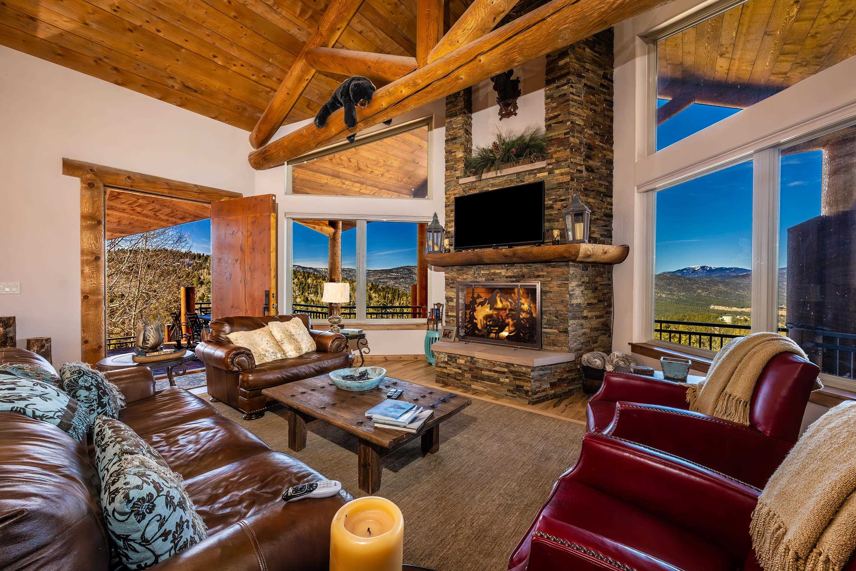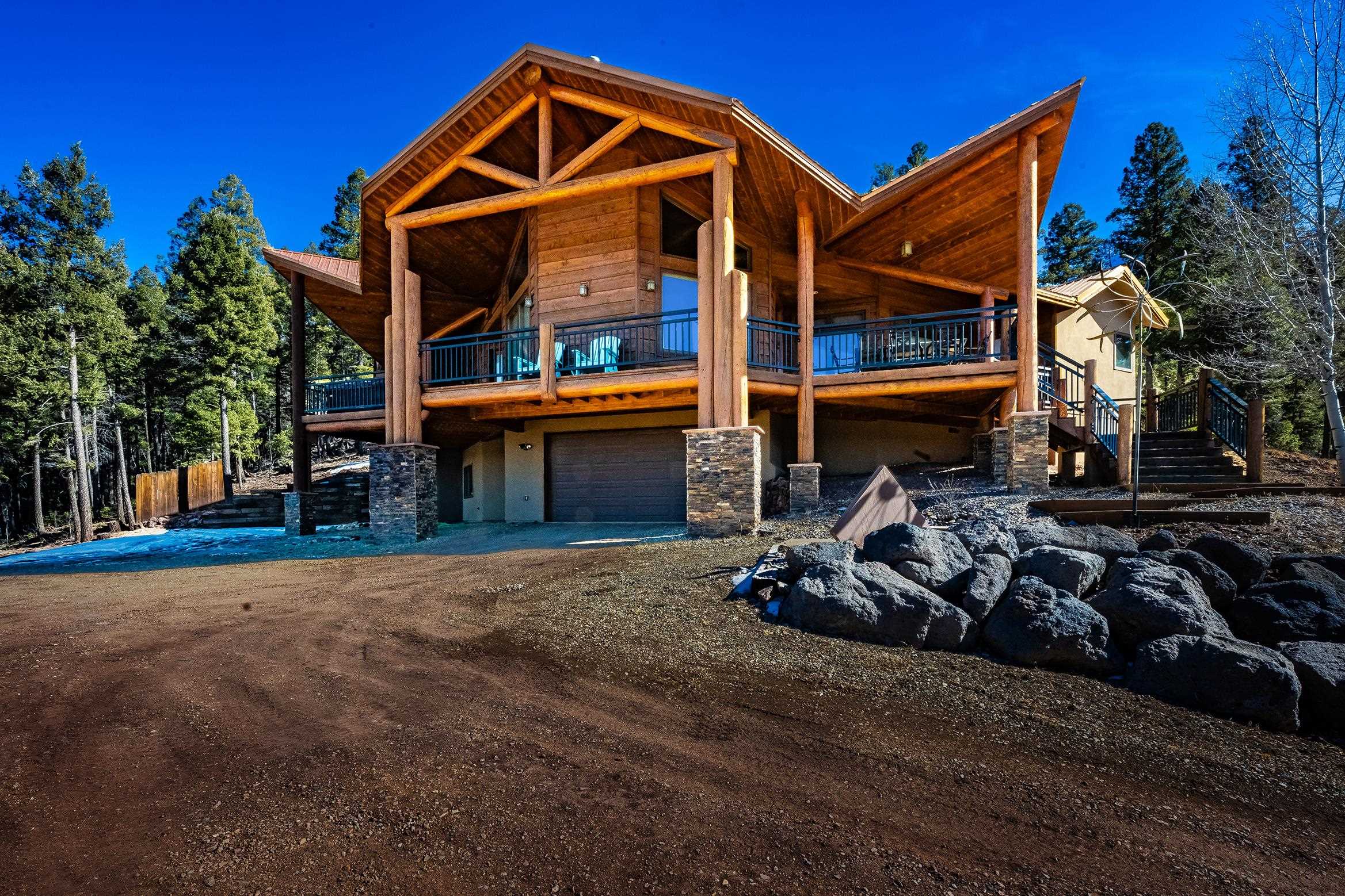 Come discover this hidden gem overlooking the mountains! Custom built in 2010, 233 El Camino Real is a one-of-a-kind mountain chalet featuring many luxurious amenities including a large wrap-around covered porch with a hot tub, a massive solid wooden entry way with turquoise inlays, custom granite countertops, and vaulted wood ceilings. The beautiful grand room welcomes you in with custom log trusses and hickory floors and opens up to include a spacious dining area, and flowing kitchen so you can spend maximum time with your guests and family. This 3 bedroom, 2.5 bathroom upscale mountain retreat is laid out with the master bedroom on the main level with an ensuite bathroom including a jetted tub, tiled shower, and custom travertine tile and solid granite surfaces. With large windows and stunning Wheeler Peak views from each room, you truly feel the spirit of the mountains surrounding you. The lower level consists of a sitting room, two guest bedrooms, and a full bathroom providing your guests privacy and comfort during their stay. This home was designed and constructed with energy efficiency in mind. With LEED Certification and Structural Insulated Panel (SIP) walls, this home has superior insulation and structural integrity while simultaneously focusing on energy efficiency, water savings, and indoor environmental quality. This is a beautiful and unique property sitting on 2.3 acres, backing up to a greenbelt that leads to the ski area, and just minutes away from all other amenities and activities Angel Fire Resort has to offer. Call us today to schedule a showing and start envisioning the wonderful memories to be made!