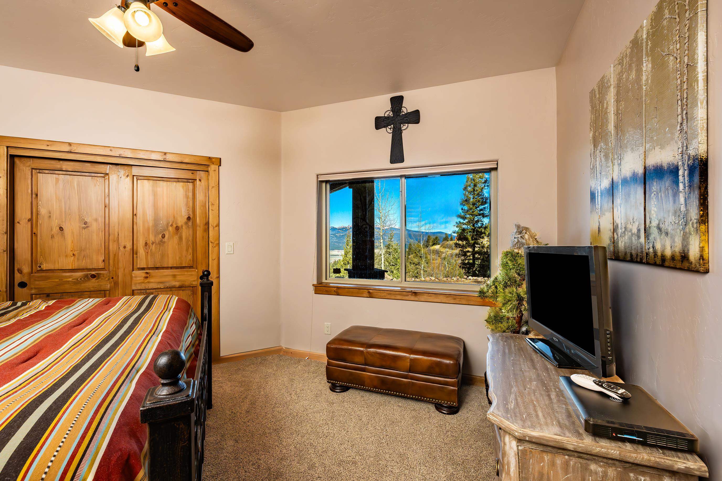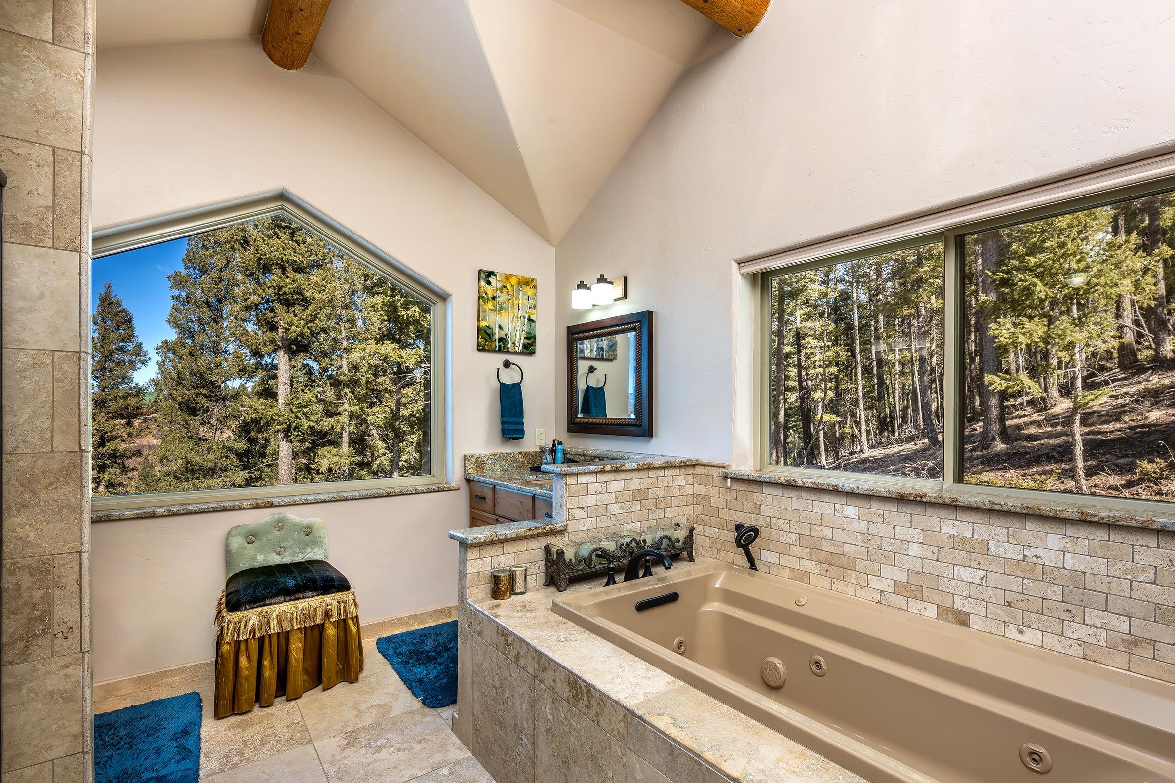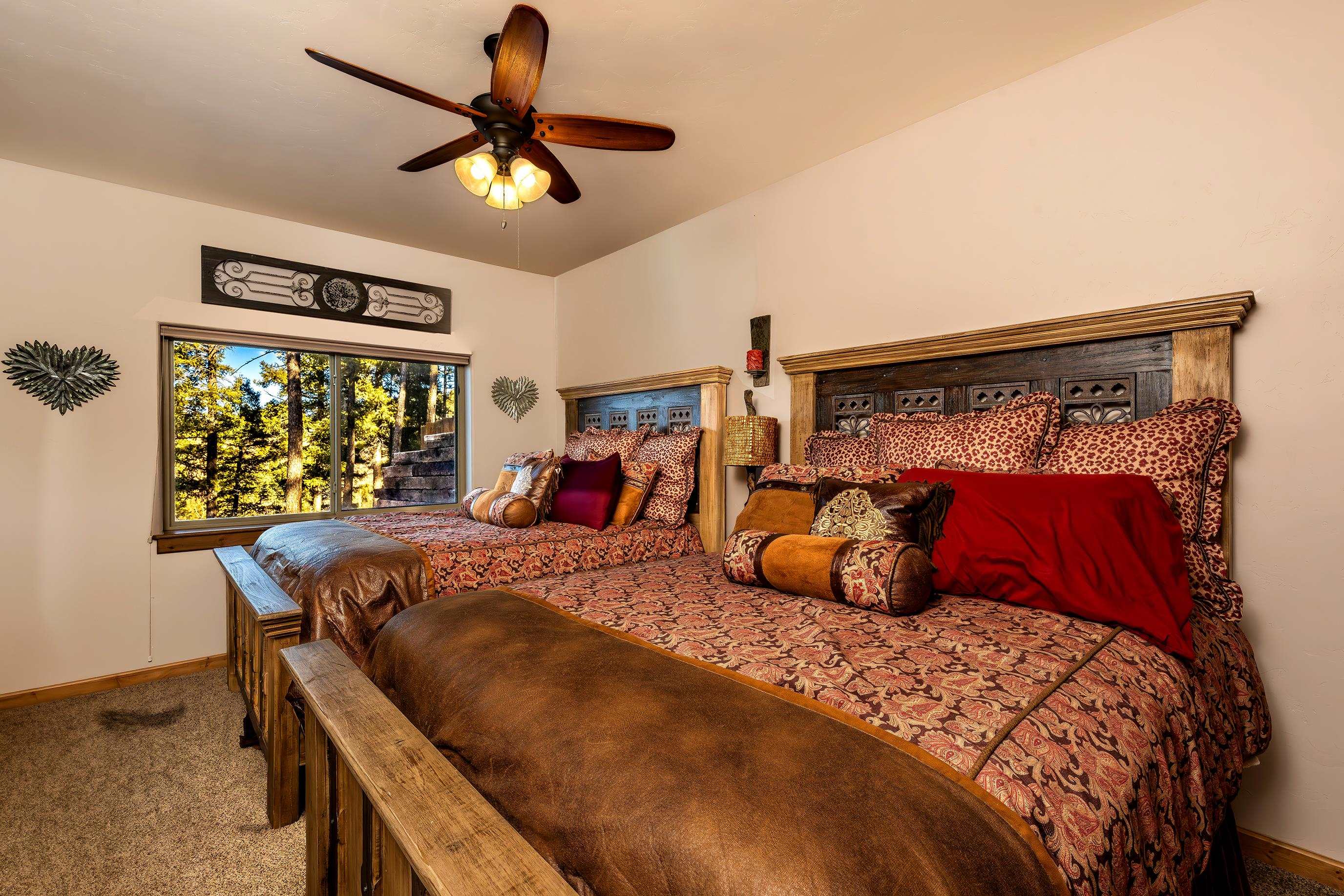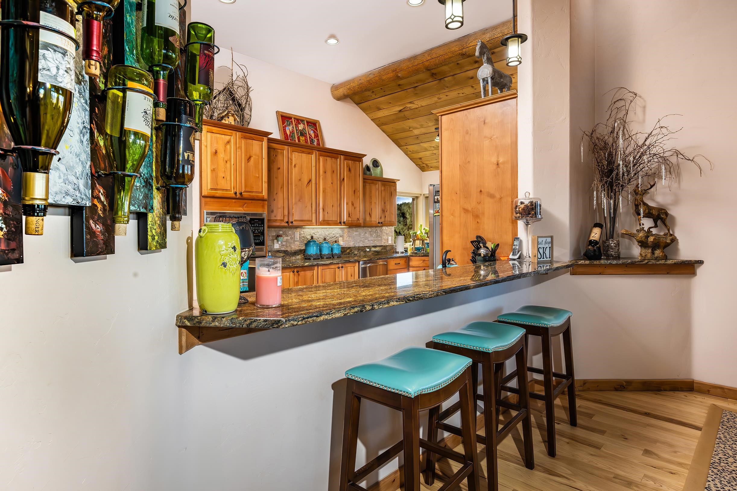 Come discover this hidden gem overlooking the mountains! Custom built in 2010, 233 El Camino Real is a one-of-a-kind mountain chalet featuring many luxurious amenities including a large wrap-around covered porch with a hot tub, a massive solid wooden entry way with turquoise inlays, custom granite countertops, and vaulted wood ceilings. The beautiful grand room welcomes you in with custom log trusses and hickory floors and opens up to include a spacious dining area, and flowing kitchen so you can spend maximum time with your guests and family. This 3 bedroom, 2.5 bathroom upscale mountain retreat is laid out with the master bedroom on the main level with an ensuite bathroom including a jetted tub, tiled shower, and custom travertine tile and solid granite surfaces. With large windows and stunning Wheeler Peak views from each room, you truly feel the spirit of the mountains surrounding you. The lower level consists of a sitting room, two guest bedrooms, and a full bathroom providing your guests privacy and comfort during their stay. This home was designed and constructed with energy efficiency in mind. With LEED Certification and Structural Insulated Panel (SIP) walls, this home has superior insulation and structural integrity while simultaneously focusing on energy efficiency, water savings, and indoor environmental quality. This is a beautiful and unique property sitting on 2.3 acres, backing up to a greenbelt that leads to the ski area, and just minutes away from all other amenities and activities Angel Fire Resort has to offer. Call us today to schedule a showing and start envisioning the wonderful memories to be made!