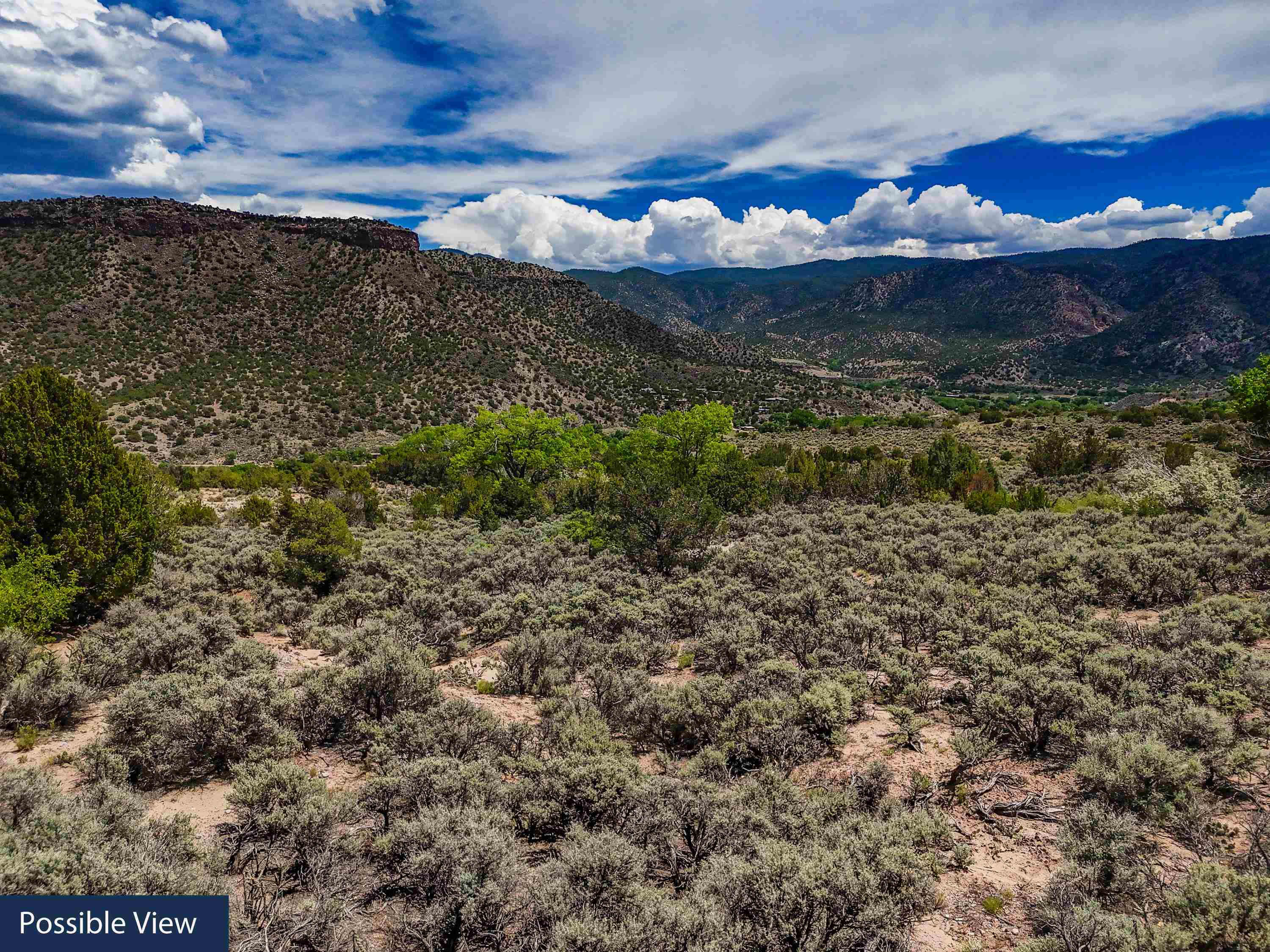 Views and seclusion: this beautiful lot is bordered by BLM land on the west and is bounded on the south and north by two springs that flow seasonally giving you a diverse eco system of cotton woods, NM privet and grasses amidst the pinon juniper woodland. The lot gently slopes from east to west to a cliff of well worn black basalt overlooking the valley below. Across the Rio Grande river is the massive face of the mesa that towers over the length of the Pilar valley. To the north clearly visible in the distance is Taos Mountain and to the east is Picuris - amazing! If seclusion and quiet and wildlife are what you seek - you will see elk, deer, and all sorts of bird life come to the springs to drink. And you have this bonus - the KC power line crosses the eastern most sliver of the lot.