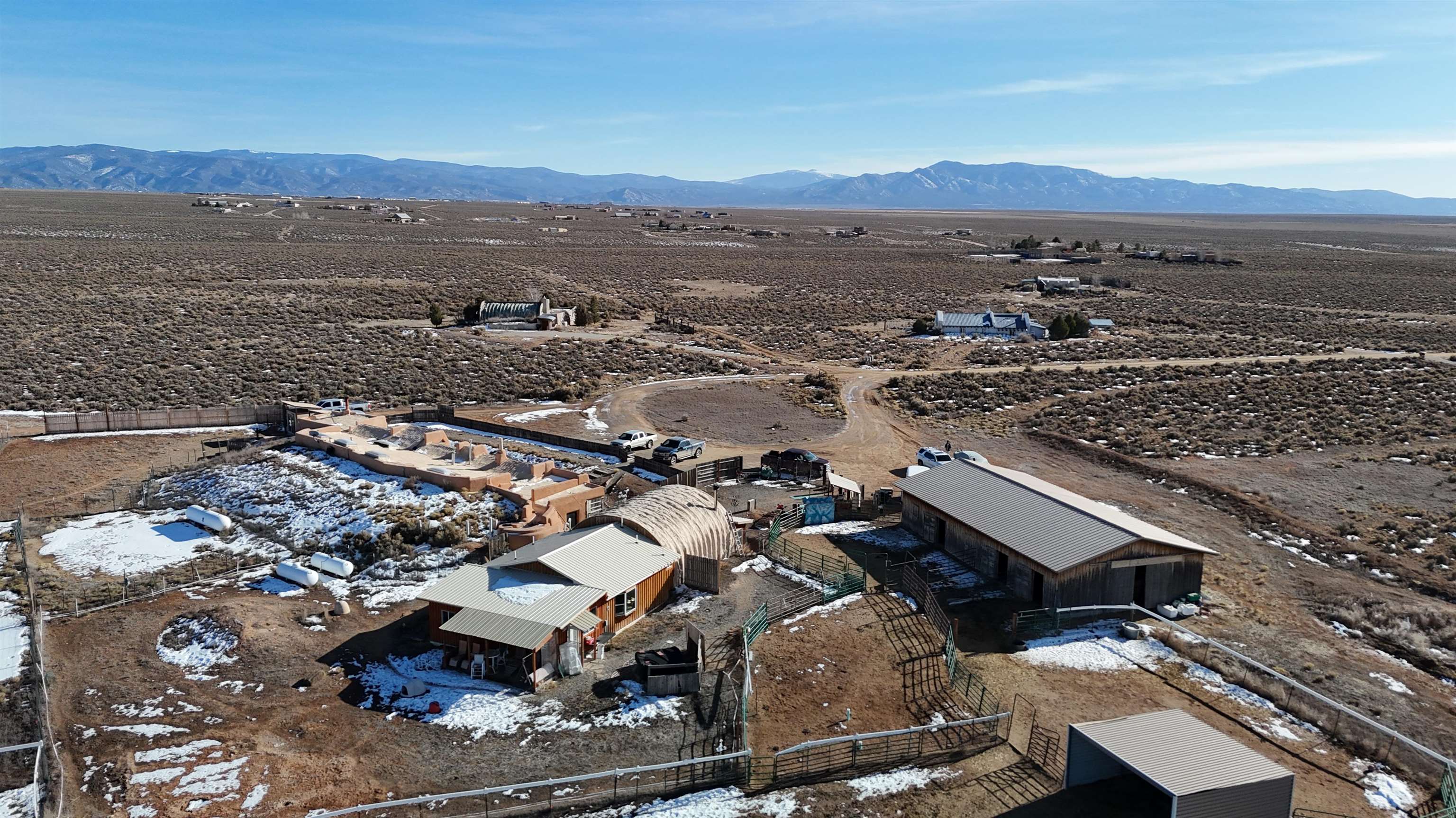 An Earthship (Aloe Vera House) as the main house, shared wall with the Casita (Rosemary Casita), and a Studio (Turquoise House) as a separate guest house with a barn, five stalls, corrals, and extra space to expand with ~2 empty acres of land. All income producing properties could bring in $6,000 per month with all three rented out. The Aloe Vera House has the furthest entrance with a private fenced -in yard and a sliding door to the living room or possible second bedroom. Insert woodstove in the kiva fireplace for toasty warmth with your honey on cold nights. A few steps down to the Master Bedroom, two closets (His and hers etc.), and a beautifully lit bathroom with a skylight. This home was re-stuccoed three years ago and is in great shape/well-maintained/loved. The open concept dining, kitchen and possible mini-living room allow lots of storage with a wash room/pantry off the kitchen and a foyer to the front door. Completely remodeled kitchen! Move-in ready or investment property with current tenants. A shared mechanical room to the Casita, fiberoptic for the whole building, and an on-demand water heater for you or your tenants! The Casita also has a private entrance so nobody really sees each other in passing. As you enter the Casita you step into another foyer for your shoes and coats and a kitchenette with two hot plates mounted on the counter with a mini double-oven included. The Pantry/closest is a tri-level design hidden behind the mini living space! The tri-level loft bedroom is cozy and built above the pantry. Laundry on-site for tenants at the Turquoise House next door. The bathroom is the star of the show at the Casita with a stunning rock tub and rock features. Natural light doesn't disappoint! The Studio Turquoise House has been transformed into an Artist's Dream with a huge open studio space, woodstove, office space, propane heater and a loft bedroom. The second half of the studio is the living space with a full kitchen, full bath, living room, and bedroom with a reading nook for your bookshelves and office space. The Turquoise House has two outdoor seating areas - one in the front for extra sun and one in the back for shade and sunsets on the mountains! About 2-3 acres of the property comprise of corrals and the barn. Hiking and riding trails nearby and possible investment behind the property - 50,000 acres! Manby Hot Springs for Stagecoach residents only!! Your own private Hot Springs in the neighborhood down the road!! Soak next to what used to be an old brothel and a crossing point on the Rio Grande. Full of history, beauty, infinite ideas, and creativity for a new owner to take over current leases or to turn this dwelling into your mini universe of divine energy!
