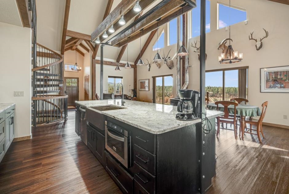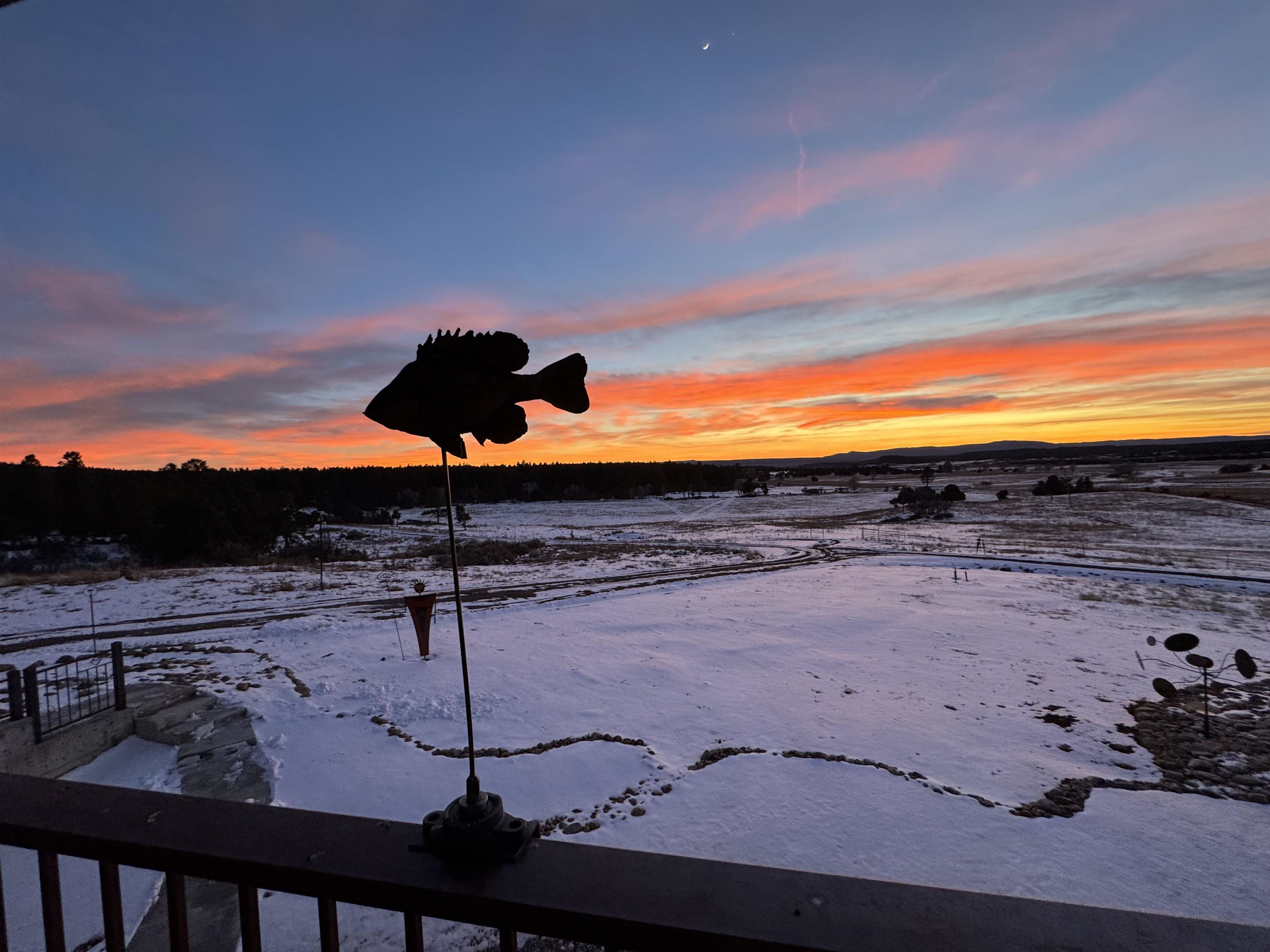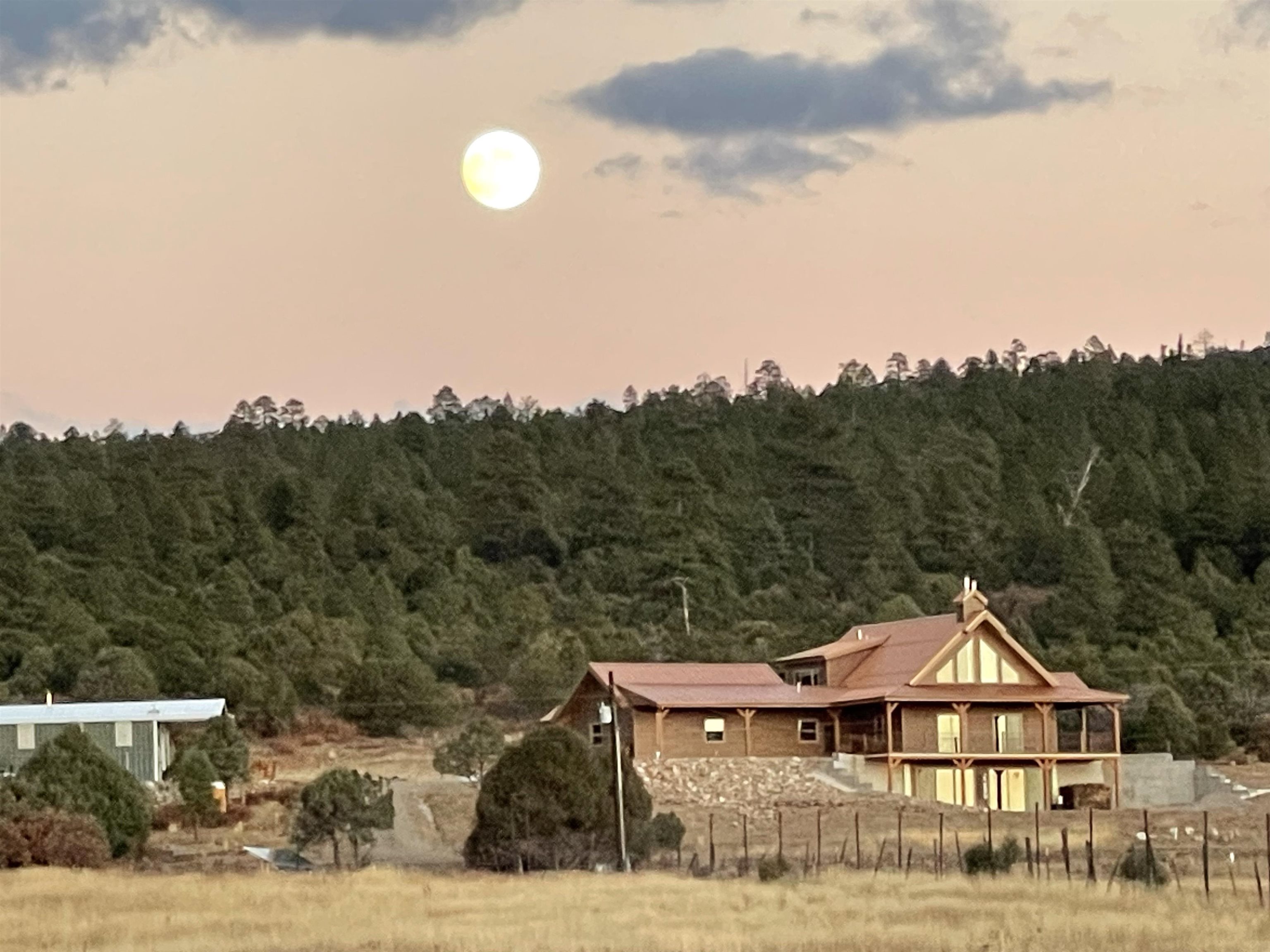 Beautiful 3360 sqft custom mountain home on 143 acres boarding the Carson National Forest with 110 acres of ponderosa, pinion, juniper and oak and 33 acres of pasture, 23 acres of which have senior water rights. The property comes with an elk tag and a landowner deer tag can be purchased over the counter. This unique property could be a horse property, a micro ranch and an outdoor sport paradise. It is 30 minutes from five fishing and recreational lakes and provides instant access to hiking, hunting, snowmobiling and cross-country skiing. Wildlife abounds with mule deer and elk, and turkeys and eagles. The house was built in 2022 of structurally insulated panels, mortise and tenon heavy timber and insulated concrete forms. The architectural spiral stairs connect the main floor, loft and finished walkout basement. There is a bedroom, bath and office in the loft. On the main floor is the great room, kitchen, master bedroom, master bath and laundry/arts and crafts room. The basement is a flexible, recreational space with a bathroom and the potential for a third bedroom. Osburn wood burning stoves in the basement and on the main floor provide abundant heat during classical winter days and nights. The bathrooms and laundry/arts and crafts room have in floor electric radiant heat. There is a utility well (not potable) with domestic water provided by 6000 gallons of rainwater collection and storage. There is an attached, 3-car finished garage with 8’ tall garage doors. The porches, patios and decks on three sides of the house provide stellar views. The decks have steel railings and Trex decking. The 1200 sqft insulated Mueller building shop is loaded with 220v 30A and 40A outlets and has an equipment cover on the side. There is RV parking with electrical and sewer connections. Property is 1.5 miles from US 84, near Cebolla, NM. 25 miles to Chama, 53 miles to Espanola, about 80 miles to Santa Fe.