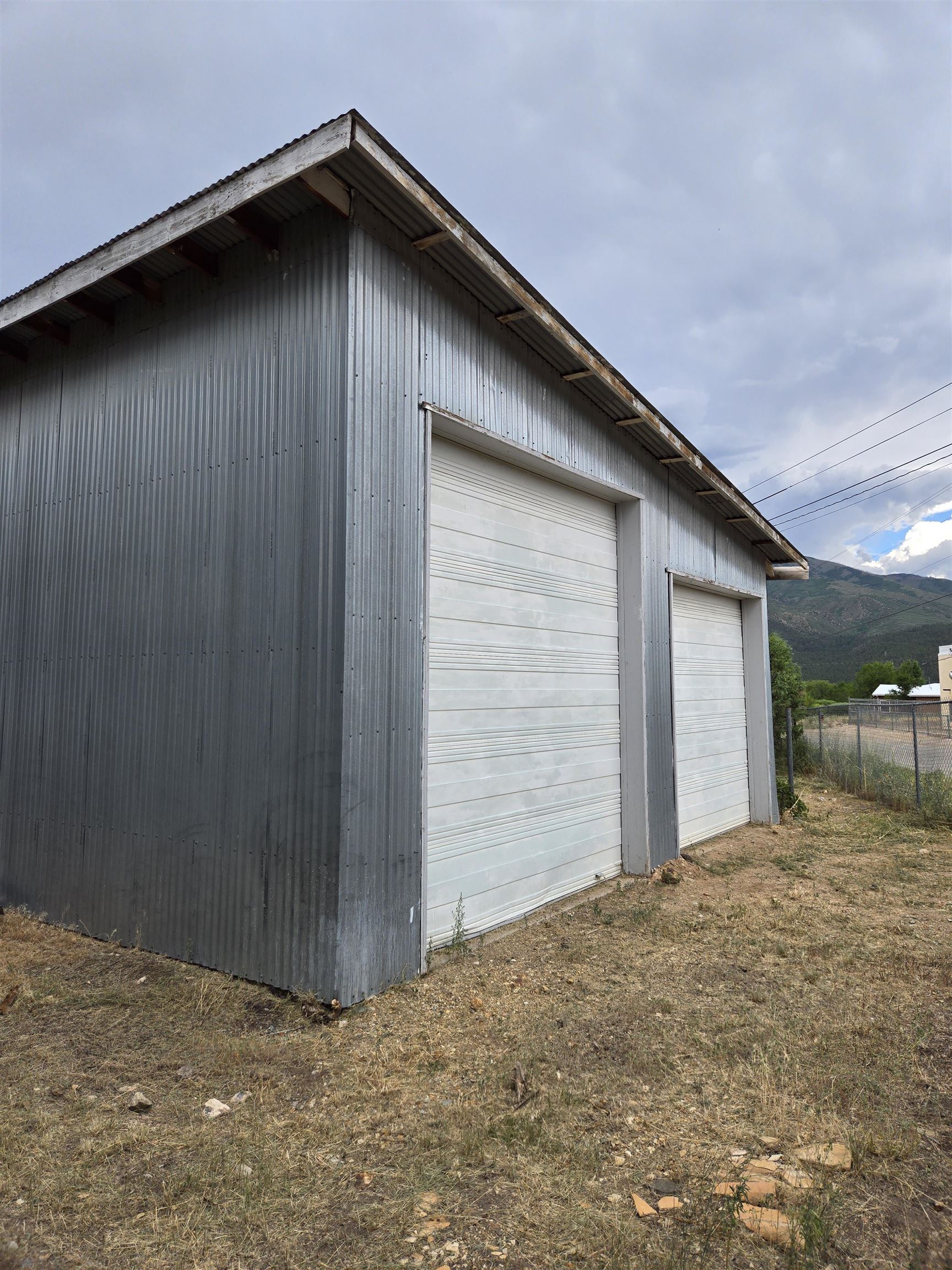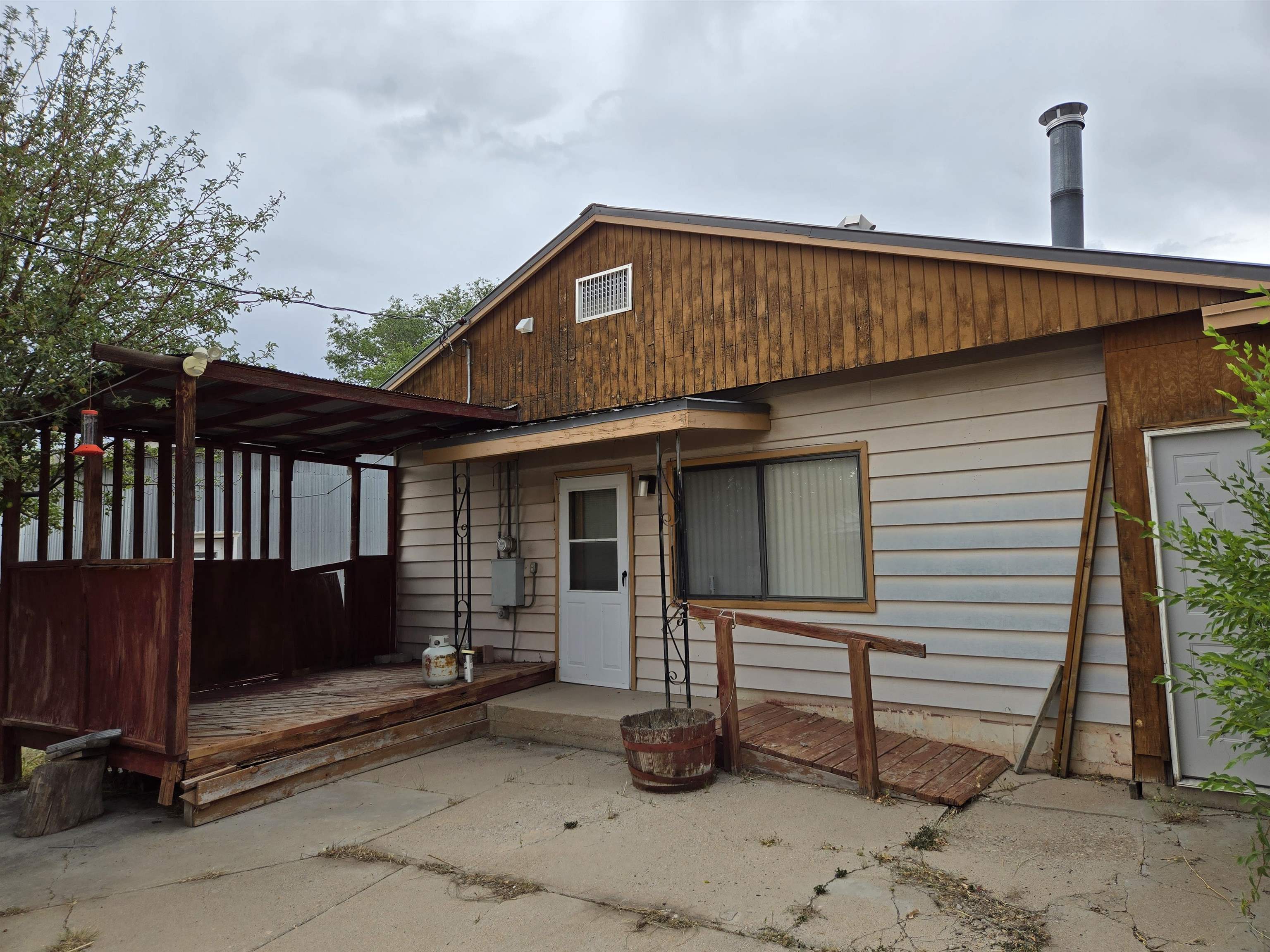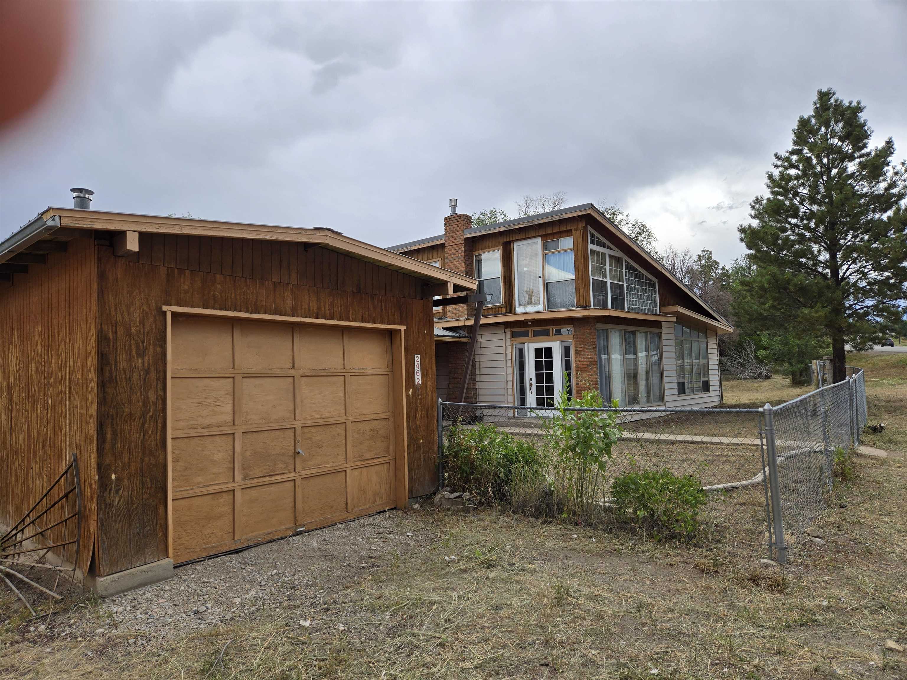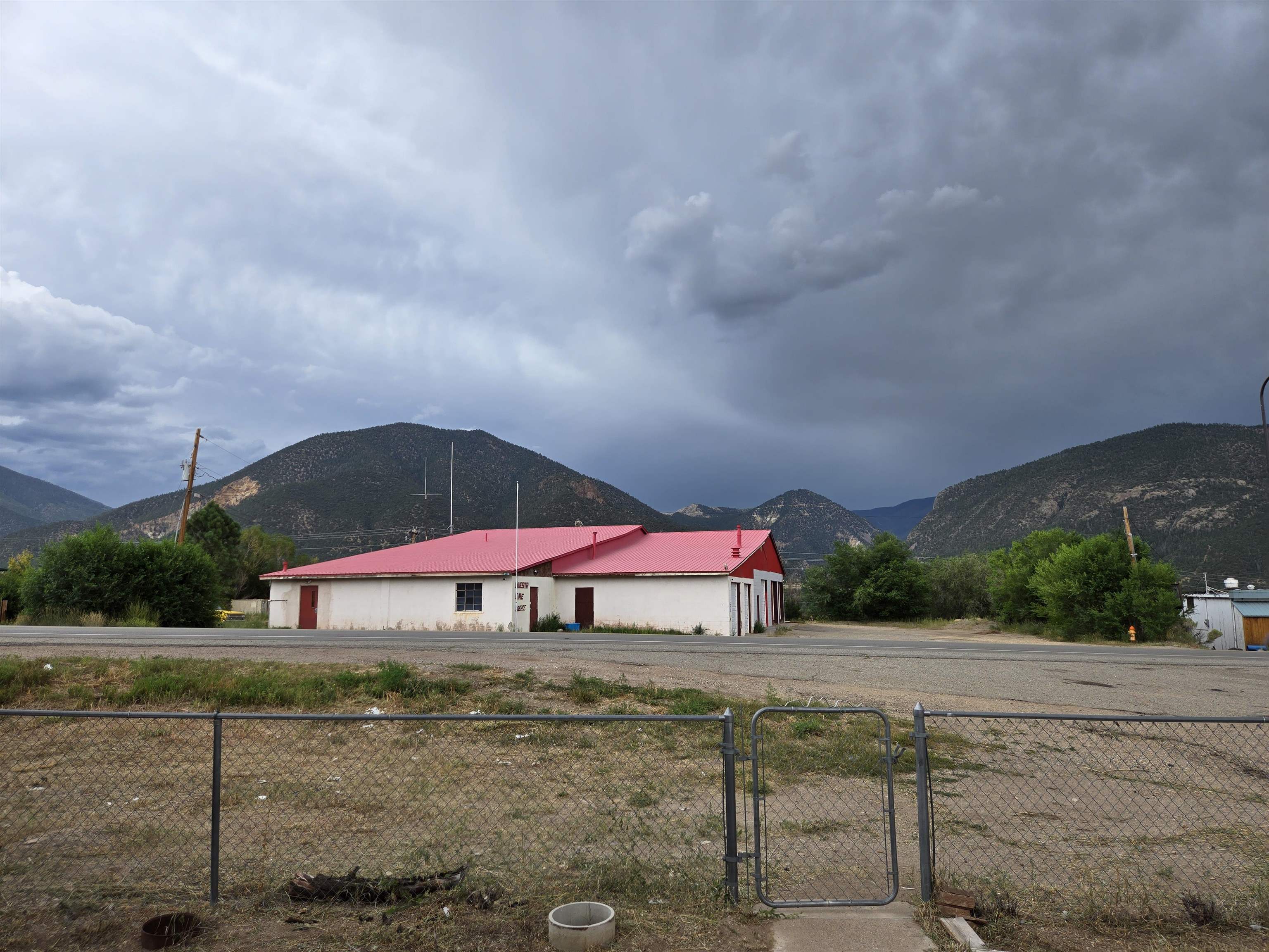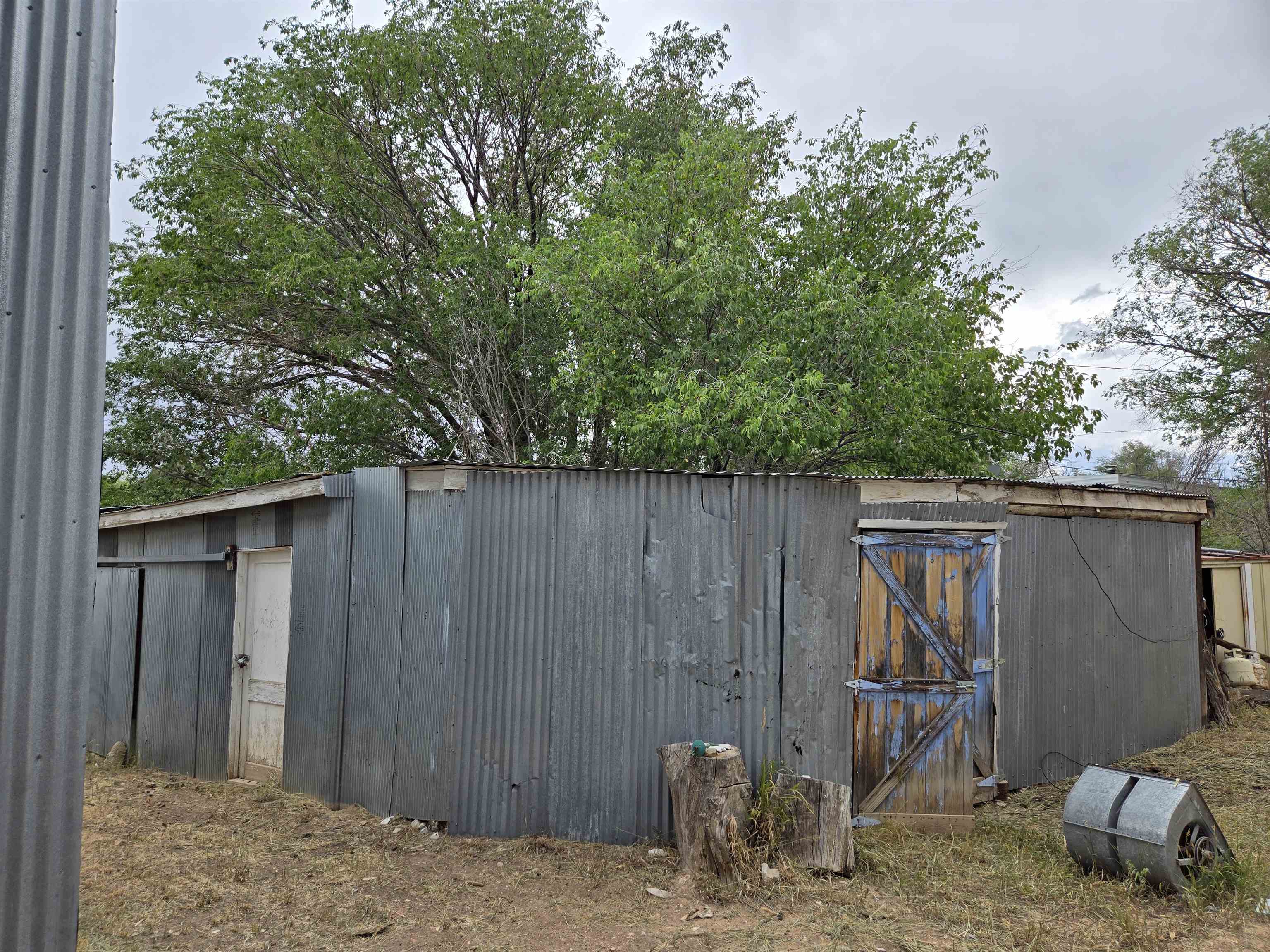 A unique 4 bedroom /two bath home Questa. Two fireplaces, second floor entertainment room, one large/tall 2 stall garage, two separate one car garages, tool shed, apple tree, town water and sewer. Pitched metal room on residence. Across the highway from the Volunteer Fire Department.