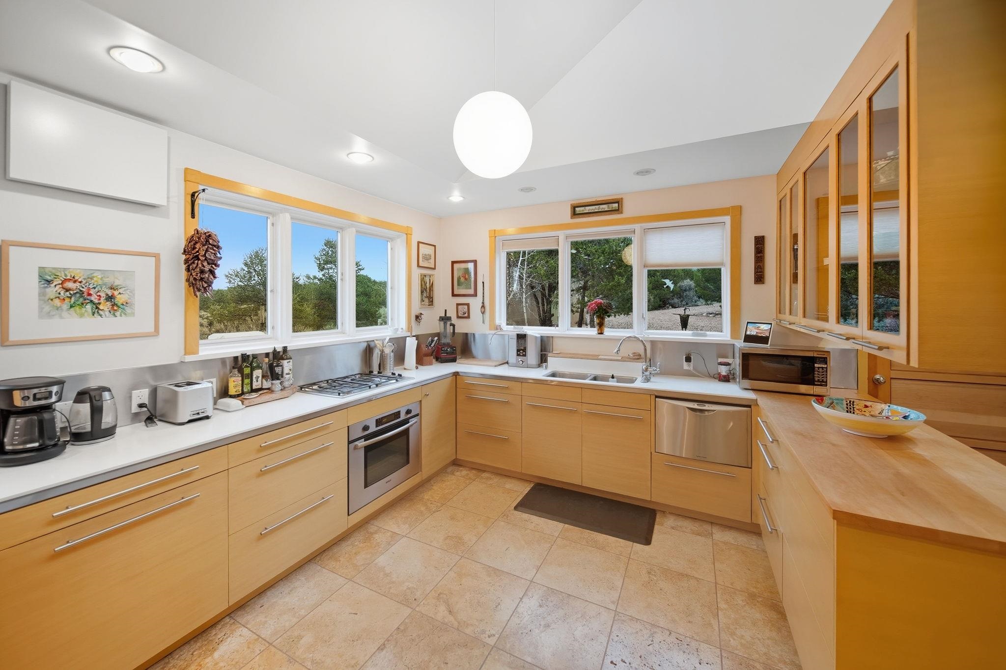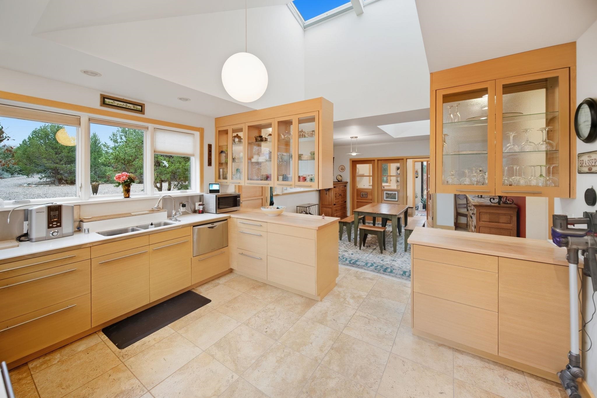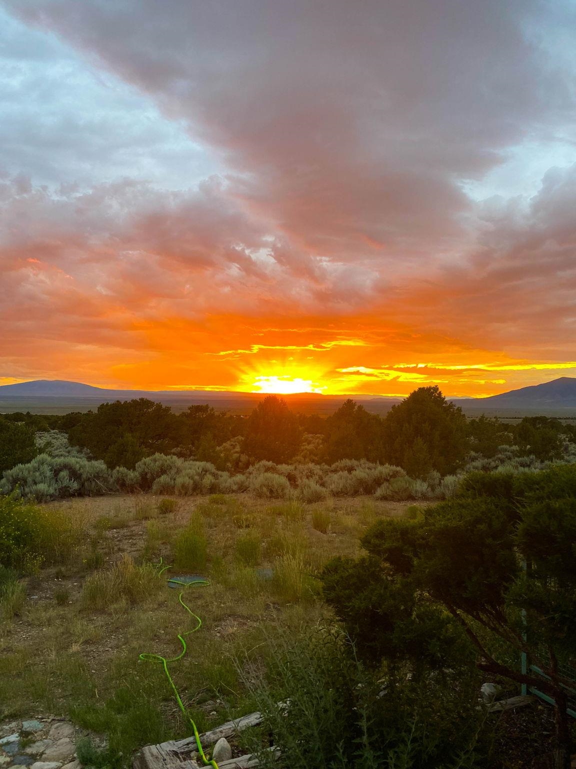 Light-Filled High Desert Sanctuary in El Rito/Latir ~ A true masterpiece of high desert architecture awaits at this stunning sanctuary, privately tucked at the end of a gated road on 5.78 acres in El Rito/Latir. Nestled in the foothills of the Sangre de Cristo Mountains, the vista encompasses the Northern Rio Grand National Heritage Area, Ute Mountain, San Antonio Mountain, Mt. Blanca in Colorado, and more ranges that offer the finest views Northern New Mexico has to offer. This architect-designed, custom 2-bedroom, 2-bath residence (2006) is defined by superior 2x6 construction and a focus on views and light. The sunroom and greenhouse provide exceptional passive solar gain while offering a space for winter food and summer flowers. Enjoy sunsets from the living room, and light from the twelve incredible skylights throughout the home that ensure every vaulted interior space is bathed in natural light. Impeccable craftsmanship and thoughtful care are evident inside, from the classy see-through living room fireplace and sophisticated recessed lighting to the fossil-filled travertine tile and artistic contemporary Southwestern finishes. The gourmet kitchen boasts handmade, German-inspired cabinetry, ample counter space, and top-tier energy-efficient stainless steel appliances, seamlessly integrating function and artistry. Thoughtful luxuries include extensive built-in bookcases, wool carpet, a Japanese soaking tub, and a dedicated, sun-drenched office. The practical features continue with an automatic-door one-car garage and a dual-fuel generator for reliable backup. Outside, a maintenance-free composite deck wraps half the home, ideal for sipping sunrise coffee or evening patio entertaining. The pristine, low-maintenance landscaping features local sculptures, perennials, an automatic sprinkler system, and an orchard protected by electric fencing. A handsome custom metal dog kennel accessible via the laundry room doggy door is perfect for your furry friends to play while you relax and absorb world-class sunsets and big, starry night skies near the Latir Peak Wilderness. This unique property is minutes from world-class skiing at Taos Ski Valley and Red River, the Rio Grande Wild Rivers Recreation Area, and the RCCLA Rio Costilla Park and Campground for superb hiking, fishing, and camping. The Kagyu Mila Guru Stupa is just around the corner for meditation and prayer, downtown Taos is a lovely drive South for shopping and gourmet dining, and Colorado nature or Denver amenities are an easy outlet North. This is your chance to own a piece of New Mexico magic at your very own high desert mountain sanctuary.