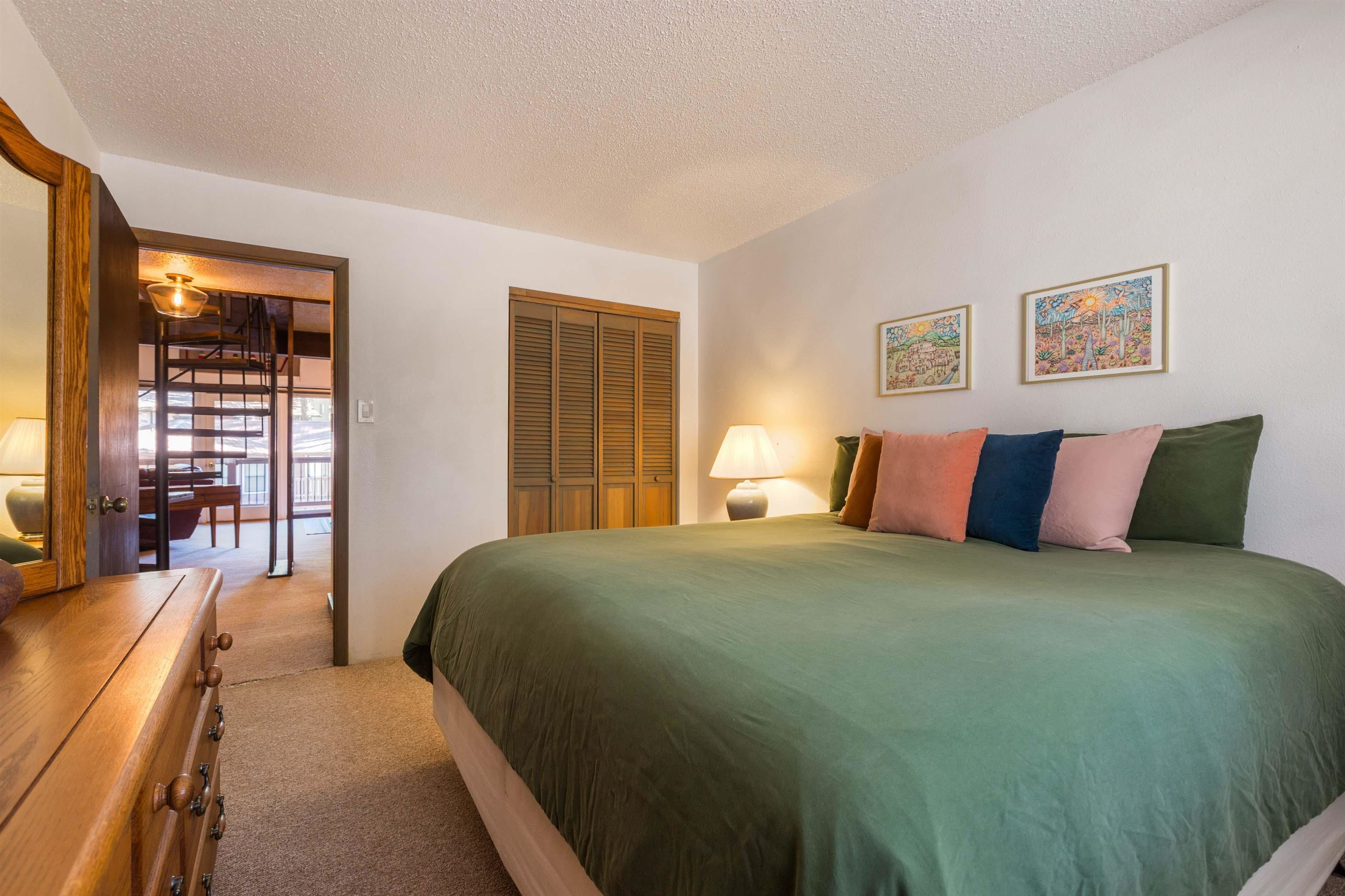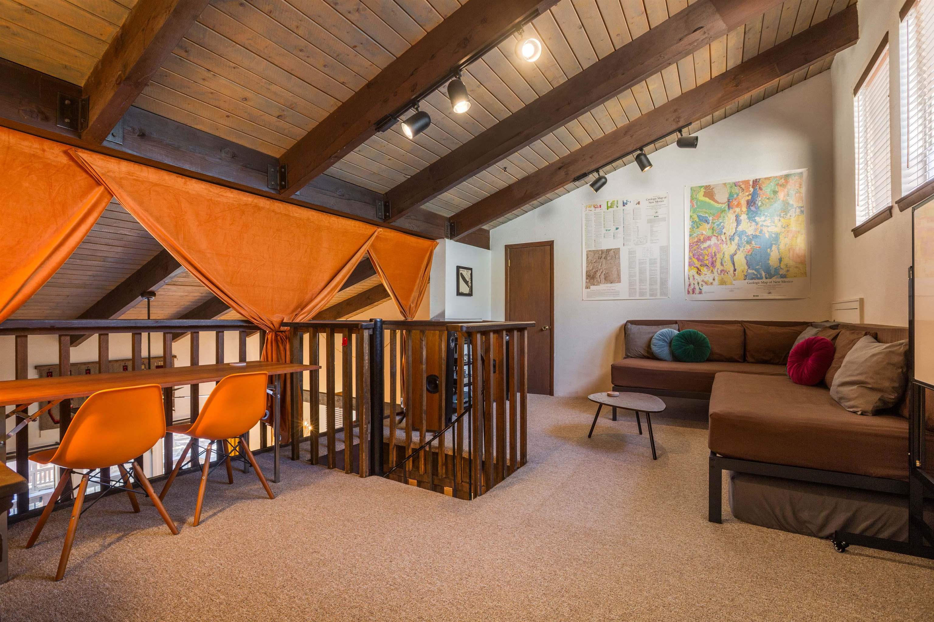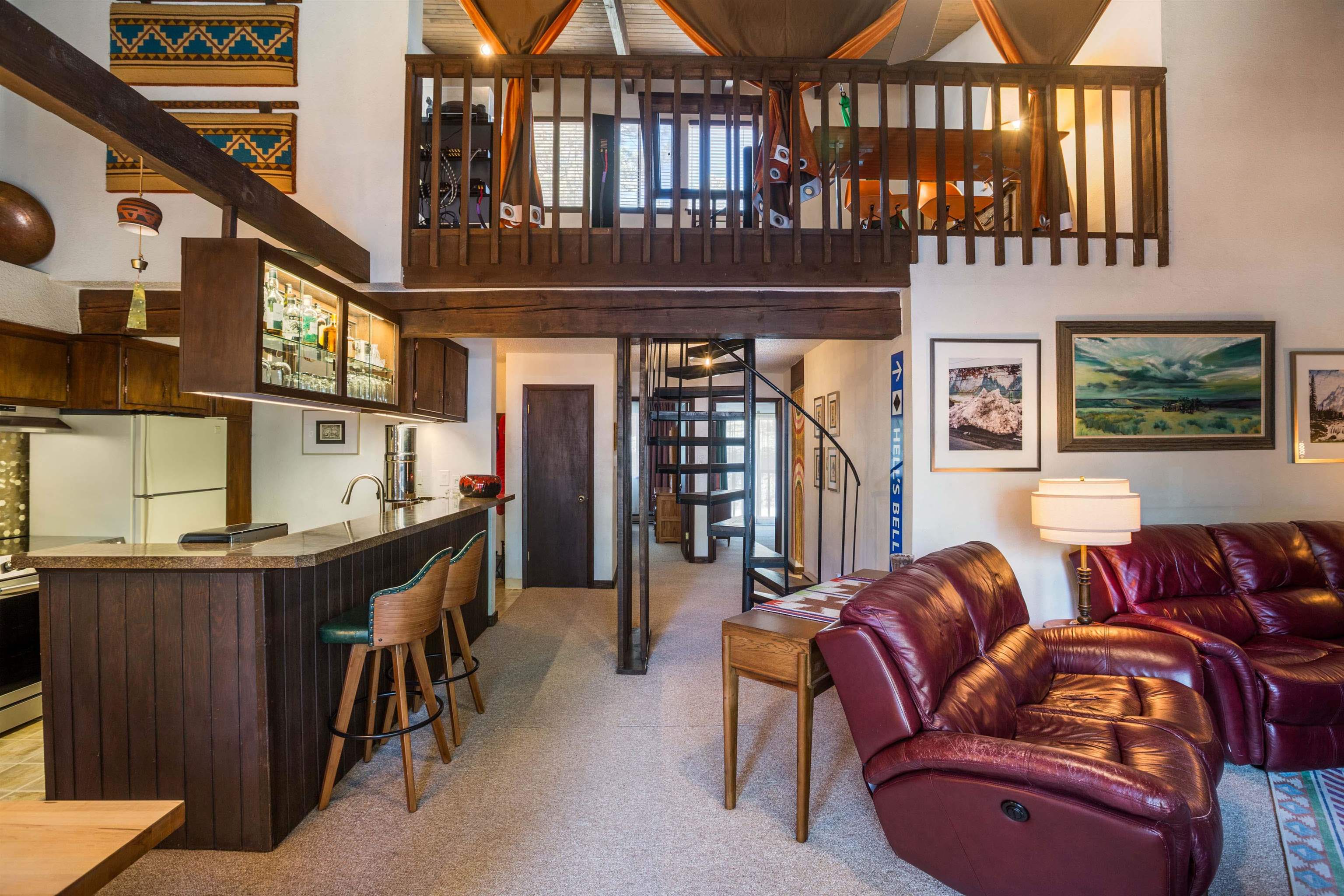 Located just moments from the slopes and trails of Angel Fire Resort, this spacious 3-bedroom, 3-bath condo offers the perfect mountain retreat with plenty of room for family and guests. The inviting main living area features vaulted ceilings, warm wood accents, and large windows that bring in cheerful natural light. The updated kitchen and dining area flow easily into the living room, creating a comfortable space for gathering after a day on the mountain. The primary suite, guest bedroom, and guest bath are located on the main level, while the loft-style third bedroom and bathroom upstairs provide additional sleeping space and privacy. Step outside to enjoy the mountain air from the private deck. The property also includes a full-size garage and a private storage room—perfect for keeping skis, bikes, and other mountain gear organized and out of the way. With its flexible layout, generous sleeping capacity, and convenient location near the base area, this condo makes an excellent vacation getaway, rental investment, or year-round mountain home.