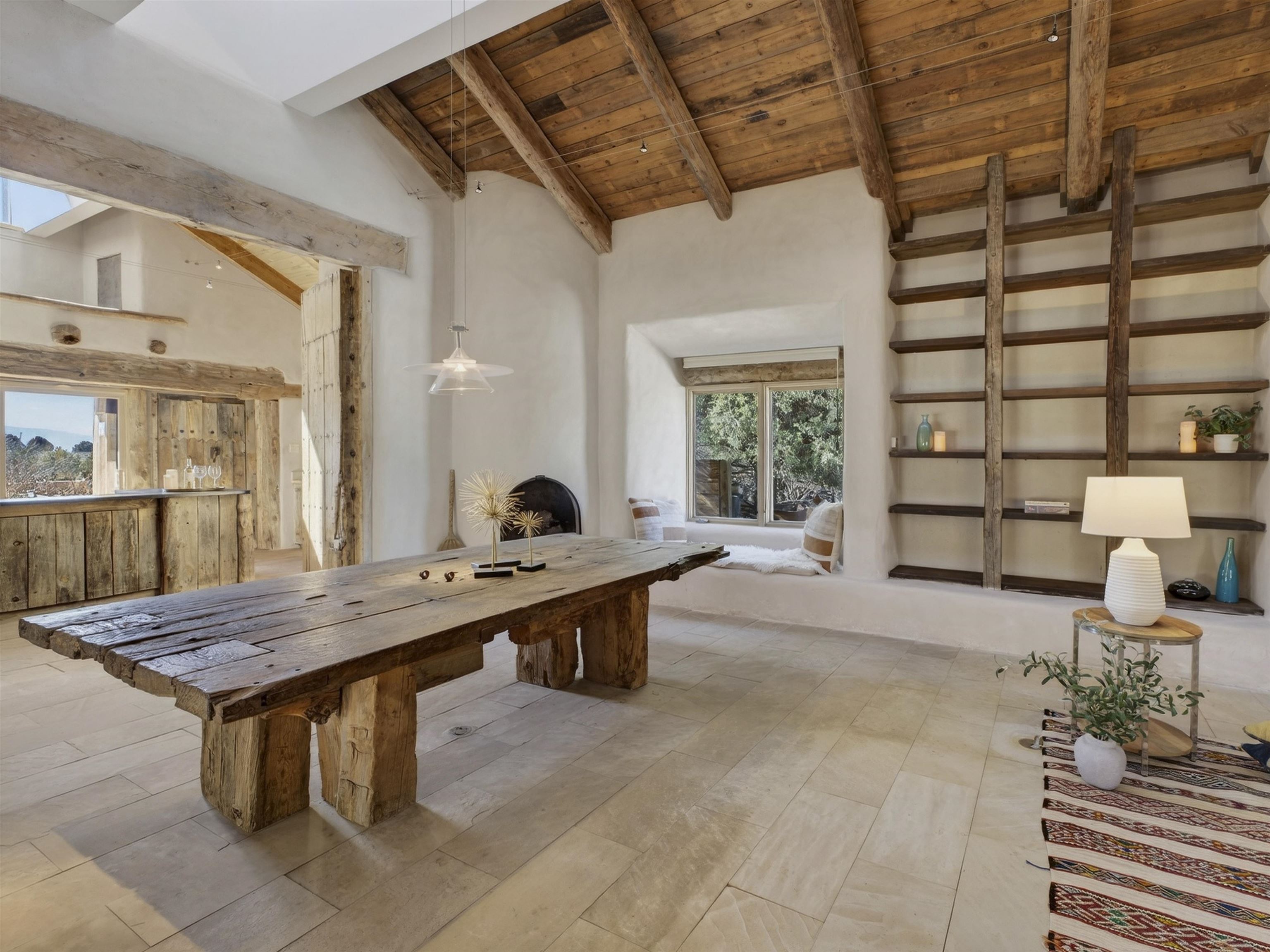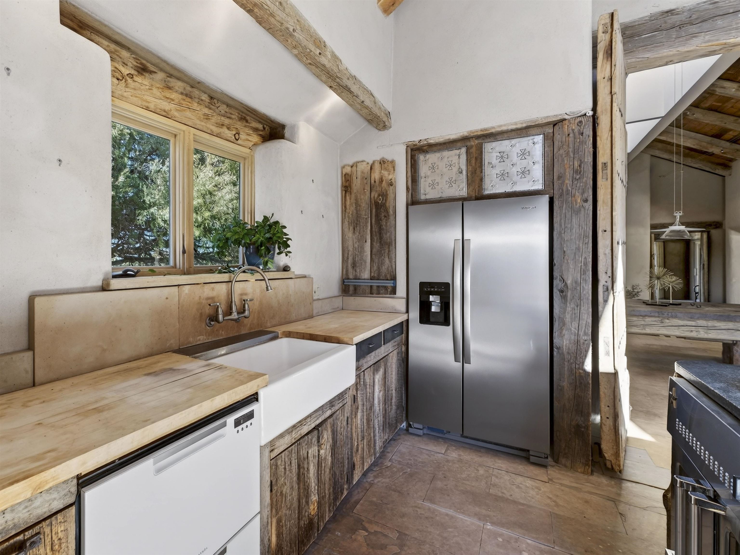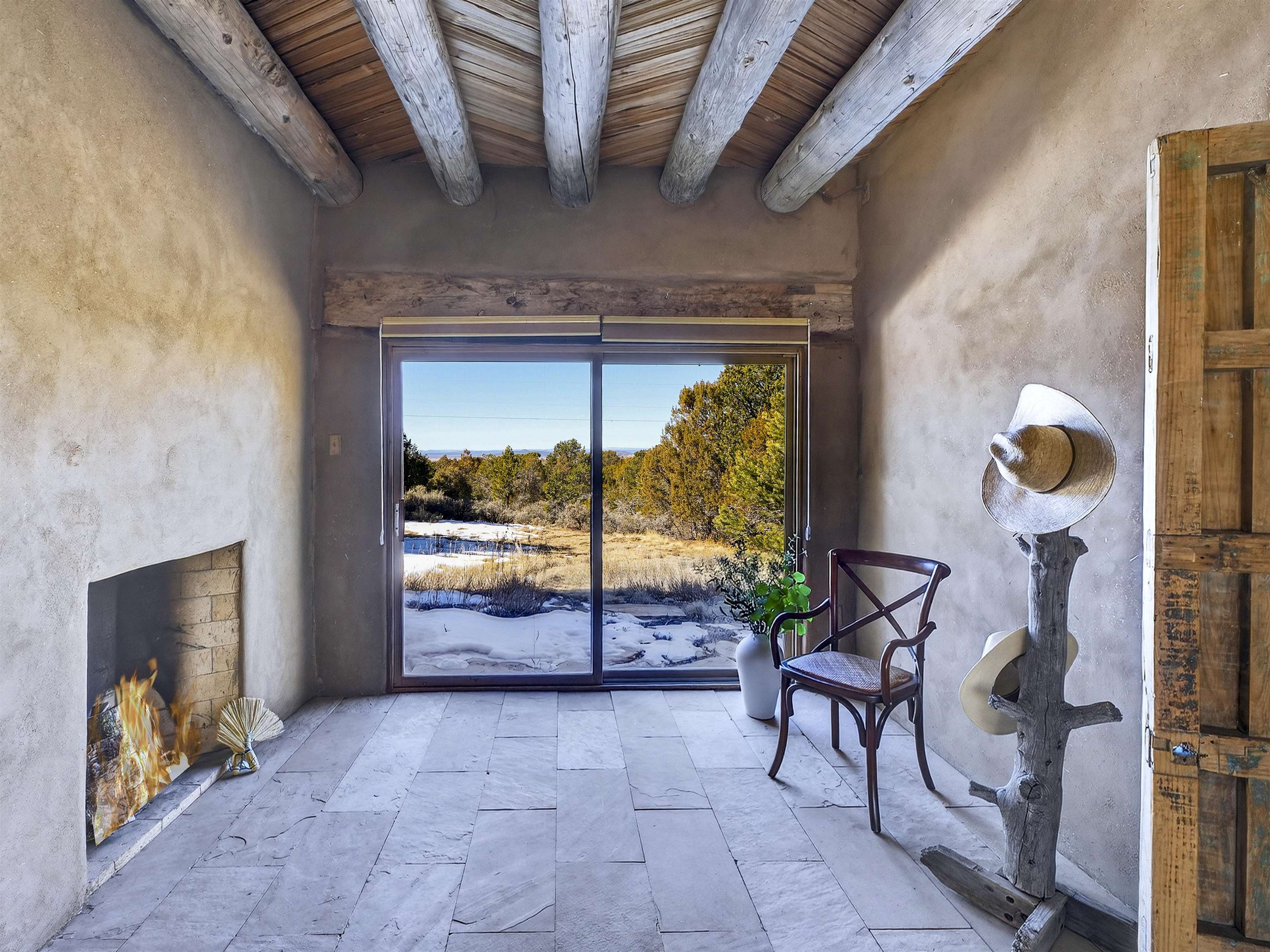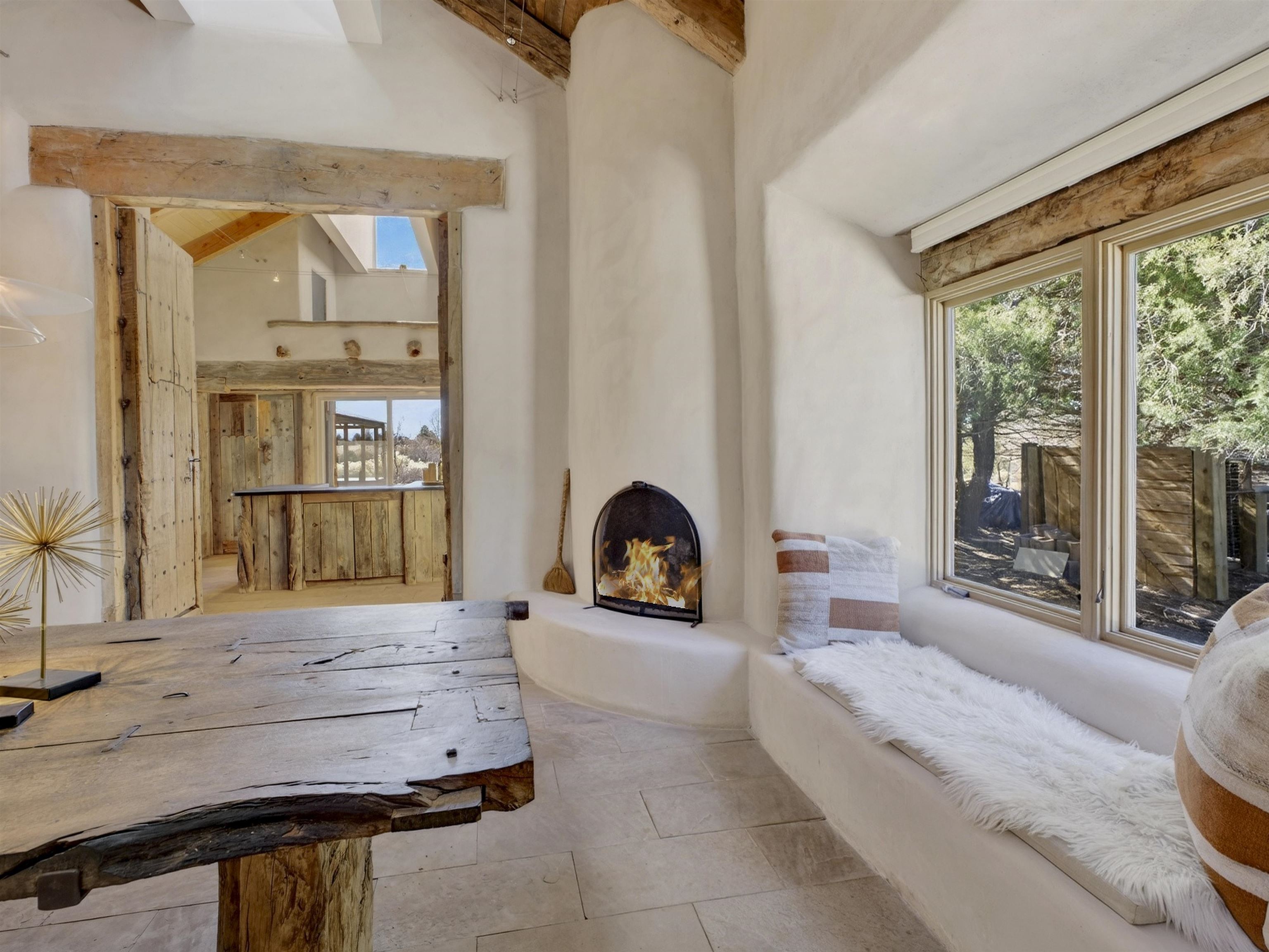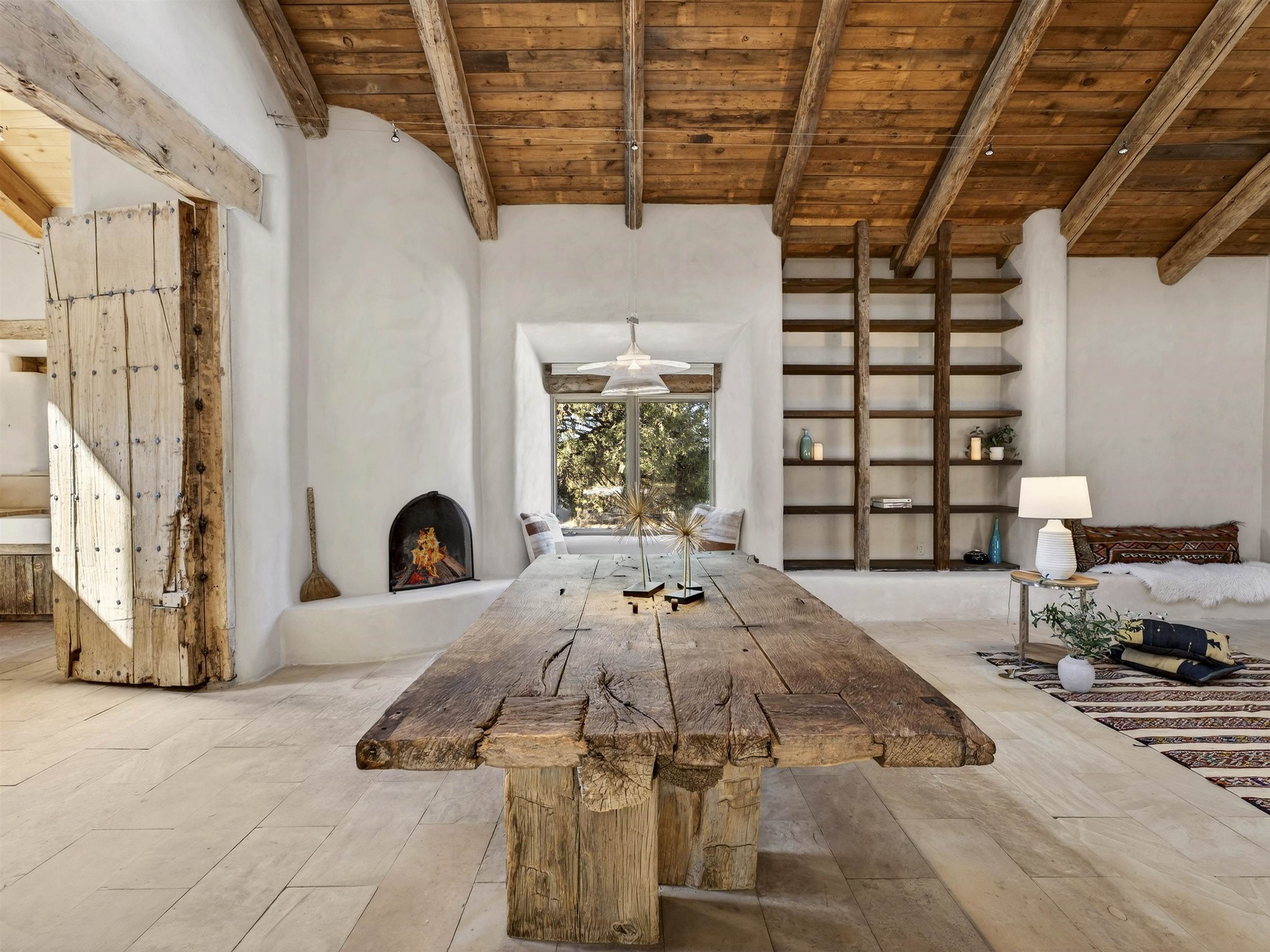 Tucked into the foothills of Arroyo Seco, this distinctive residential compound offers privacy, character, and classic Northern New Mexico charm. Set on approximately 1.5 acres at the end of a quiet road, the property includes a two-story main residence, a separate guest house, and a traditional root cellar, all surrounded by mature trees, native landscaping, and sweeping mountain views. The main 2-story home features 2 bedrooms and 2 bathrooms, with an open, light-filled floor plan showcasing soaring ceilings, custom built-ins, multiple fireplaces, and radiant in-floor heating throughout. A well-appointed cook’s kitchen flows seamlessly into the living and dining areas, creating an inviting space for both everyday living and entertaining. The guest house offers 2 bedrooms and 1.5 bathrooms, with generously sized rooms, a wood-burning stove, and forced-air heating—ideal for guests, extended living, or flexible use. Outdoors, the property unfolds into a serene landscape with natural wildflowers, established trees, and peaceful outdoor spaces, all framed by the Sangre de Cristo Mountains. A rare opportunity to own a one-of-a-kind property with multiple dwellings, privacy, and authentic New Mexico appeal—just minutes from Arroyo Seco and Taos.
