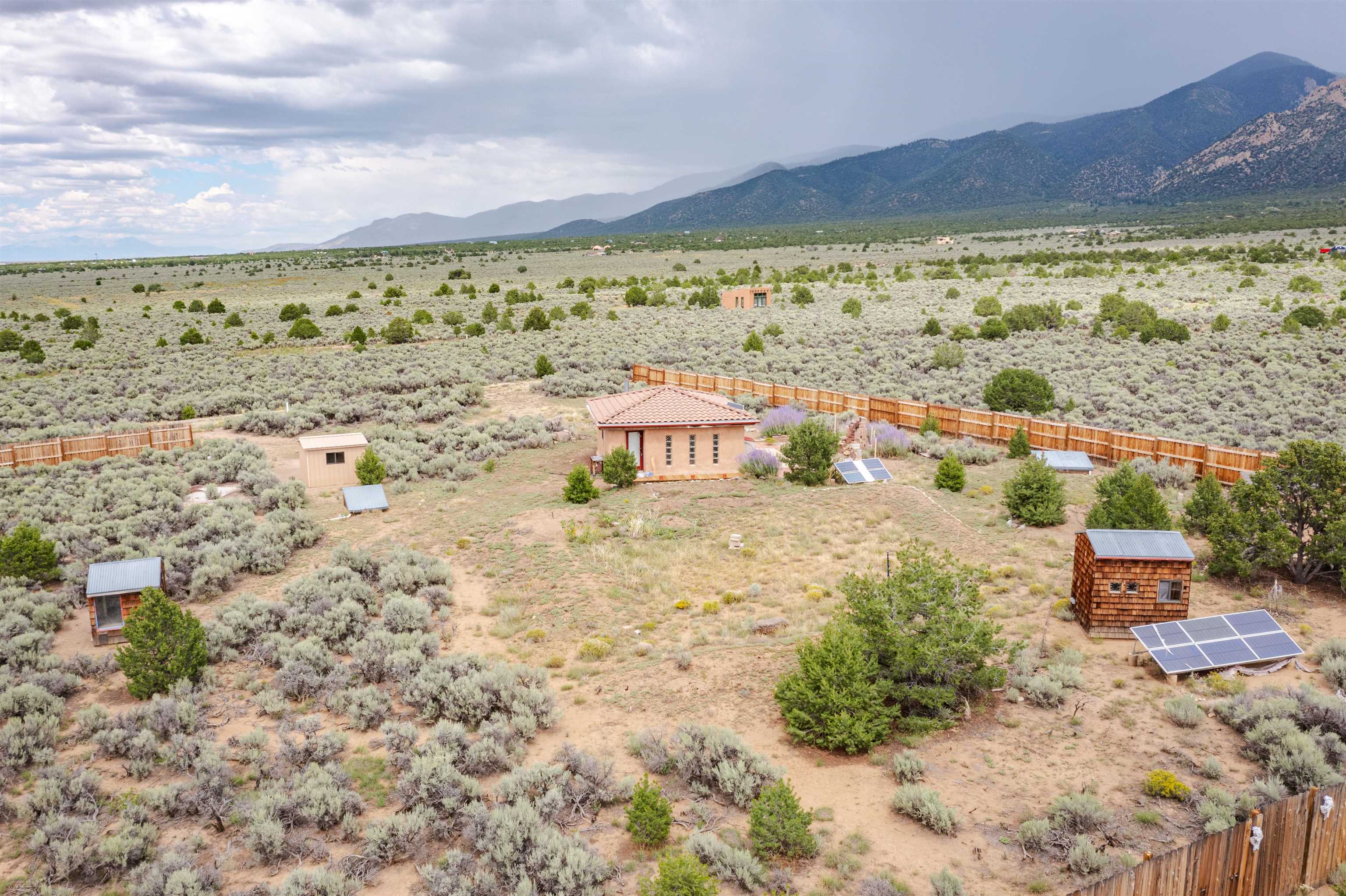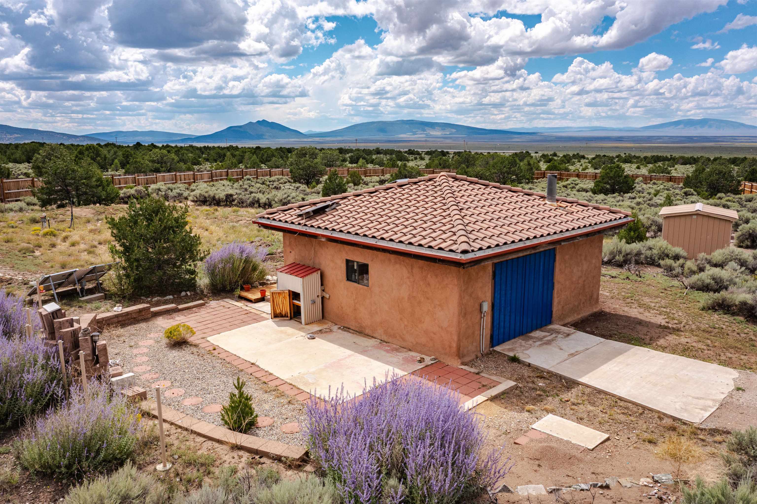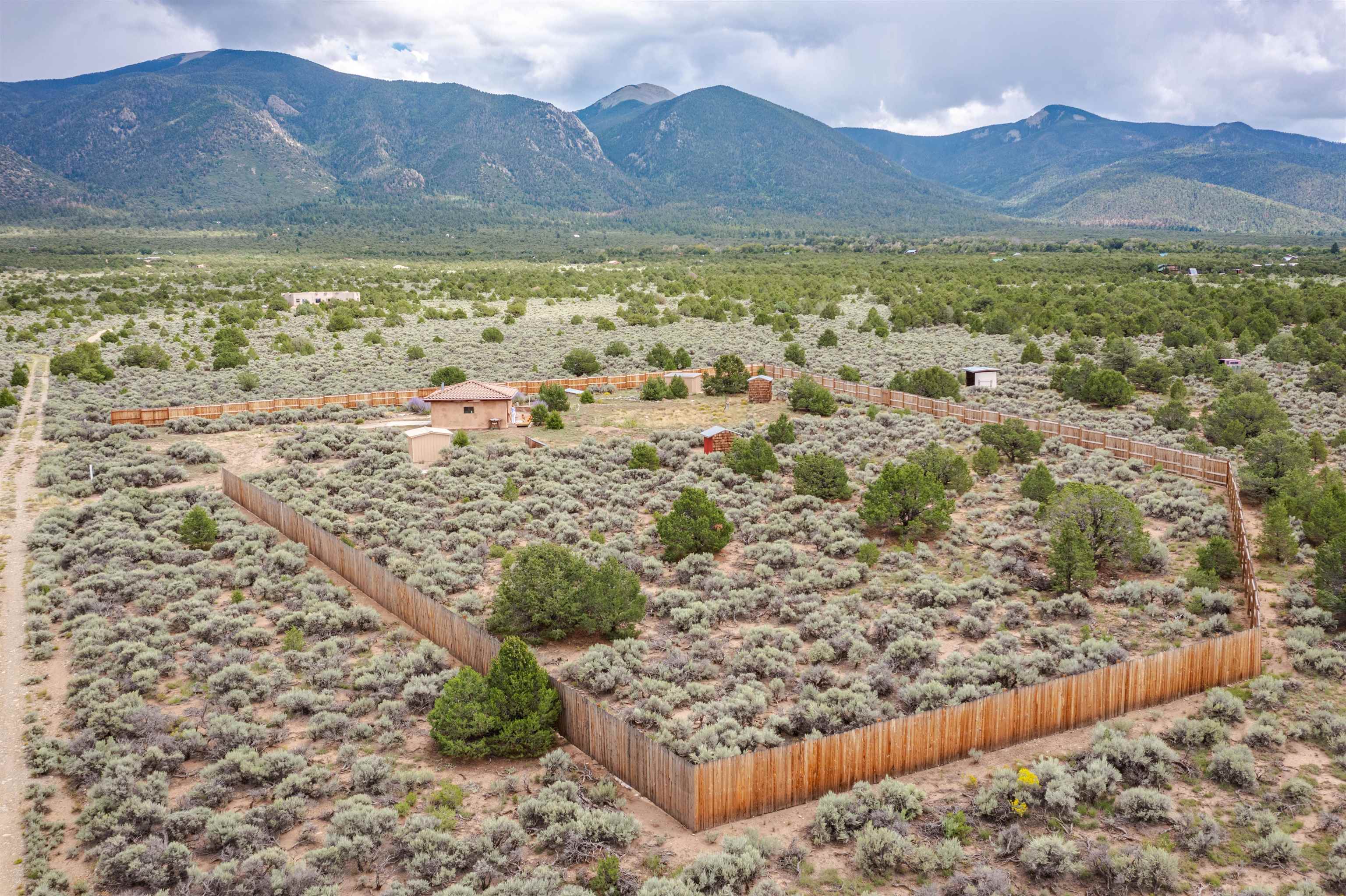 Looking for a comfortable off-grid retreat where you can escape the hustle and bustle of everyday life? This rustic Questa oasis, commanding unobstructed views of majestic peaks and mountain ranges, is a must-see! Step into its sunlit interior with Adobe-finished walls, tile floors, and vaulted wood ceiling. In the cooler weather, you can snuggle up around the wood-burning stove. End the day on the outdoor patio with a fire pit where the sky invites you to stargaze and marvel at the spectacular panorama. Outside, savor peaceful afternoons on the patio under a sail shade or tend to your vegetable garden. Other Noteworthy perks include the newly installed extensive wood fence that surrounds a portion of the nearly 7-acre parcel of land. The wood deck pathways lead you from the front door to the back patio and firepit area. The property has a variety of outbuildings property, an outhouse, a shower house, and three storage buildings, which are perfect for storing your camping, hiking, and ski gear and gardening supplies. The shed outside of the fencing is a handy and useful space for projects and storage. A septic system is an option that can be easily added. Additional highlights are the private water well, extensive fencing around a portion of the property, and solar panels that power the residence. Hiking, skiing, fishing, biking, rafting and more are moments away, along with all the amenities available in Taos. UPGRADES TO PROPERTY: Added gravel to driveway, solar panels (owned outright), hot-water heater, and privacy fence. ITEMS THAT CONVEY: All interior furniture. Staging pieces do not convey but are available for sale for $225 (bedding, pillows, decorative vases, and metal vases with flowers and greenery). An approximate estimate to install a septic system is $7,500.00. FINANCIAL: This property does not qualify for a conventional residential loan. This property may qualify for a partial loan with a land loan. Seller financing is not an option.