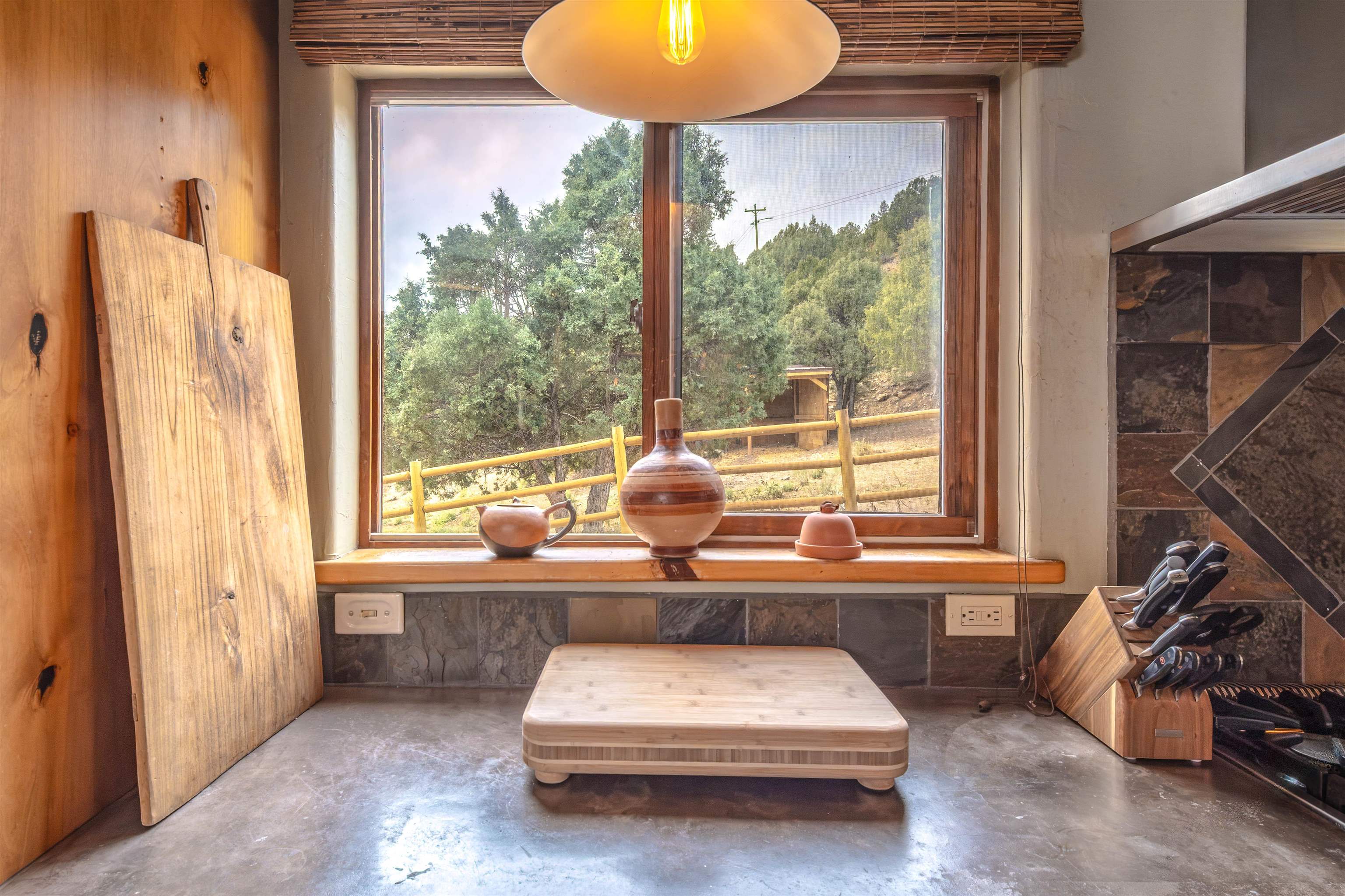 Mountain serenity awaits with this main house and guest cabin bordering The Carson National Forest. Welcome to your mountain sanctuary in Taos Canyon with breathtaking views, modern comfort, and direct access to the forest all coming together in perfect harmony. Set on just over six acres, this remarkable property includes a beautifully updated main home and a charming log guest cabin, offering the ultimate combination of privacy and versatility.  The 2,200+ square foot main residence is filled with natural light and stunning views from every angle. The open living and dining area features expansive picture windows that frame the surrounding peaks, while a newly installed pellet stove adds a cozy glow on crisp mountain evenings. The large kitchen is both elegant and practical, featuring concrete countertops, slate backsplash, a large island with seating, custom wood cabinetry, pantry space, and a Viking professional gas range, making this ideal for those who love to cook and entertain.  The main-level ensuite bedroom opens directly to the wraparound deck, perfect for morning coffee or evenings spent under star-filled skies. Upstairs, a flexible loft-style living space provides room for a home office, art studio, or media lounge, complete with its own private balcony. Two additional spacious bedrooms with skylights and a full bathroom complete the upper level.  Just steps away, the 738 square foot guest cabin offers endless possibilities—whether as an artist’s retreat, vacation rental, or private quarters for friends and family. It includes a bedroom, full bathroom with stackable washer/dryer, galley kitchen, and open living area with a wood-burning stove and wood floors.  Between the two homes, a fenced cobblestone patio and deck create an inviting outdoor oasis for gathering, relaxing, and soaking in the forest’s peace and quiet. Property fencing and outbuildings allow for you to bring your horses and have them enjoy the beautiful surroundings as well.  Ideally positioned between Taos and Angel Fire, this property offers easy access to Taos Plaza, world-class skiing, golf, and the year-round recreation of Angel Fire Resort. Experience the very best of Northern New Mexico—four distinct and beautiful seasons, endless adventure, and a setting that’s as inspiring as it is serene.  Your mountain life begins here.