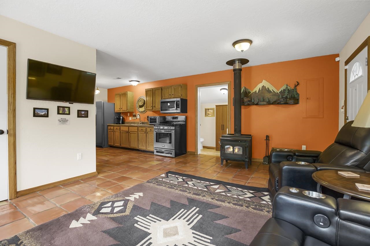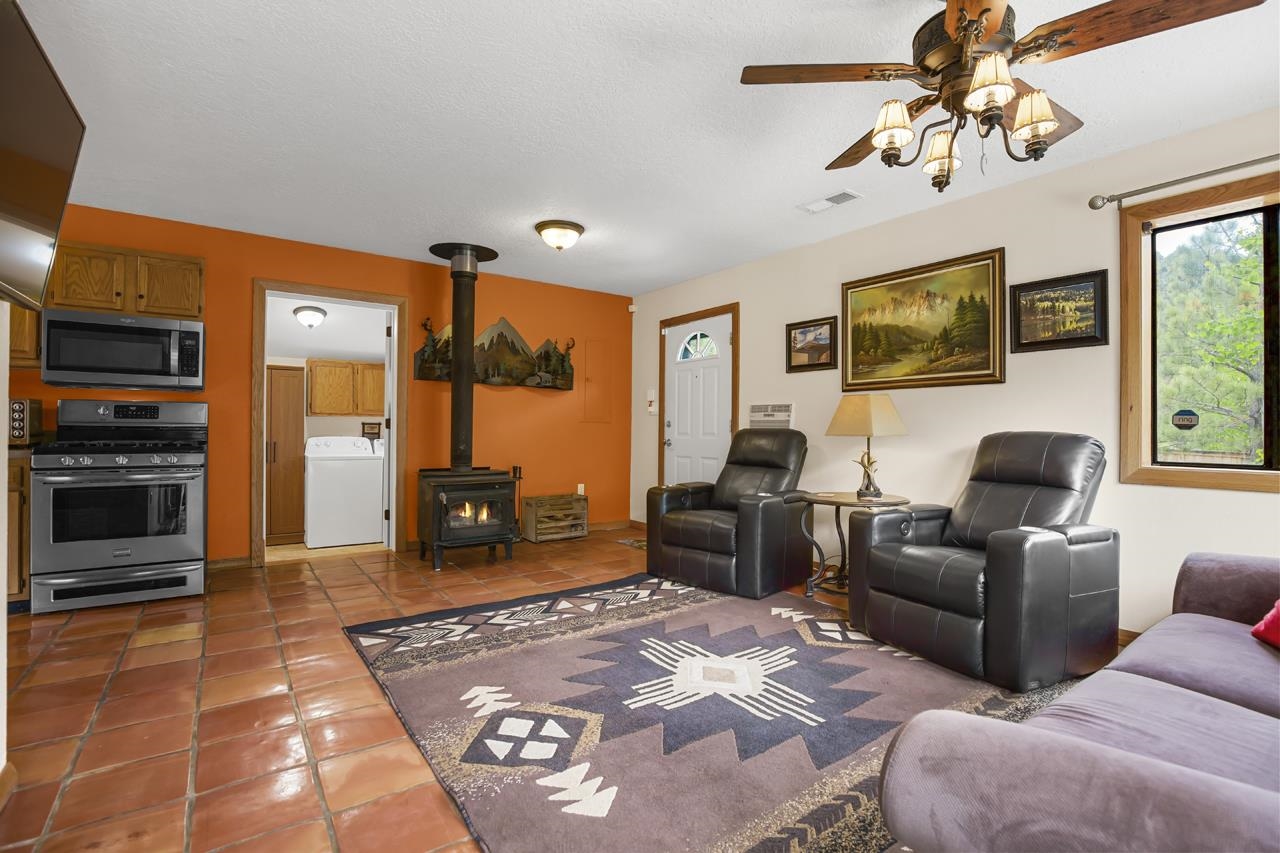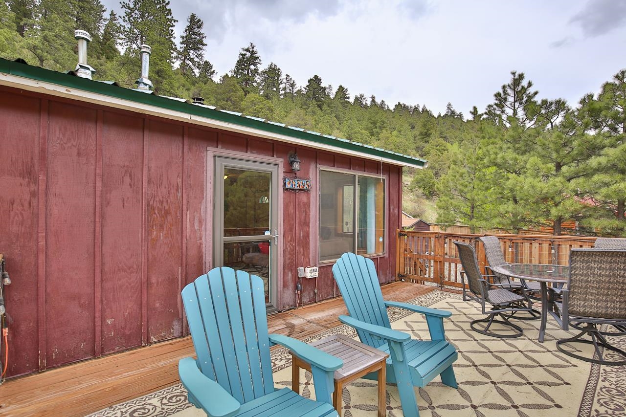 Welcome to your cozy sanctuary on the sunny side of the canyon! This beautifully maintained one-bedroom, one-and-a-half-bath cabin offers a perfect blend of comfort and potential. With approximately 753 square feet of well-designed living space, this cabin is fully furnished and ready for you to move in. Step outside onto the expansive front deck, an ideal spot for sipping your morning coffee while soaking in the breathtaking mountain views. The property features stunning landscaping, providing a serene backdrop for relaxation and outdoor enjoyment. One of the standout features of this property is the oversized storage building, with a double loft, which can easily be transformed into a workshop or studio. It's fully insulated and simply needs electricity to be functional, making it a versatile addition to your new home. The cabin has been generously cleared along the backside, offering you the exciting potential to expand and customize the space to fit your needs. Whether you envision adding more living area, another bedroom, or even a larger gathering space, the possibilities are endless! Situated on an approximately 3/4-acre, this cabin features a 6-foot privacy fence around the front and sides of the property, featuring two drive gates for easy access, including RV parking through the lower drive gate. You'll enjoy the peace and privacy this property offers while being conveniently located halfway between Taos and Angel Fire. This location is a dream for outdoor enthusiasts, featuring nearby hiking trails and convenient access to premier ski resorts, including Angel Fire, Taos Ski Valley, and Red River. Whether you're looking for a full-time residence, a part-time getaway, or a lucrative investment property, this charming cabin is the perfect choice. Don't miss out on your chance to own this special retreat in Taos Canyon!