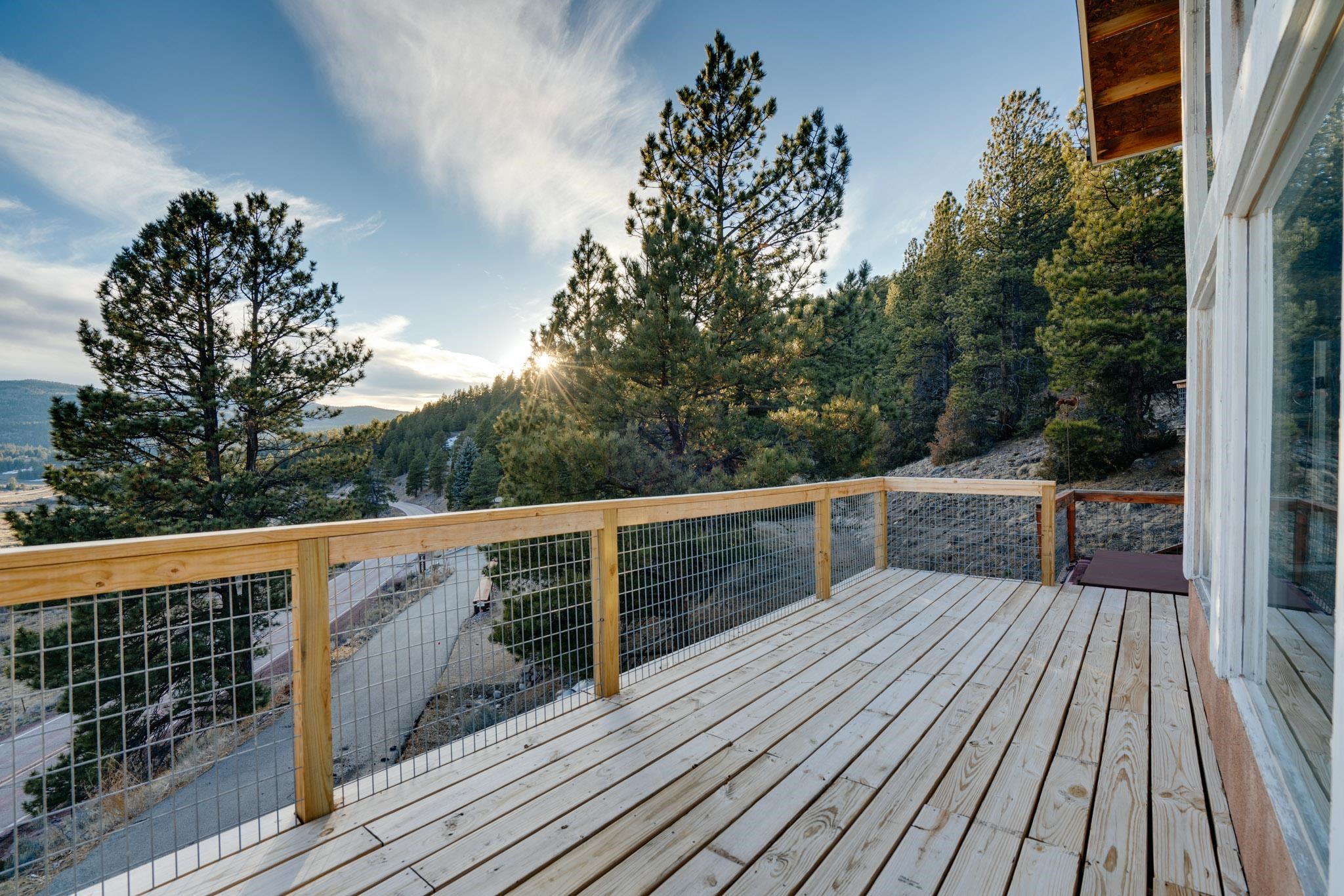 Embrace the mountain lifestyle in this beautiful custom 4-bedroom, 2-bath retreat set on .75 acres and surrounded by the natural beauty of Northern New Mexico. Perfectly positioned to capture stunning mountain views, the living room features dramatic floor-to-ceiling windows that bring the outdoors in and fill the home with natural light. Cozy up beside one of the two fireplaces, including a private fireplace in the primary bedroom, creating the perfect setting for cool mountain evenings. Step out onto the spacious deck to relax with your morning coffee, watch the changing colors of the mountains, or enjoy peaceful stargazing under the clear alpine sky. Backing directly to forest land, the property offers privacy, abundant wildlife, and immediate access to hiking and outdoor exploration right from your backyard. Whether you're looking for a full-time mountain home, weekend escape, or investment getaway, this property offers the perfect blend of comfort, scenery, and adventure in the heart of Northern New Mexico. Square footage is approximate only.