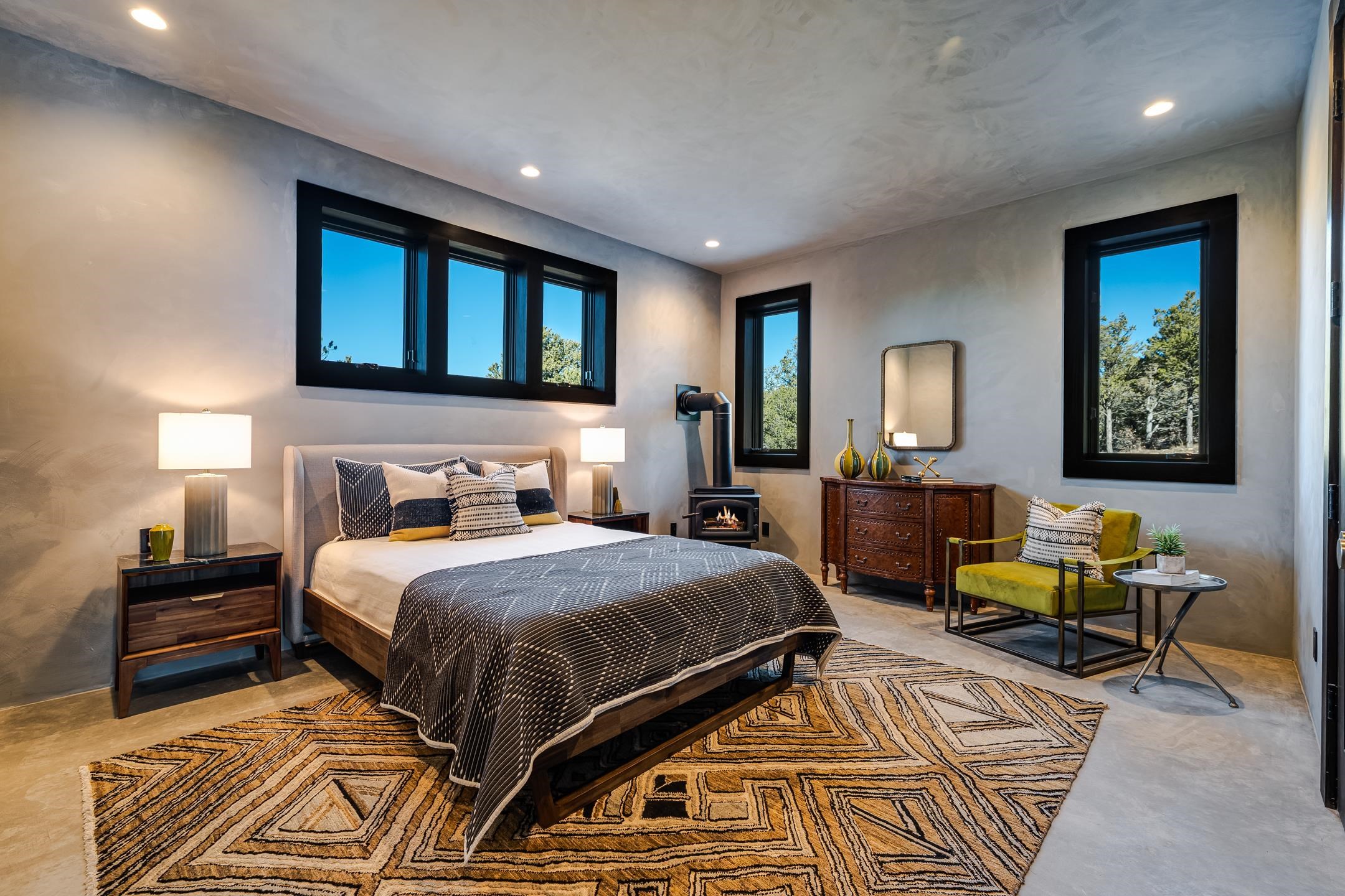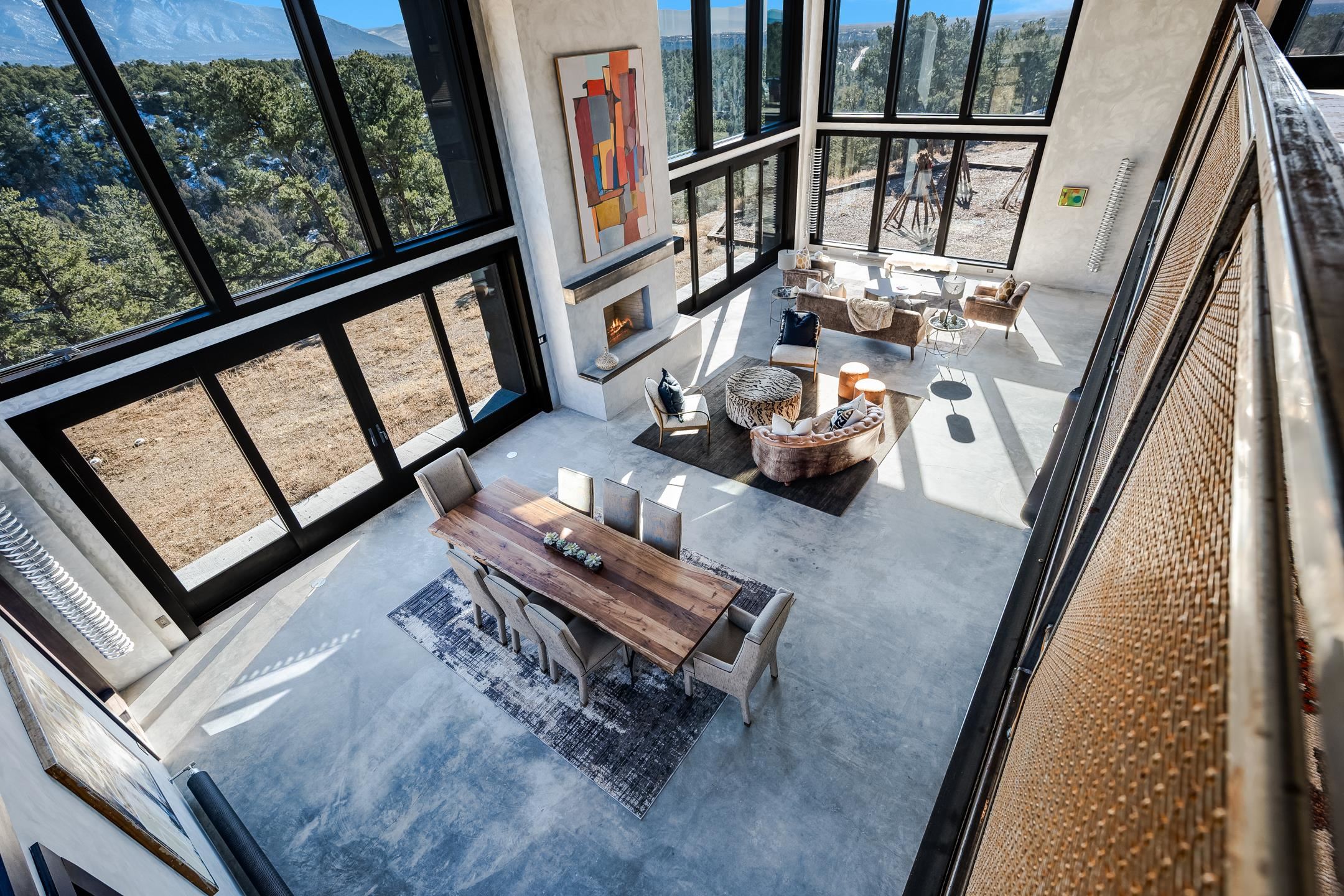 An exquisite home and true work of art, Raven’s View is a rare and exceptional offering in Taos, New Mexico. Often described as unparalleled, incomparable, distinctive, and rare, this once-in-a-lifetime property delivers an extraordinary living experience immersed in nature. Nestled on 10 private acres, the residence offers approximately 7,000 square feet, featuring 4 bedrooms and 3.5 baths, along with breathtaking 360-degree million-dollar views of the El Salto Mountains, Pueblo Peak, and the Truchas Peaks. The setting provides a remarkable sense of peace, comfort, and tranquility, where one feels both protected and elevated above the world. The home was built by highly regarded Taos builder Don Pennington, known locally for his sculptural, custom homes and exceptional craftsmanship. The design was created by owner Mala Mukherji, an author, designer, and healer, who synthesized her life’s work into a physical space deeply interconnected with the harmony and majesty of the surrounding landscape. Intentional design defines every area of the home. Thoughtfully created spaces allow for both solitude and gathering, seamlessly entwined with pine, cedar, and piñon forest, expansive skies, abundant sunlight, and endless views. Private retreats invite rest and contemplation while maintaining a strong connection to the natural beauty outside.  The construction and infrastructure reflect the strength and presence of the five sacred peaks surrounding the property. Built with solid metal (STEEL) and (2’ x 8’) wood framing, along with substantial insulation, the home offers exceptional comfort throughout all four seasons. The infrastructure was designed with longevity, efficiency, and comfort in mind, sparing no expense. As Mala states, “One thousand thoughts are behind every inch of this house.” The result is a luxurious yet effortless experience of living in harmony with nature. The home is named for the two ravens believed to have guided and protected each step of its creation. Located at the top of the secluded and exclusive Turley Mill subdivision, the property borders the Carson National Forest, providing endless hiking and trail opportunities. Wildlife is abundant, including elk, mule deer, bobcat, and wild turkeys. Additional features include a private owners’ wing separated from the guest wing by a sheltered upper deck, outdoor hot tub deck, expansive outdoor recreation deck, chef’s kitchen with custom appliances, radiant in-floor heating, extensive storage areas, and an oversized three-car garage. Raven’s View is more than a home—it is a sanctuary, a sculptural masterpiece, and a rare opportunity to own an extraordinary property in Taos.  Taos is known for its vibrant art scene, rich Native American and Spanish history, stunning high-desert landscapes (like the Rio Grande Gorge), world-class skiing at Taos Ski Valley, and unique cultural blend, particularly the ancient, inhabited adobe Taos Pueblo, a UNESCO World Heritage Site. It's a haven for artists, photographers, outdoor enthusiasts, and those seeking unique architecture and Southwestern culture.