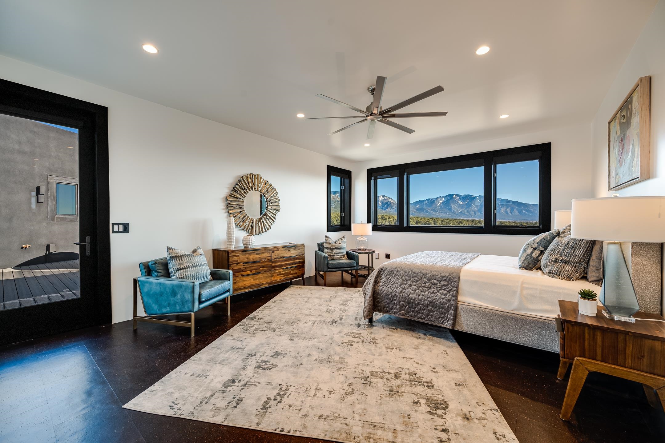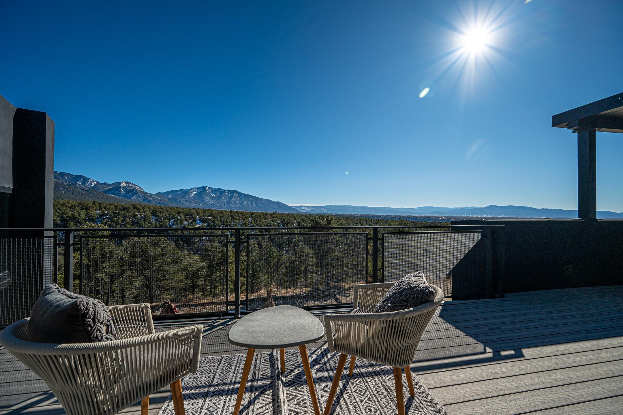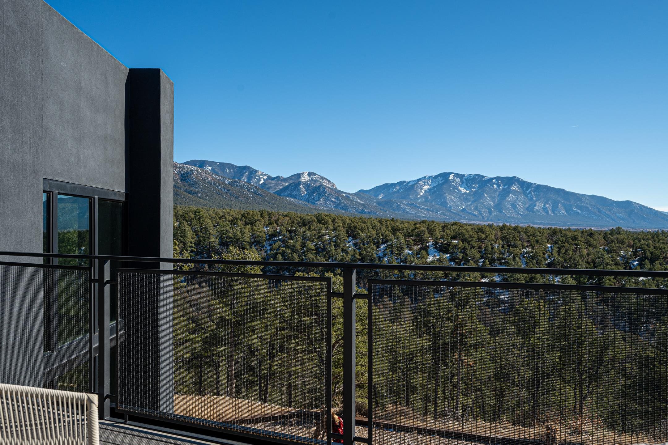 An exquisite home and true work of art, Raven’s View is a rare and exceptional offering in Taos, New Mexico. Often described as unparalleled, incomparable, distinctive, and rare, this once-in-a-lifetime property delivers an extraordinary living experience immersed in nature. Nestled on 10 private acres, the residence offers approximately 7,000 square feet, featuring 4 bedrooms and 3.5 baths, along with breathtaking 360-degree million-dollar views of the El Salto Mountains, Pueblo Peak, and the Truchas Peaks. The setting provides a remarkable sense of peace, comfort, and tranquility, where one feels both protected and elevated above the world. The home was built by highly regarded Taos builder Don Pennington, known locally for his sculptural, custom homes and exceptional craftsmanship. The design was created by owner Mala Mukherji, an author, designer, and healer, who synthesized her life’s work into a physical space deeply interconnected with the harmony and majesty of the surrounding landscape. Intentional design defines every area of the home. Thoughtfully created spaces allow for both solitude and gathering, seamlessly entwined with pine, cedar, and piñon forest, expansive skies, abundant sunlight, and endless views. Private retreats invite rest and contemplation while maintaining a strong connection to the natural beauty outside. The construction and infrastructure reflect the strength and presence of the five sacred peaks surrounding the property. Built with solid metal (STEEL) and (2’ x 8’) wood framing, along with substantial insulation, the home offers exceptional comfort throughout all four seasons. The infrastructure was designed with longevity, efficiency, and comfort in mind, sparing no expense. As Mala states, “One thousand thoughts are behind every inch of this house.” The result is a luxurious yet effortless experience of living in harmony with nature. The home is named for the two ravens believed to have guided and protected each step of its creation. Located at the top of the secluded and exclusive Turley Mill subdivision, the property borders the Carson National Forest, providing endless hiking and trail opportunities. Wildlife is abundant, including elk, mule deer, bobcat, and wild turkeys. Additional features include a private owners’ wing separated from the guest wing by a sheltered upper deck, outdoor hot tub deck, expansive outdoor recreation deck, chef’s kitchen with custom appliances, radiant in-floor heating, extensive storage areas, and an oversized three-car garage. Raven’s View is more than a home—it is a sanctuary, a sculptural masterpiece, and a rare opportunity to own an extraordinary property in Taos. Taos is known for its vibrant art scene, rich Native American and Spanish history, stunning high-desert landscapes (like the Rio Grande Gorge), world-class skiing at Taos Ski Valley, and unique cultural blend, particularly the ancient, inhabited adobe Taos Pueblo, a UNESCO World Heritage Site. It's a haven for artists, photographers, outdoor enthusiasts, and those seeking unique architecture and Southwestern culture.