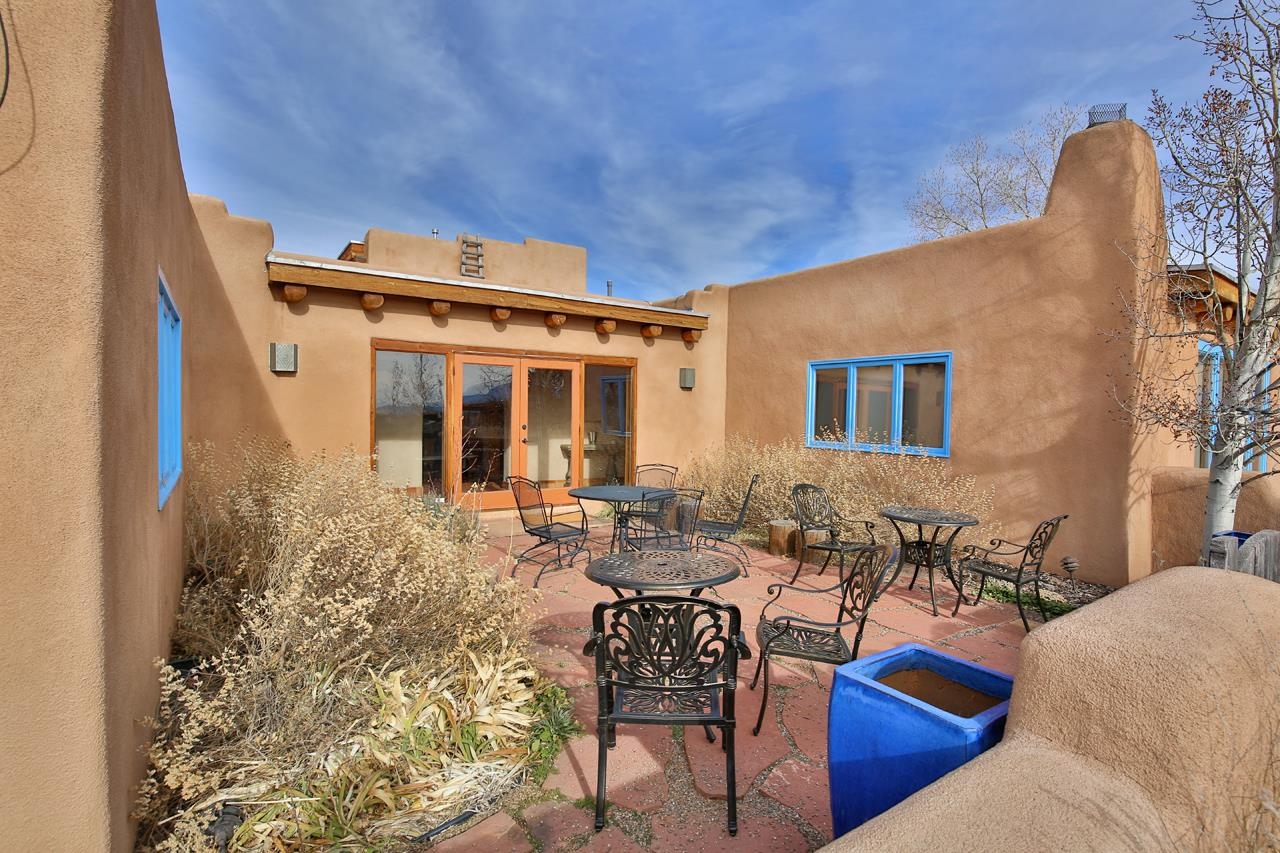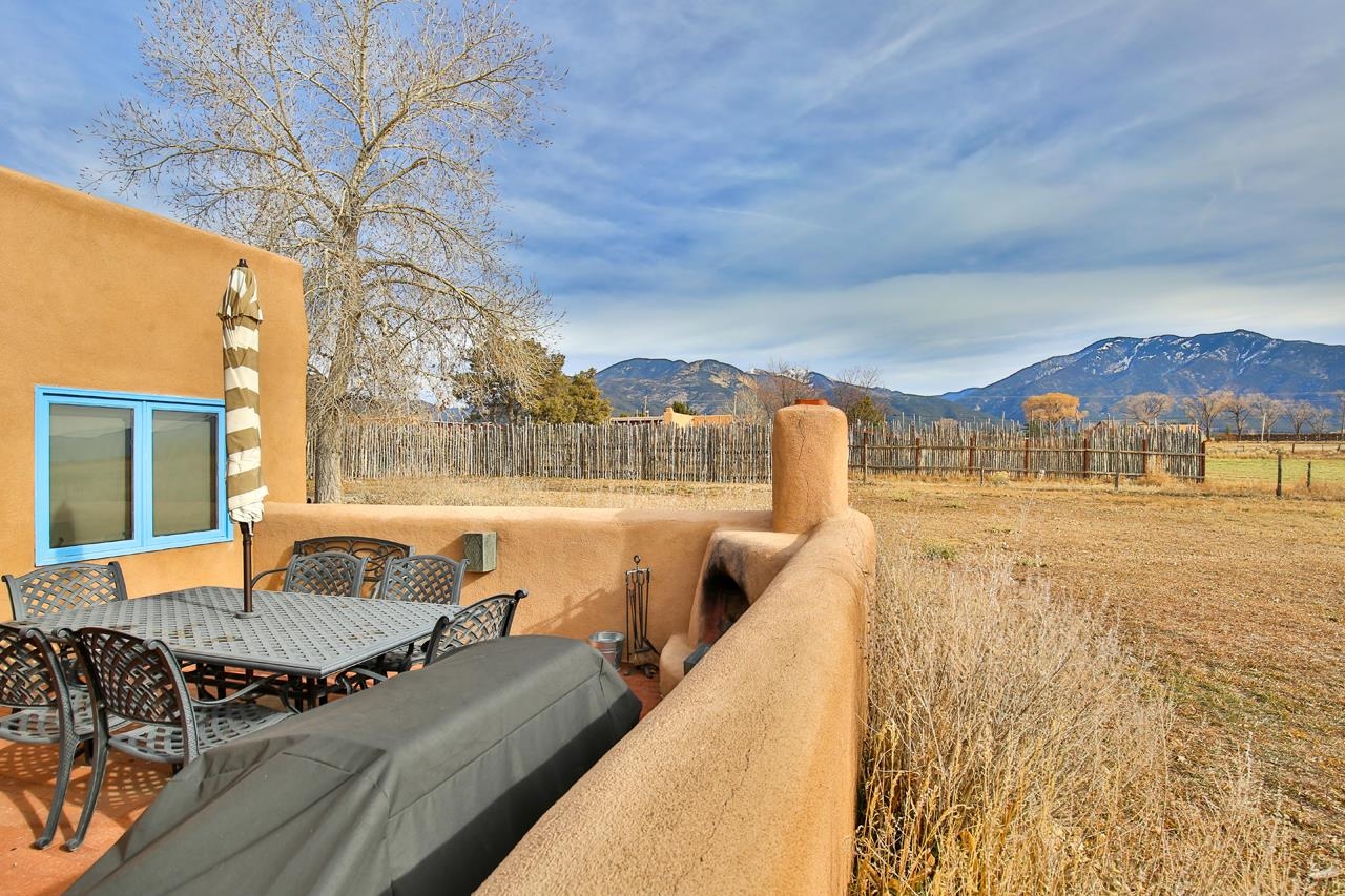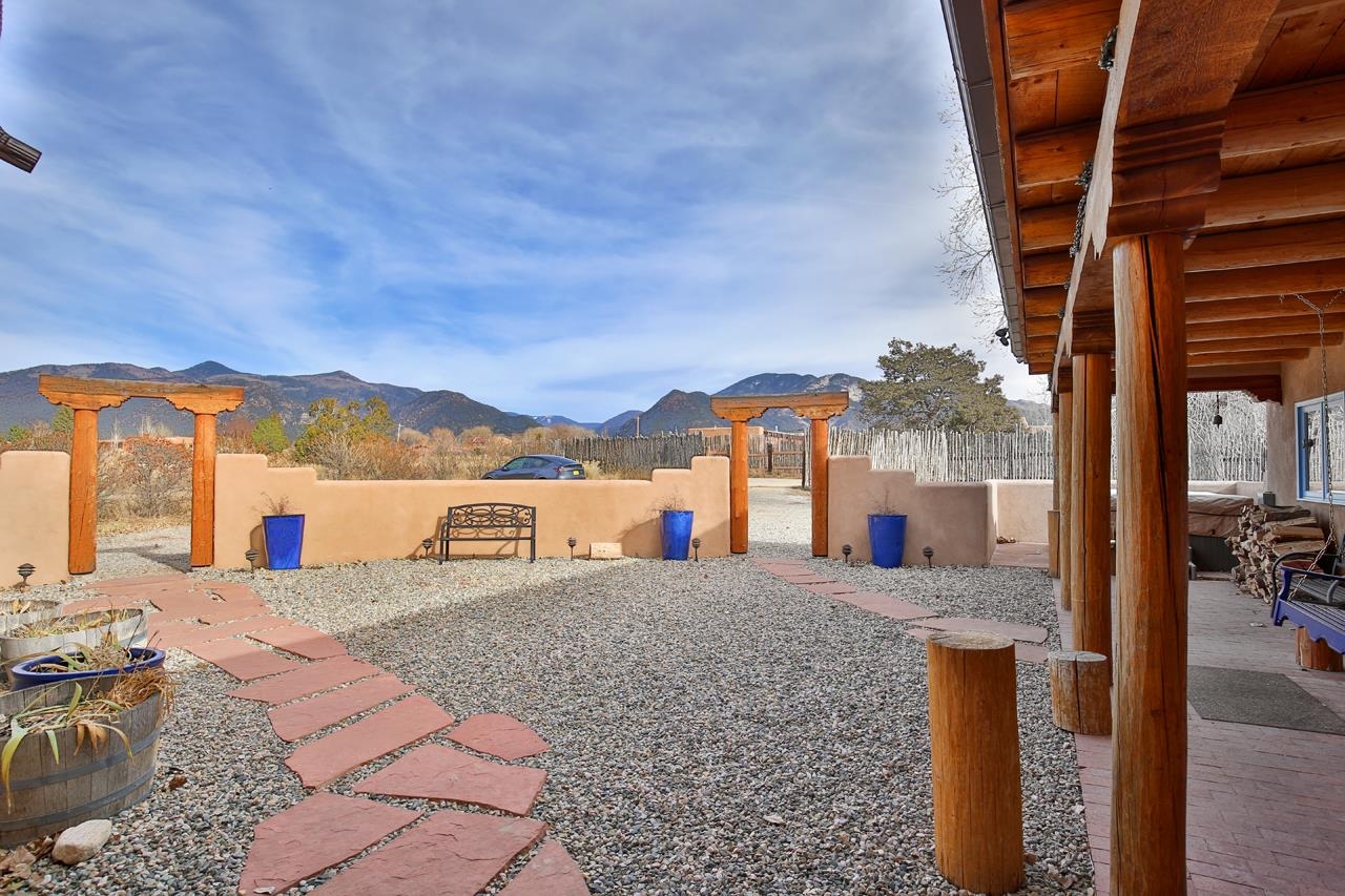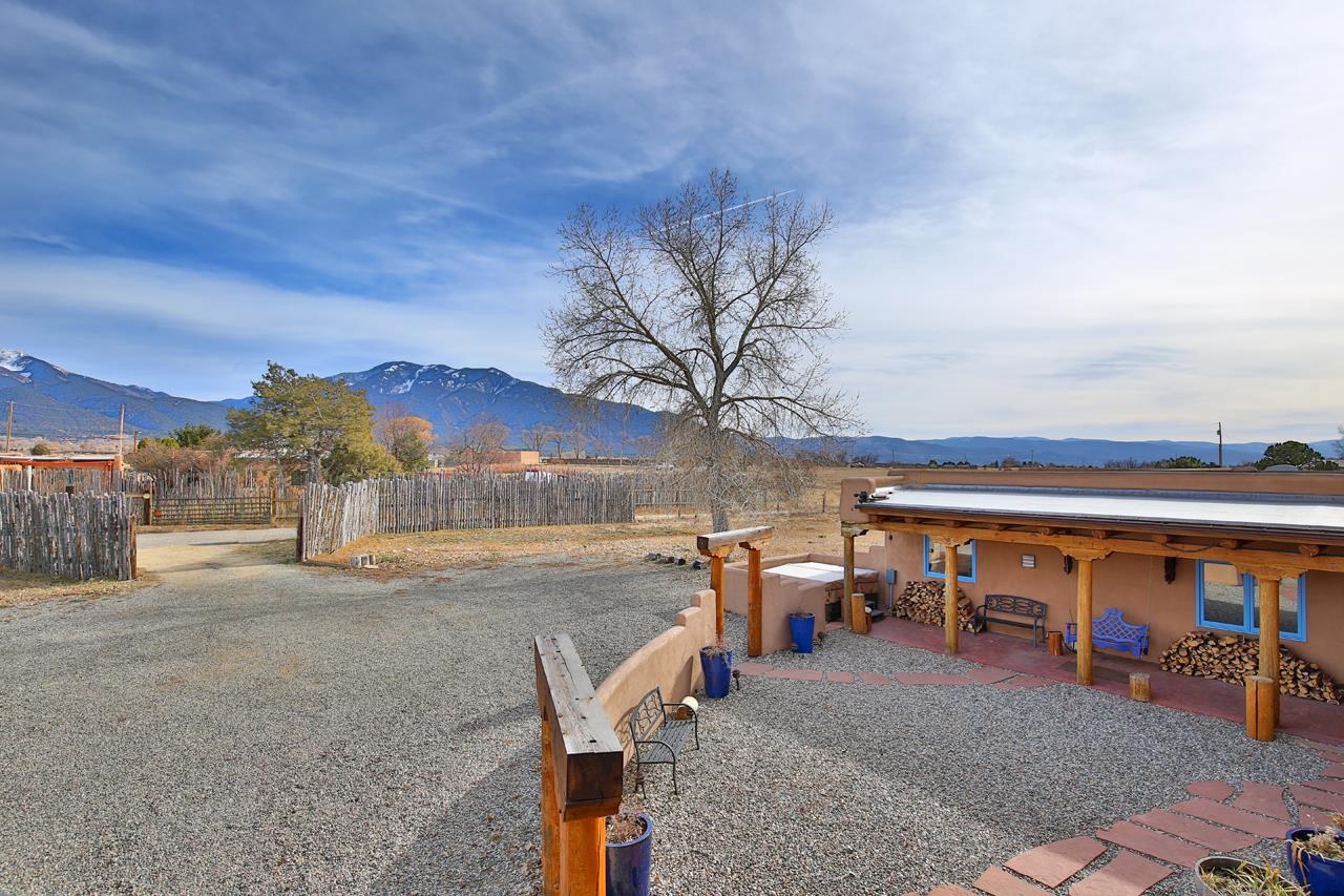 Welcome to Bright Star – Your Taos Oasis Location, Location, Location! Bright Star offers an unparalleled Taos experience, ideally situated for those who seek the best of both peaceful living and adventure. Just 6 minutes away, this charming village is a hidden gem with outstanding restaurants, galleries, and local shops, including Sol Food Café & Market for your healthy eating and grocery needs. Arroyo Seco offers a relaxed, close-knit community atmosphere with easy access to outdoor activities and stunning mountain views. Only 20 minutes away, Taos Ski Valley is one of New Mexico's premier skiing and snowboarding destinations. Whether you’re an avid skier, snowboarder, or just enjoy the mountain scenery, this world-class resort is right at your doorstep. Another 20 minutes away, the vibrant and historic town of Taos offers world-class art galleries, unique shopping, fine dining, live music, and rich cultural experiences. Here, you’ll find a lively mix of Southwestern charm and modern amenities. Set on 2.48 acres of lush, irrigated valley land with surface water rights, Bright Star is a sanctuary offering sweeping 360-degree views of the surrounding mountains. Step through the walled entrance to find a hot tub and a covered portal—perfect for soaking in the majestic mountain views or stargazing under the brilliant New Mexico skies. This fully furnished adobe home blends traditional Taos charm with modern comfort. The spacious entry leads to an open living and dining area, while the kitchen offers ample space for cooking and entertaining. The private bedrooms, ensure a peaceful retreat. Featuring Saltillo tile floors, plaster walls, vigas, and four fireplaces, the home exudes warmth and character. Whether you envision this as a full-time residence or a lucrative short-term rental (the current owner is a Super host), the options are endless. The three-bedroom, two-bath home is designed for both lively gatherings and peaceful solitude, with south-facing windows and courtyards that create a welcoming atmosphere. The kitchen with breakfast nook, an outdoor patio with a fireplace, is perfect for small get togethers, the dining room and larger enclosed patio are perfect for larger gatherings. Entertaining is easy with plenty of indoor space, and fantastic outdoor patios and courtyards. The gazebo and tree swings provide an idyllic setting for relaxation on the lush grounds. Beyond the home, enjoy the benefits of an active Acequia, a chicken coop for fresh eggs, and a domed structure originally designed for stargazing. Known for its dark skies, this area offers ideal conditions for spotting shooting stars and the Milky Way. A charming guest house completes the property, featuring an open floor plan on the first floor, with a spacious bedroom and bathroom upstairs. Glass patio doors lead to a vast covered patio, with a fireplace, where you can take in the peaceful surroundings and stunning mountain views. Don't miss your chance to own this unique property with its prime location and exceptional features, Bright Star is the perfect place to make your Taos dream a reality. Come see for yourself why this property is the best of what Taos has to offer!
