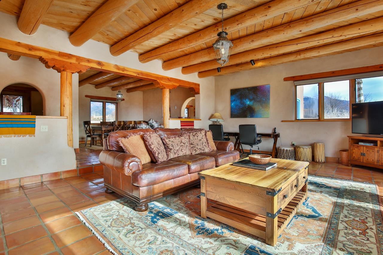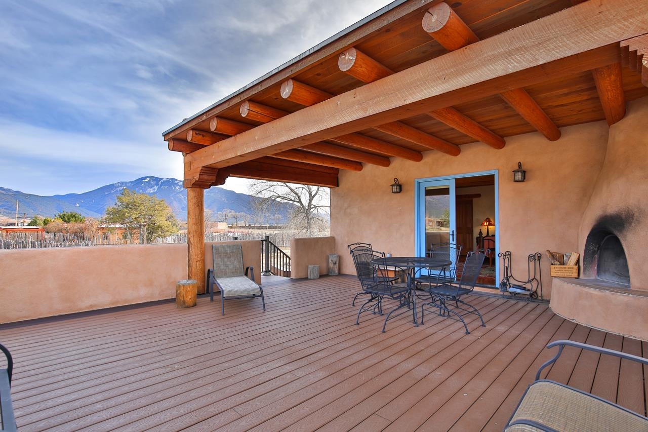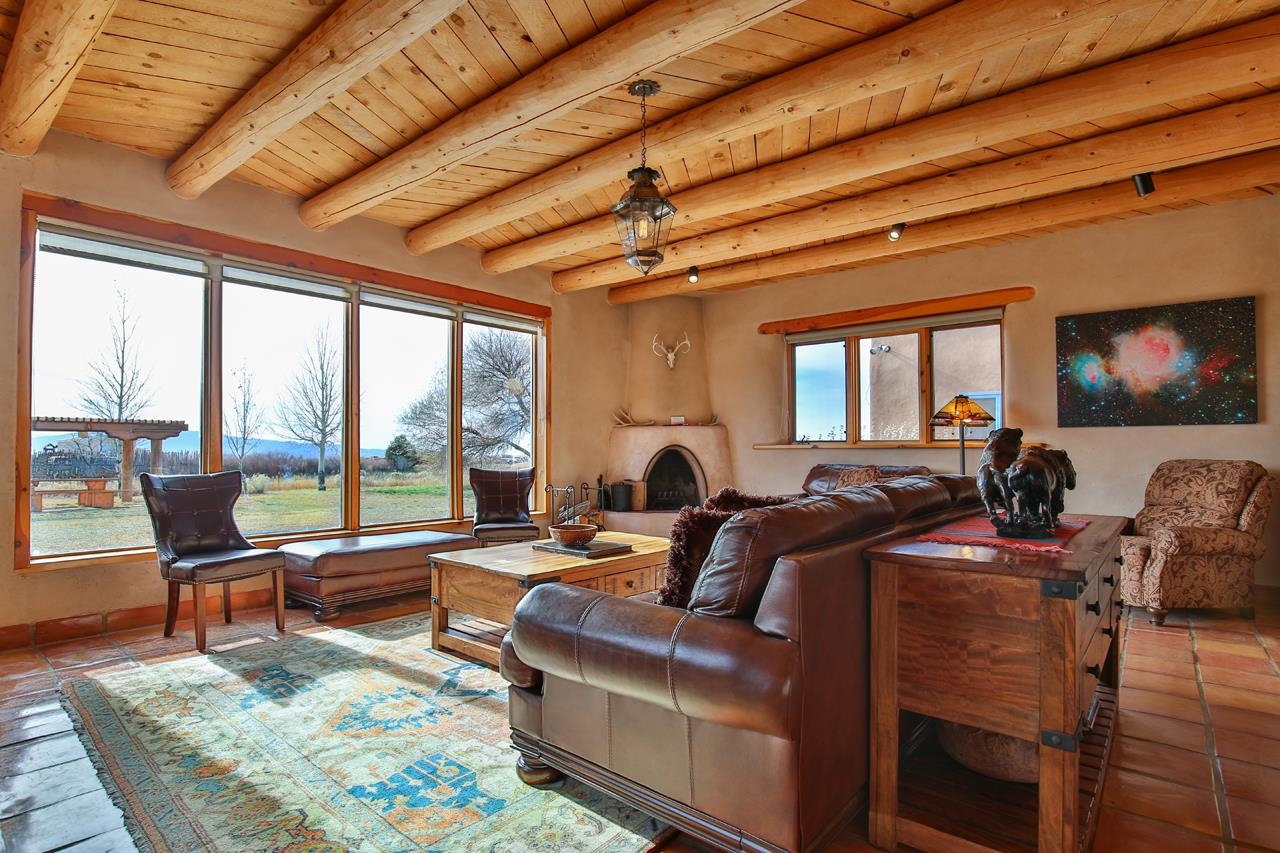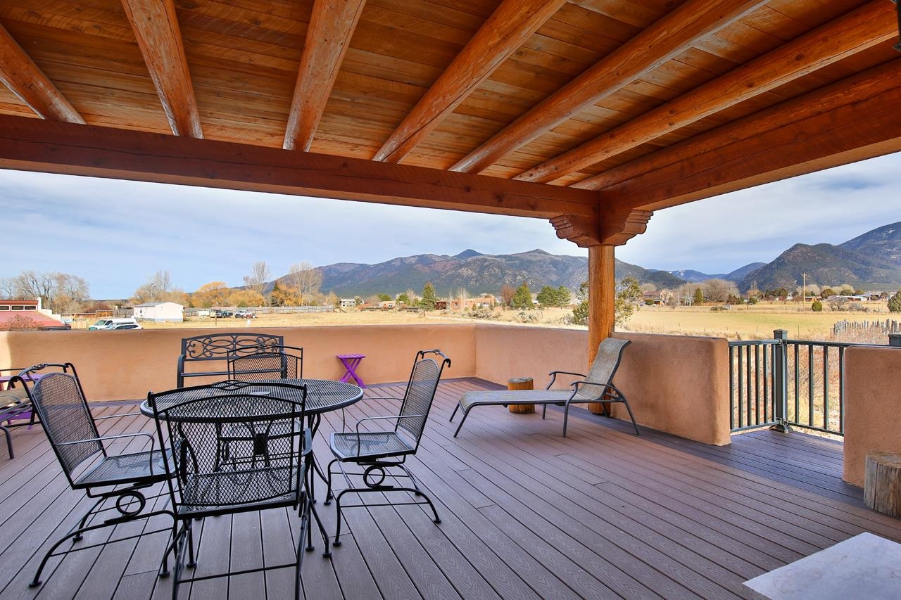 Welcome to Bright Star – Your Taos Oasis Location, Location, Location! Bright Star offers an unparalleled Taos experience, ideally situated for those who seek the best of both peaceful living and adventure. Just 6 minutes away, this charming village is a hidden gem with outstanding restaurants, galleries, and local shops, including Sol Food Café & Market for your healthy eating and grocery needs. Arroyo Seco offers a relaxed, close-knit community atmosphere with easy access to outdoor activities and stunning mountain views. Only 20 minutes away, Taos Ski Valley is one of New Mexico's premier skiing and snowboarding destinations. Whether you’re an avid skier, snowboarder, or just enjoy the mountain scenery, this world-class resort is right at your doorstep. Another 20 minutes away, the vibrant and historic town of Taos offers world-class art galleries, unique shopping, fine dining, live music, and rich cultural experiences. Here, you’ll find a lively mix of Southwestern charm and modern amenities. Set on 2.48 acres of lush, irrigated valley land with surface water rights, Bright Star is a sanctuary offering sweeping 360-degree views of the surrounding mountains. Step through the walled entrance to find a hot tub and a covered portal—perfect for soaking in the majestic mountain views or stargazing under the brilliant New Mexico skies. This fully furnished adobe home blends traditional Taos charm with modern comfort. The spacious entry leads to an open living and dining area, while the kitchen offers ample space for cooking and entertaining. The private bedrooms, ensure a peaceful retreat. Featuring Saltillo tile floors, plaster walls, vigas, and four fireplaces, the home exudes warmth and character. Whether you envision this as a full-time residence or a lucrative short-term rental (the current owner is a Super host), the options are endless. The three-bedroom, two-bath home is designed for both lively gatherings and peaceful solitude, with south-facing windows and courtyards that create a welcoming atmosphere. The kitchen with breakfast nook, an outdoor patio with a fireplace, is perfect for small get togethers, the dining room and larger enclosed patio are perfect for larger gatherings. Entertaining is easy with plenty of indoor space, and fantastic outdoor patios and courtyards. The gazebo and tree swings provide an idyllic setting for relaxation on the lush grounds. Beyond the home, enjoy the benefits of an active Acequia, a chicken coop for fresh eggs, and a domed structure originally designed for stargazing. Known for its dark skies, this area offers ideal conditions for spotting shooting stars and the Milky Way. A charming guest house completes the property, featuring an open floor plan on the first floor, with a spacious bedroom and bathroom upstairs. Glass patio doors lead to a vast covered patio, with a fireplace, where you can take in the peaceful surroundings and stunning mountain views. Don't miss your chance to own this unique property with its prime location and exceptional features, Bright Star is the perfect place to make your Taos dream a reality. Come see for yourself why this property is the best of what Taos has to offer!