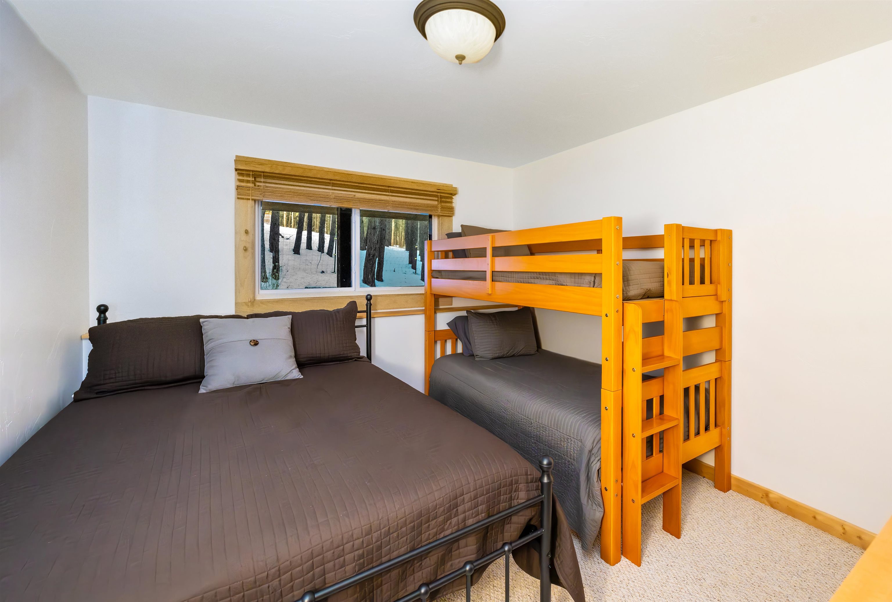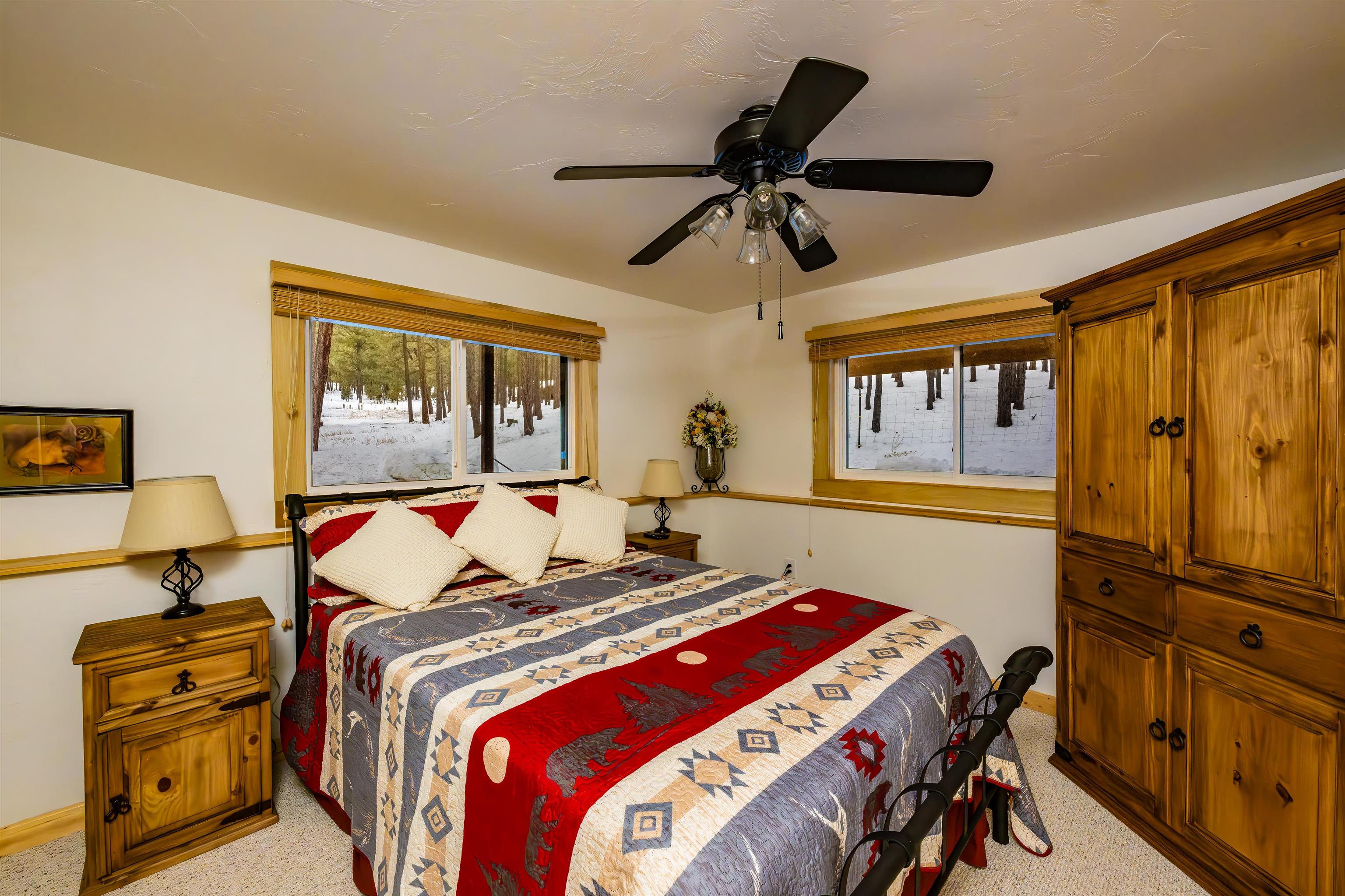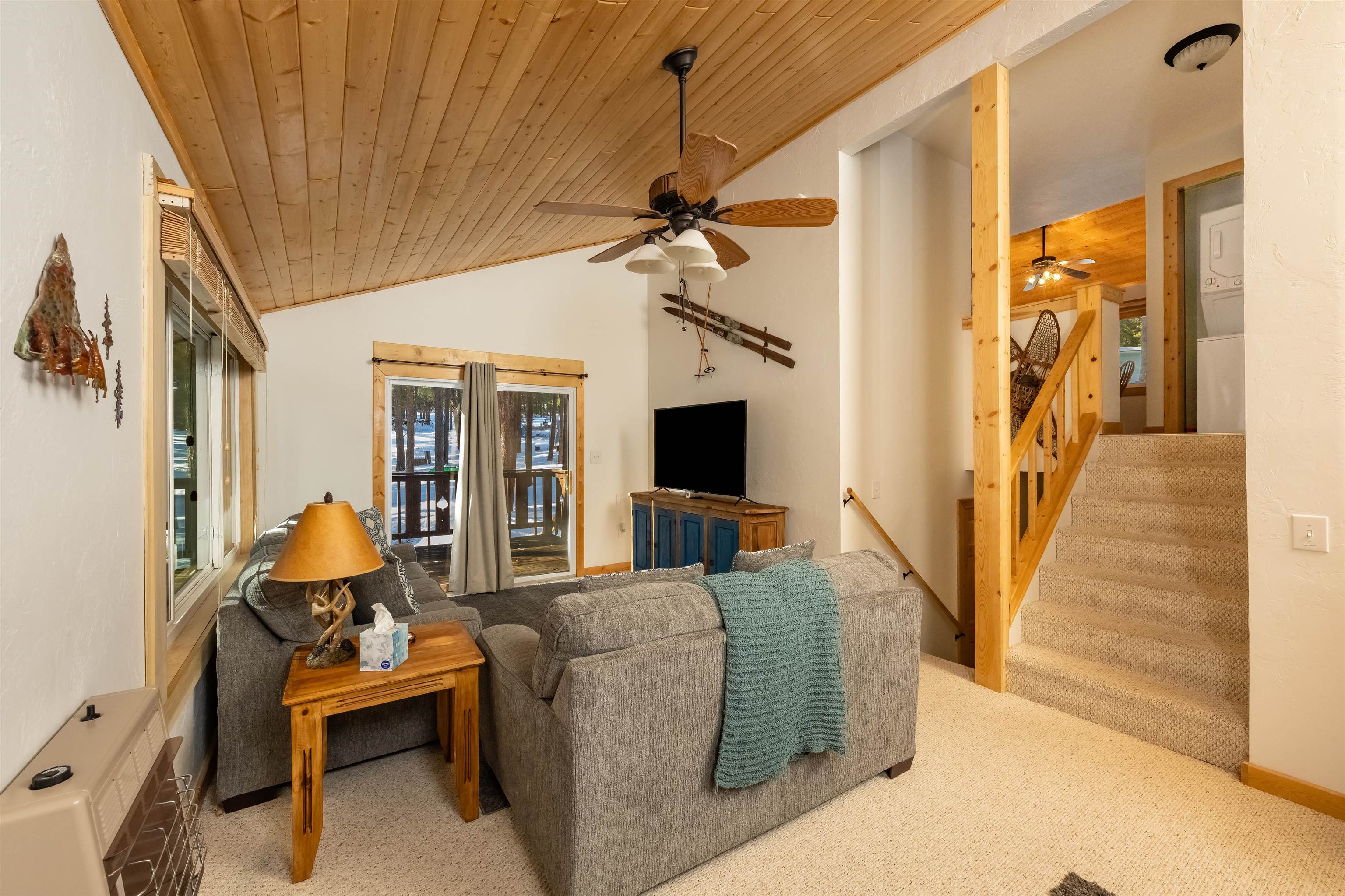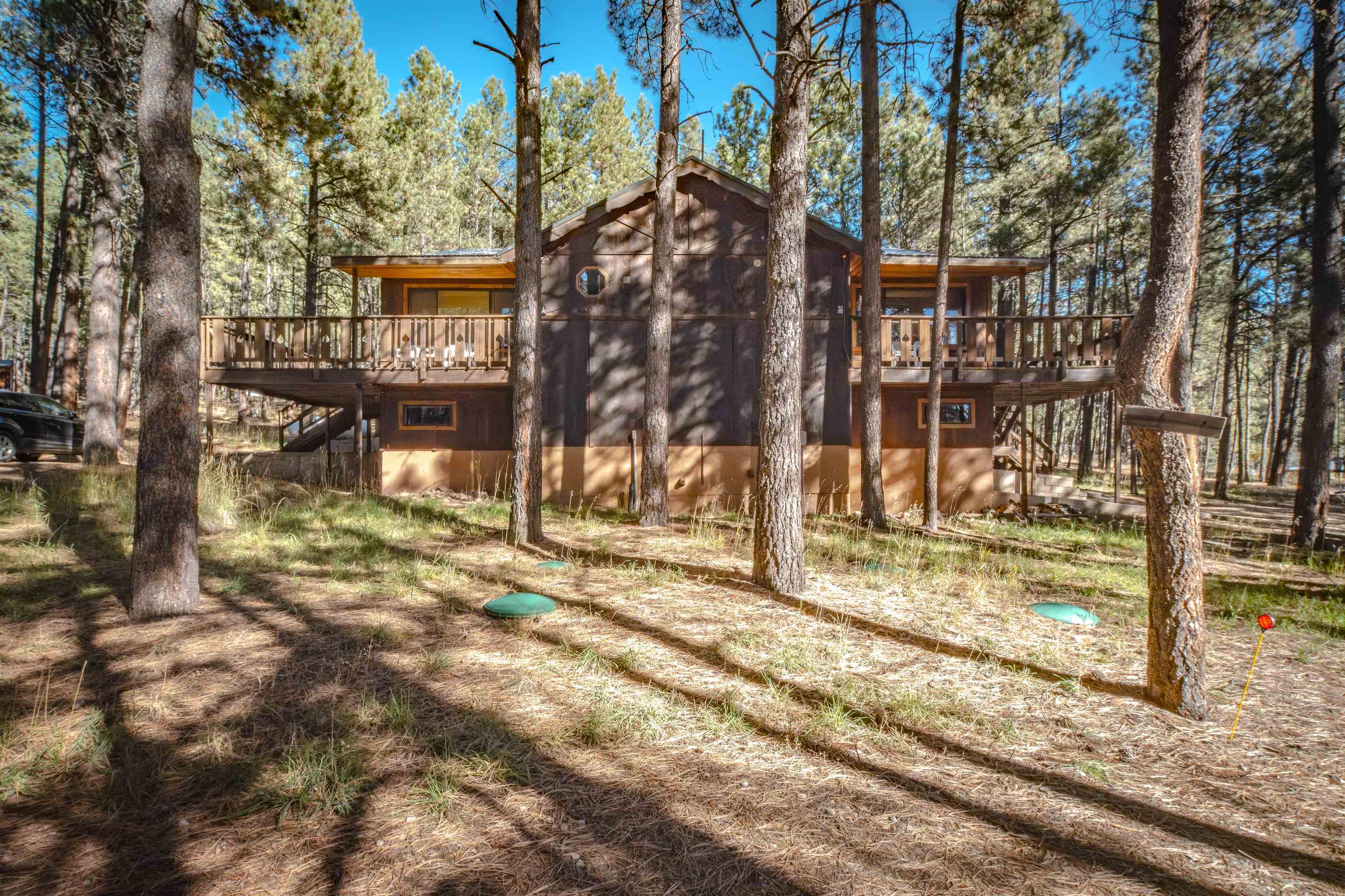 Looking for a mountain home that pays for itself? This well-kept duplex is already income-producing, with a month-to-month tenant on one side bringing in $2,000 a month! With an assumable VA loan at a 2.25% interest rate and seller financing as an option, this property makes for a great investment or mountain getaway that helps cover the bills. Together, the two mirrored units offer 2,930 sq ft of living space on a 1-acre wooded lot, just 10 minutes from Angel Fire Resort. Each side includes 3 bedrooms and 2 baths in a smart split-level layout that gives everyone a little privacy. The main entrance opens to a covered porch with tongue-and-groove ceilings and a welcoming foyer—perfect for kicking off your ski boots after a day on the slopes. The living room centers around a big wood-burning stove that keeps the whole place cozy on snowy days. Downstairs, you’ll find two bedrooms, a full bath, and garage access; upstairs you’ve got the kitchen and primary bedroom. Every level has its own propane wall heater for extra comfort. Recent updates include brand-new windows throughout and tongue-and-groove accents that give the home its warm mountain feel. Each unit has separate utility meters, so it’s easy to manage whether you live in one side or rent them both out. Outside the resort boundary—no membership fees here—saving you thousands every year. Fully furnished and turnkey, this quiet duplex is surrounded by tall pines and designed from the start to be both comfortable and income-generating.