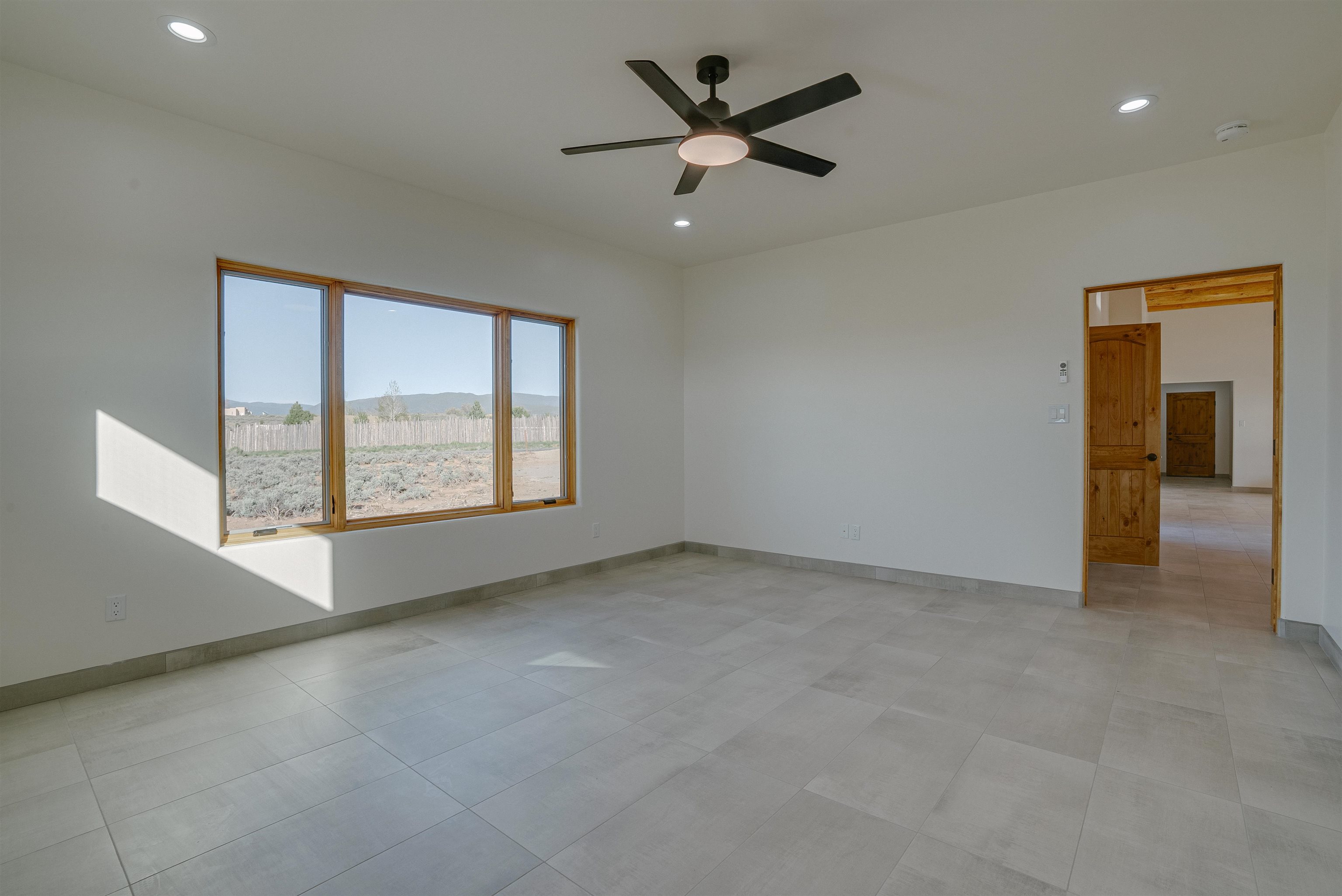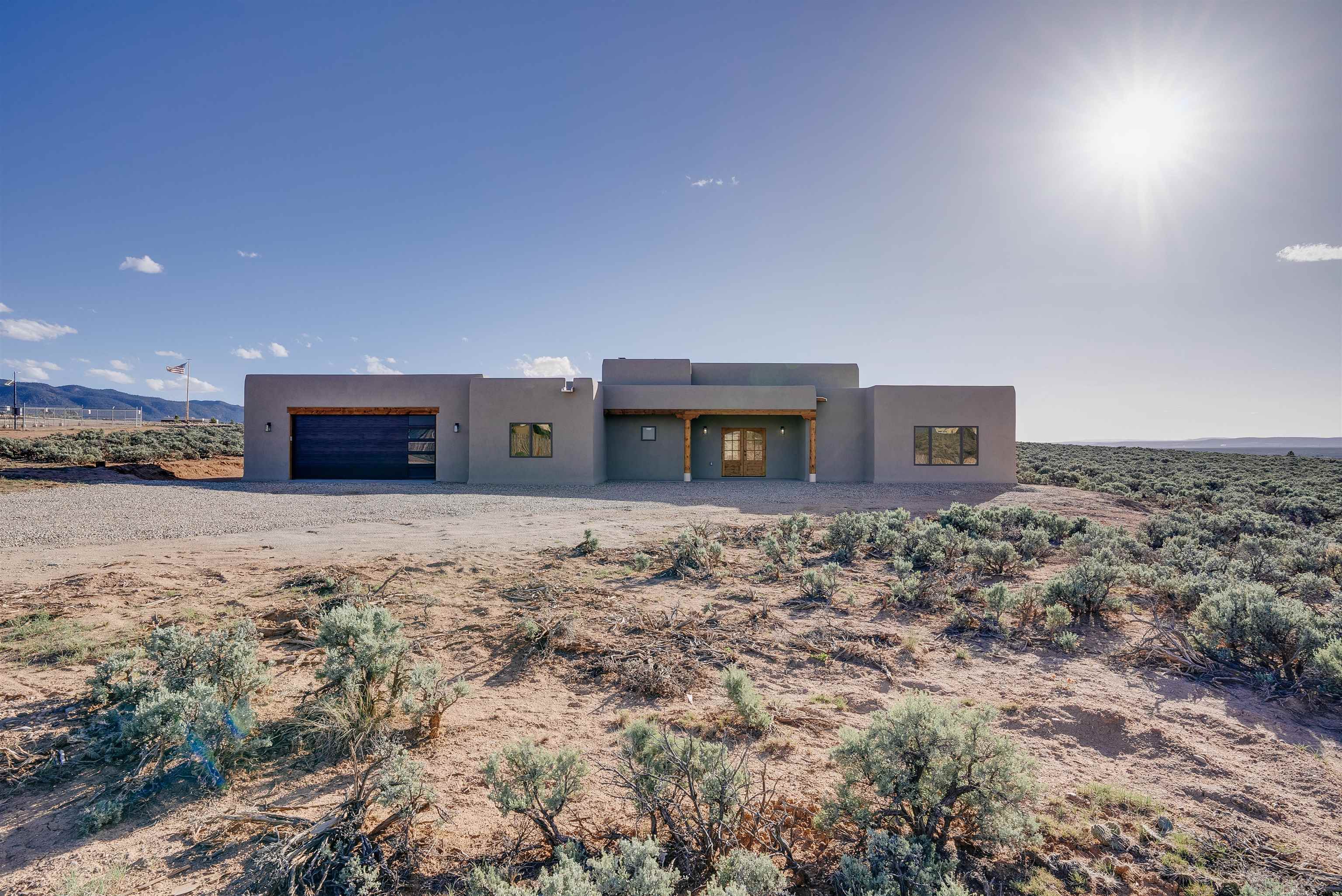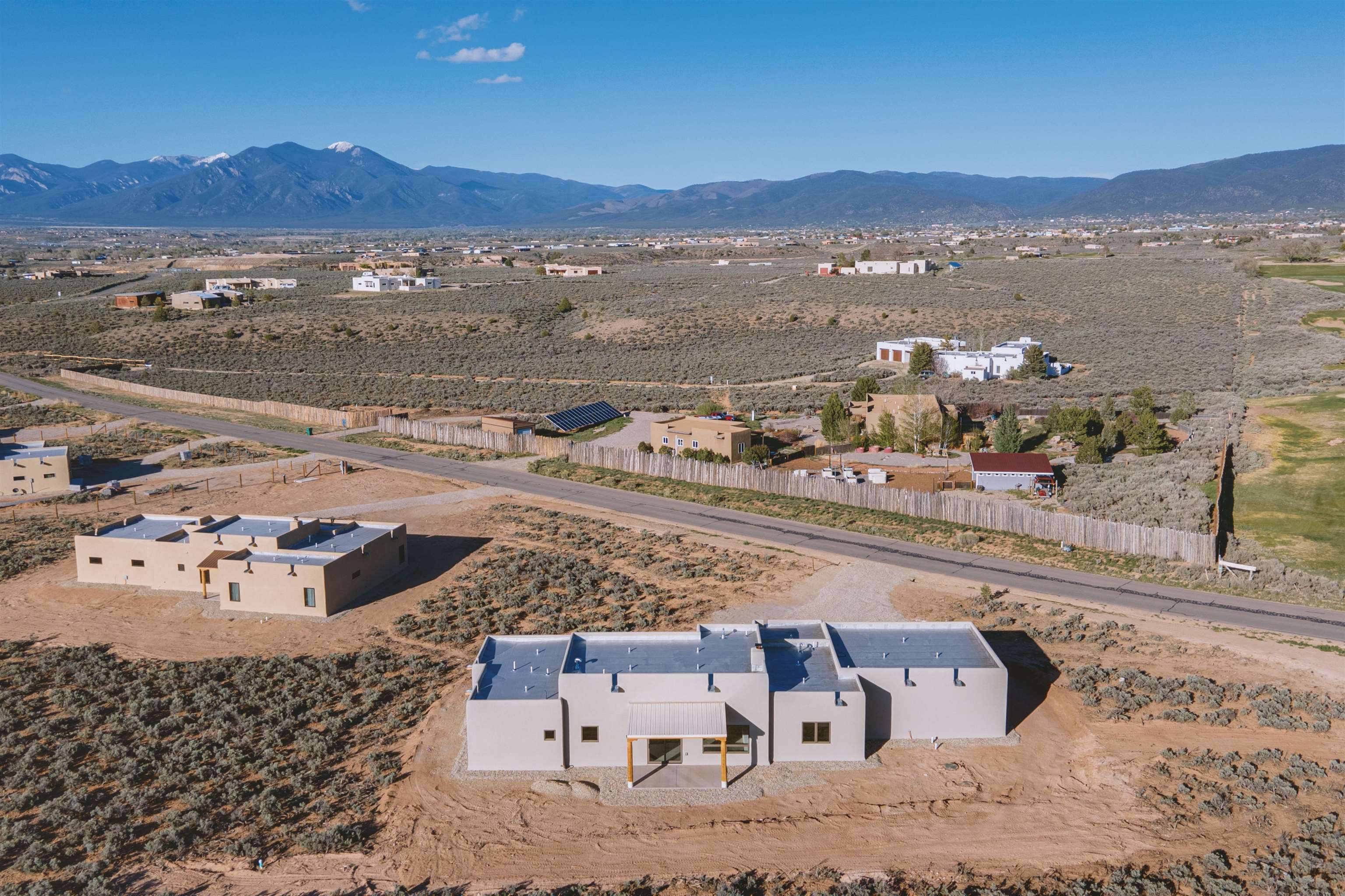 Nestled in a tranquil setting just off the pavement and adjacent to the renowned Taos Country Club, this brand-new 3-bedroom, 2-bathroom home offers the perfect blend of modern luxury and Southwestern charm. With a spacious 2-car garage and expansive floor plan, this residence is designed for both comfort and style. Enjoy the benefits of a newly built home with contemporary finishes and energy-efficient design. The open kitchen boasts sleek granite countertops, complemented by stainless steel appliances and custom cabinetry. Architectural details such as vigas and a cozy fireplace in the living room enhance the home's Southwestern appeal. The primary suite features a generous walk-in shower. Located near the Taos Rift Trail, with easy access to hiking and biking trails, perfect for outdoor enthusiasts. Revel in breathtaking views of the Taos Mountains from various vantage points within the home. This property is ideal for those seeking a serene lifestyle with proximity to recreational activities and the charm of Taos living.
