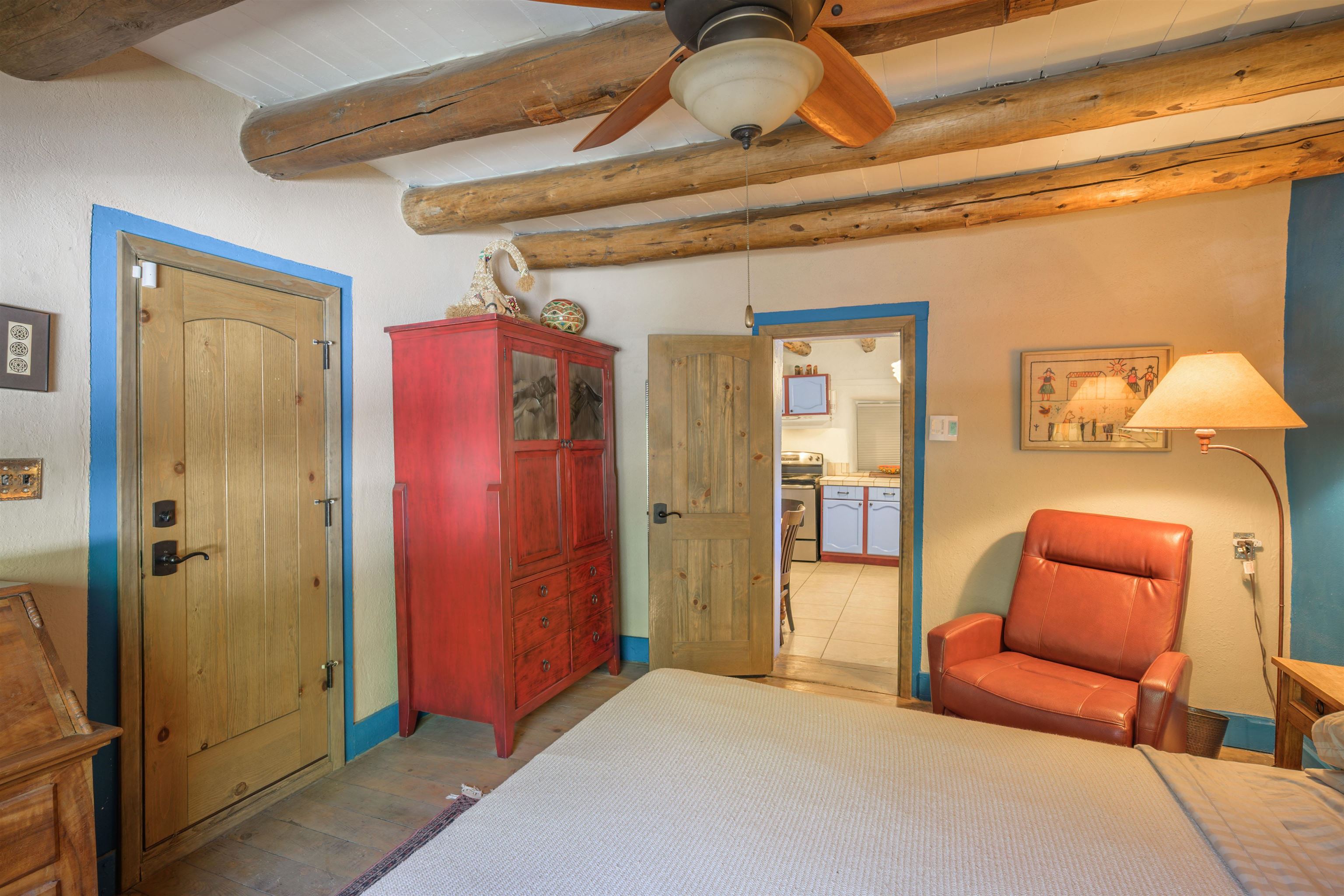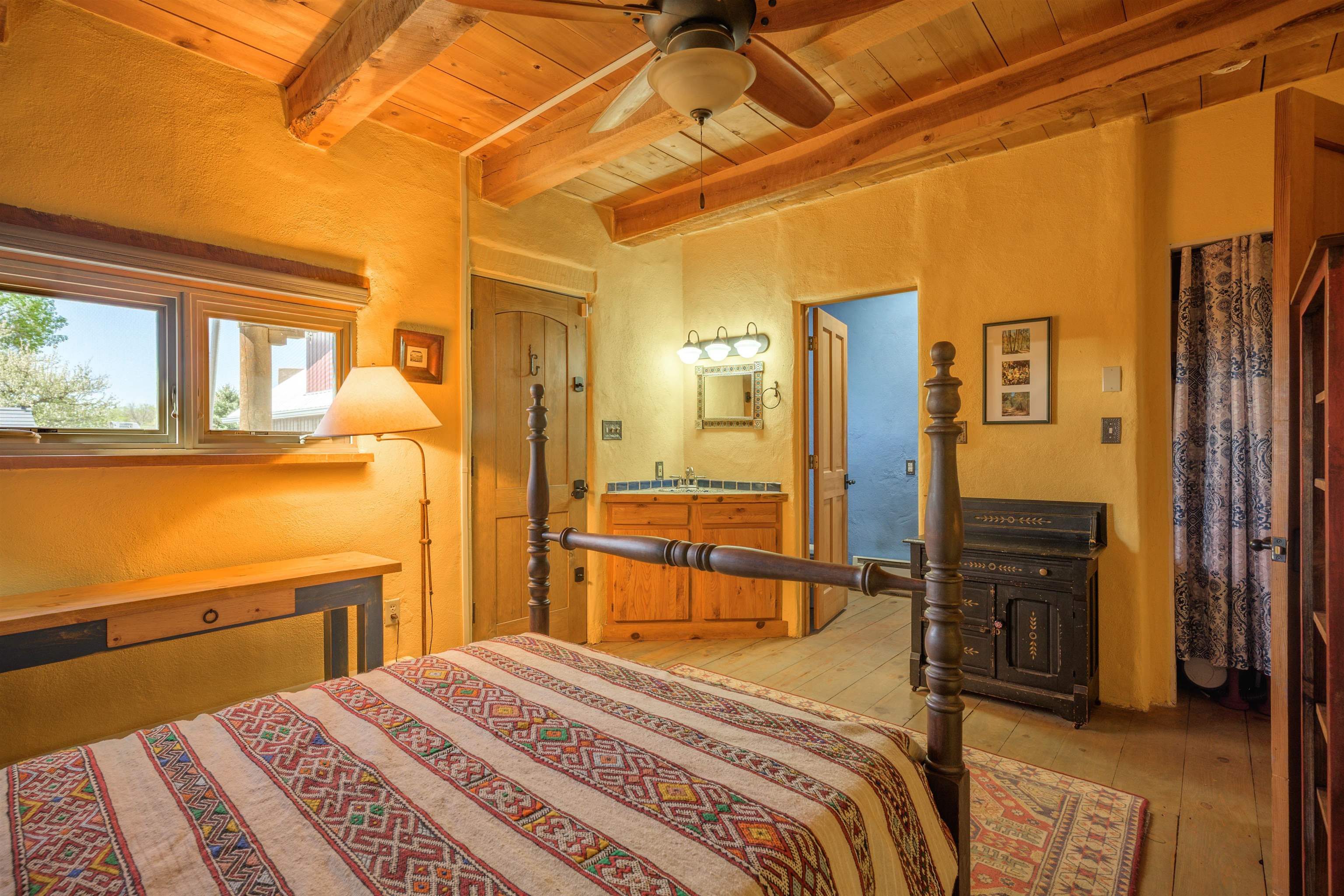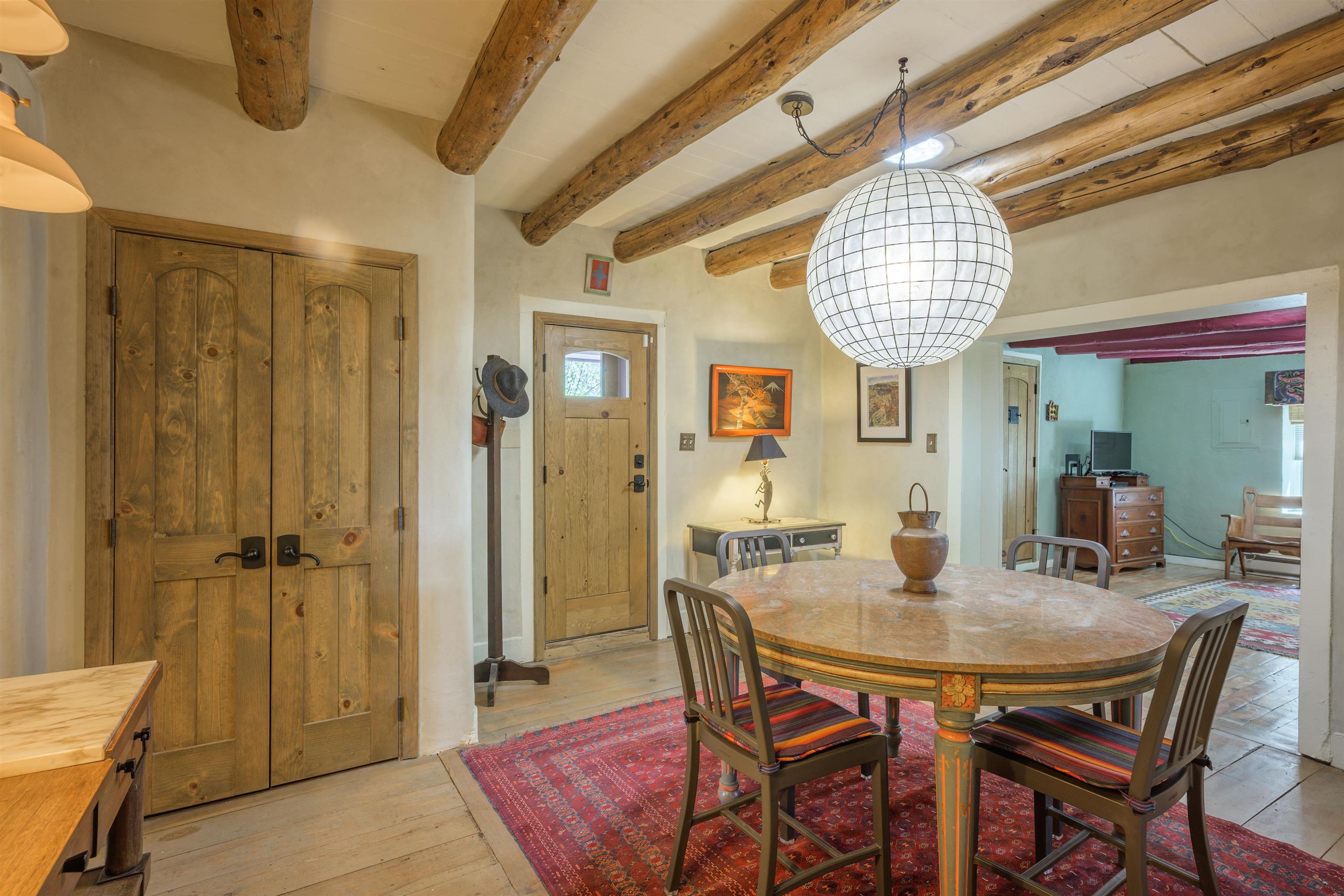 Come feel the historic vibe in this cute territorial, said to have its original room built in the late 1800's. Thick walls of adobe, graced with new quality Sierra Pacific windows and doors, emtek hardware and loads of charm! Lots of porches and portals to enjoy summer sunsets and sunrises. There is also a brand new attached full guest house that can be used as a rental, long or short term, or for an extended family need. This portion of the house has a private bedroom, large artist loft with a great view of the mountain and a bonus sunroom that could also sleep additional guests. Fully set up with high end appliances and fixtures, all brand new! An agricultural well and water rights help with any landscape or gardening dreams you might have. Come take a look at how a blended, historic and new territorial can compliment and serve your needs.