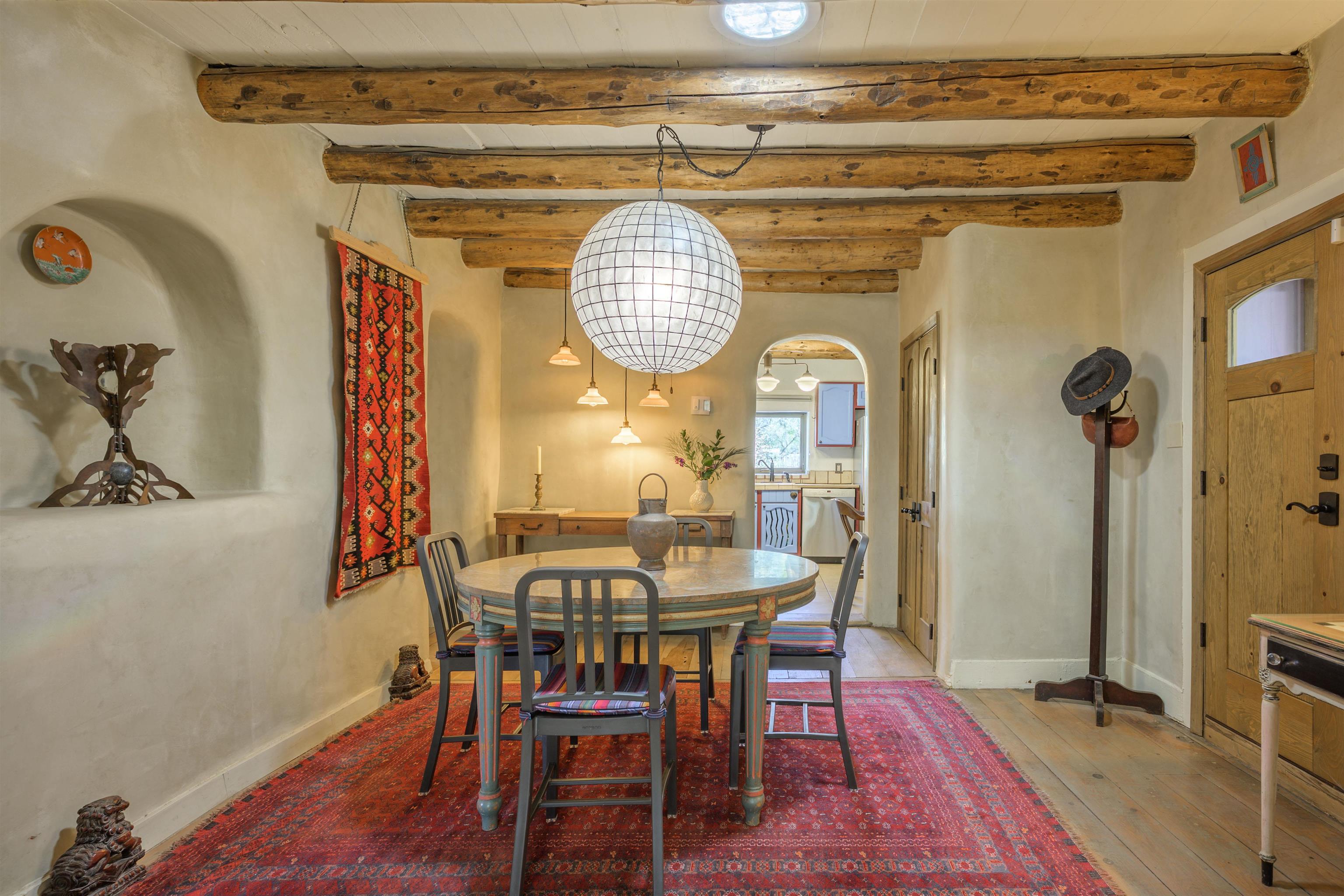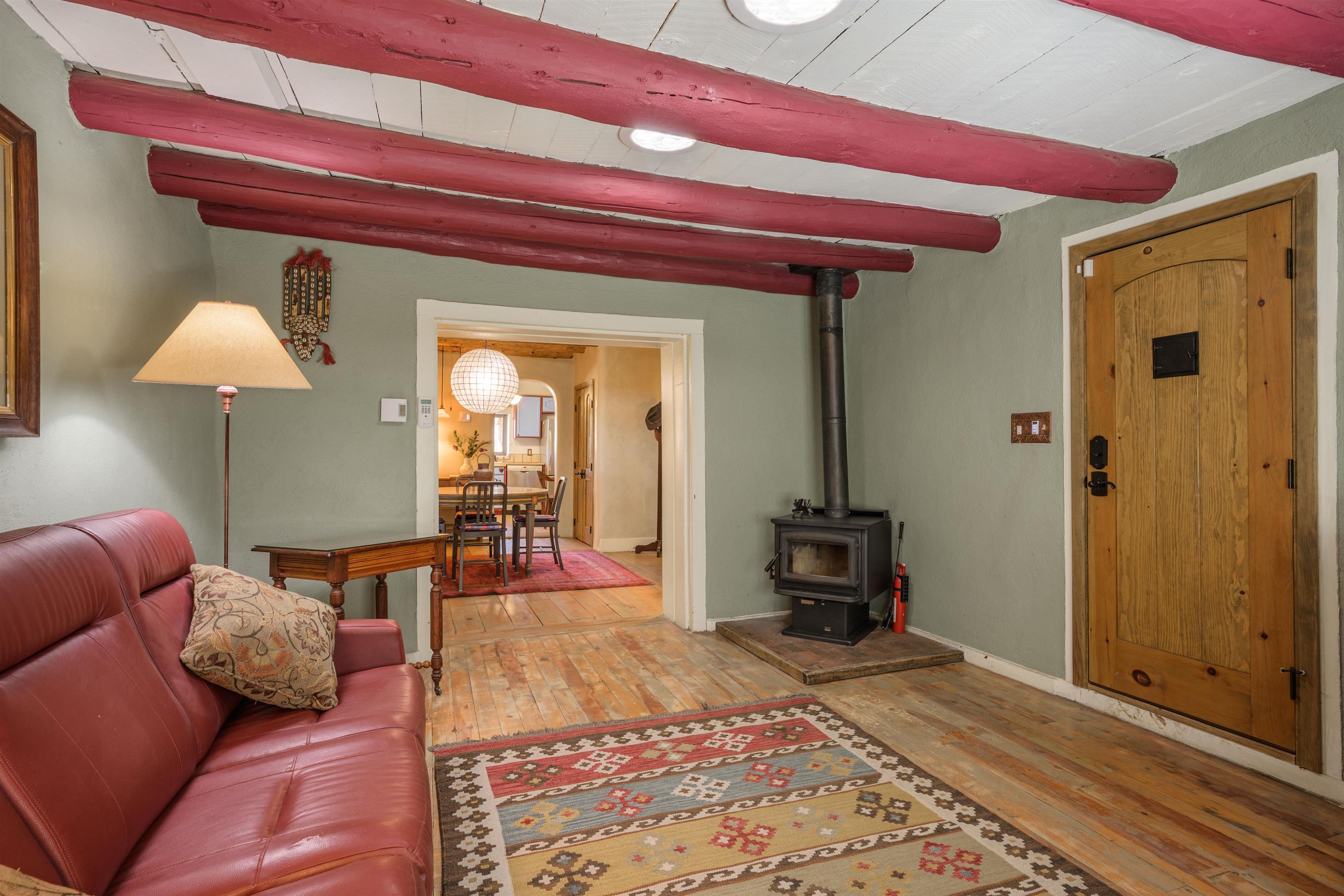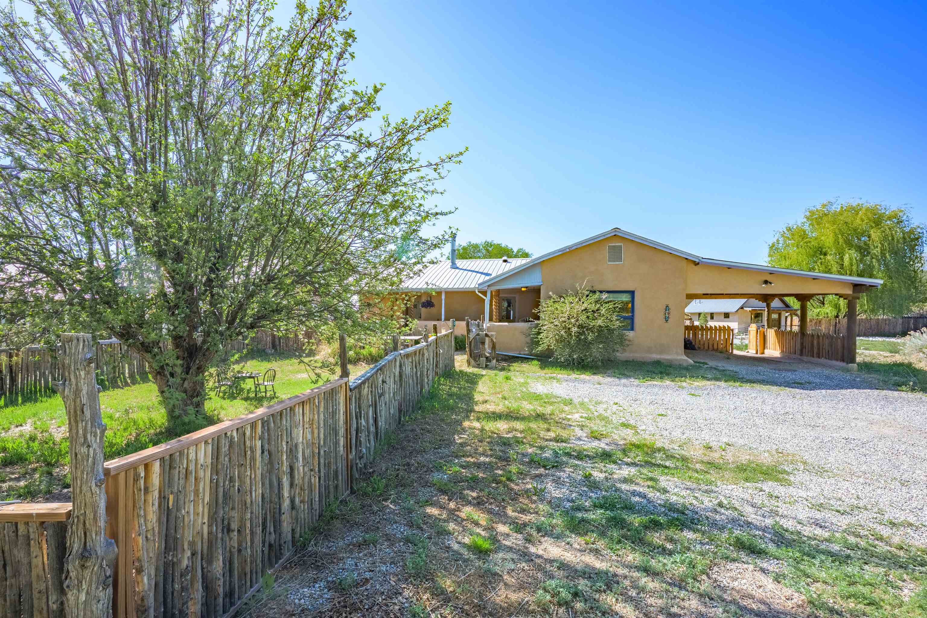Come feel the historic vibe in this cute territorial, said to have its original room built in the late 1800's. Thick walls of adobe, graced with new quality Sierra Pacific windows and doors, emtek hardware and loads of charm! Lots of porches and portals to enjoy summer sunsets and sunrises. There is also a brand new attached full guest house that can be used as a rental, long or short term, or for an extended family need. This portion of the house has a private bedroom, large artist loft with a great view of the mountain and a bonus sunroom that could also sleep additional guests. Fully set up with high end appliances and fixtures, all brand new! An agricultural well and water rights help with any landscape or gardening dreams you might have. Come take a look at how a blended, historic and new territorial can compliment and serve your needs.