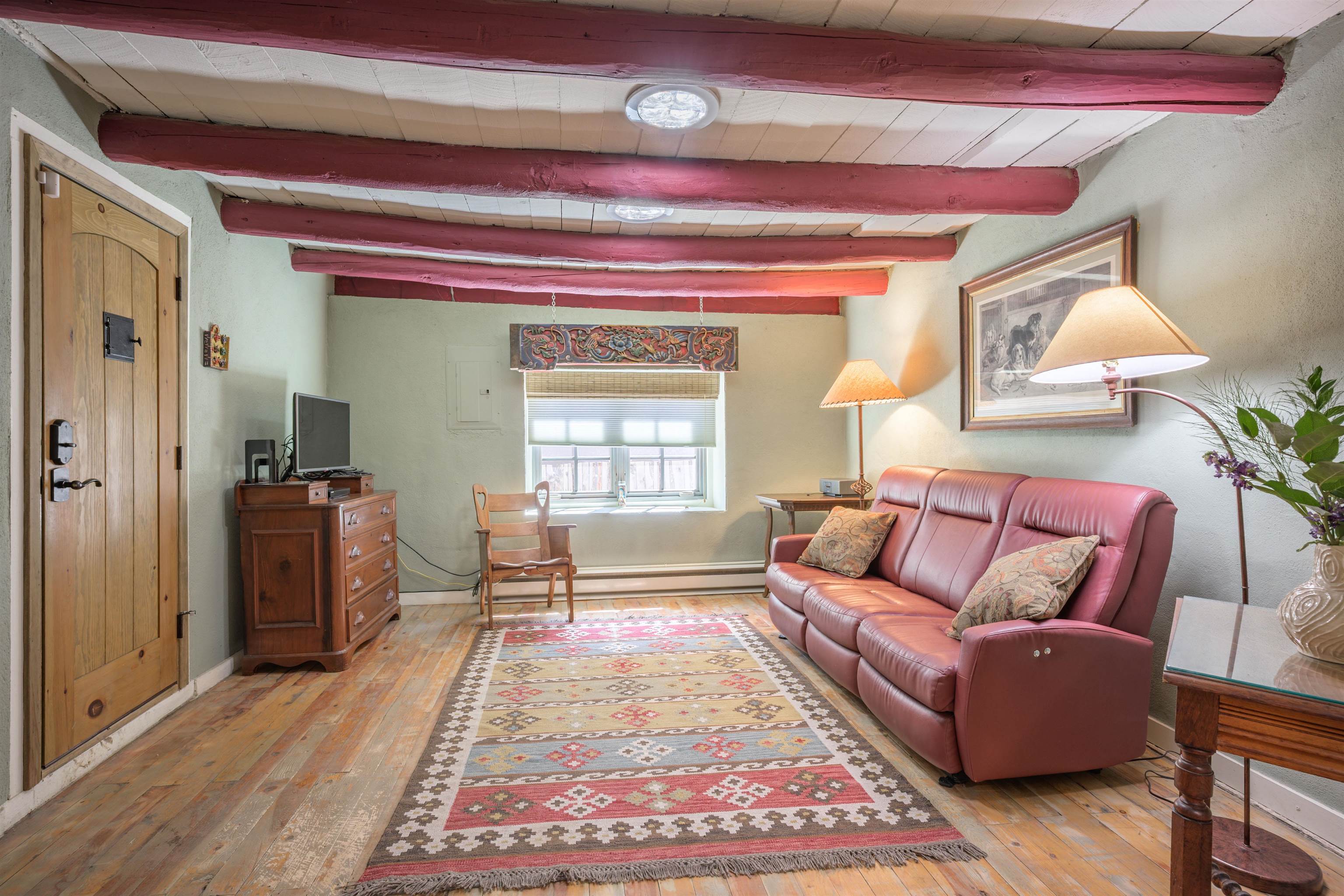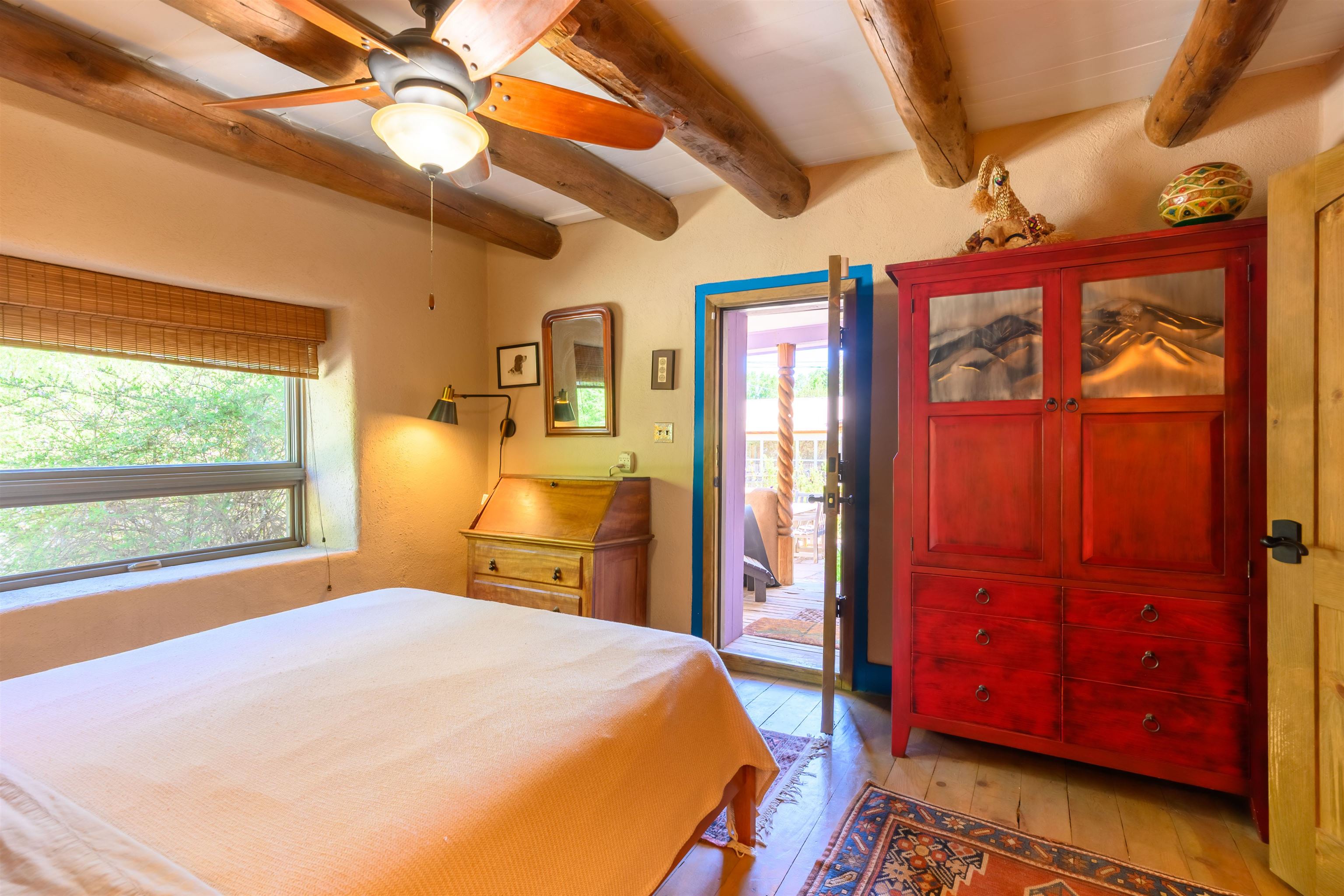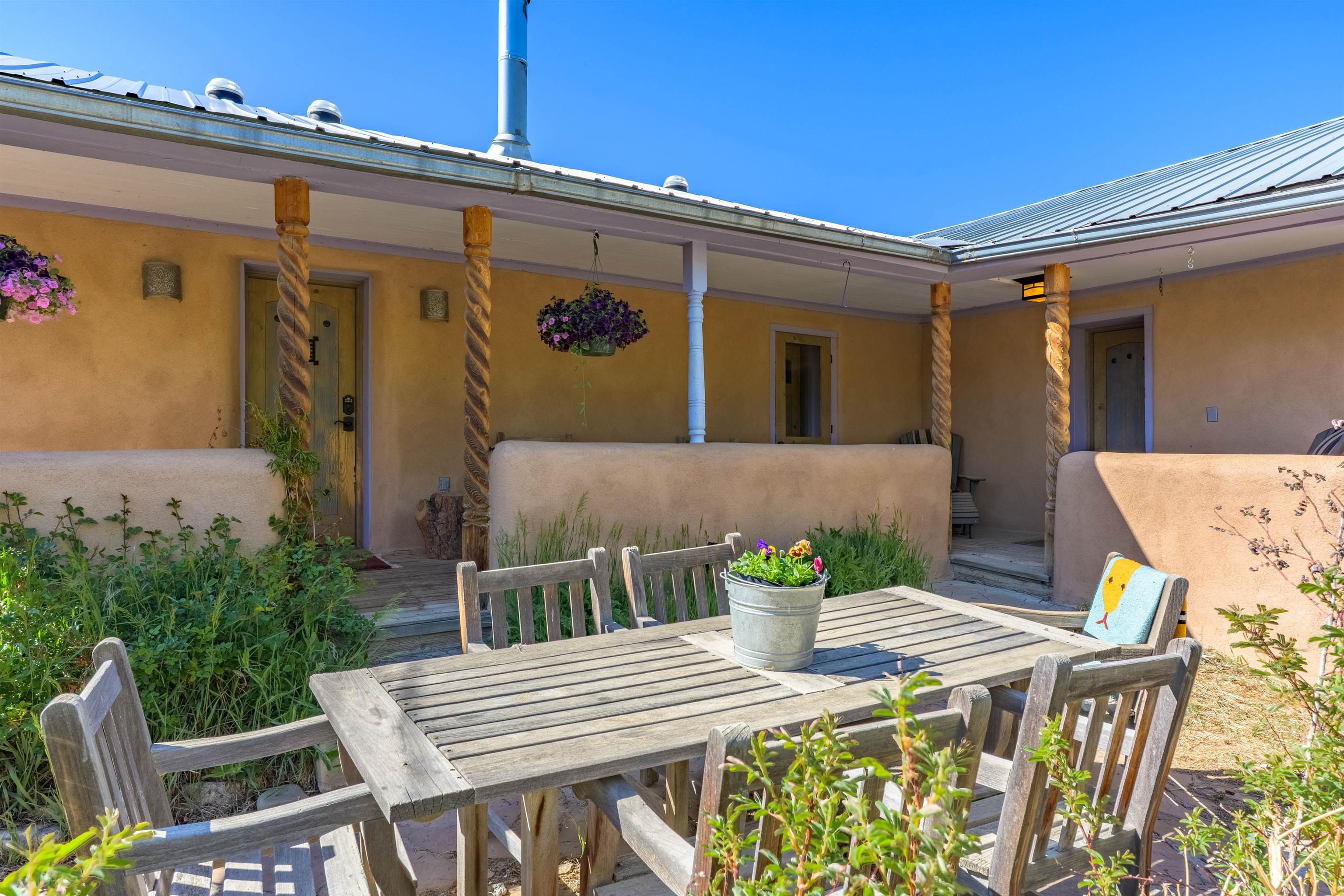 Come feel the historic vibe in this cute territorial, said to have its original room built in the late 1800's. Thick walls of adobe, graced with new quality Sierra Pacific windows and doors, emtek hardware and loads of charm! Lots of porches and portals to enjoy summer sunsets and sunrises. There is also a brand new attached full guest house that can be used as a rental, long or short term, or for an extended family need. This portion of the house has a private bedroom, large artist loft with a great view of the mountain and a bonus sunroom that could also sleep additional guests. Fully set up with high end appliances and fixtures, all brand new! An agricultural well and water rights help with any landscape or gardening dreams you might have. Come take a look at how a blended, historic and new territorial can compliment and serve your needs.