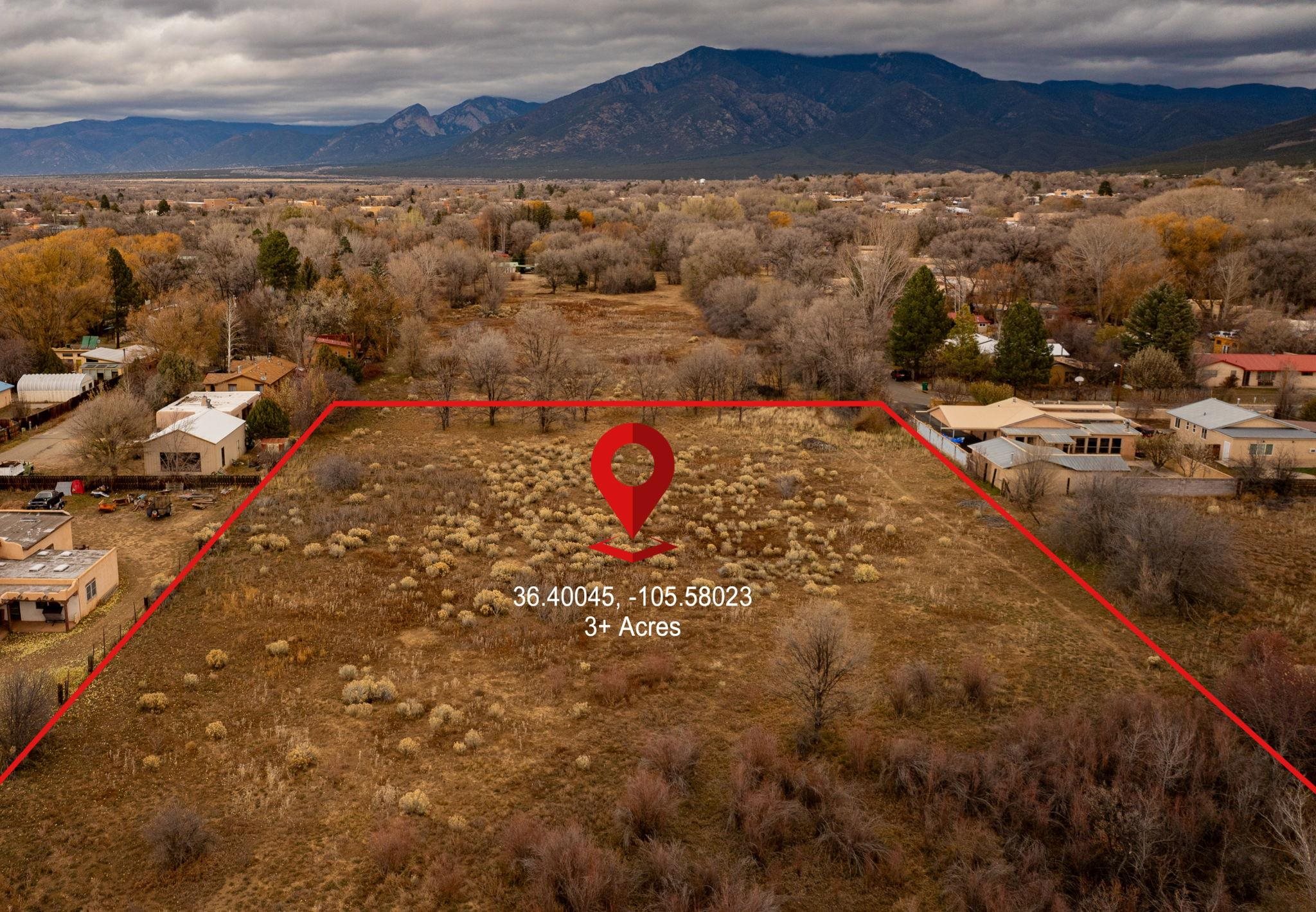 Rare Parcel with Acreage in the Center of Taos ~ A secluded oasis right in the middle of town perfect for a single family residence, or residential development project. A short walk and even shorter drive to Taos Plaza, shopping, restaurants, public parks, and so on. Drive by and take a look a one of the last large parcels near Downtown Taos.