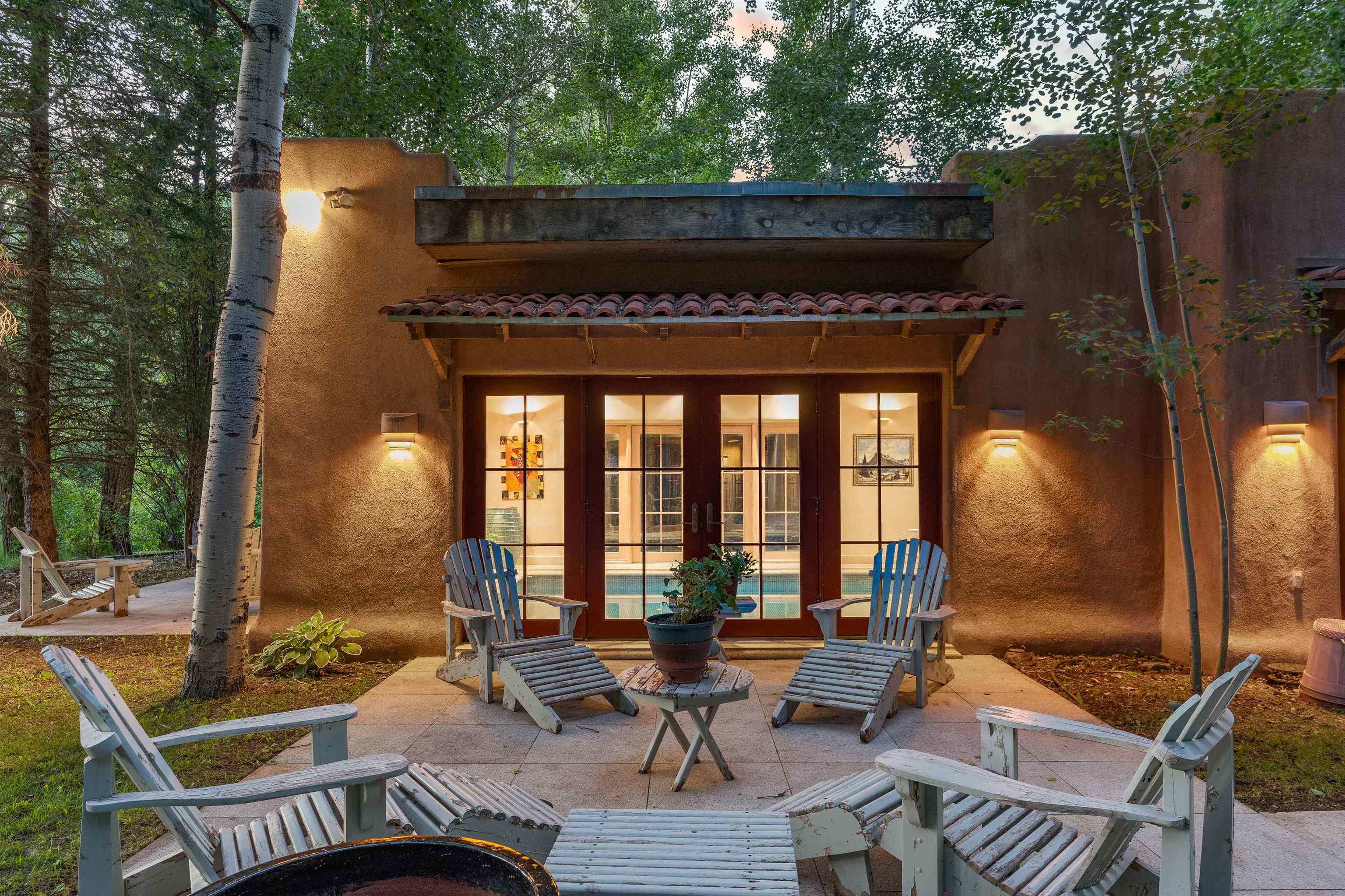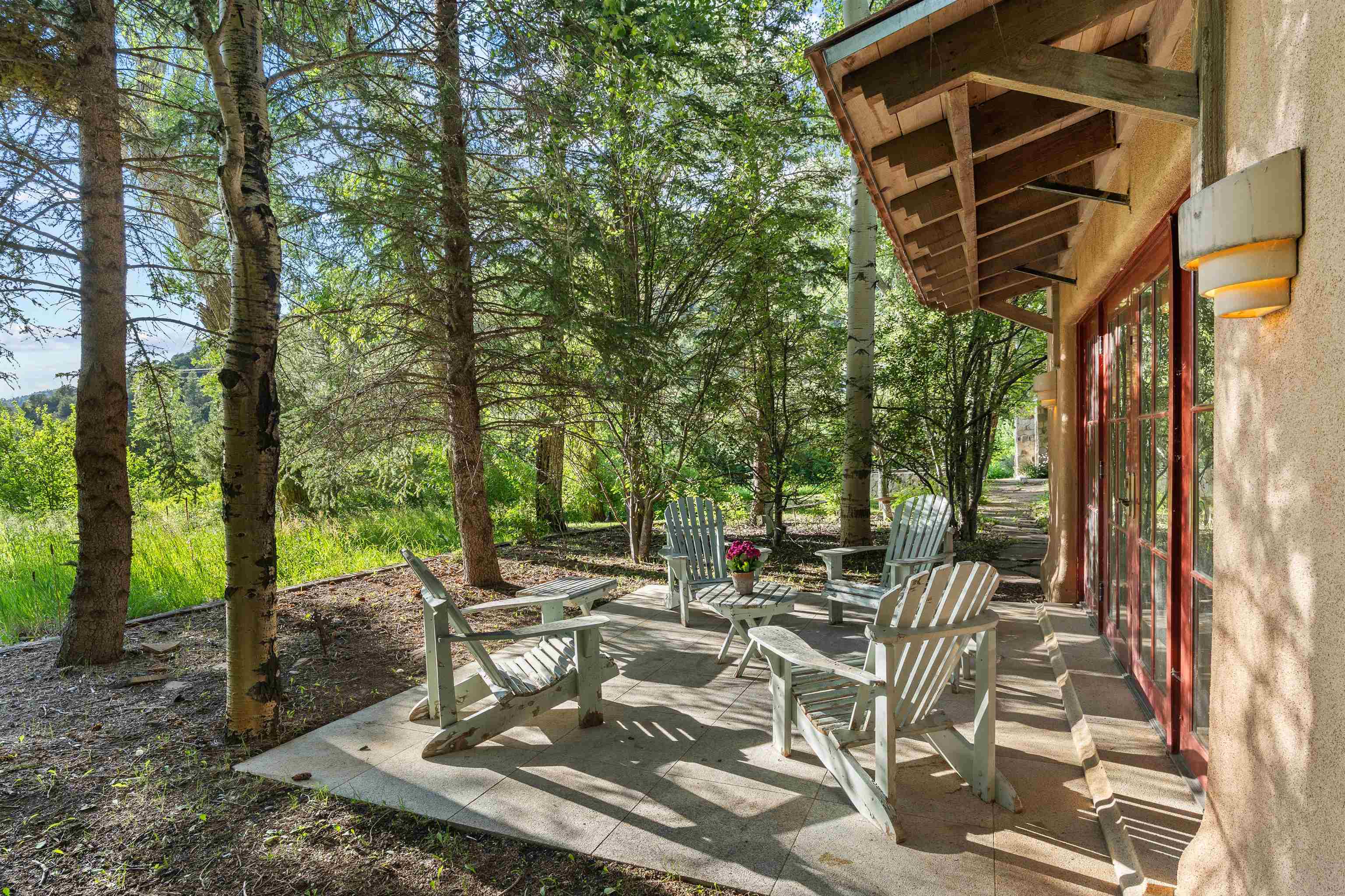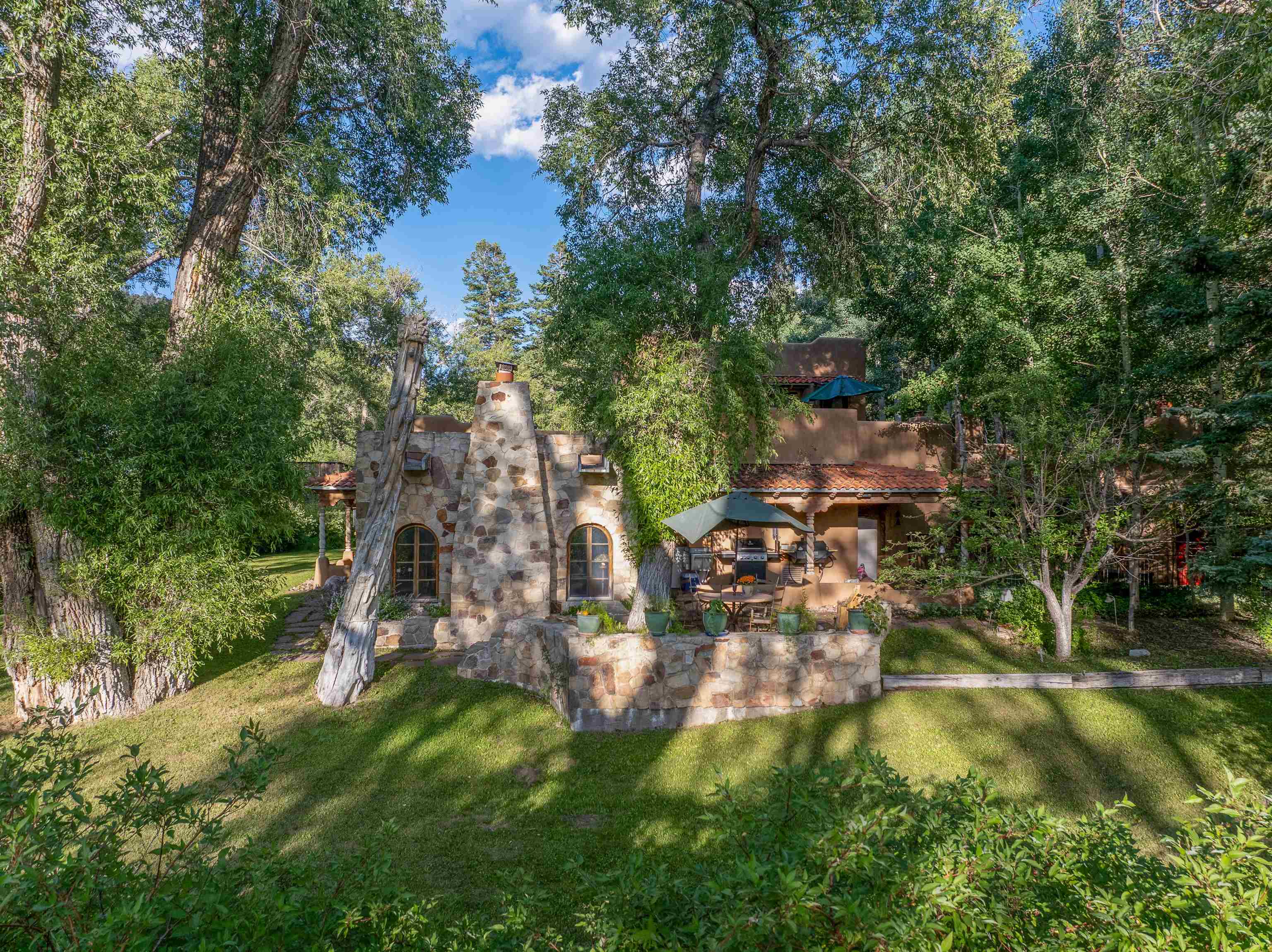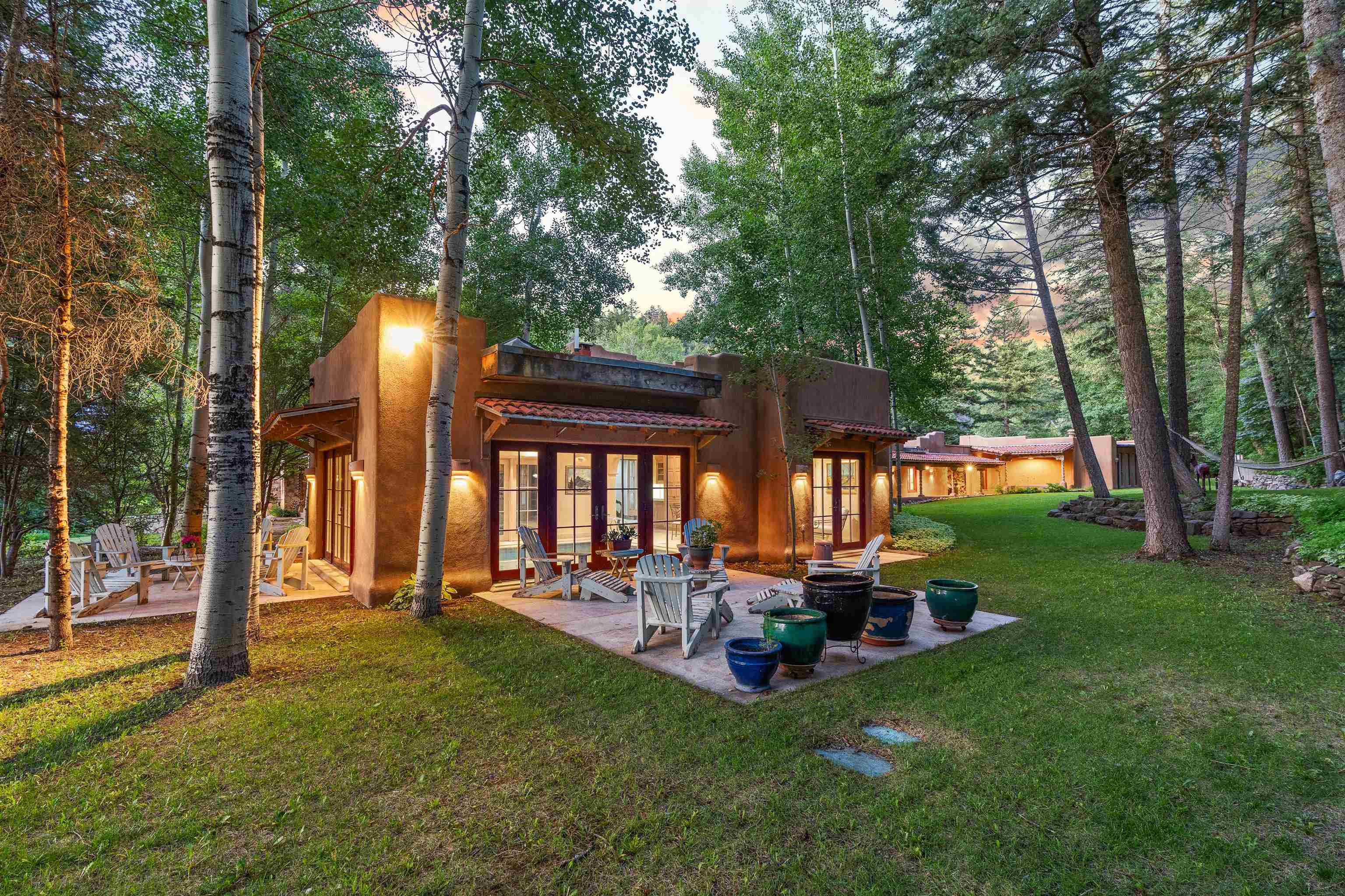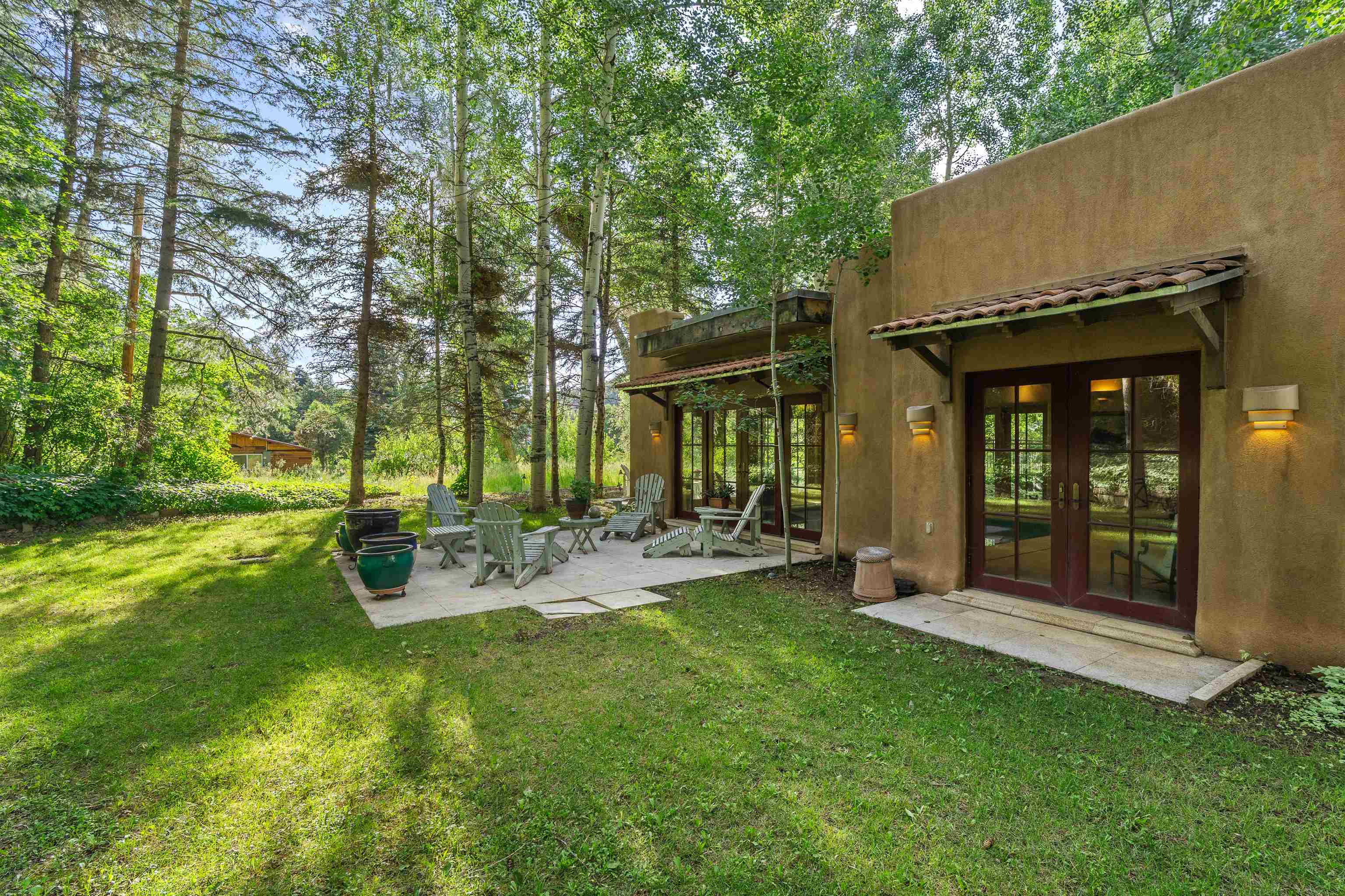 **Luxury Retreat in Taos Canyon – Just 8 Miles from Downtown & 40 Minutes from Taos Ski Valley** Experience unparalleled elegance in this stunning new luxury home nestled in a serene, park-like setting with lush green lawns and mature trees. Located only 8 miles from the historic Taos Plaza and approximately 40 minutes from Taos Ski Valley, this private sanctuary offers the perfect blend of natural beauty and sophisticated living. The main residence features a spectacular primary suite with a luxurious ensuite bathroom, three large walk-in closets, a cozy sitting area, and a dedicated office. A guestroom with its own ensuite bath and oversized walk-in closet offers comfort for visitors, complemented by a rooftop deck with breathtaking views. Showcasing craftsmanship sourced from around the world, the home’s exquisite stonework and tile work add unique character and warmth to each space. The open floorplan includes a chef-inspired kitchen, a butler’s pantry, and a spacious living area with a wood-burning fireplace — ideal for entertaining family and friends. For those seeking a tranquil retreat, the wine room with its own stone fireplace provides the perfect setting to unwind with a fine glass of wine. The property also boasts a stunning indoor heated pool with glass doors on three sides that open to patios and terraces — creating a seamless indoor-outdoor living experience. Guests will enjoy their own private guesthouse, featuring two bedrooms, each with a wood-burning fireplace, and a connecting bathroom — providing a comfortable and inviting space for visitors. This exceptional property is a rare find — a perfect retreat to relax, entertain, and enjoy breathtaking scenery. Conveniently close to Taos and just a short drive to Angel Fire, this home is truly one to see before it’s gone. Schedule your private viewing today! **Note:** Please be aware that the attached floor plan is a partial layout and does not depict all spaces within the home. It provides an overview of the main areas but may not include every room or detail. Additionally, the fireplaces featured have virtual fires, enhancing ambiance and warmth.