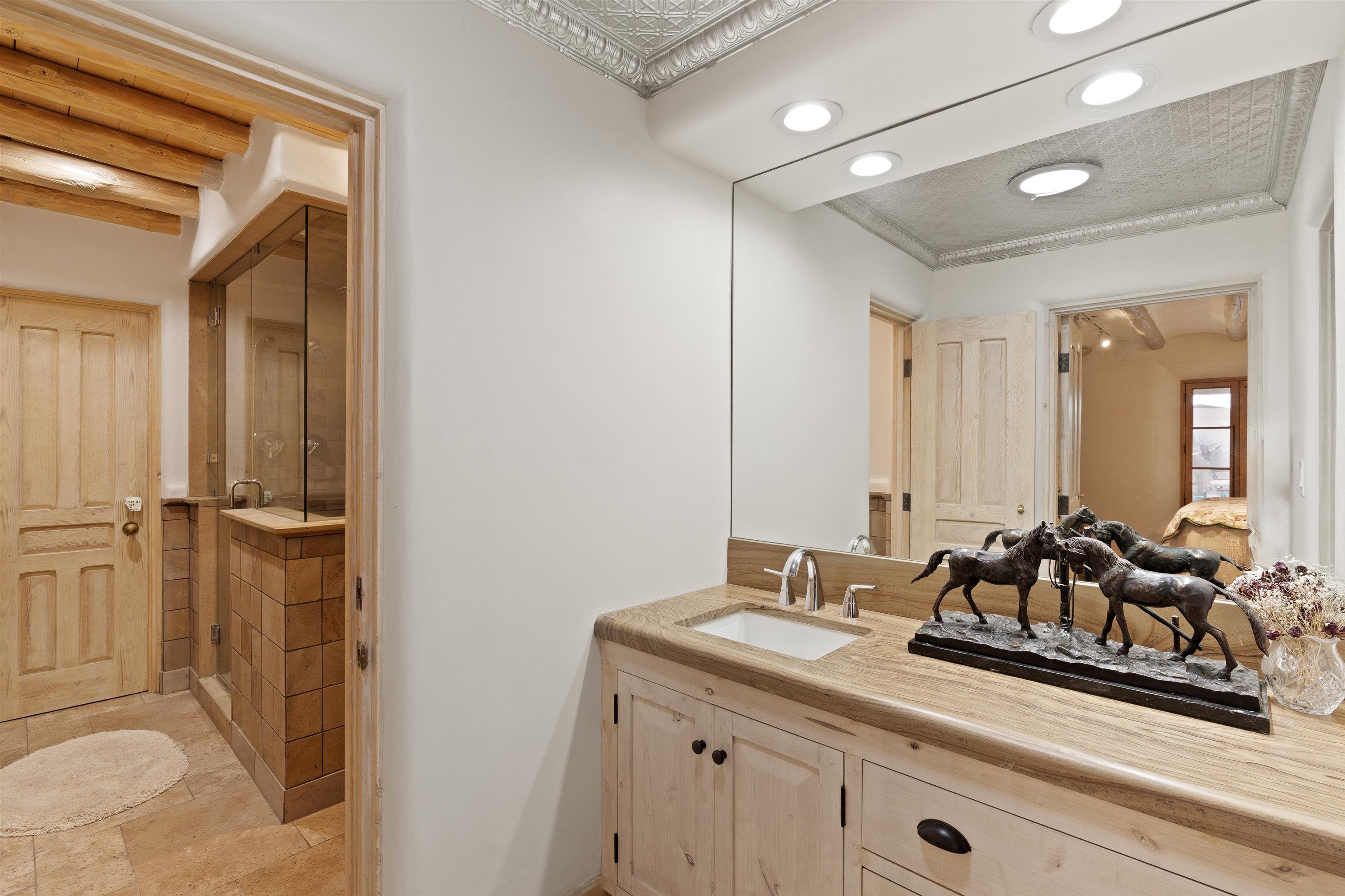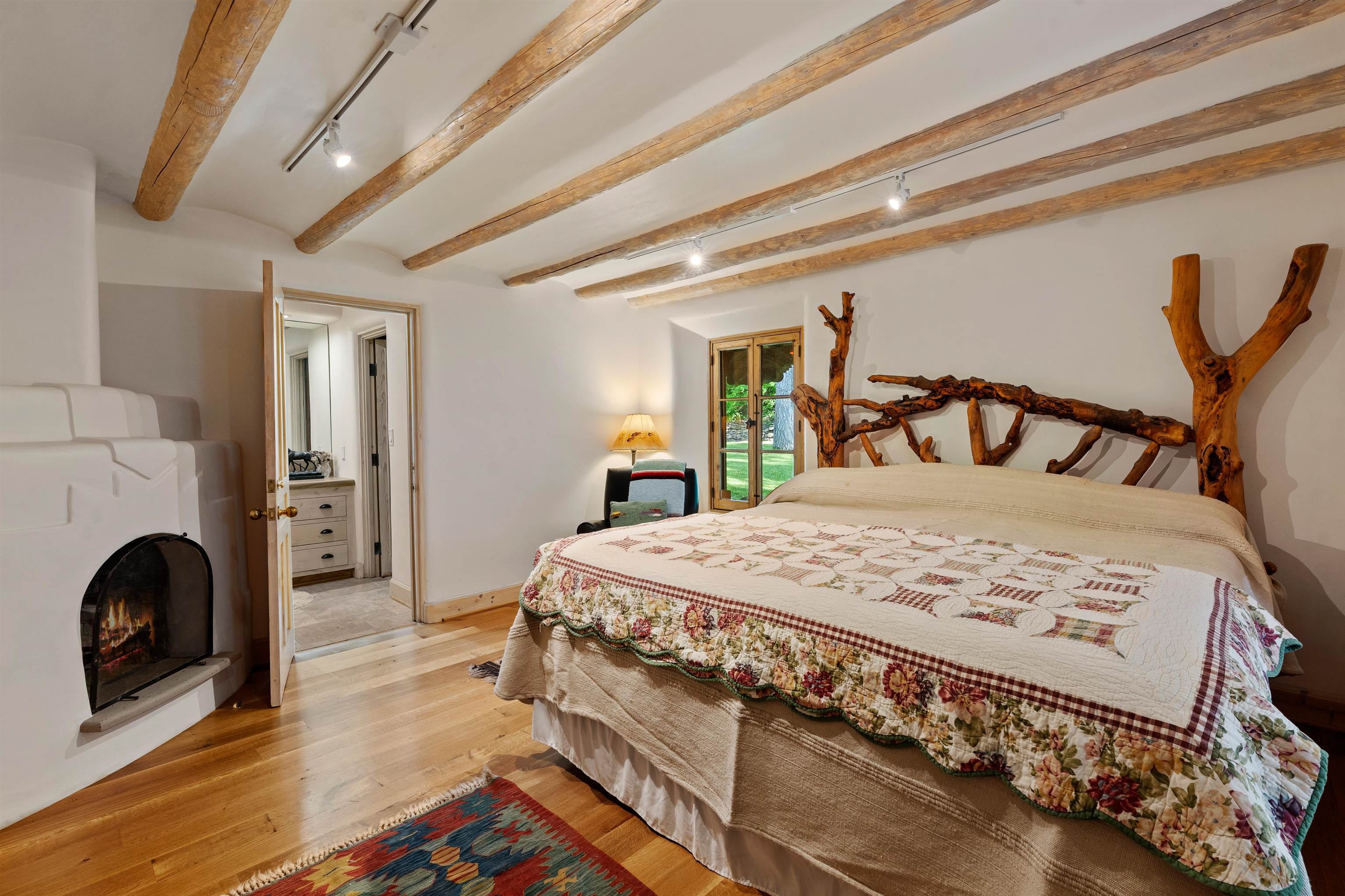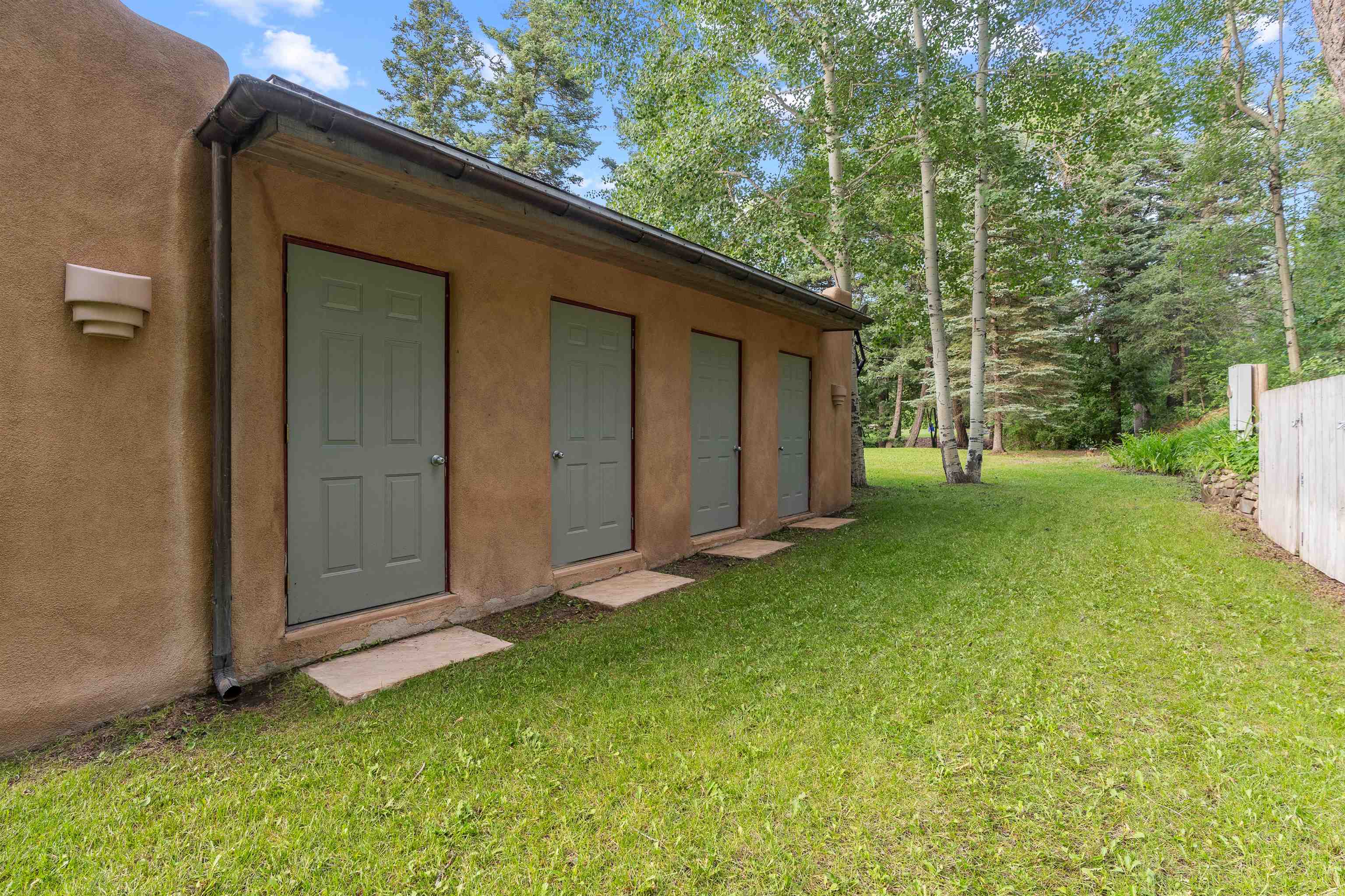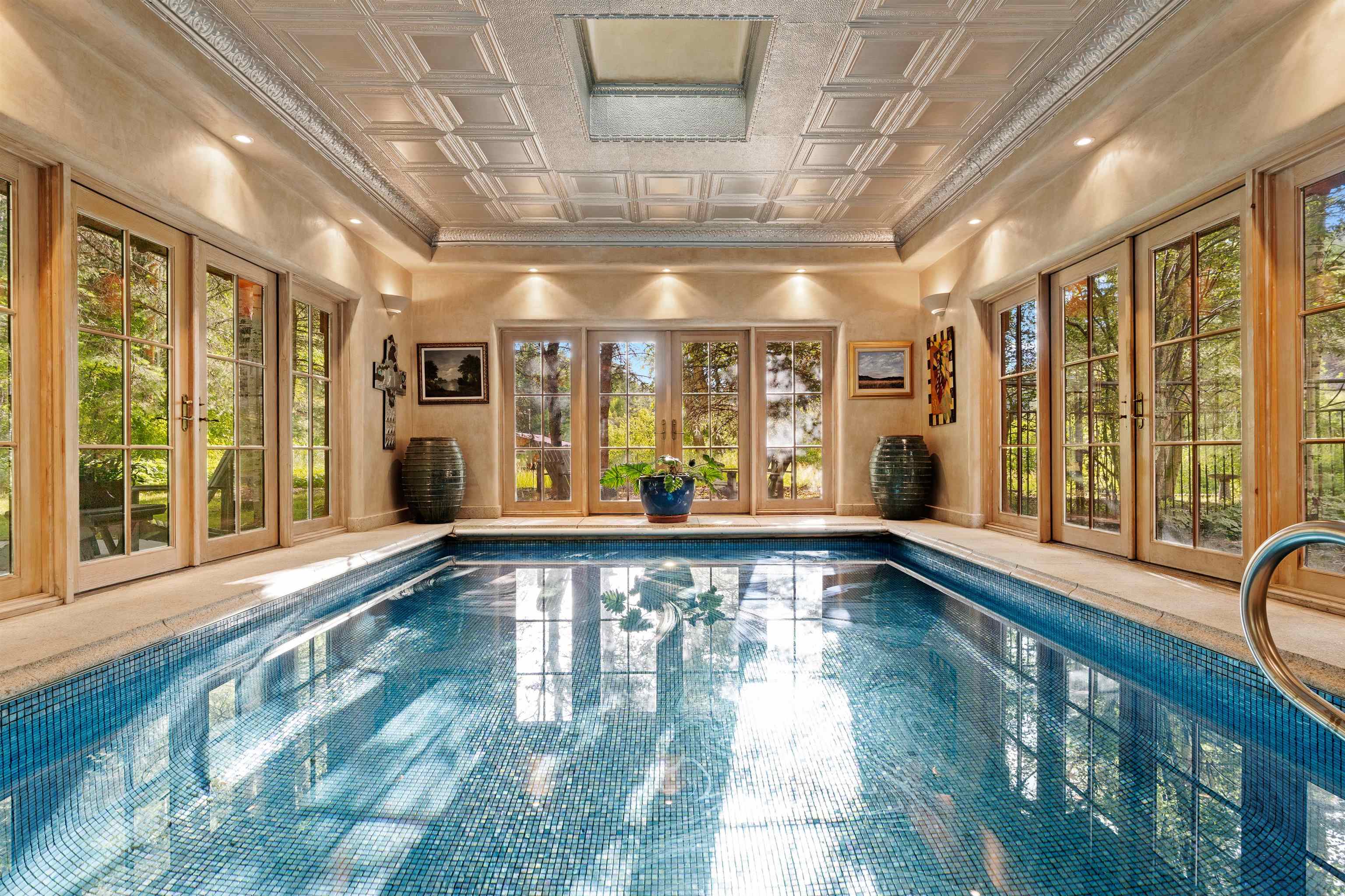 **Luxury Retreat in Taos Canyon – Just 8 Miles from Downtown & 40 Minutes from Taos Ski Valley** Experience unparalleled elegance in this stunning new luxury home nestled in a serene, park-like setting with lush green lawns and mature trees. Located only 8 miles from the historic Taos Plaza and approximately 40 minutes from Taos Ski Valley, this private sanctuary offers the perfect blend of natural beauty and sophisticated living. The main residence features a spectacular primary suite with a luxurious ensuite bathroom, three large walk-in closets, a cozy sitting area, and a dedicated office. A guestroom with its own ensuite bath and oversized walk-in closet offers comfort for visitors, complemented by a rooftop deck with breathtaking views. Showcasing craftsmanship sourced from around the world, the home’s exquisite stonework and tile work add unique character and warmth to each space. The open floorplan includes a chef-inspired kitchen, a butler’s pantry, and a spacious living area with a wood-burning fireplace — ideal for entertaining family and friends. For those seeking a tranquil retreat, the wine room with its own stone fireplace provides the perfect setting to unwind with a fine glass of wine. The property also boasts a stunning indoor heated pool with glass doors on three sides that open to patios and terraces — creating a seamless indoor-outdoor living experience. Guests will enjoy their own private guesthouse, featuring two bedrooms, each with a wood-burning fireplace, and a connecting bathroom — providing a comfortable and inviting space for visitors. This exceptional property is a rare find — a perfect retreat to relax, entertain, and enjoy breathtaking scenery. Conveniently close to Taos and just a short drive to Angel Fire, this home is truly one to see before it’s gone. Schedule your private viewing today! **Note:** Please be aware that the attached floor plan is a partial layout and does not depict all spaces within the home. It provides an overview of the main areas but may not include every room or detail. Additionally, the fireplaces featured have virtual fires, enhancing ambiance and warmth.