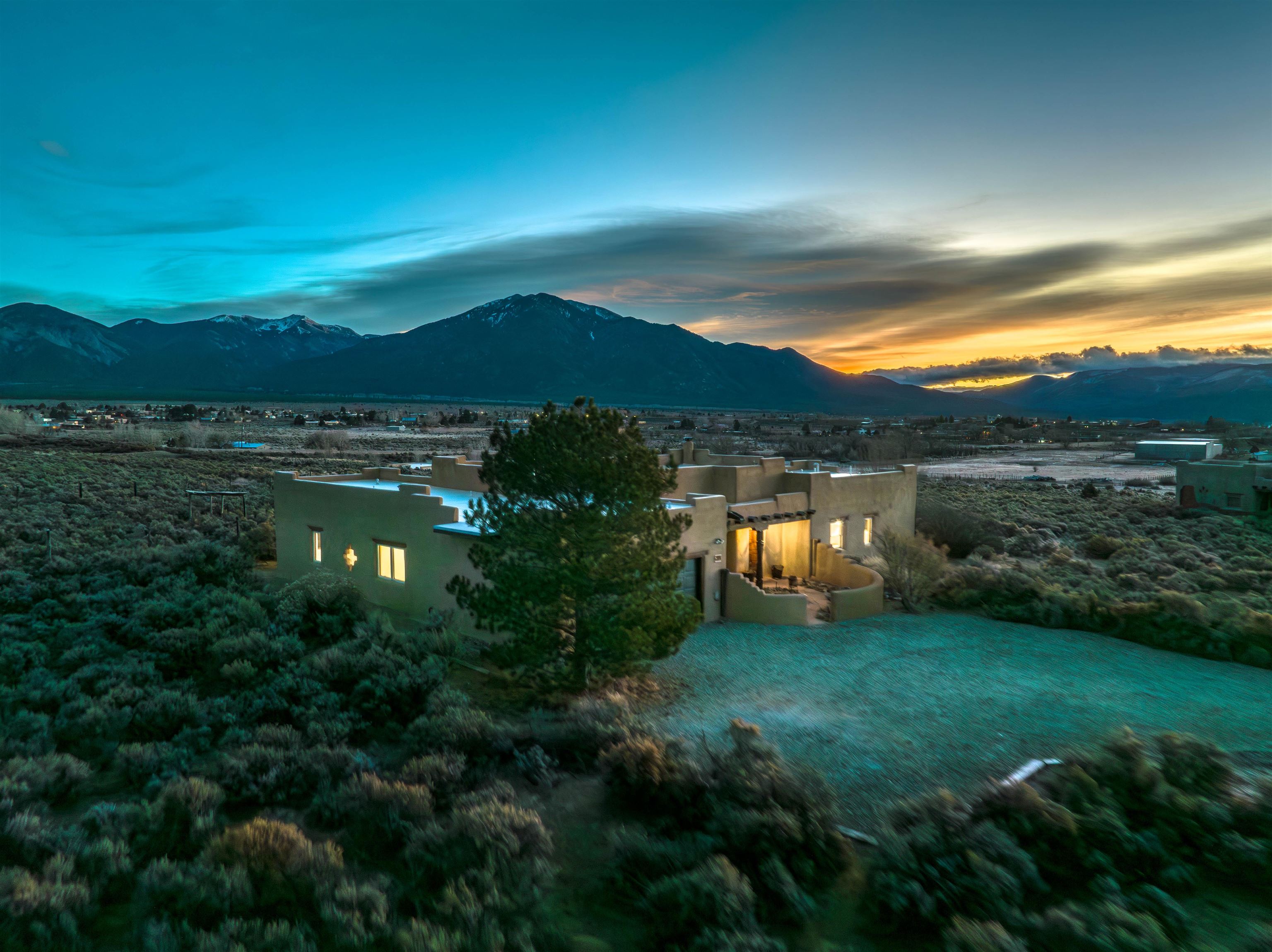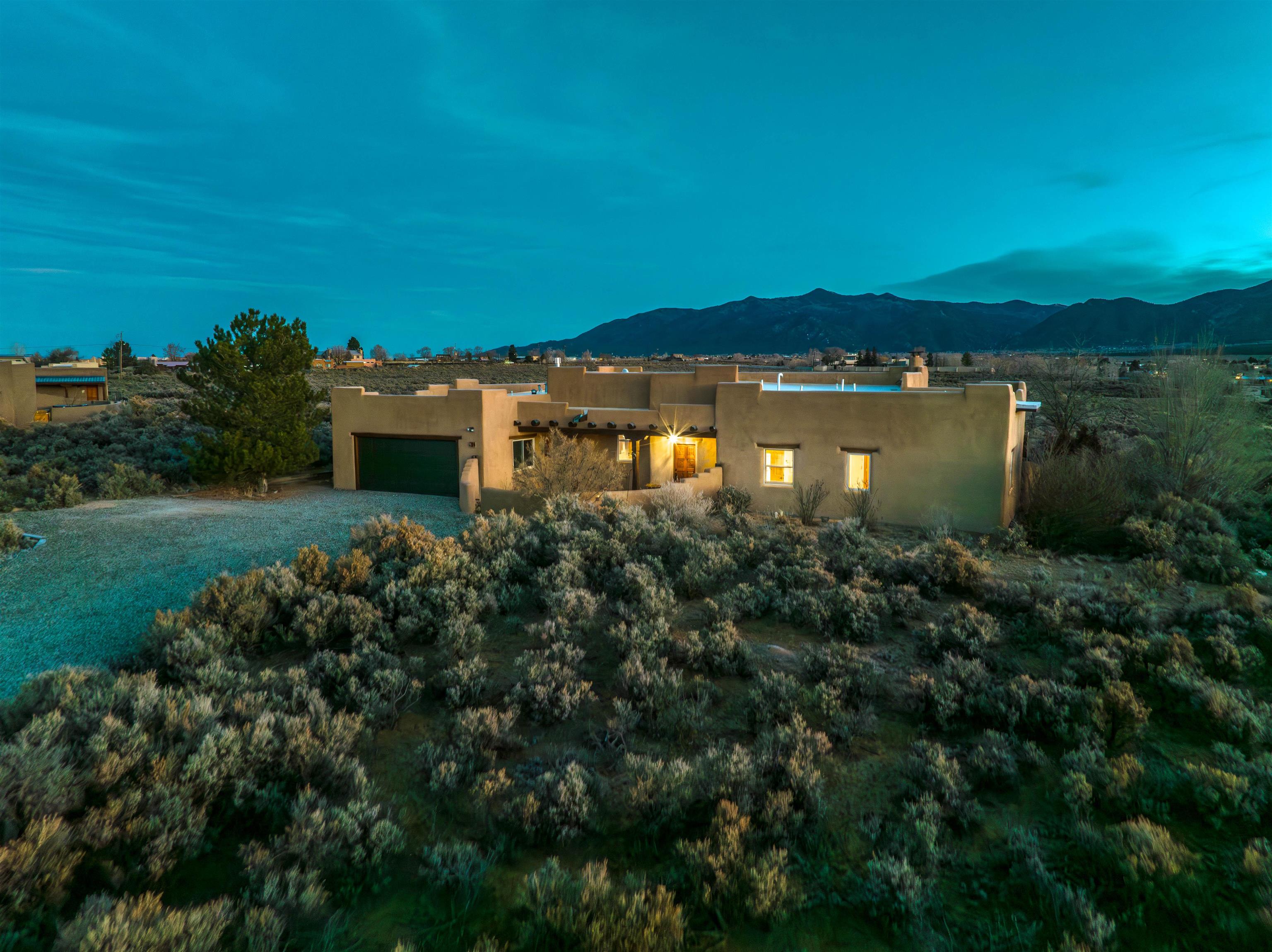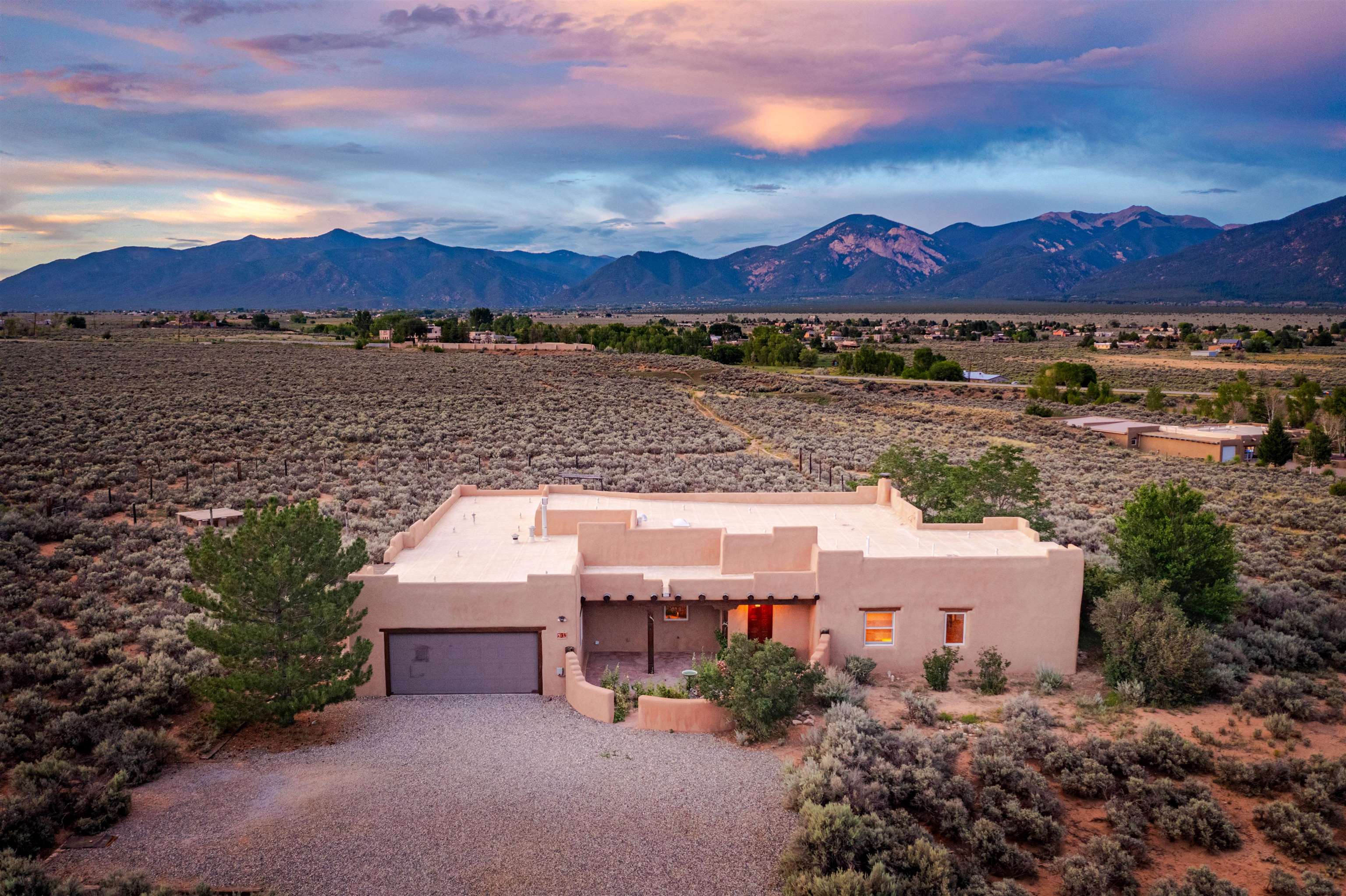 Charming Southwest-Style Home in Blueberry Hill Experience the warmth and character of this beautiful home, built with adobe construction and featuring a cozy wood-burning fireplace in the living room. The exterior has recently been updated with fresh stucco, enhancing its curb appeal. The open-concept living and dining areas create a welcoming space for daily living and entertaining. The updated kitchen boasts granite countertops and a picturesque view from the kitchen window, perfect for enjoying morning coffee or simply taking in the stunning mountain scenery. The front covered portal welcomes you home, complemented by a lovely garden walkway that adds charm and tranquility. The rear patio provides an ideal setting for outdoor gatherings while soaking in breathtaking mountain views—an incredible backdrop for relaxing, dining, or entertaining guests. The property also features an attached 2-car garage, providing convenient parking and storage. Located in the highly desirable area of Blueberry Hill, this home is close to Taos Ski Valley, shopping, and dining at the historic Taos Plaza. Whether you're seeking a full-time residence, a part-time retreat, or an income-generating investment property, this location offers versatility and appeal. Contact Cyndi today to schedule your private showing and discover all that this charming property has to offer! DRONE VIDEO LINK: https://vimeo.com/1150346219
