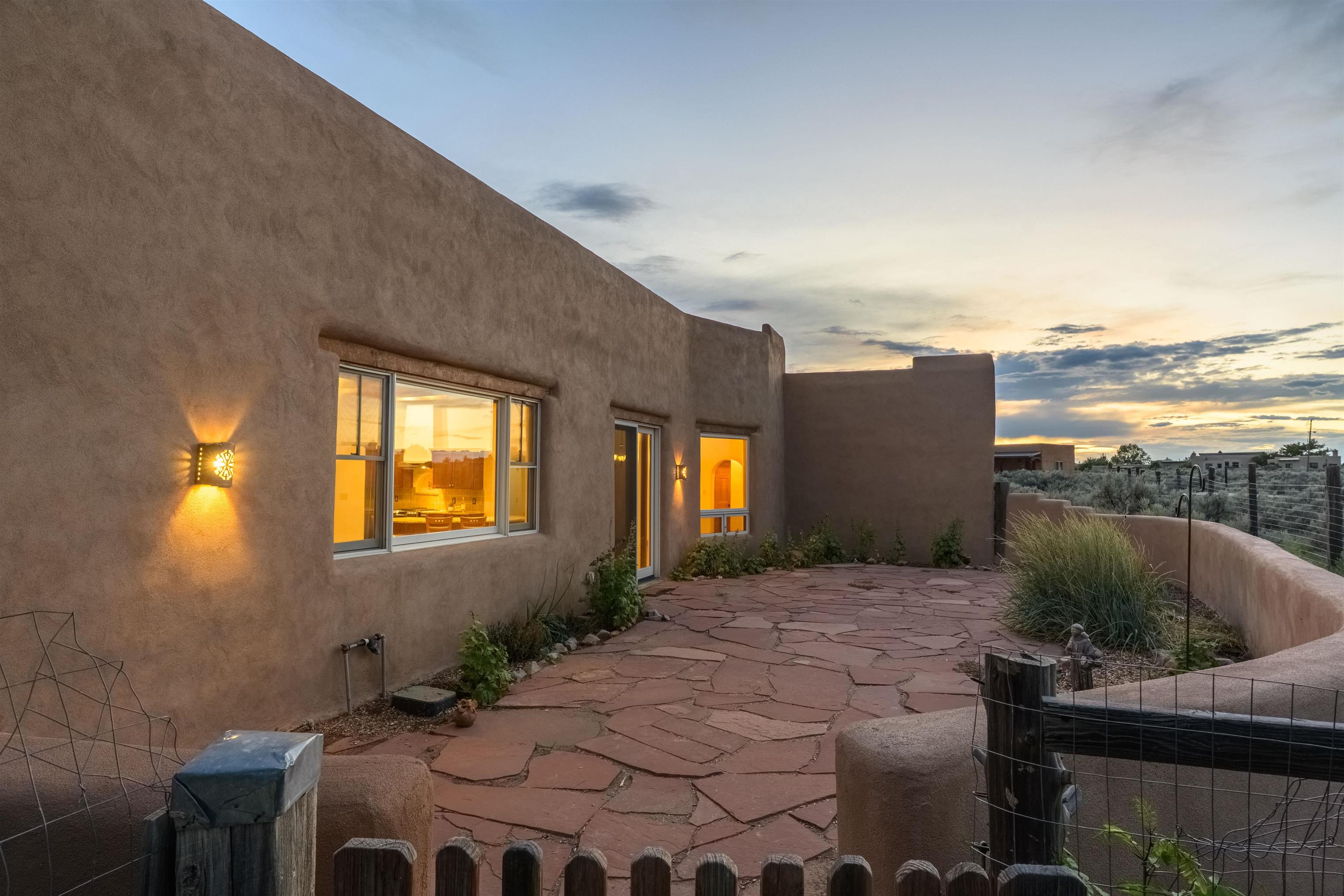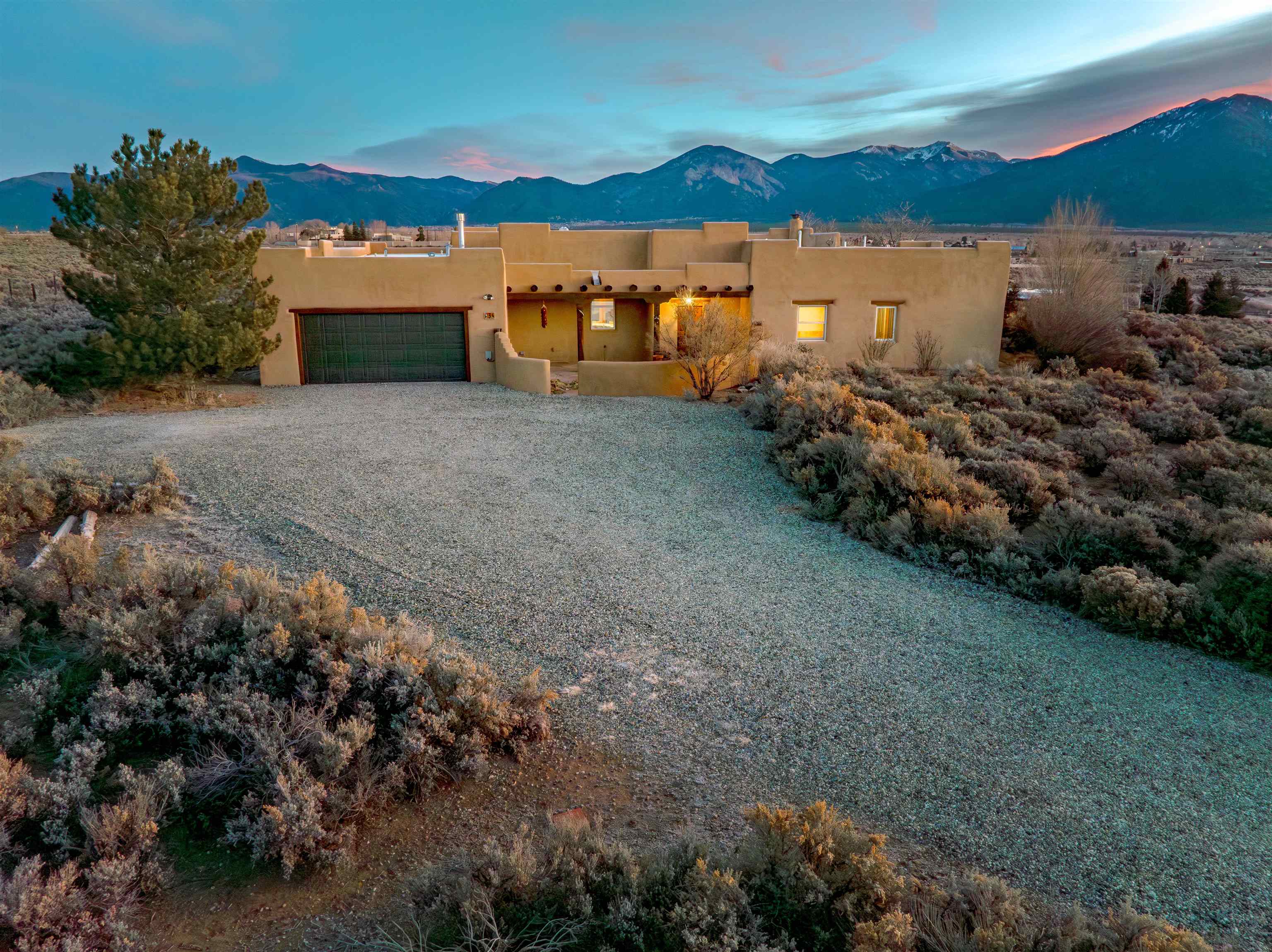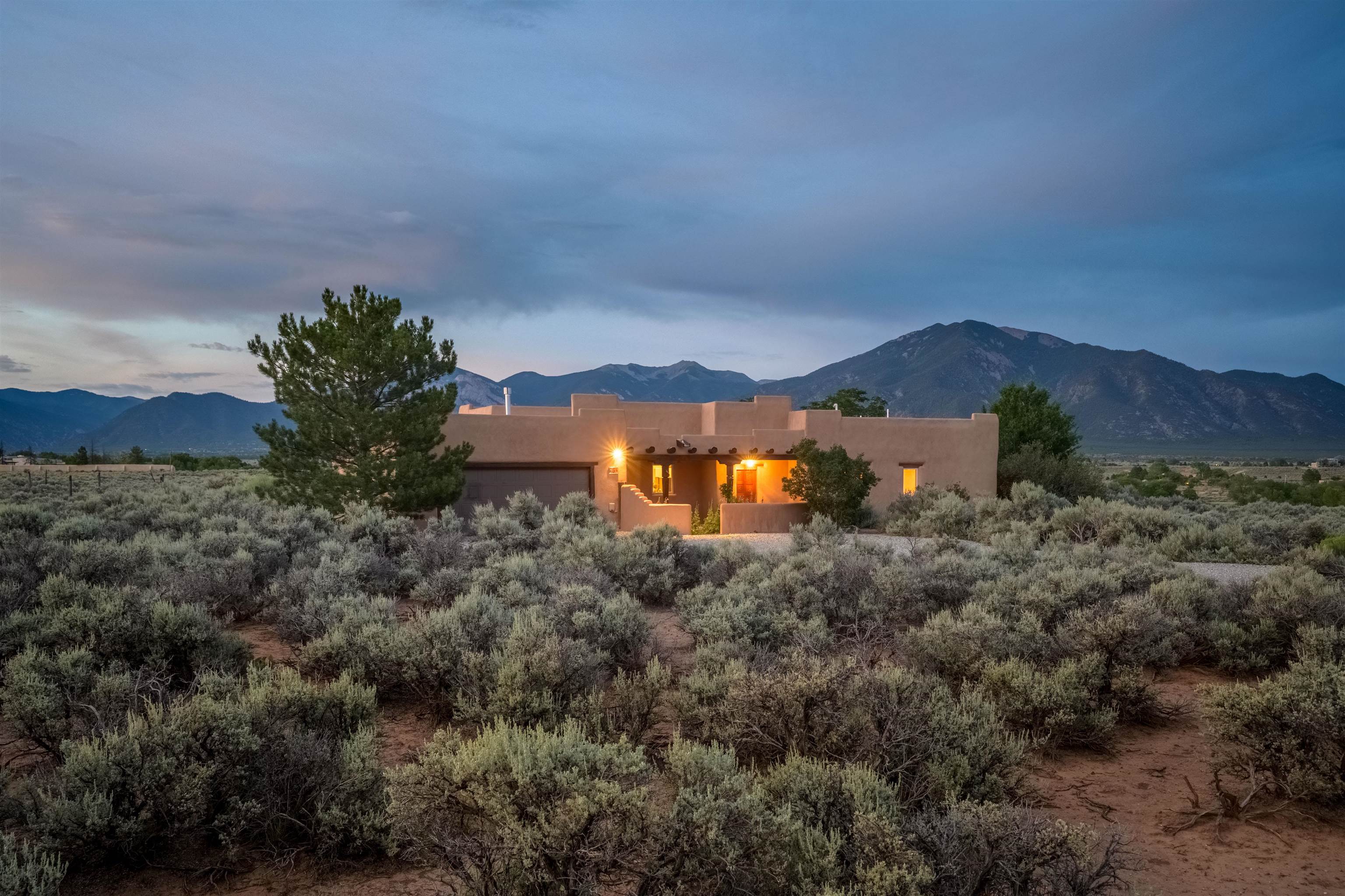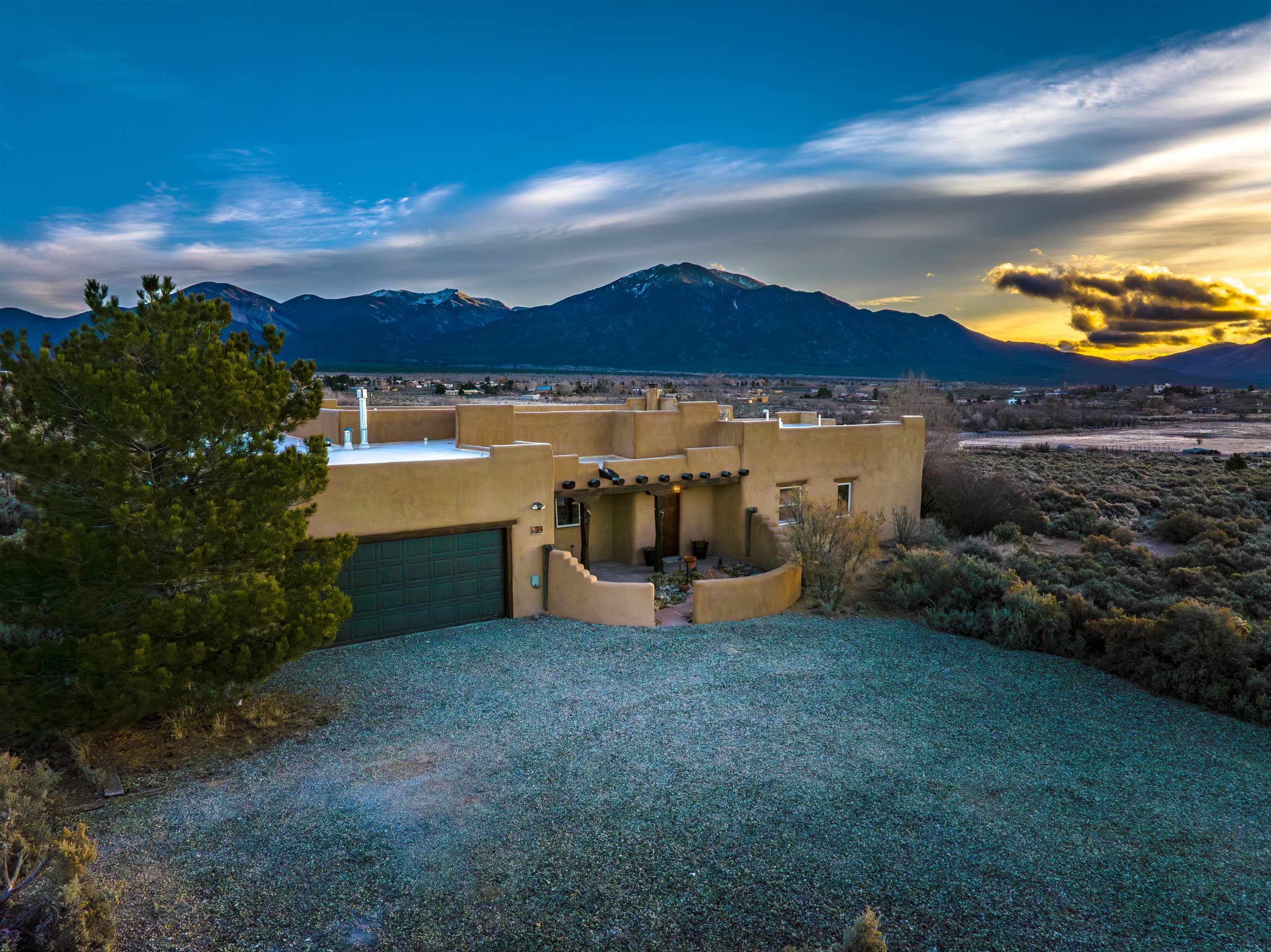Charming Southwest-Style Home in Blueberry Hill Experience the warmth and character of this beautiful home, built with adobe construction and featuring a cozy wood-burning fireplace in the living room. The exterior has recently been updated with fresh stucco, enhancing its curb appeal. The open-concept living and dining areas create a welcoming space for daily living and entertaining. The updated kitchen boasts granite countertops and a picturesque view from the kitchen window, perfect for enjoying morning coffee or simply taking in the stunning mountain scenery. The front covered portal welcomes you home, complemented by a lovely garden walkway that adds charm and tranquility. The rear patio provides an ideal setting for outdoor gatherings while soaking in breathtaking mountain views—an incredible backdrop for relaxing, dining, or entertaining guests. The property also features an attached 2-car garage, providing convenient parking and storage. Located in the highly desirable area of Blueberry Hill, this home is close to Taos Ski Valley, shopping, and dining at the historic Taos Plaza. Whether you're seeking a full-time residence, a part-time retreat, or an income-generating investment property, this location offers versatility and appeal. Contact Cyndi today to schedule your private showing and discover all that this charming property has to offer! DRONE VIDEO LINK: https://vimeo.com/1150346219