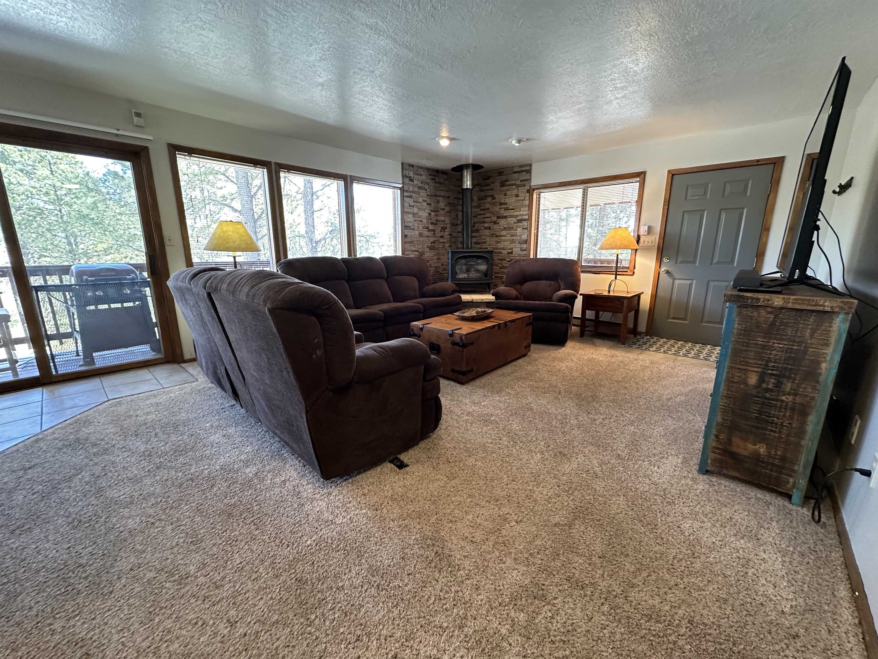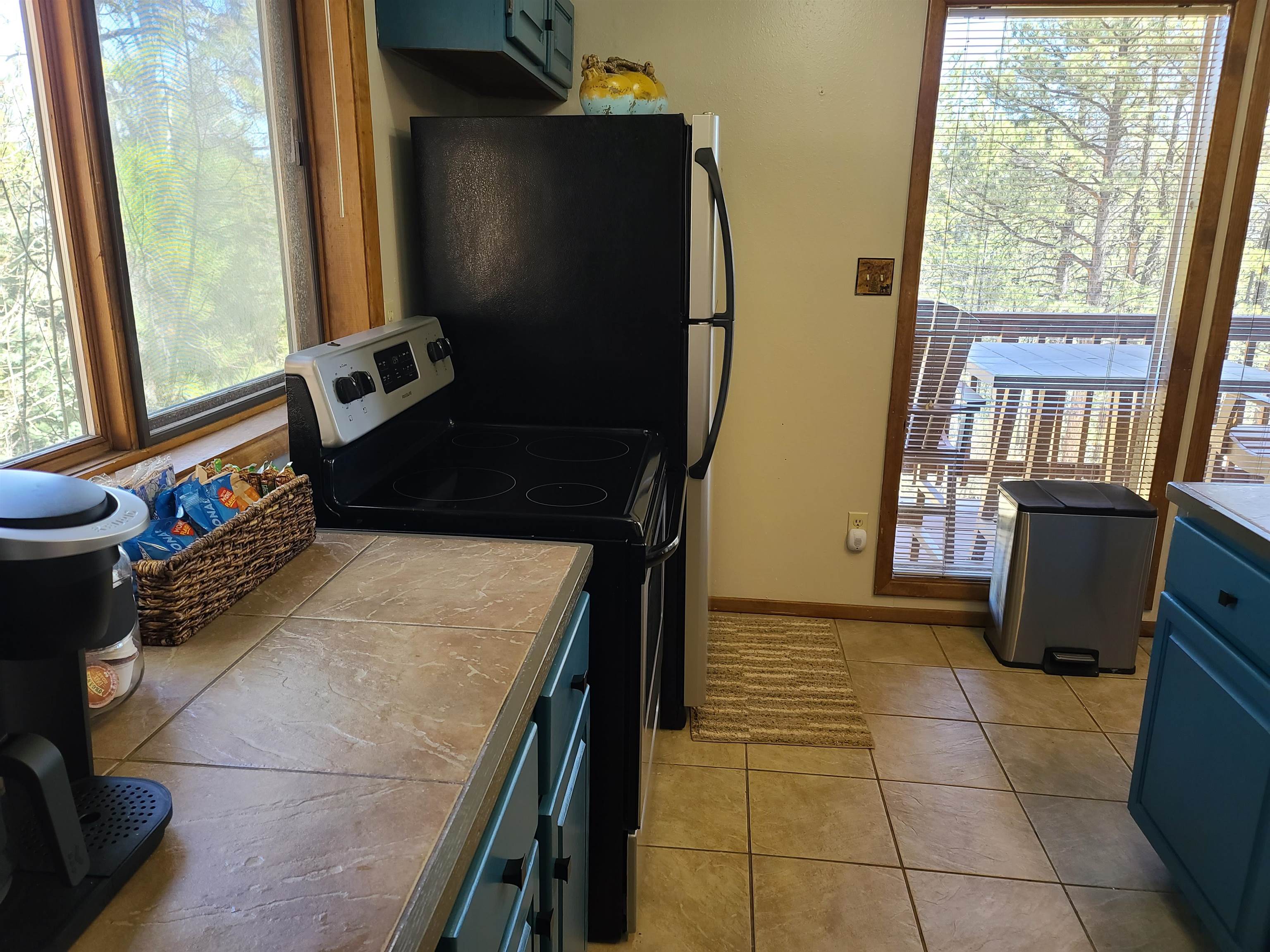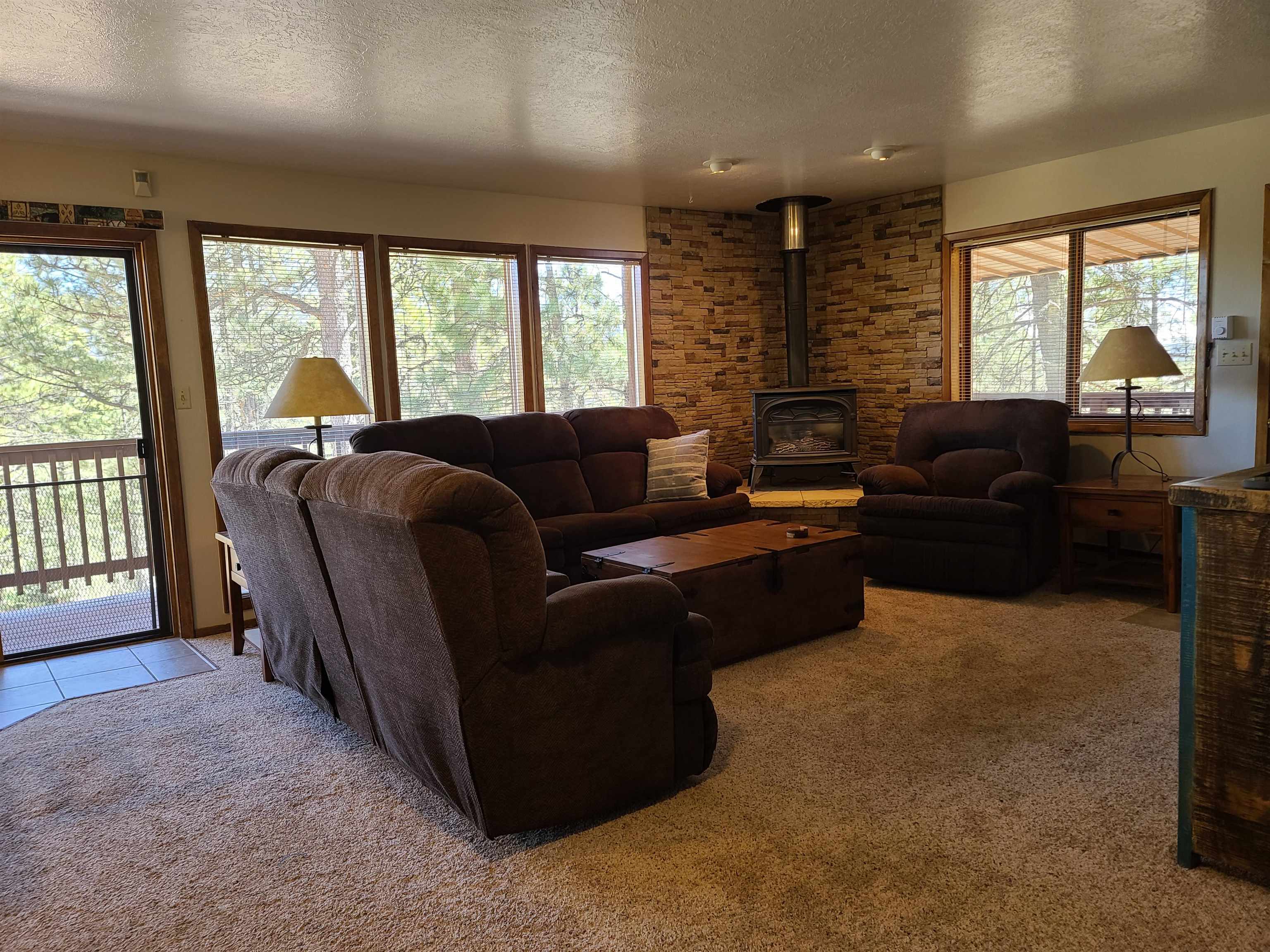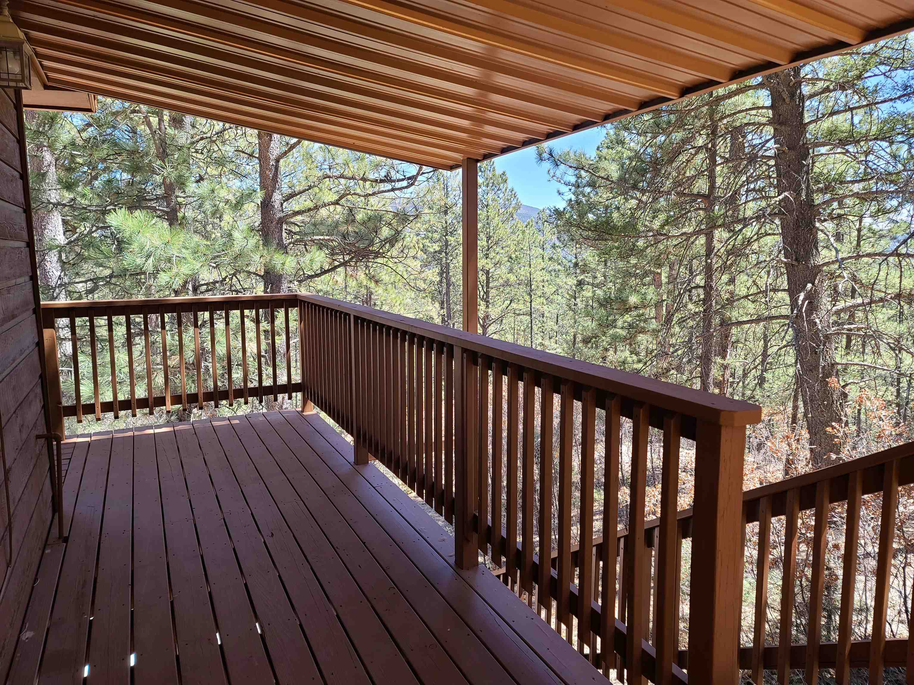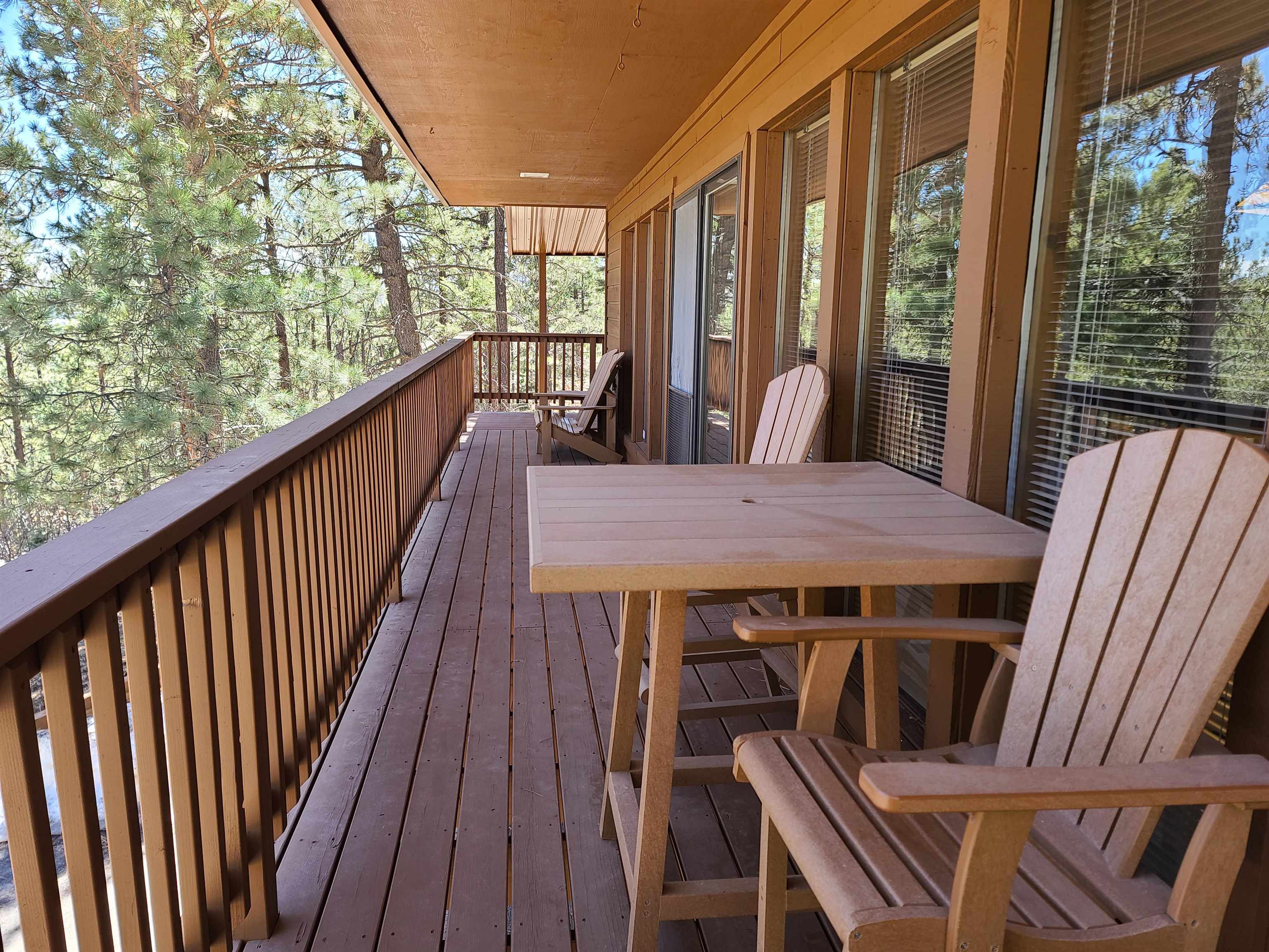 You're going to love this place! It's tucked away at the end of a quiet cul-de-sac, so you get extra privacy. Plus, it backs up to a green belt, meaning you can step right out onto the hiking trails. The views of the forest and mountains from the kitchen, dining, and living areas are absolutely incredible. There's plenty of outdoor space with covered decks on the front and side, and the primary bedroom even has its own private covered deck—perfect for morning coffee. The previous owners put on a new metal roof and repaved the driveway, so there's room for all your cars. Current owner repainted interior and updated the furnishing. Downstairs, you'll find a second living space, a bedroom, a bathroom, and the laundry room. Best of all, it comes fully furnished (with just a few small exceptions), making moving in a breeze!