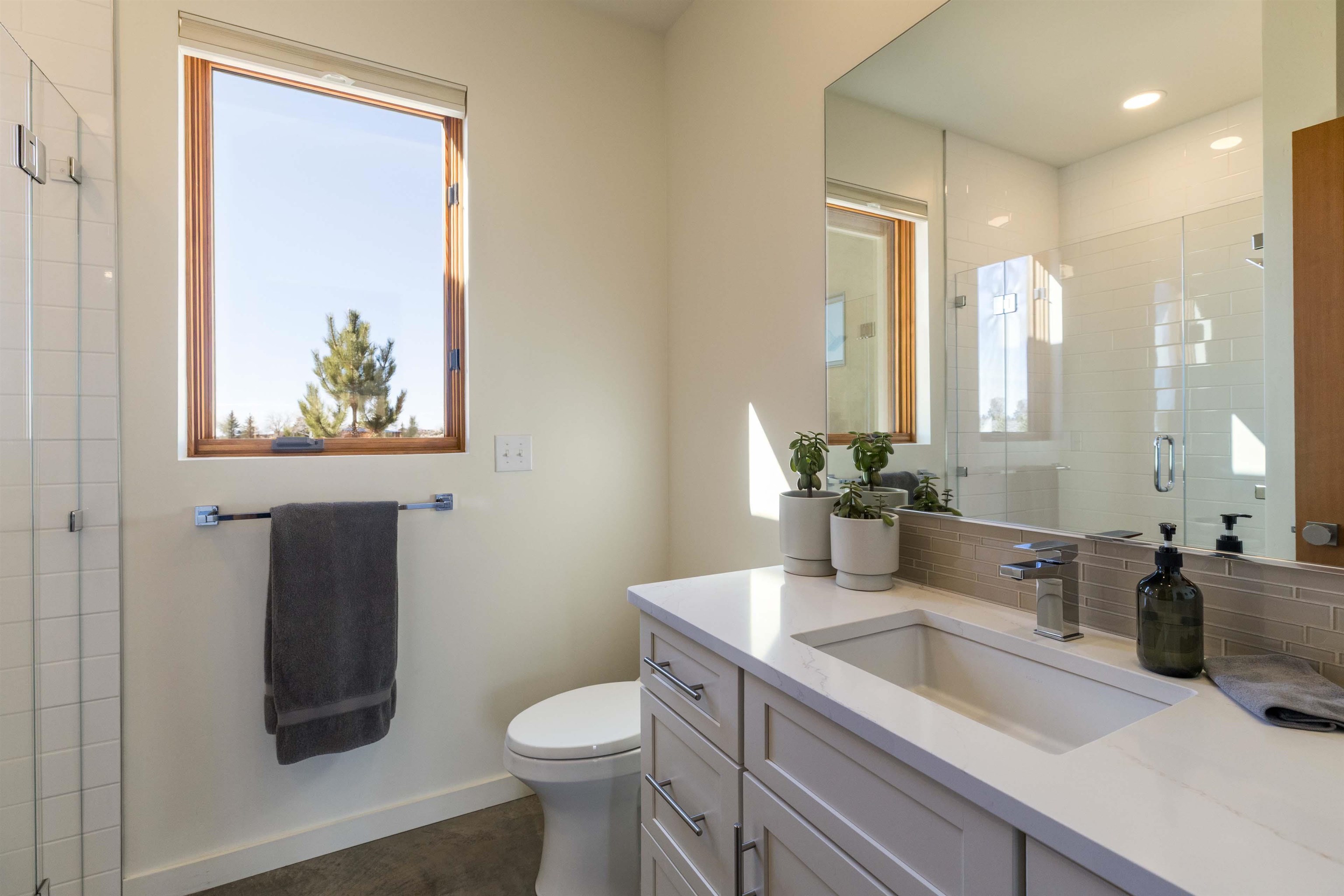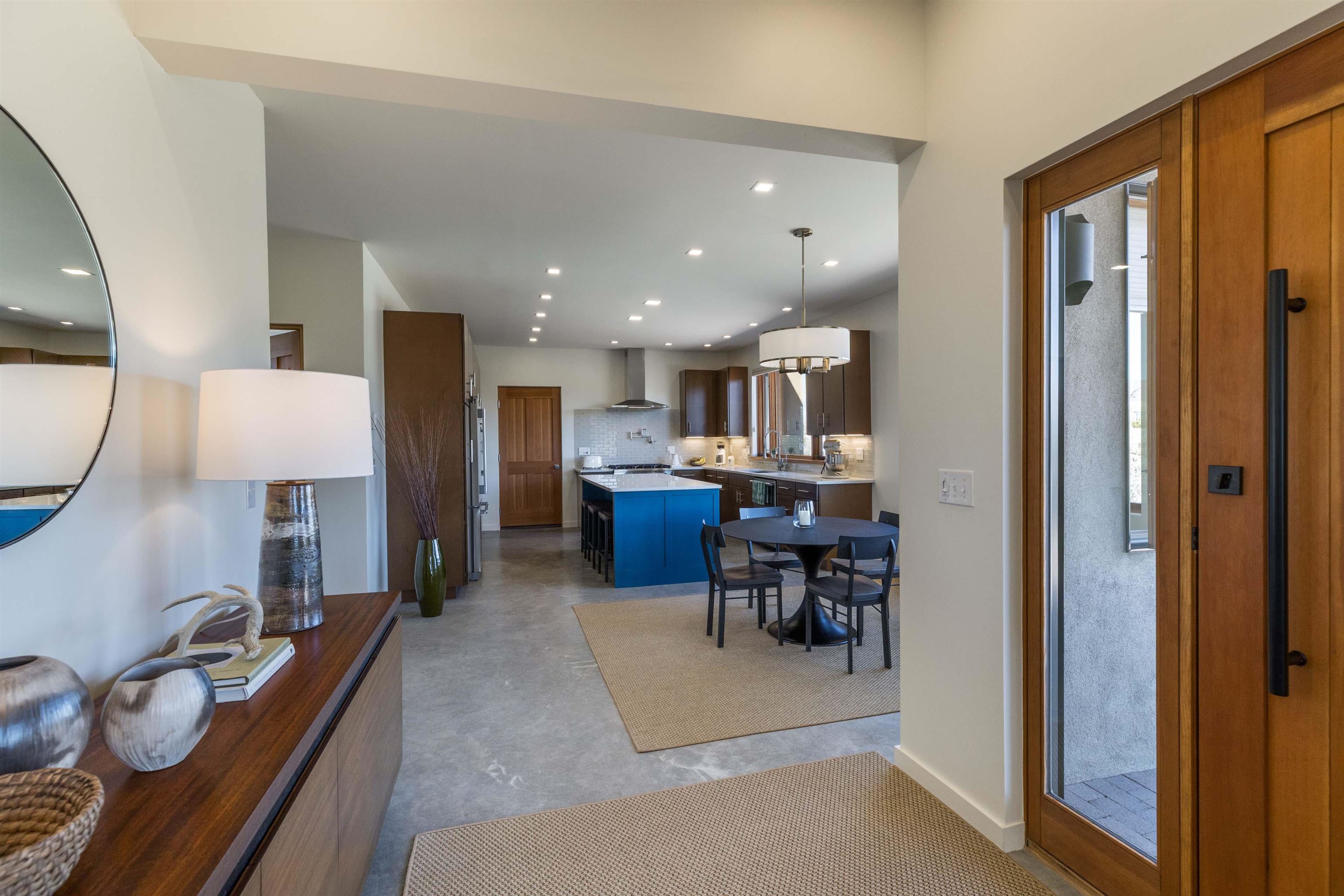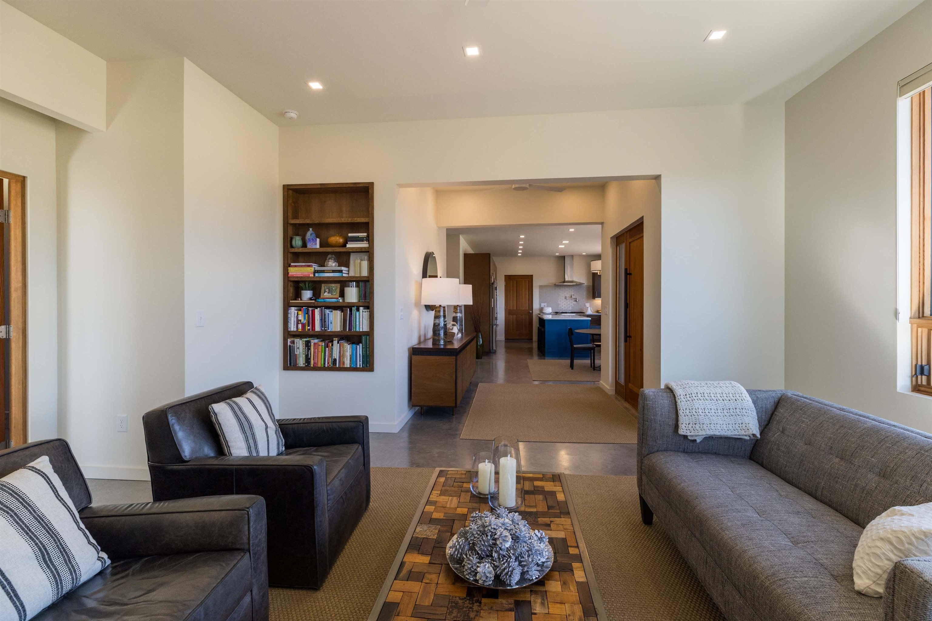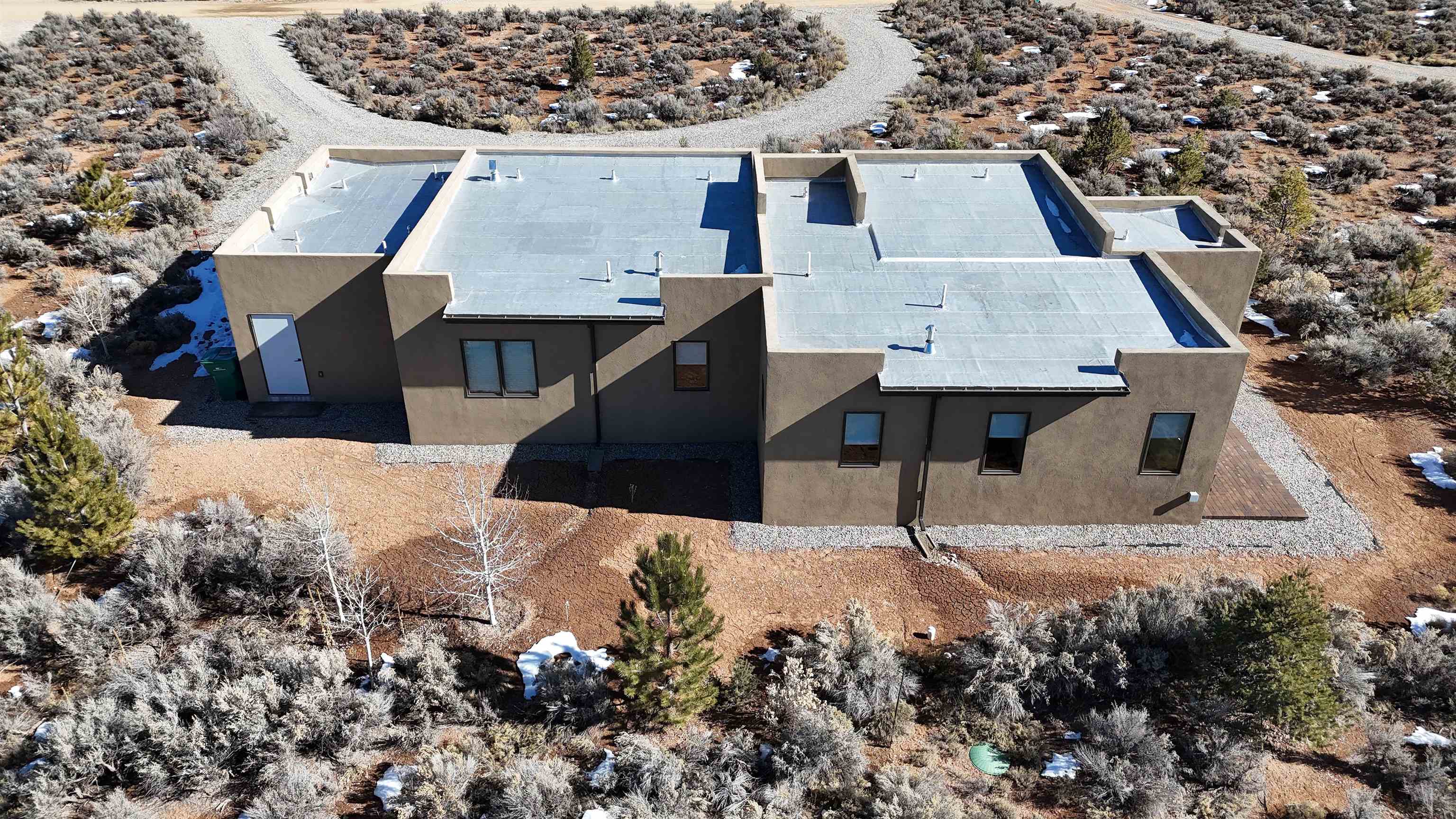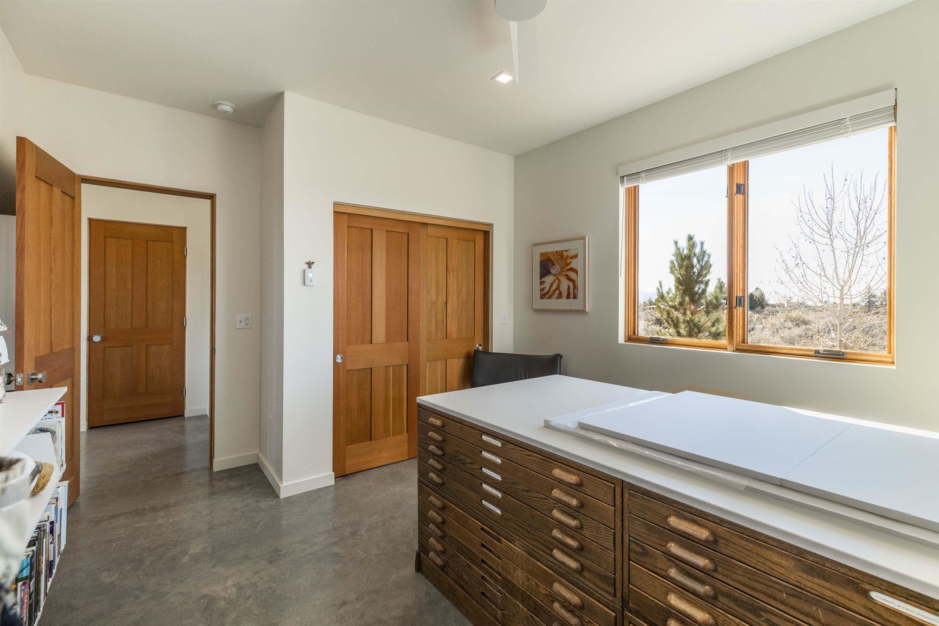 At the quiet end of a dead-end road, where the land opens into protected beauty and the sky feels endless, this contemporary Southwest residence offers a rare harmony of privacy, design, and place. Thoughtfully built just five years ago and maintained to the highest standard, the two-bedroom, two-bath home lives like new—radiant floor heat beneath your feet, a glowing gas Jotul fireplace anchoring the living space, and expansive windows framing the ever-changing drama of the Sangre de Cristo Mountains. Natural light moves effortlessly through the interiors, illuminating clean lines and warm, organic textures. The kitchen is exceptional—abundant custom storage, top-of-the-line Frigidaire Professional appliances, double wall ovens (convection), a convection microwave/oven combo, Zepher hood, 6 burner 36" Thor gas Range top, a large custom-built island and a gracious layout designed for both intimate evenings and inspired entertaining. Every detail feels intentional. Every finish, timeless. There are custom details throughout and all systems are thoughtful and efficient including: water softener, reverse osmosis drinking system, on demand hot water heater, instant hot water for taps, multi zone radiant heating, including garage, dimmable LED lighting inside and out, fiber optic high speed internet with ethernet wall outlets, adjustable Elfa closet systems, automatic drip irrigation and a hot tub hookup. The Primary bedroom is bathed in natural light and graced with a spa-like bath and large walk-in closet and a sublime view of Pedernal on the horizon through the West facing windows. The guest bedroom is currently used as a fantastic Artist studio. A flexible bonus room offers the perfect setting for a private office, studio, or creative sanctuary. The attached heated garage adds everyday ease, while the home’s position contiguous to a conservation easement ensures lasting tranquility and gorgeous walks just out the front door. Step outside to miles of walking trails through open sage , where the landscape is preserved and the silence is sacred. Ideally located off the north end of Blueberry Hill, this property is perfectly poised between the cultural heartbeat of Taos and the alpine exhilaration of Taos Ski Valley. World-class skiing, rafting, biking, and hiking are all within effortless reach—yet home remains a peaceful retreat. Offered fully furnished with beautifully curated pieces that complement the architecture and light, this is more than a home. It is a turnkey expression of modern Southwest living—romantic, refined, and ready to be lived in beautifully.