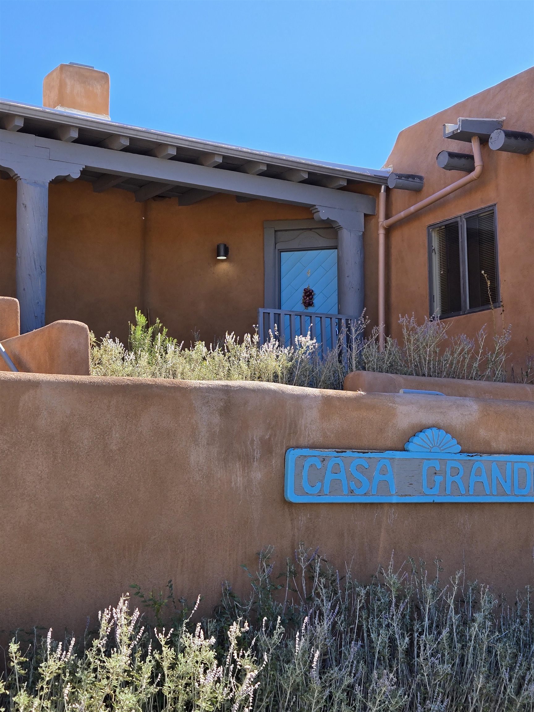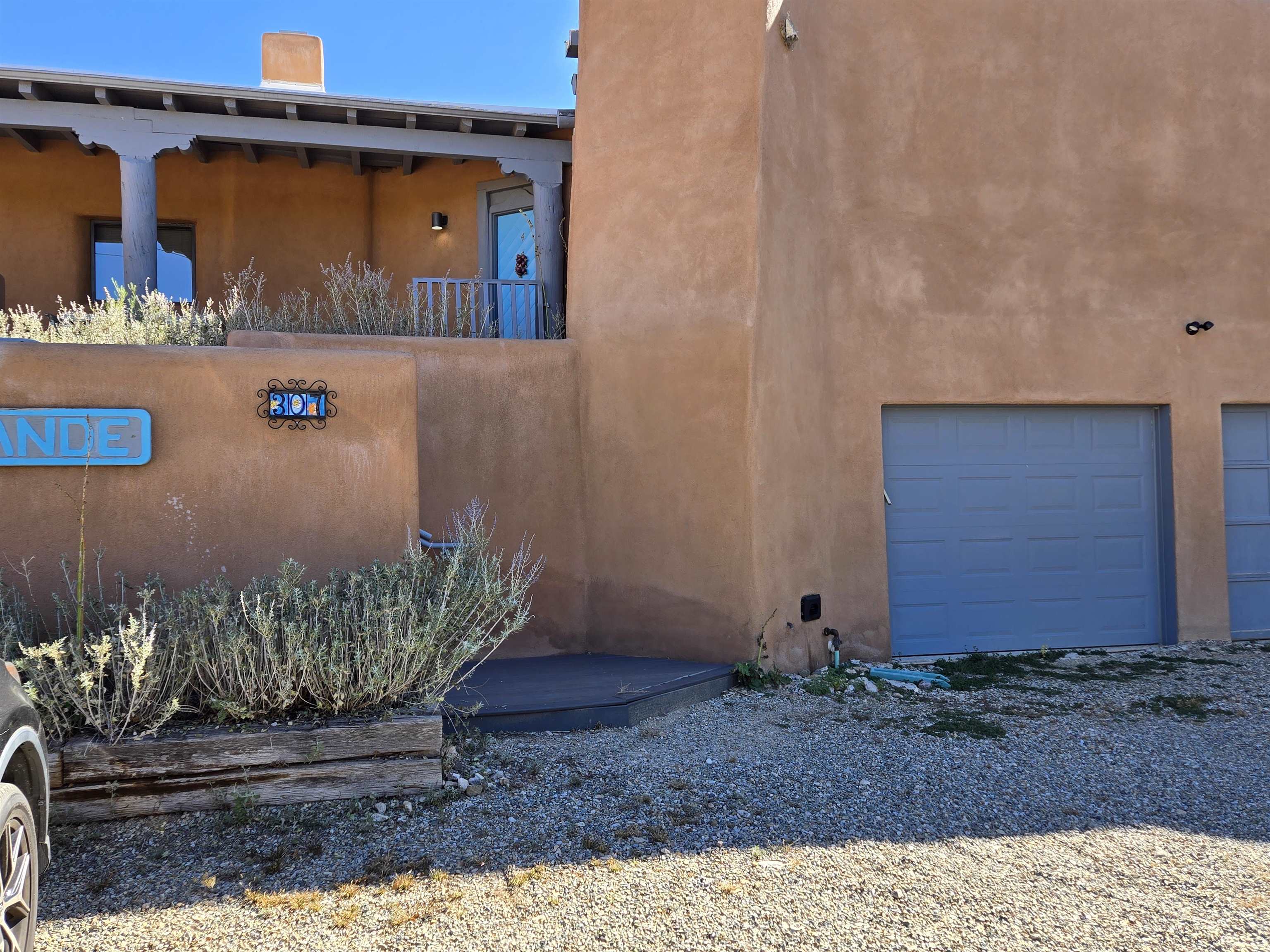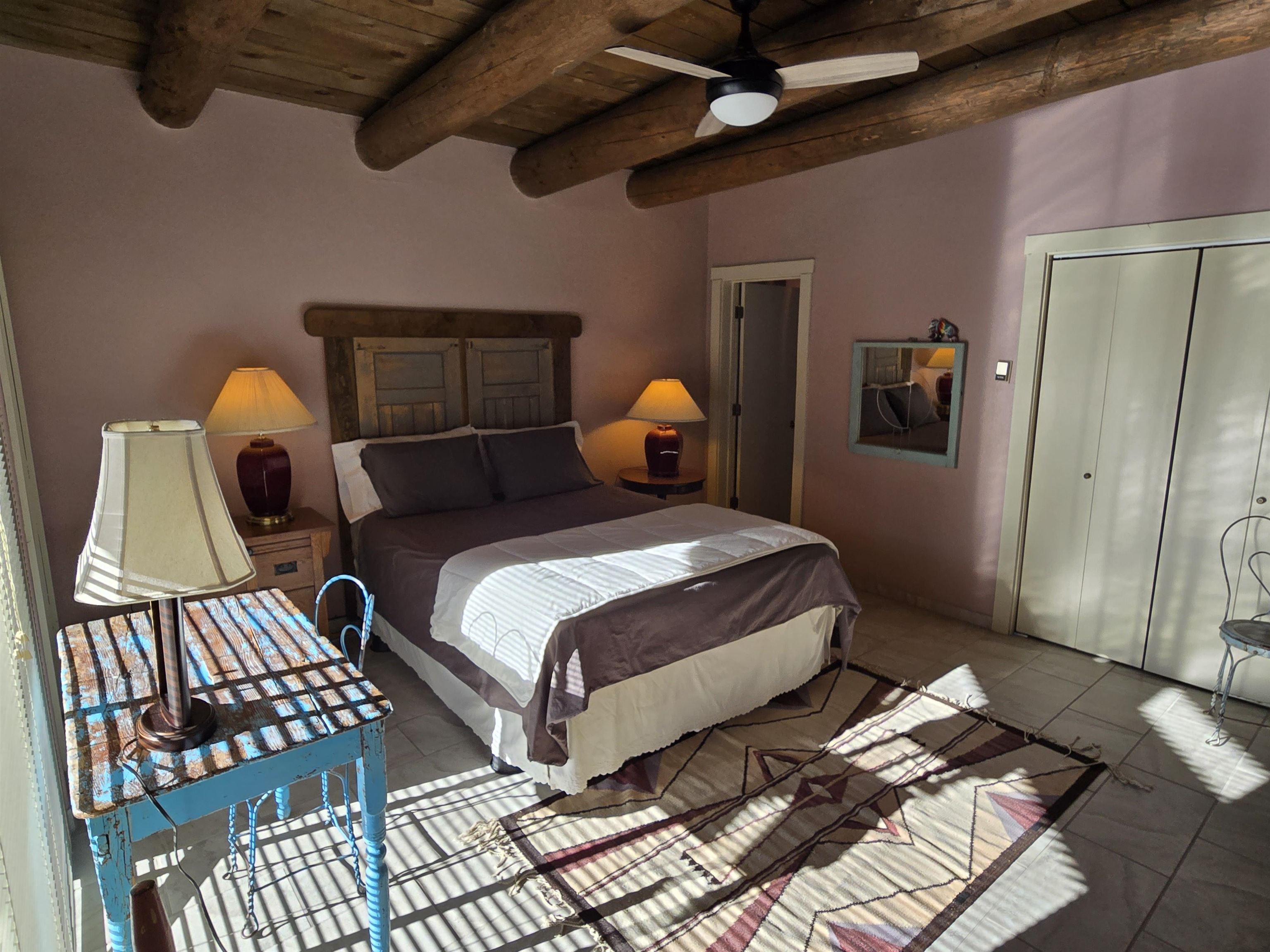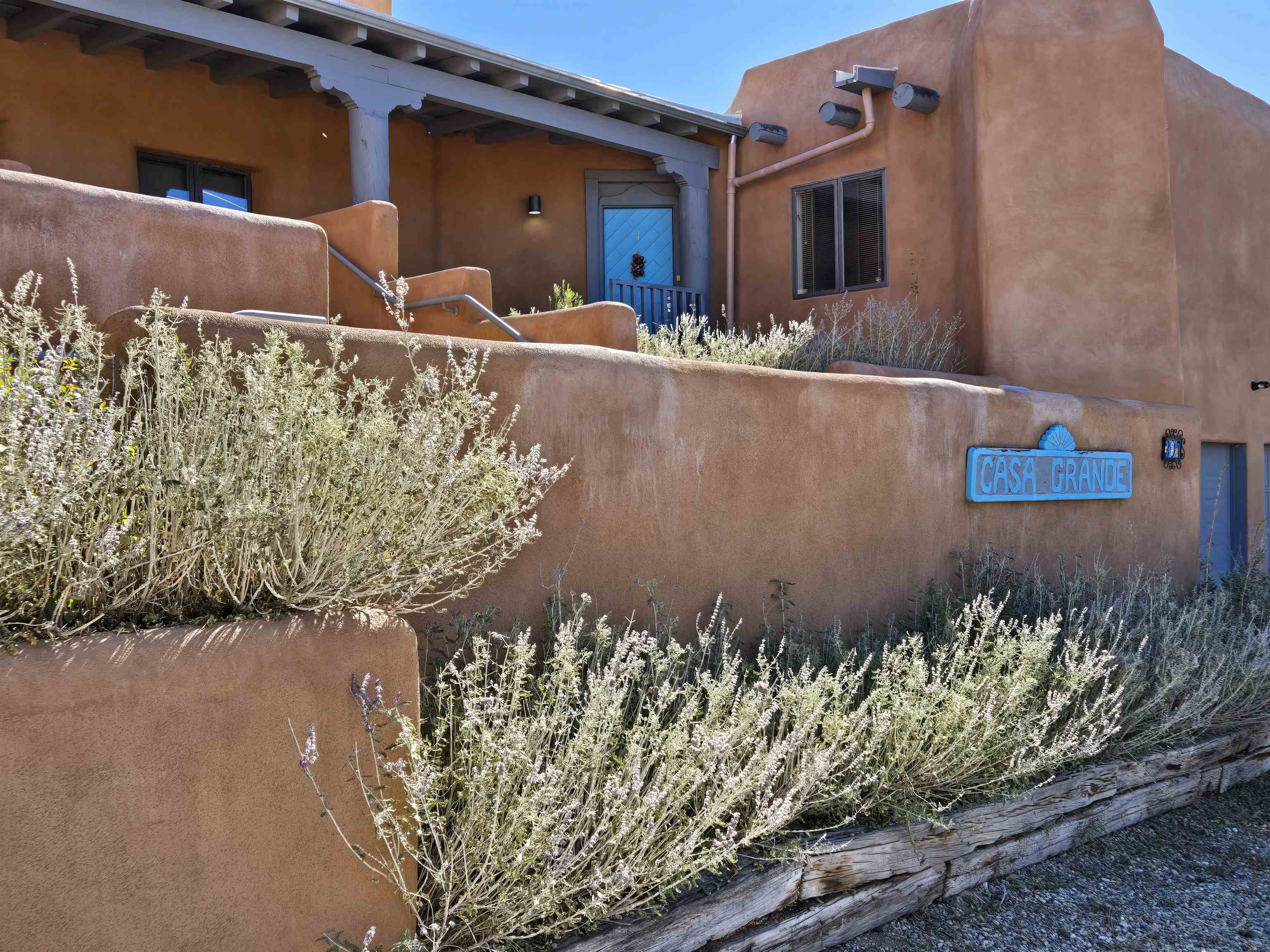 This beautifully updated 2 bedroom 2 bath condo is just a short walk to downtown Taos. It features 2 separate courtyards, a one car garage, a big kitchen island, stainless appliances and ensuite bathrooms for each of the bedrooms. There is a full sized washer and dryer in the unit. The building has 6 units. Valverde Street is located just 2 blocks west of Taos Plaza and is very convenient to shopping, restaurants, concerts and downtown events. PRIME LOCATION AND COMMUNITY FEATURES: The condominium, called Casa Grande is ideally located within the historic district of Taos, an area where short-term rentals are not permitted; however, long-term rental opportunities are available for residents. Its prime placement offers outstanding convenience and walkability as it is situated close to the plaza, Kit Carson Park, the dog park, and the library. Being on the north side of the Historic Taos Plaza, the property provides easy access to the Taos Ski Valley, making it especially appealing to those who enjoy outdoor activities. Additionally, the building borders Garcia Elementary School, ensuring a peaceful and quiet atmosphere during evenings, summers, and weekends. OPEN LIVING SPACES AND COURTYARDS: The main living area of the condominium is designed with an open-concept kitchen and living room. French doors in the living area open directly onto the east courtyard, which leads to the back condo area and serves as a shortcut to the plaza. A fireplace, crafted by renowned Taos artist Carmen Valvarde, serves as a striking centerpiece in this space. The kitchen is equipped with modern stainless steel appliances, including an electric range with an internal exhaust system. It overlooks the south courtyard, which provides passive heat in the winter to keep heating costs low and helps keep the unit cool during the summer. The south courtyard also features a flagstone patio and connects to the condo grounds, the front parking lot, and the pathway to the plaza. BEDROOMS AND BATHROOMS: Both bedrooms in the unit feature custom-designed headboards created by a local artist and have their own individual thermostats for personalized comfort. The master bedroom has a sliding door that opens directly to the courtyard and includes a private bathroom with a shower. The guest bedroom contains a full-size washer and dryer neatly tucked away in a closet, and the guest bathroom is accessible from the main living area, providing convenience for both residents and guests. The entire unit is finished with tile flooring throughout. HEATING, GARAGE AND BUILDING DETAILS: Heating for the condo is provided by water baseboards, with the boiler and hot water holding tank located in the one-car garage beneath the unit. This setup ensures that the garage remains heated during the winter months. The garage is equipped with a smart door that can be controlled via an app. While the garage does not have direct access to the living space, stairs lead from the garage to the entryway, and once inside, all living areas are situated on a single level for ease of access. The building itself consists of six units, was re-stuccoed in 2018, and had its roof and stairs replaced in 2021, with both improvements currently under warranty. Most furnishings can stay with the unit. Seller intends to retain artwork and selected pieces.
