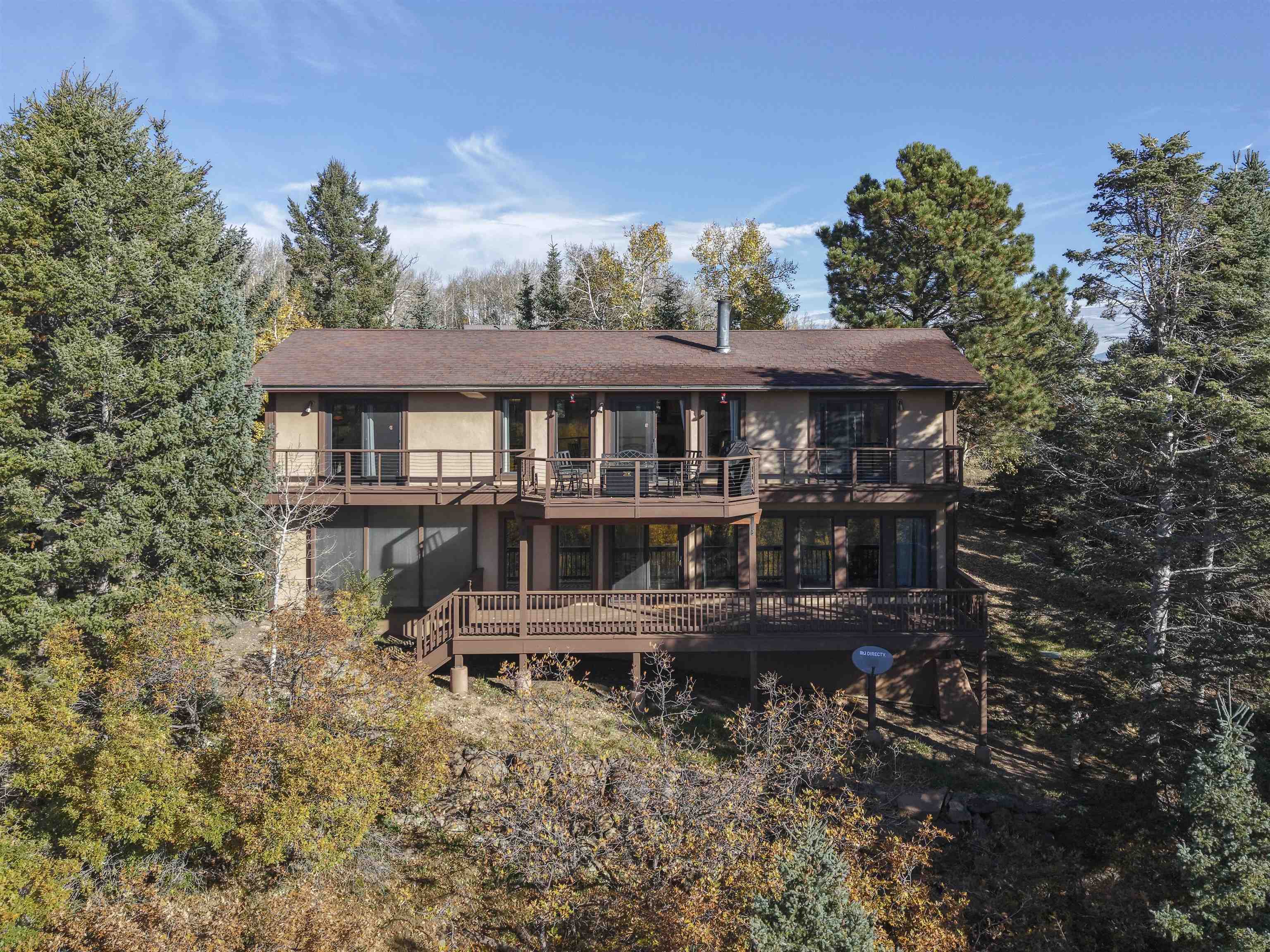 Million-dollar breathtaking views without the million-dollar price tag. Easy access to the Angel Fire Resort golf course, ski mountain and Monte Verde Lake. If you are looking for views and easy year-round access, you must see this house. This hi-efficiency passive solar home, complete with Trombe wall sits on 1.21 acres of stunning nature. This 3-bedroom, 3 full bath home has recently been updated with new waterproof vinyl flooring, stainless-steel appliances, a built in Ice-O-Matic nugget ice machine and new furniture. It is already setup to be a short-term rental if you are looking to help offset your cost of ownership. You can drive your golf cart down the street to the golf course. You are also very close to many green belt trails and hiking if you want to get out and enjoy nature on foot. The ski slopes are a short drive as well. You also get a paved driveway leading to your two-car attached garage to keep your vehicle and golf cart out of the weather. This home has everything you need to enjoy the mountain lifestyle part-time or full-time. Don't miss this one, come see it today!