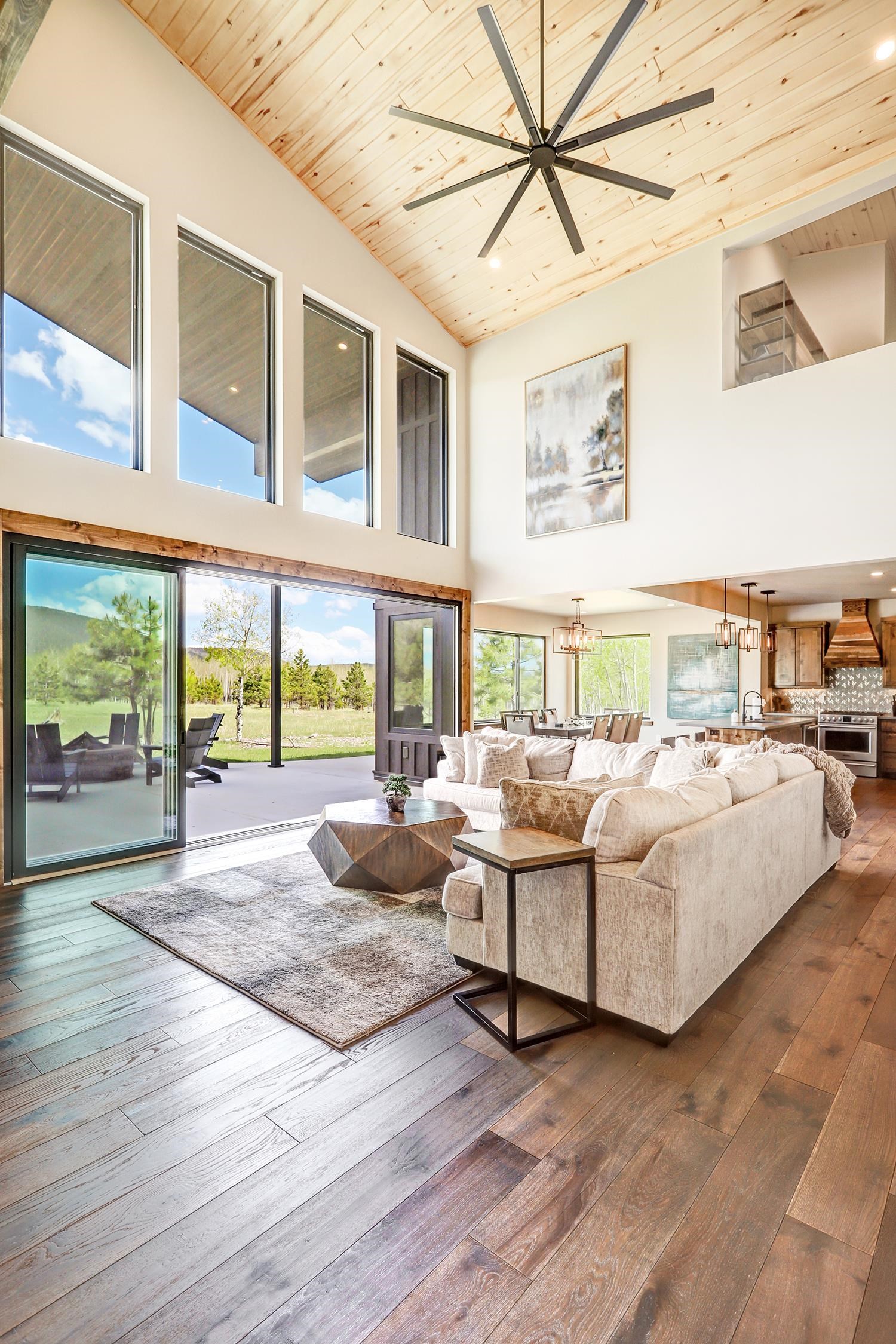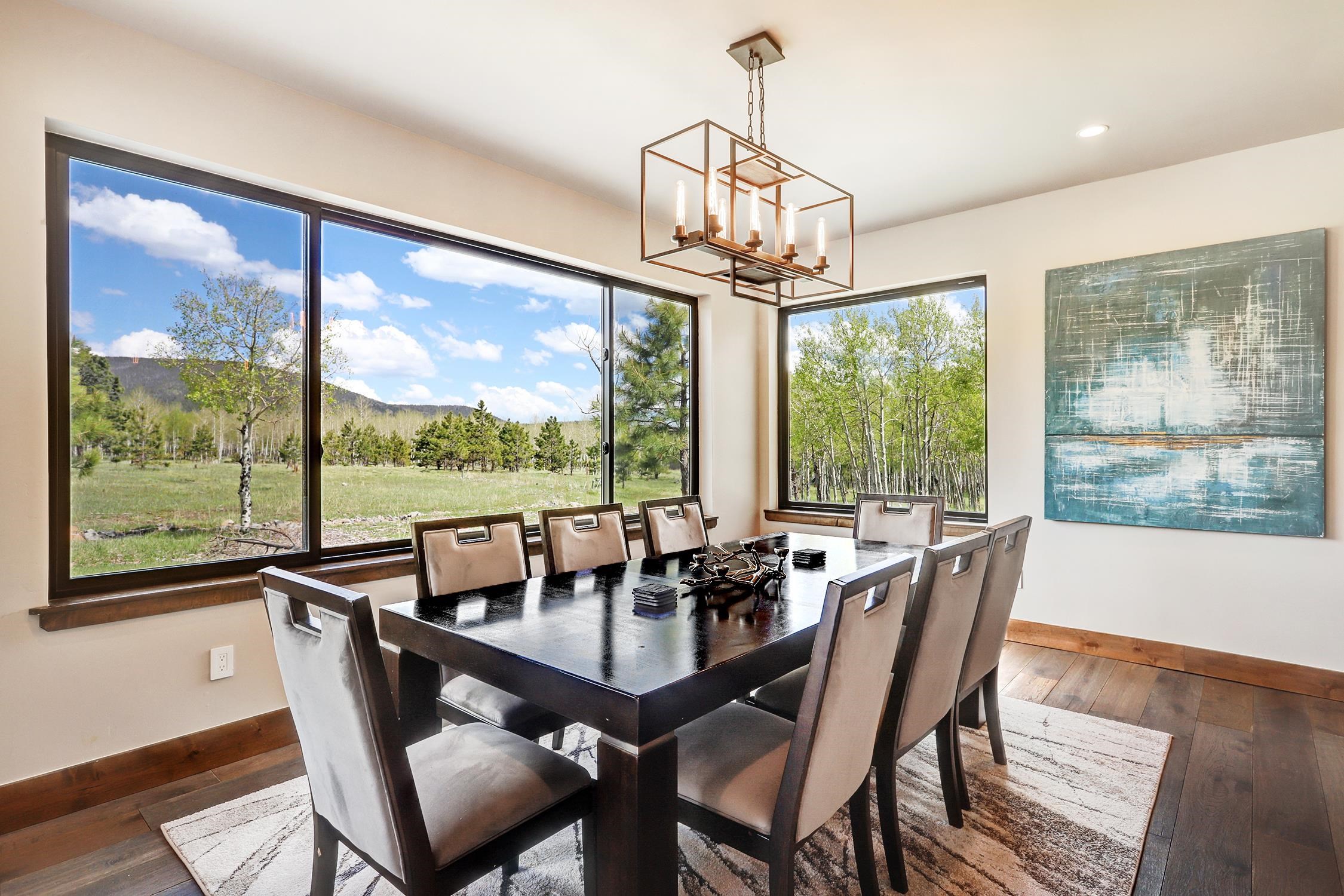 Experience the pinnacle of modern mountain living in this thoughtfully designed retreat, built by Lindsey Custom Builders in 2020. Located in the heart of the Valley of the Utes in Angel Fire NM. This home has 4 spacious bedrooms, 4.5 luxurious bathrooms, and nearly 3,000 square feet of refined living space, 31 Beaver Loop blends rustic charm with contemporary style in a setting that’s as peaceful as it is inspiring. Inside, you're welcomed by a warm, open-concept layout with soaring tongue-and-groove ceilings, rich wood beams, and expansive windows that frame the surrounding forest. A striking propane fueled fireplace anchors the living space, while wide-plank wood floors and sleek finishes elevate the home’s modern mountain aesthetic. The chef’s kitchen features quartz countertops, stainless steel appliances, and ample room for entertaining—perfect for après-ski evenings or quiet weekends in. Each of the four bedrooms is designed with comfort and privacy in mind, with spa-style bathrooms that offer a tranquil retreat after a day of adventure. Through the stacking sliding glass door, step outside onto a concrete patio to breathe in the crisp alpine air, watch elk pass by while you enjoy the propane fire pit or simply enjoy the peace of your forested surroundings.