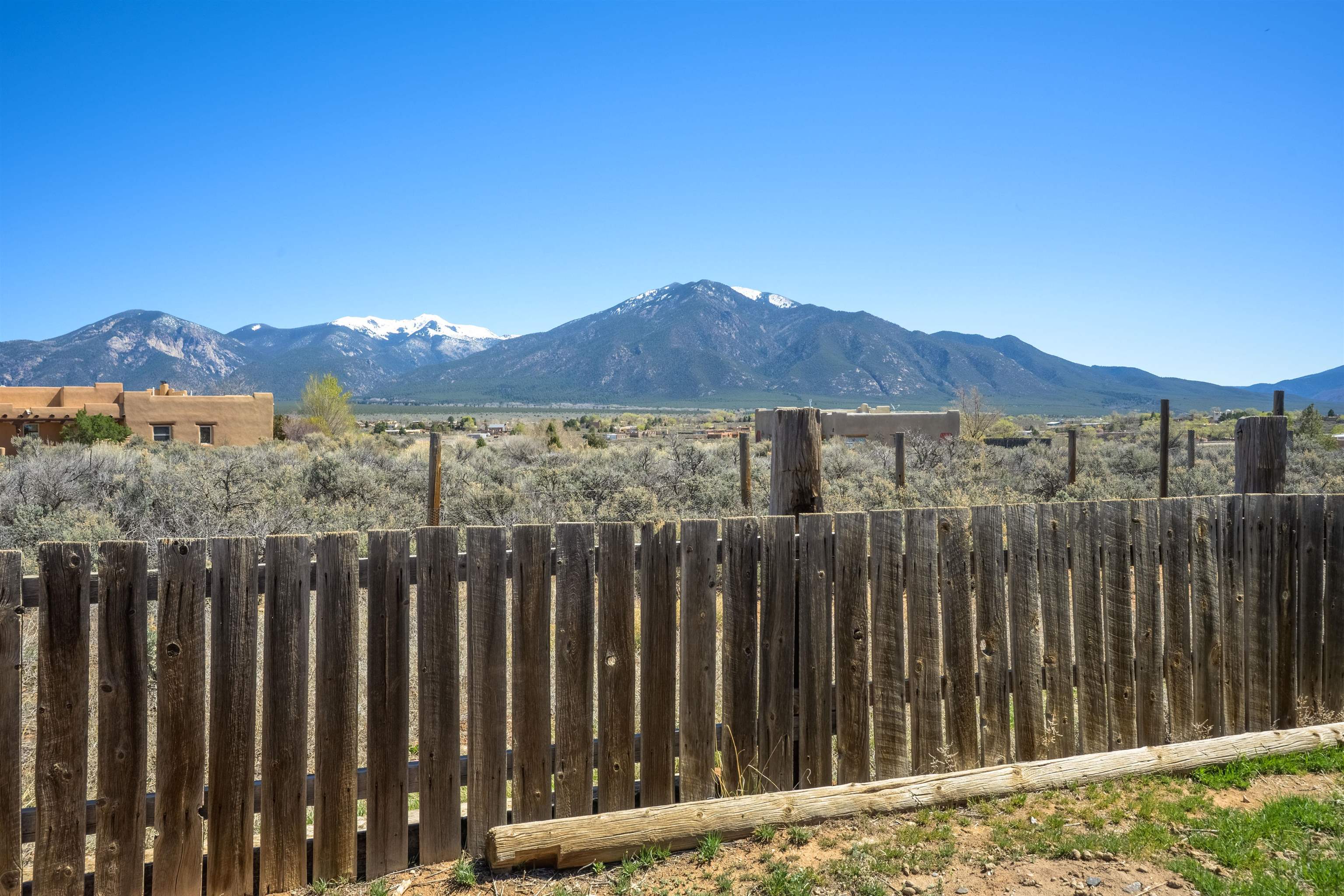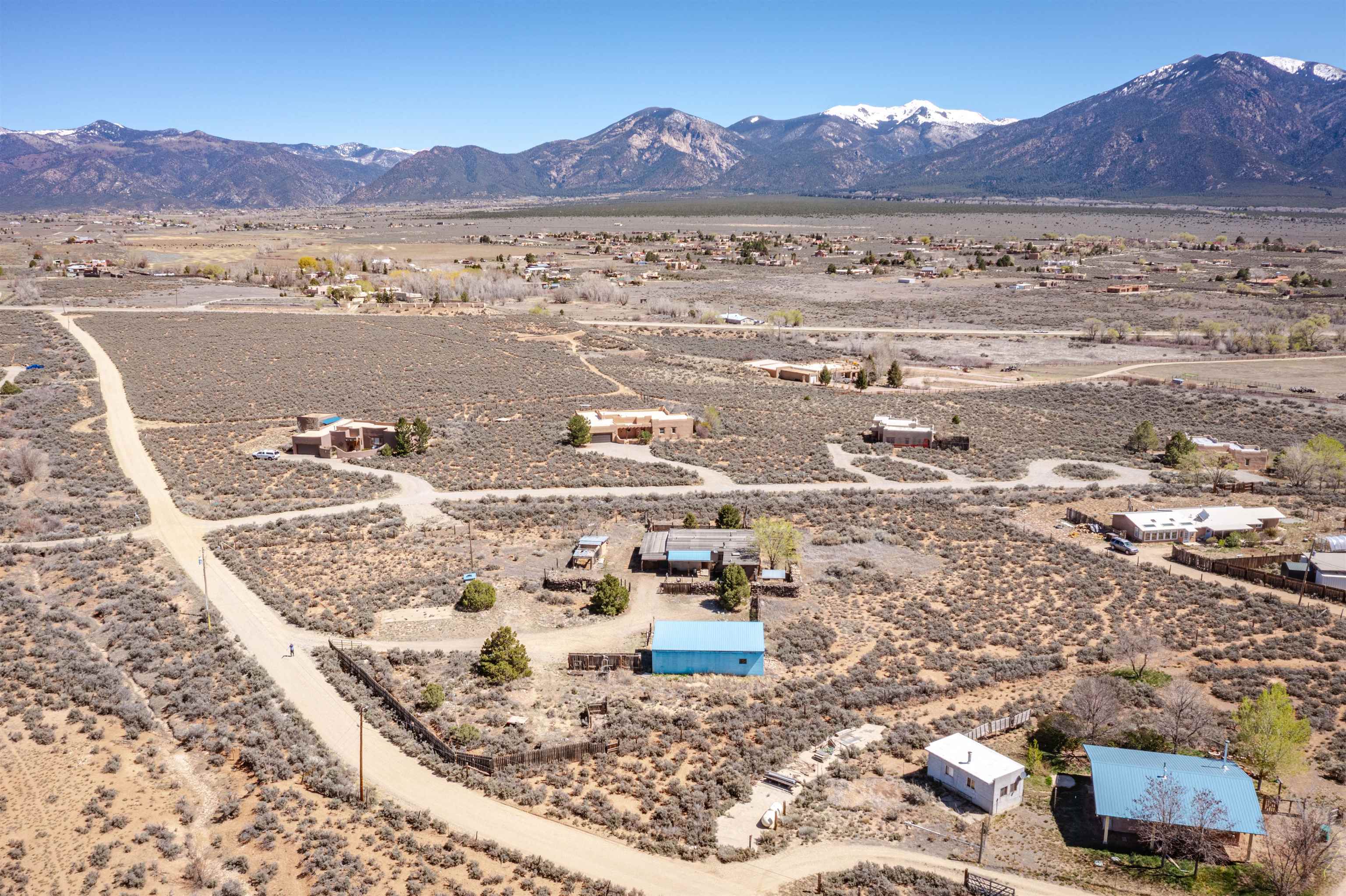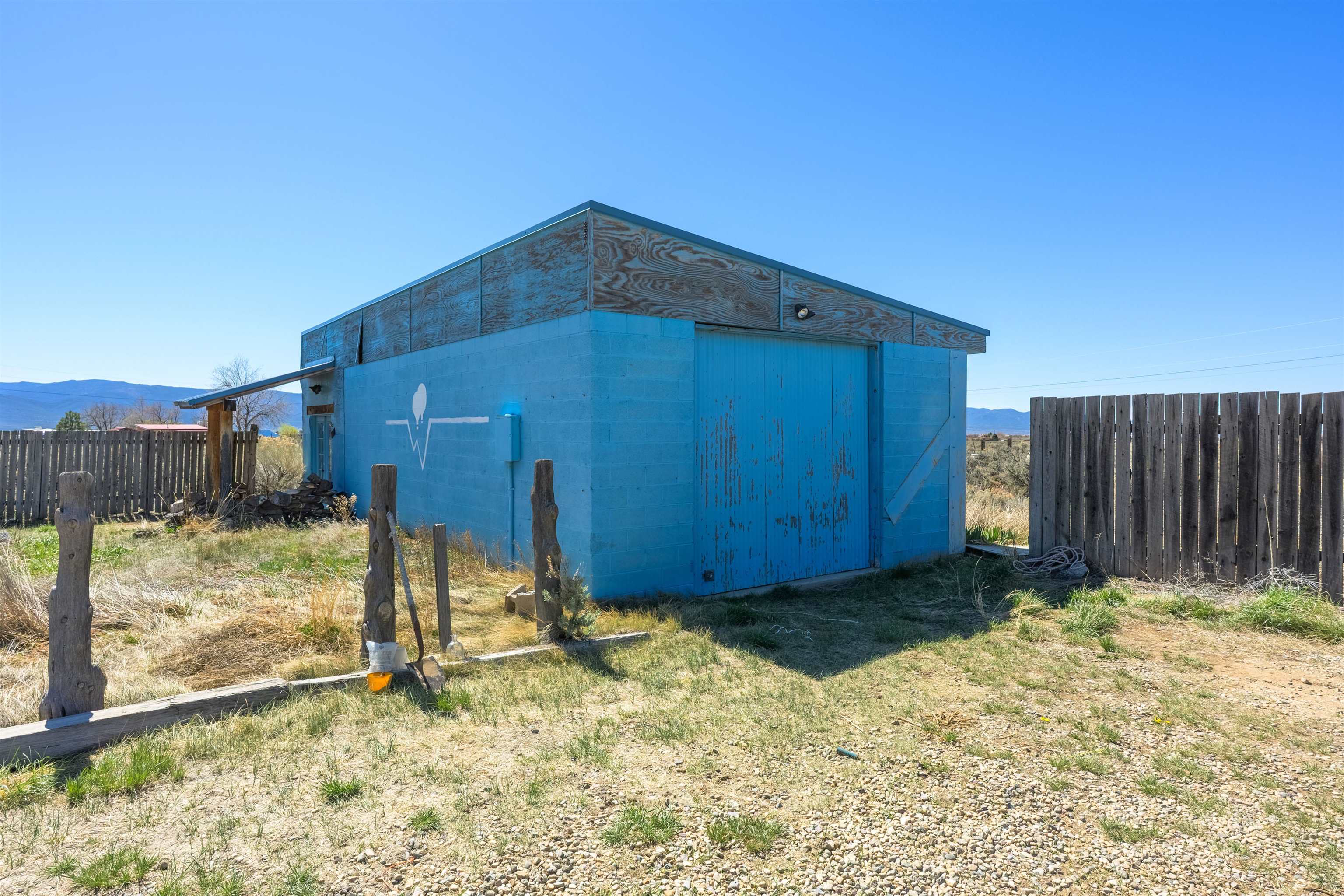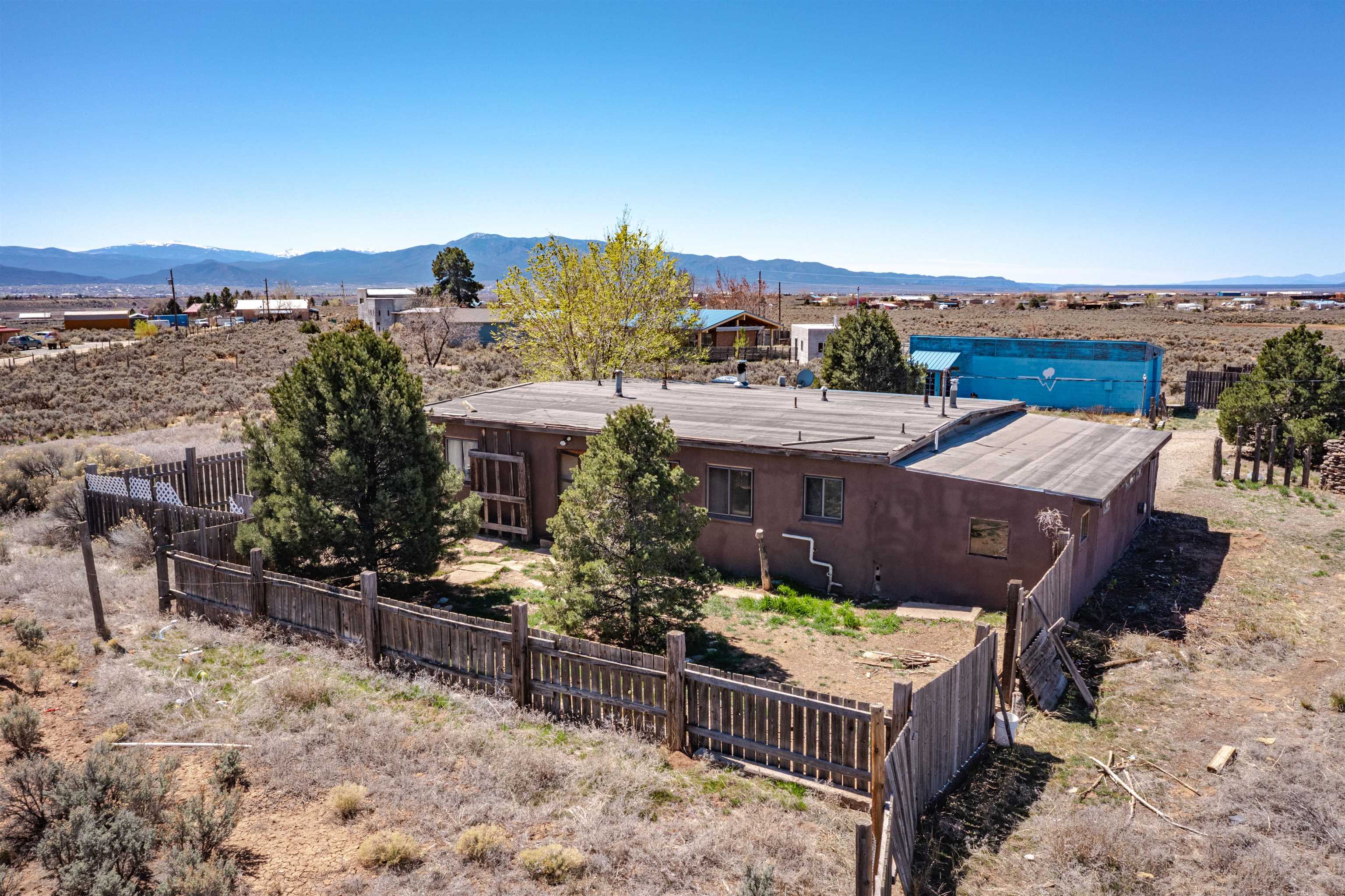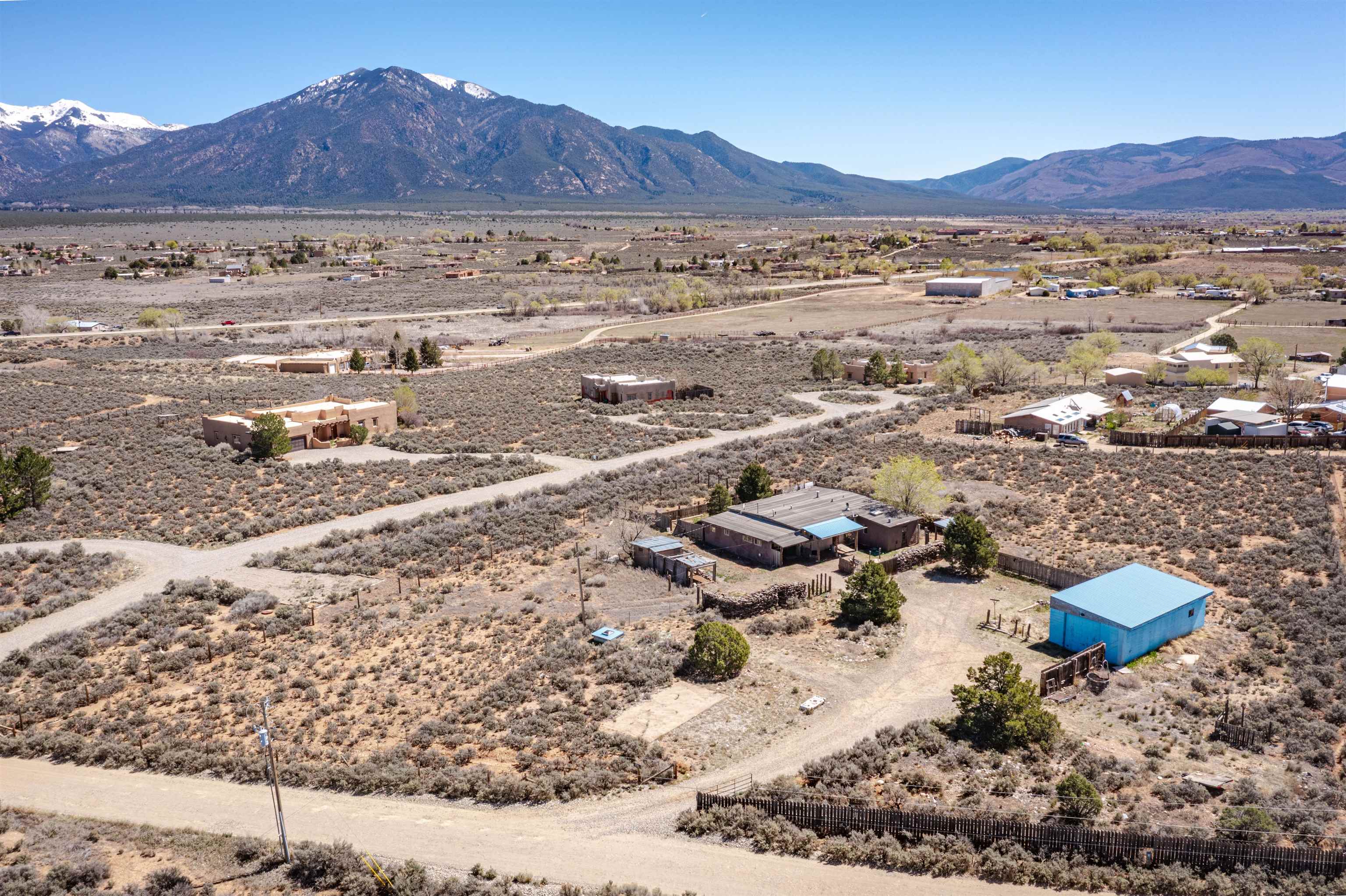 Gorgeous lot with tons of potential! Just minutes to town with panoramic mountain views, mature trees, Acequia irrigation ditch, hand built dry stack stone wall, large garage/ workshop, adobe chicken coop. The house is a true fixer upper, and is sold AS-IS. Or... bring your imagination and enthusiasm, start fresh, and build your dream home!