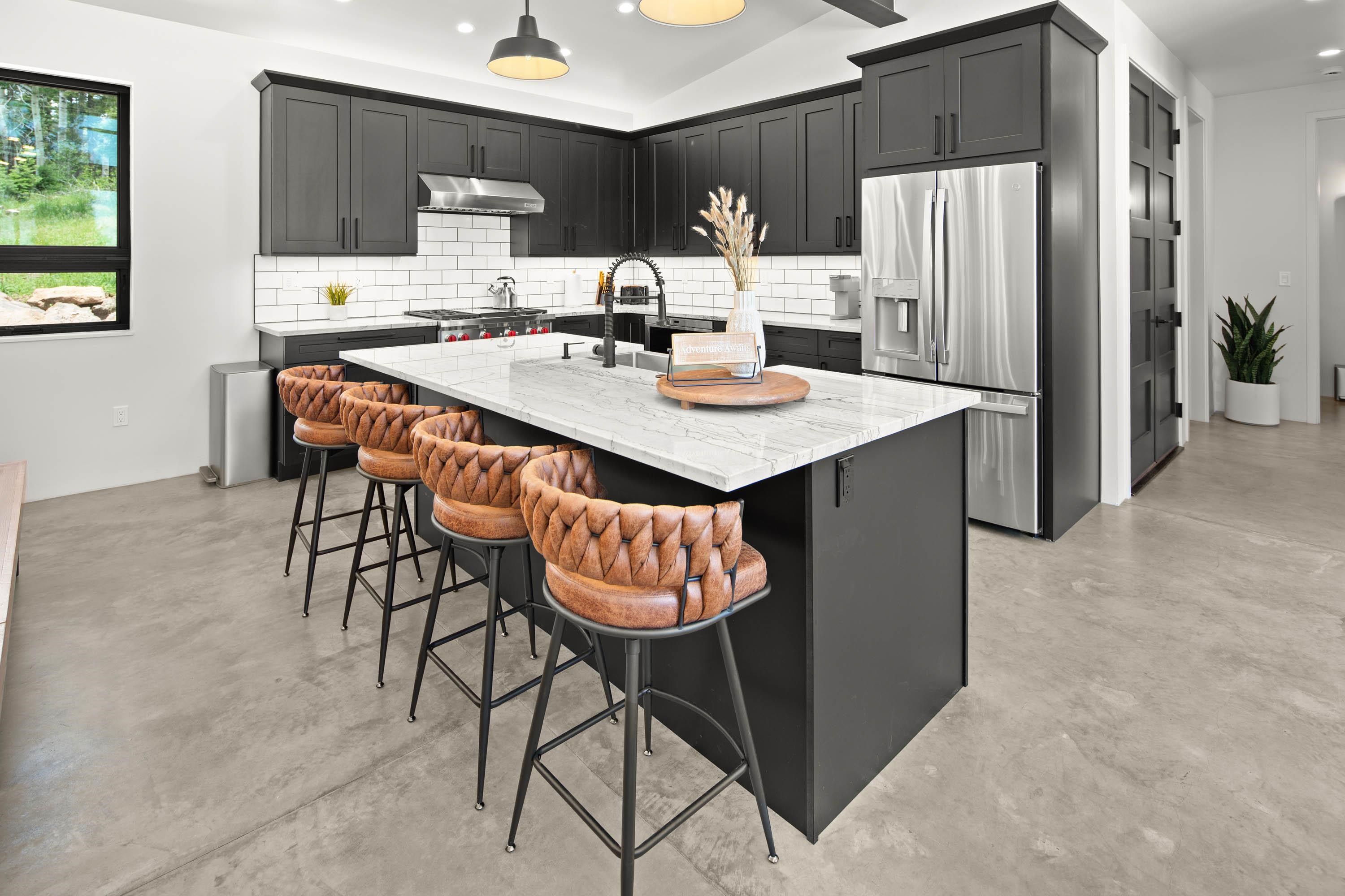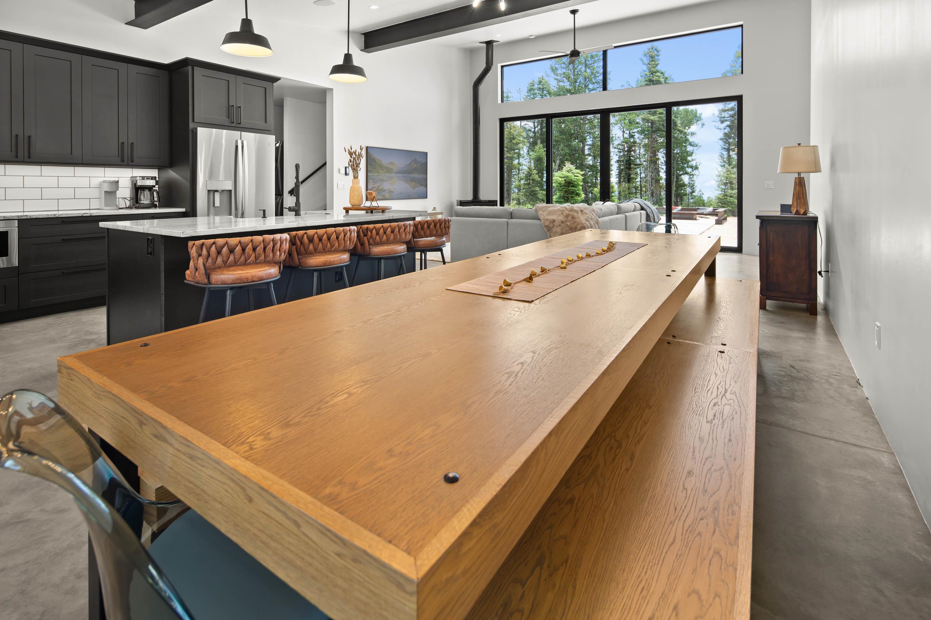 Stylish modern mountain retreat with luxe features & mountain views. This beautifully designed, 2024 built home offers luxury, comfort, and functionality in a stunning natural forest setting. Featuring 3 spacious primary suites including two on the main level plus an upstairs custom built bunk room/second living, this home is ideal for multi-generational living or high-end vacation rental use. The interior showcases polished concrete floors, tall custom doors throughout, a gourmet kitchen with top-of-the-line appliances including Wolf stove and two dishwashers for all the entertaining one could wish for. Large dining area with custom dining table and bench seating. The mudroom hallway contains custom cabinetry that adds practical storage and organization for active lifestyles. Enjoy the outdoors with a xeriscaped yard, a concrete walkway and a fire-pit seating area—perfect for entertaining under the stars. The outdoor area is completed with a hot tub. A 2-car garage provides ample storage and an extra bonus - an RV electric hookup on the side. Modern, efficient, and thoughtfully designed, this home is a rare find in today’s market. Fully furnished, turn key home. Don’t miss out—schedule your private tour today.